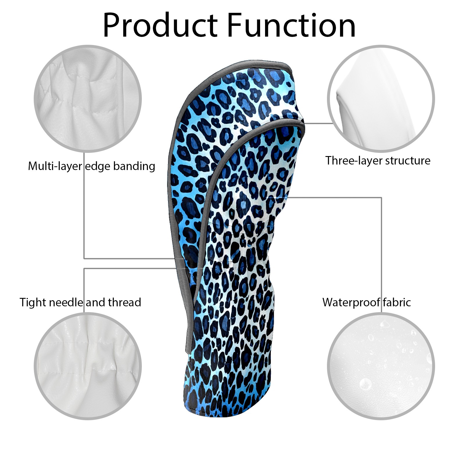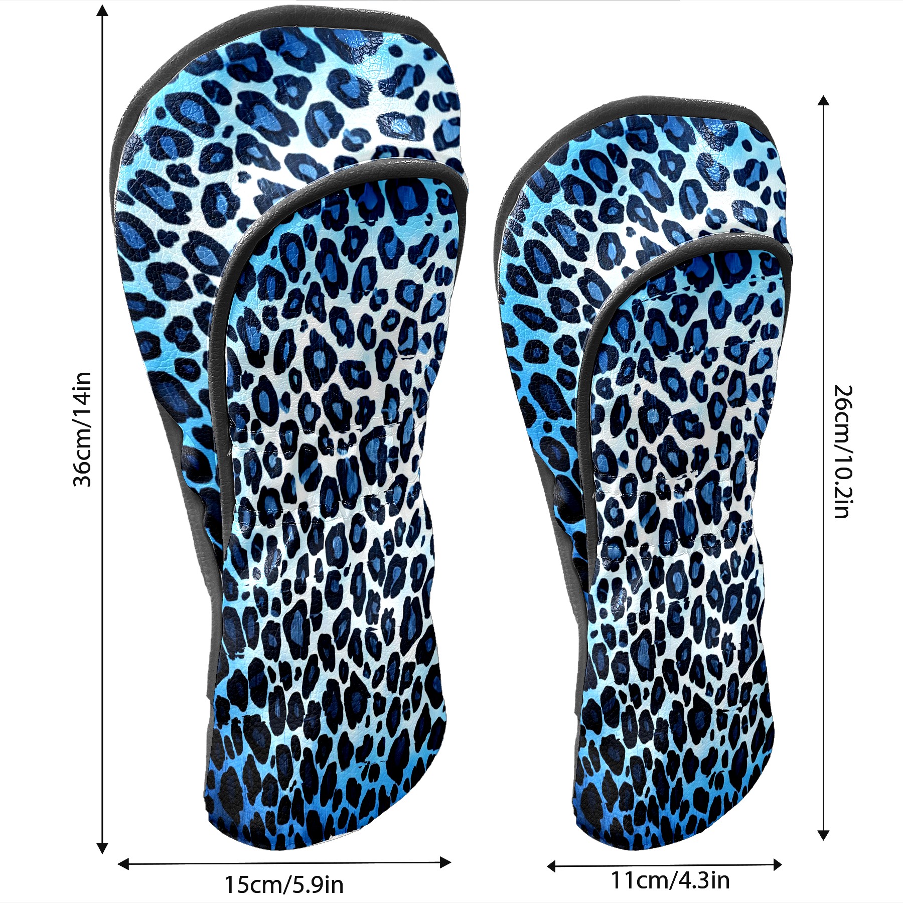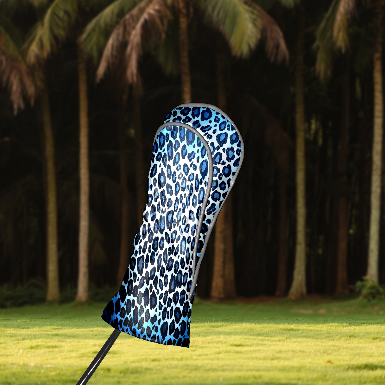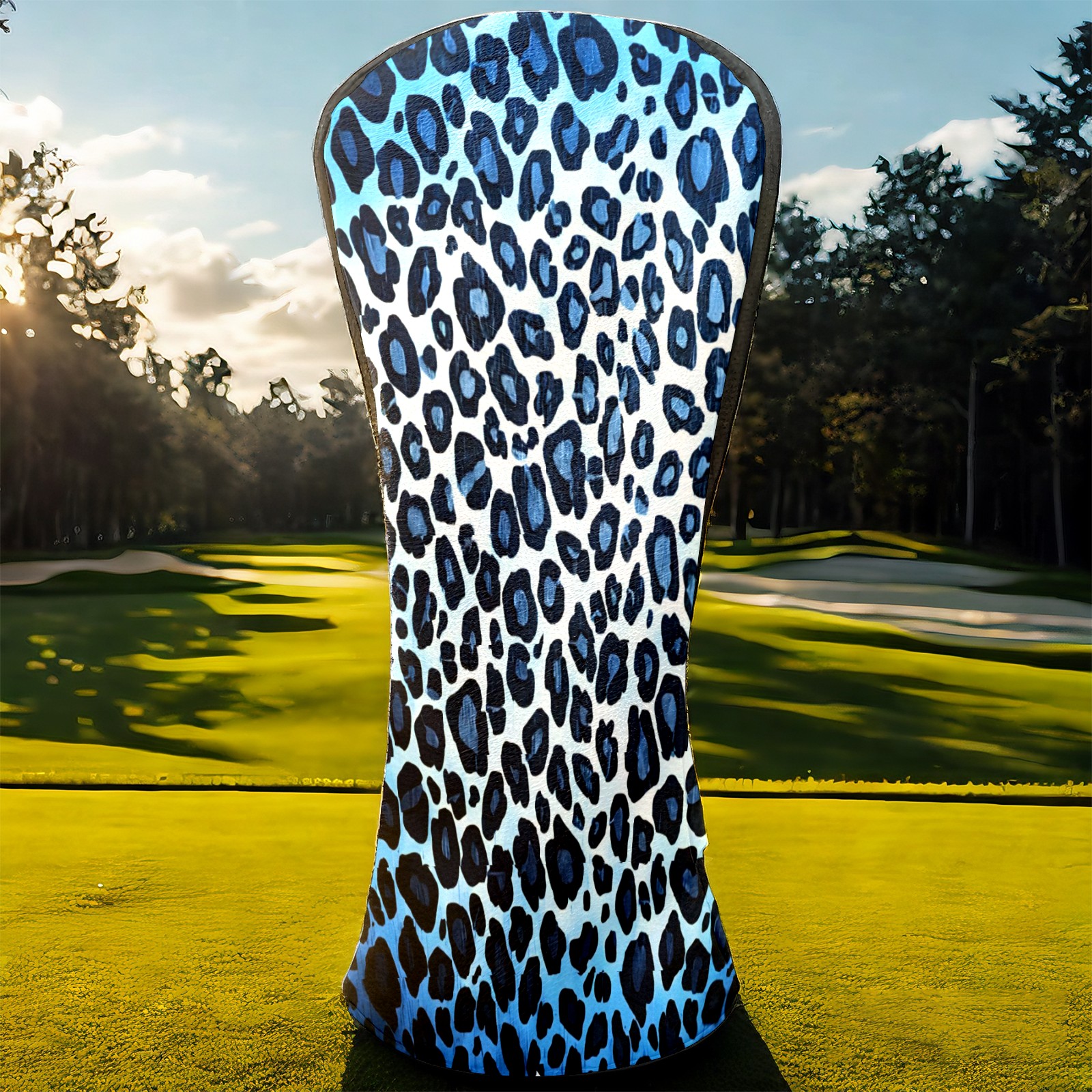 Golf Club Covers, Blue Leopard Print Premium PU Leather Driver Hybrid Putter Head Covers with Velvet Lining, Waterproof Golf Gifts for Men Women