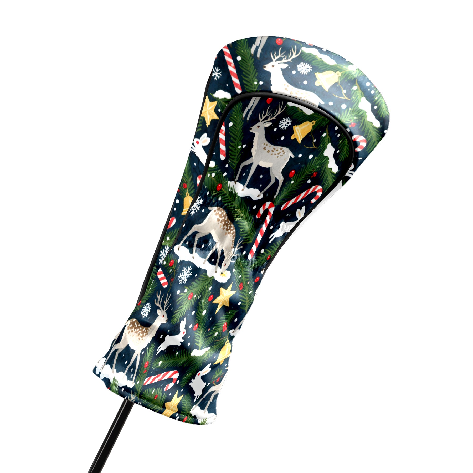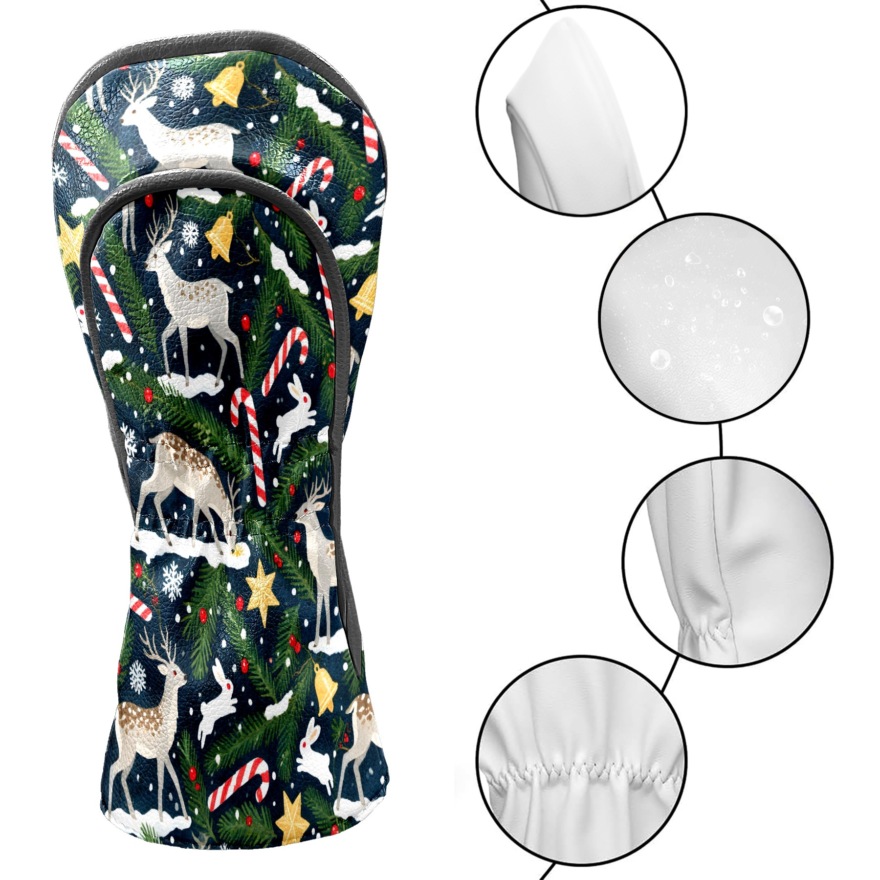 Golf Club Covers, Deer Premium PU Leather Driver Hybrid Putter Head Covers with Velvet Lining, Waterproof Golf Gifts for Men Women