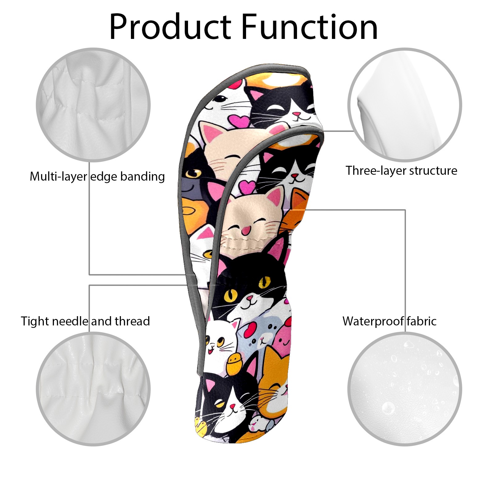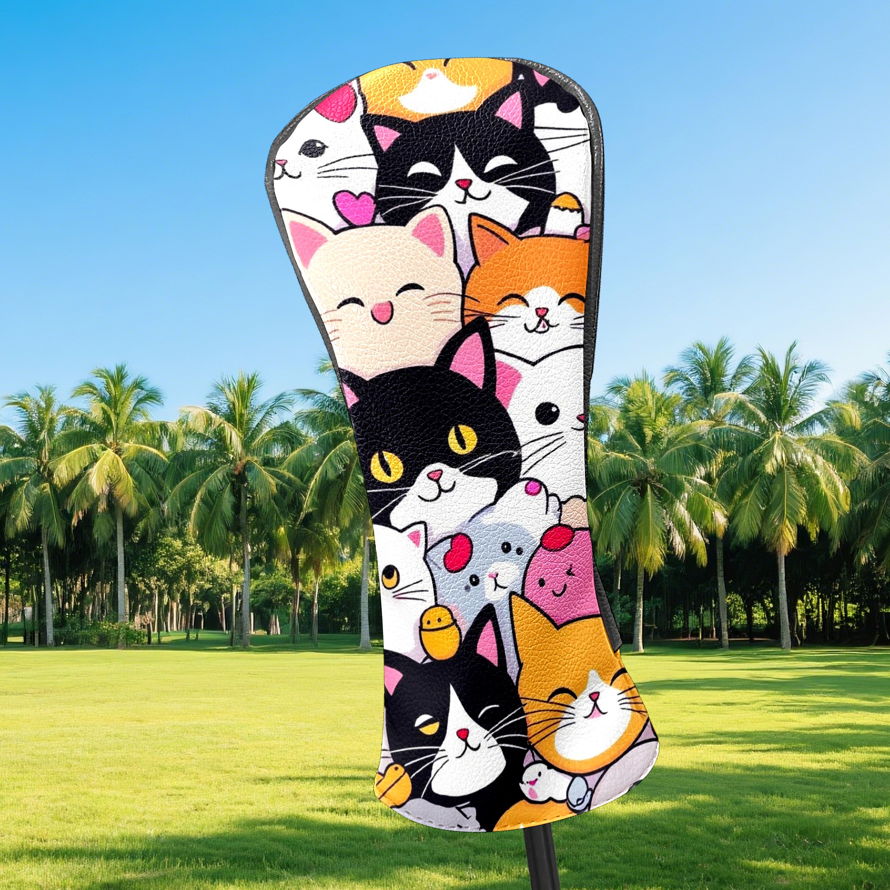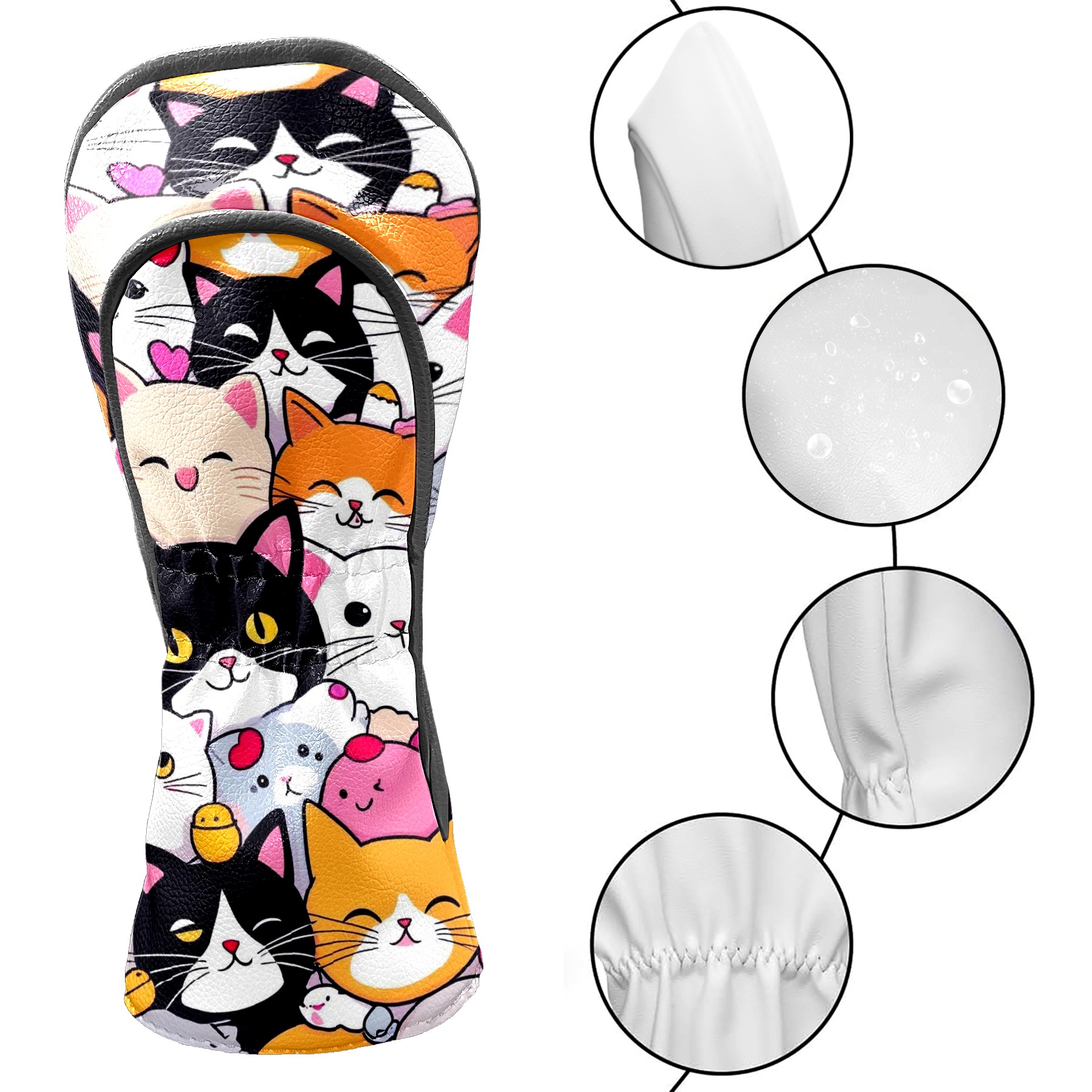 Golf Club Covers, Cartoon1 Premium PU Leather Driver Hybrid Putter Head Covers with Velvet Lining, Waterproof Golf Gifts for Men Women