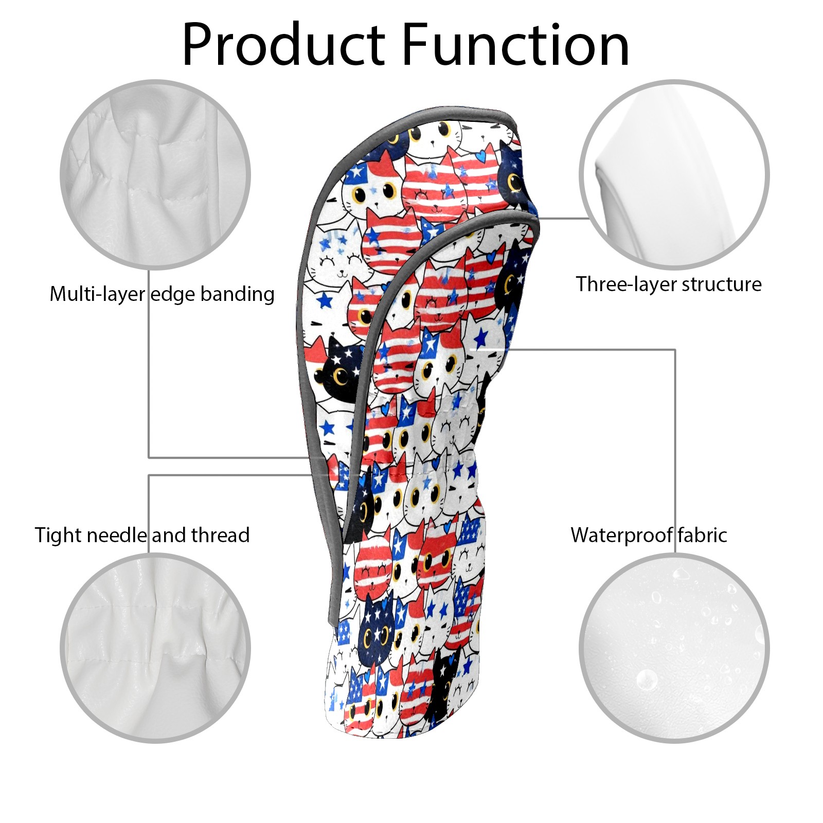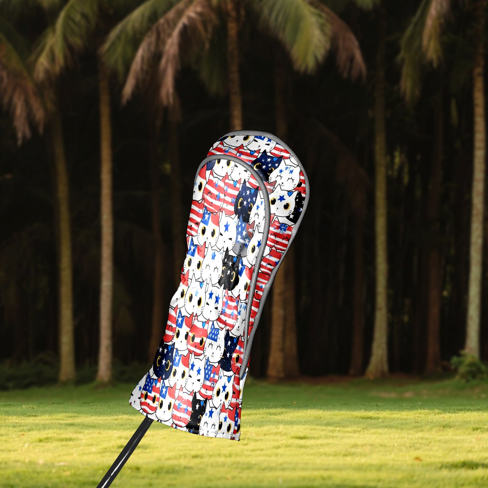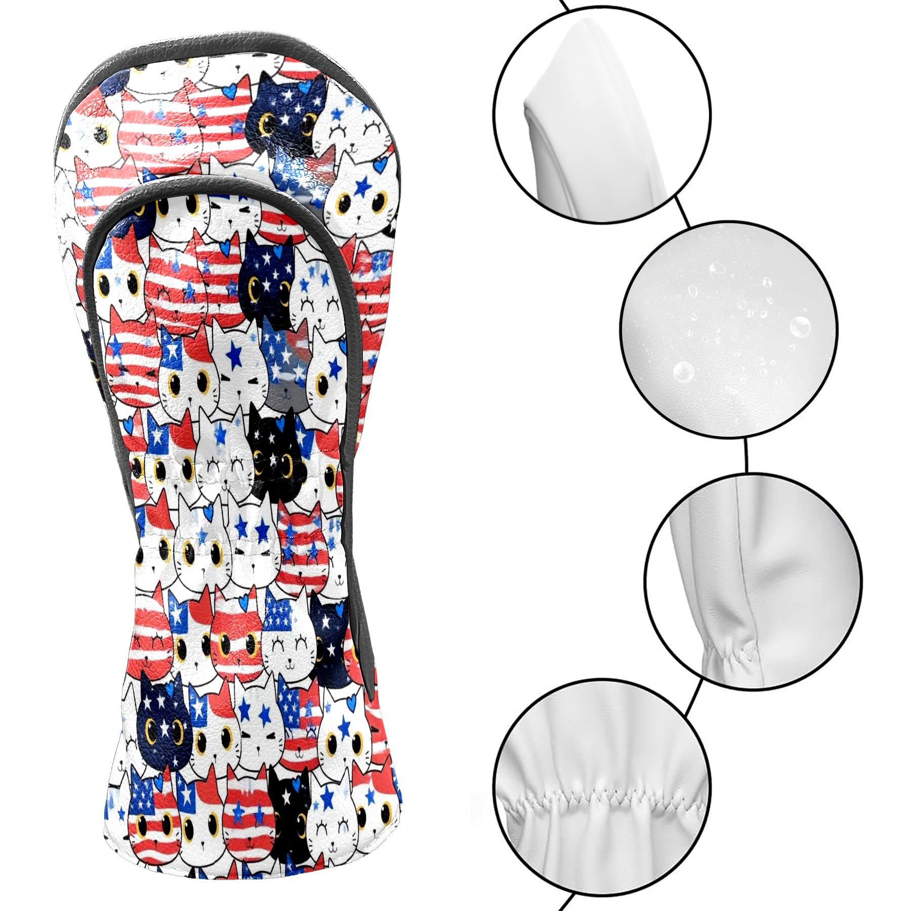 Golf Club Covers, Cartoon2 Premium PU Leather Driver Hybrid Putter Head Covers with Velvet Lining, Waterproof Golf Gifts for Men Women