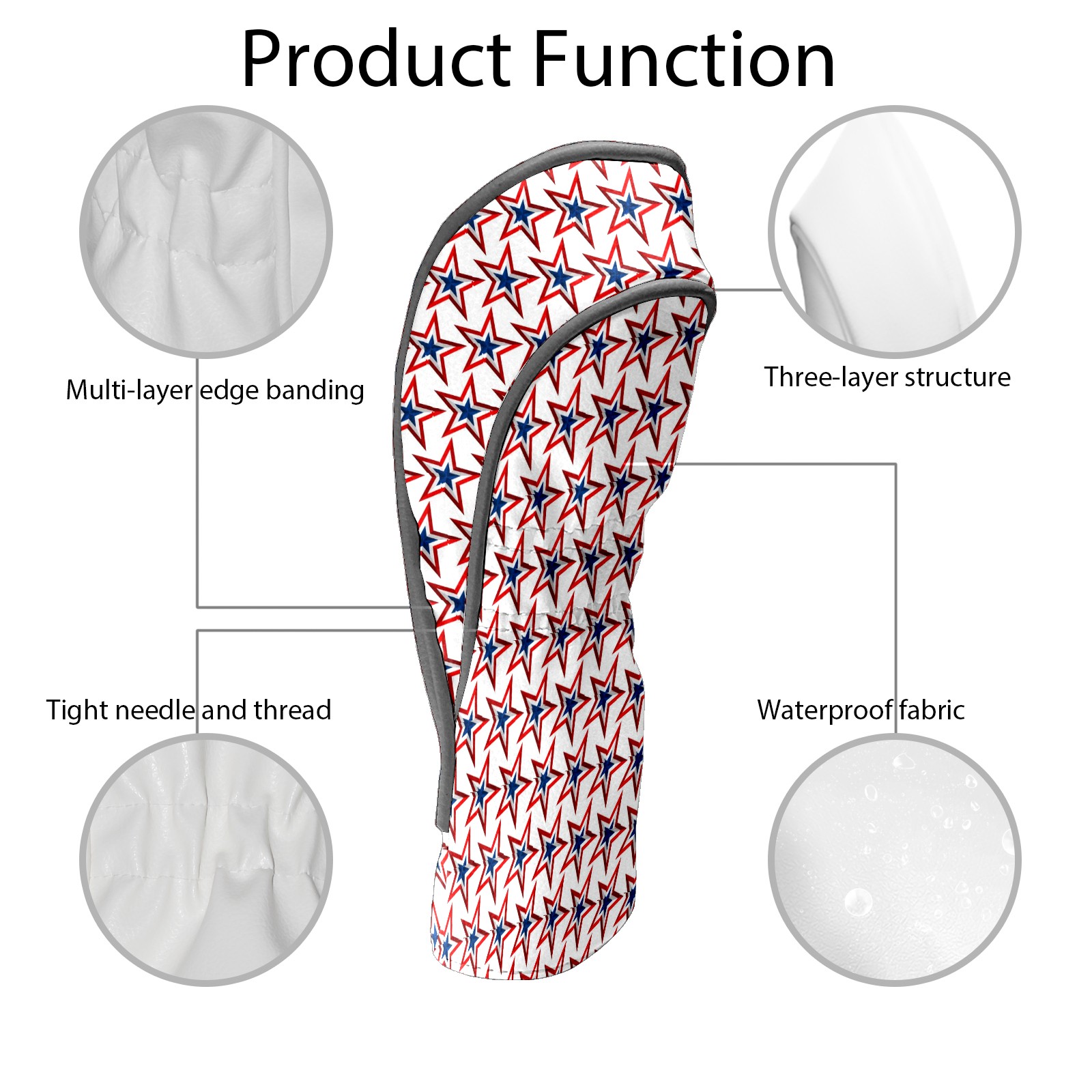 Golf Club Covers, Red Stars Premium PU Leather Driver Hybrid Putter Head Covers with Velvet Lining, Waterproof Golf Gifts for Men Women