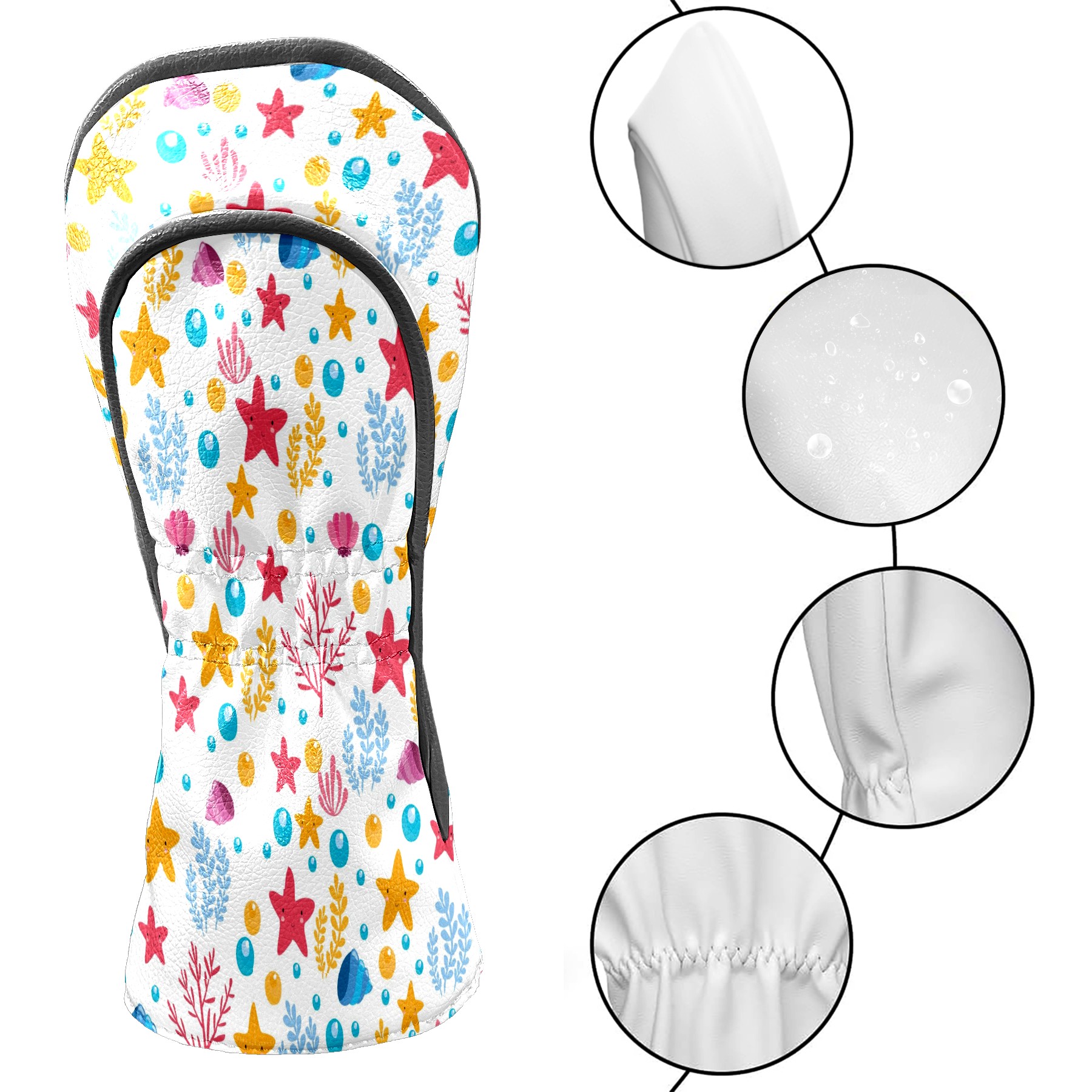 Golf Club Covers, Stars Premium PU Leather Driver Hybrid Putter Head Covers with Velvet Lining, Waterproof Golf Gifts for Men Women