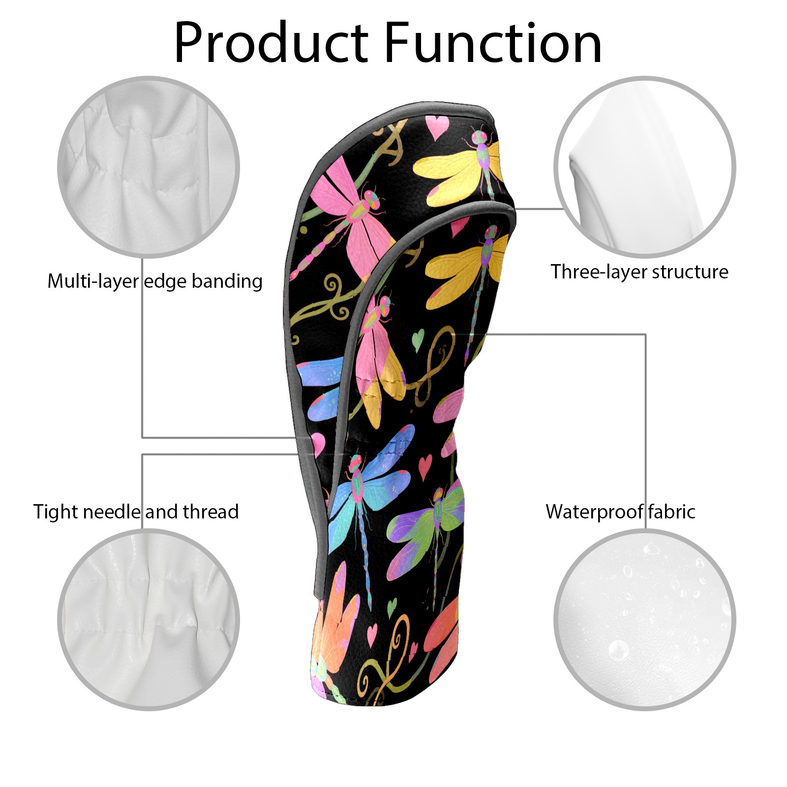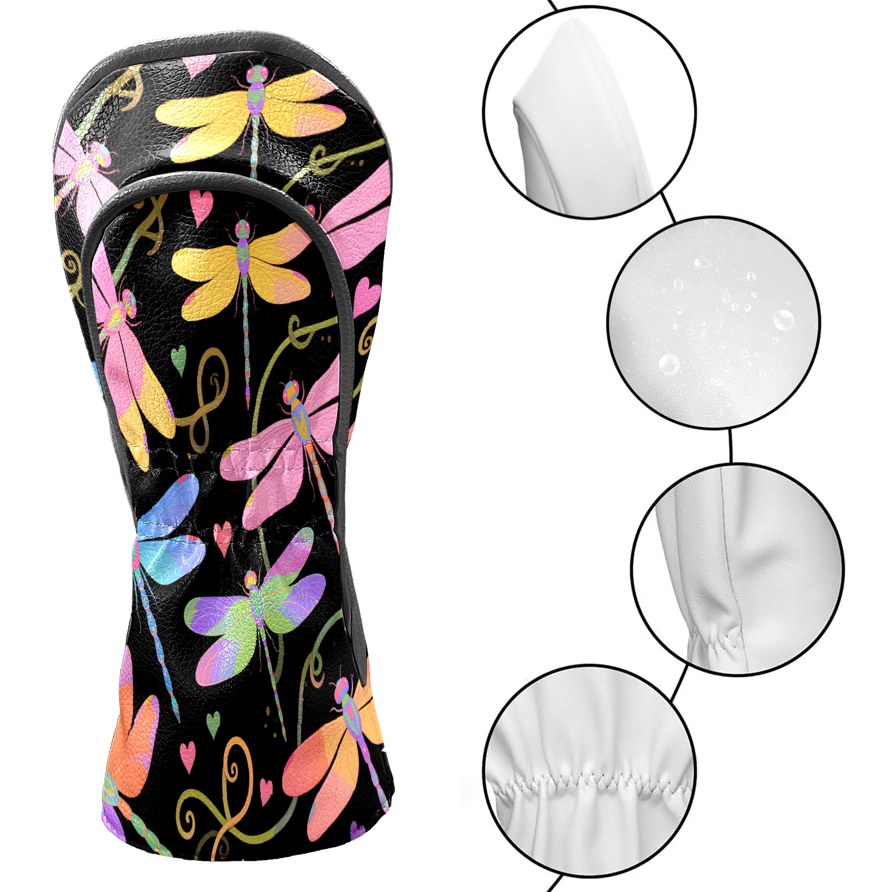 Golf Club Covers, Butterfly Premium PU Leather Driver Hybrid Putter Head Covers with Velvet Lining, Waterproof Golf Gifts for Men Women
