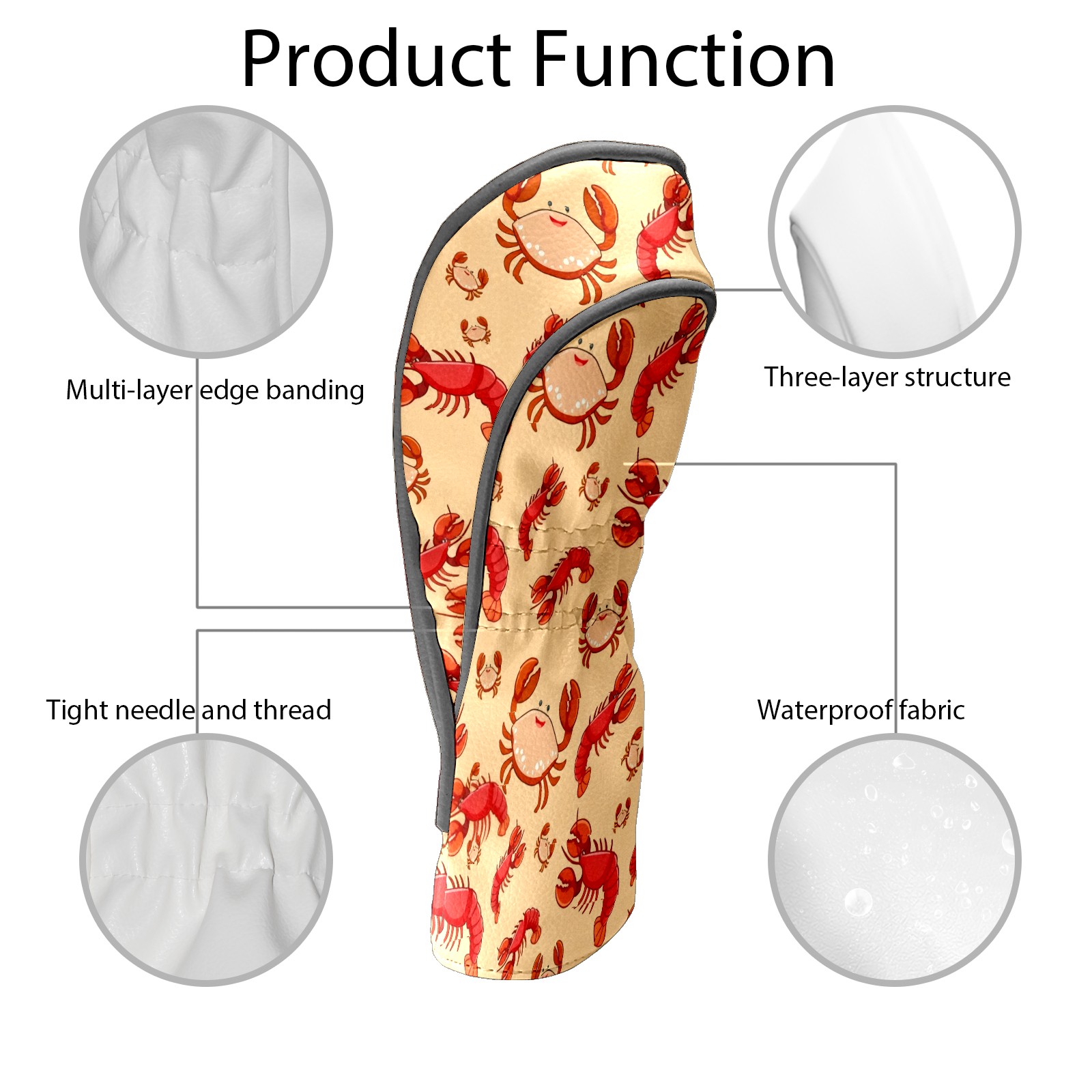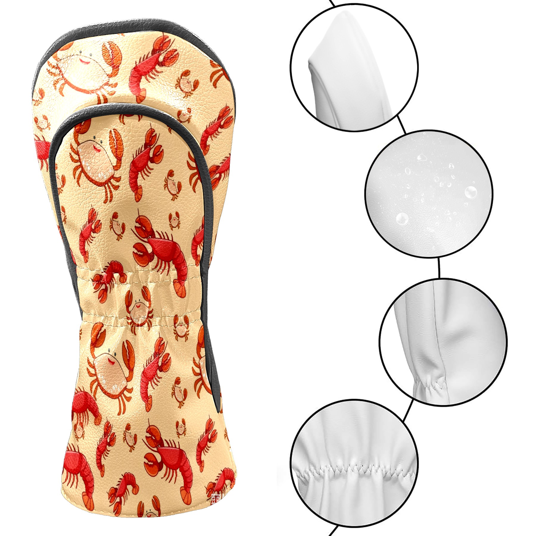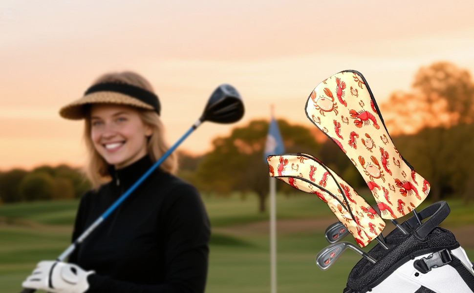 PU Leather Golf Club Head Covers, Fit Driver Head Cover/Fairway Wood Head Cover/Hybrid Club Head Cover, Men and Women Golfer Gift Crab Shrimp