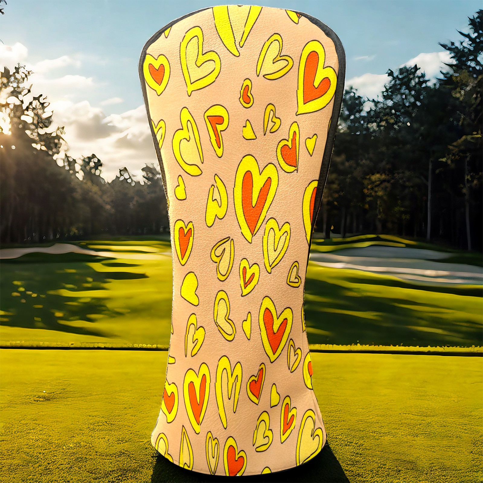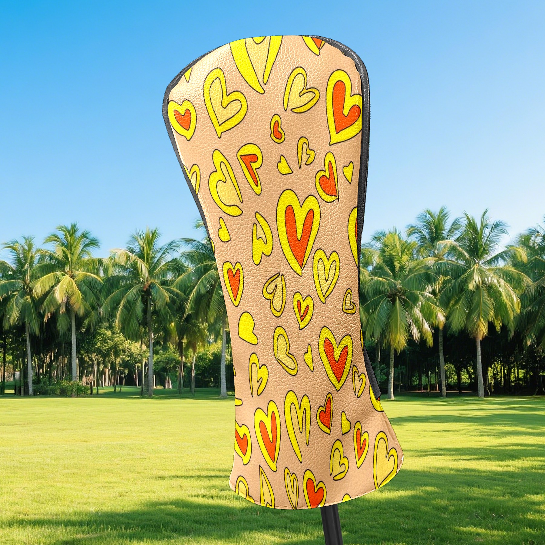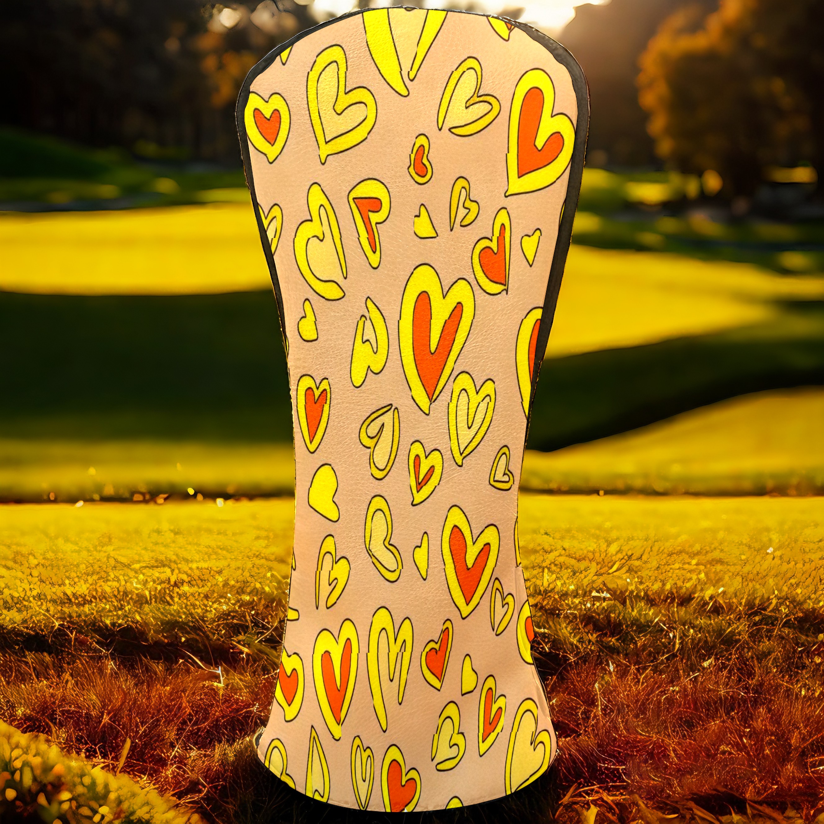 PU Leather Golf Club Head Covers, Fit Driver Head Cover/Fairway Wood Head Cover/Hybrid Club Head Cover, Men and Women Golfer Gift Yellow Love Heart