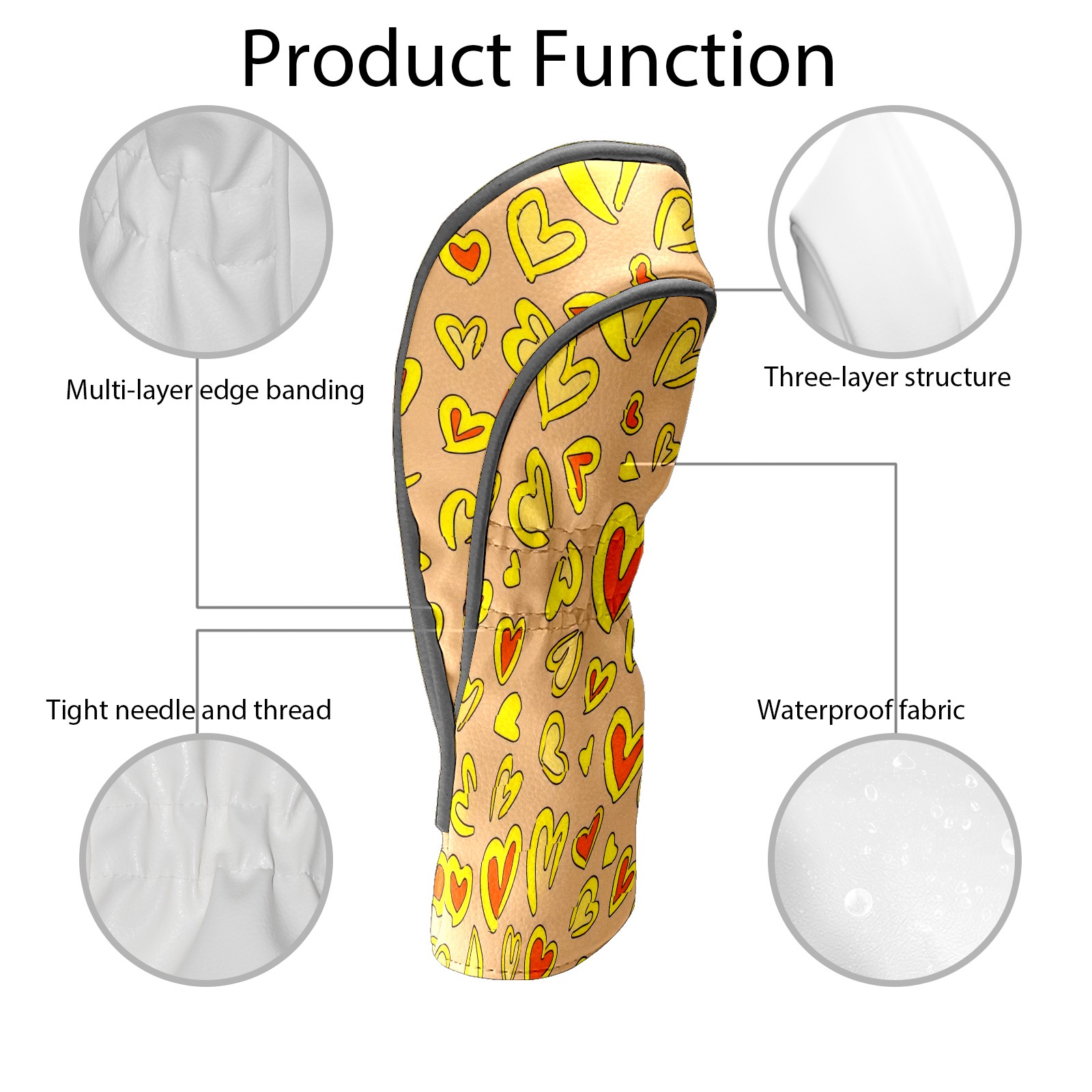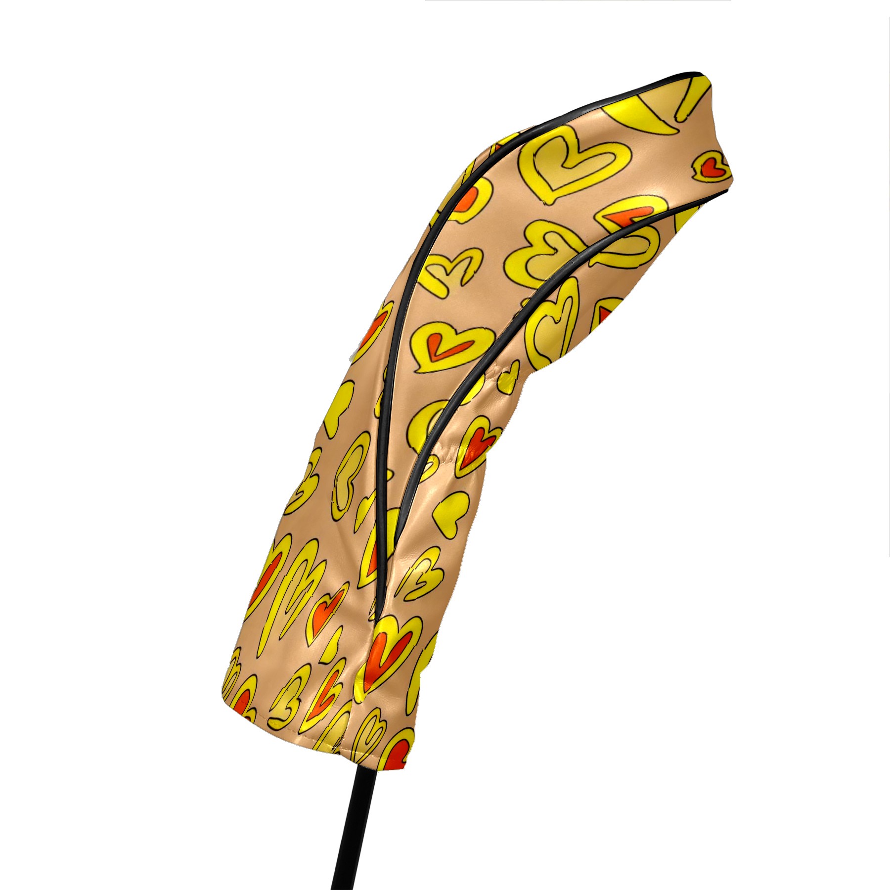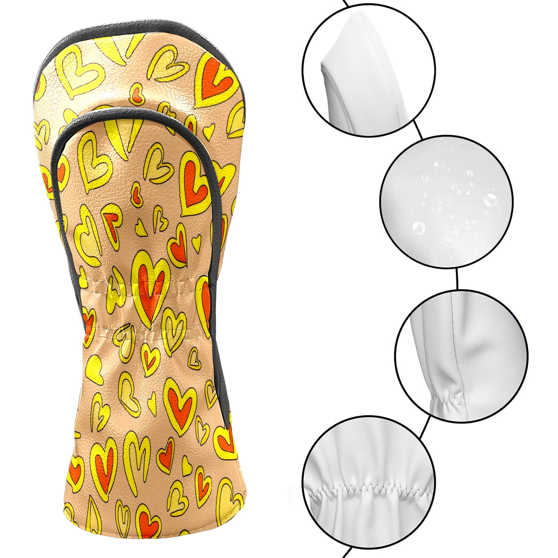 PU Leather Golf Club Head Covers, Fit Driver Head Cover/Fairway Wood Head Cover/Hybrid Club Head Cover, Men and Women Golfer Gift Yellow Love Heart