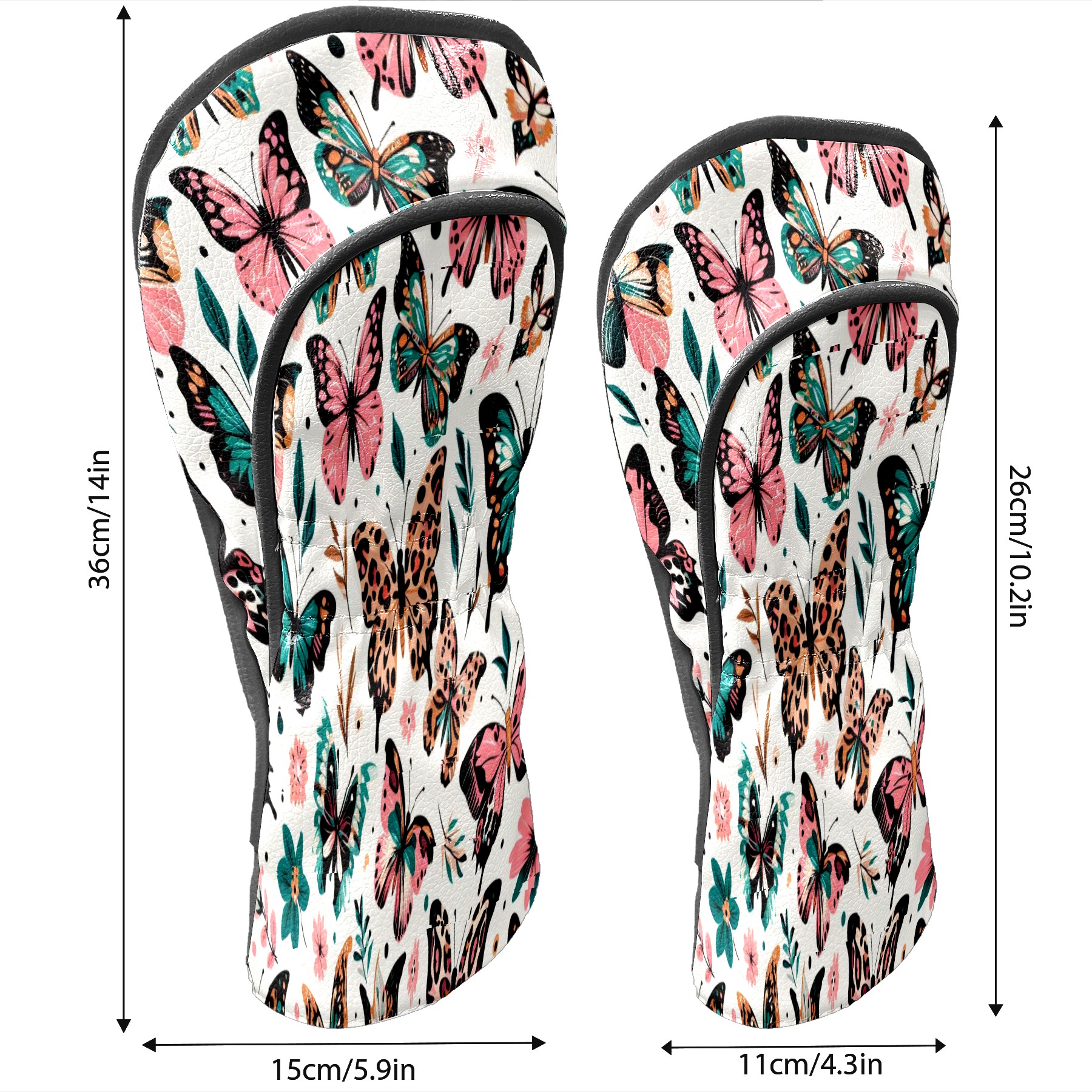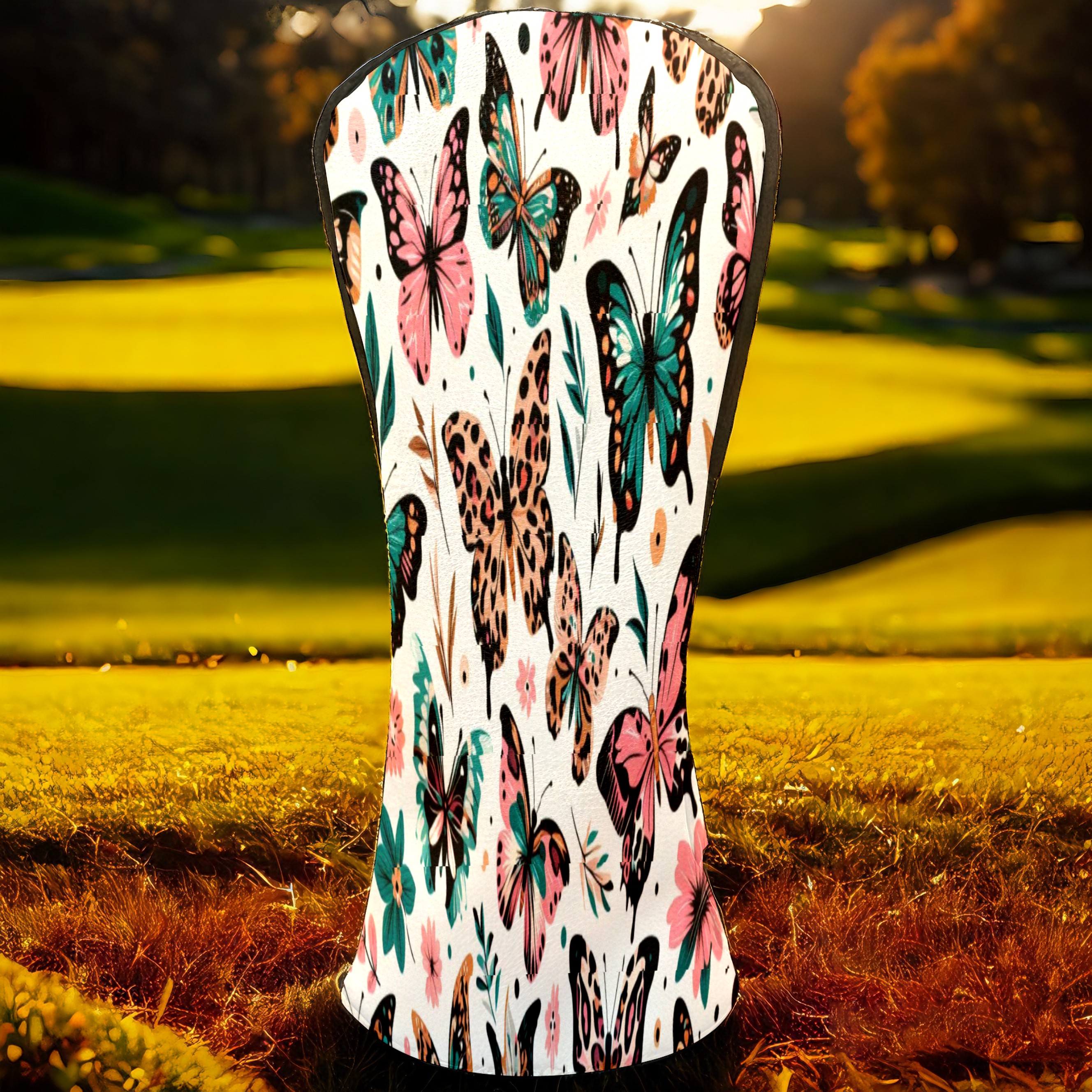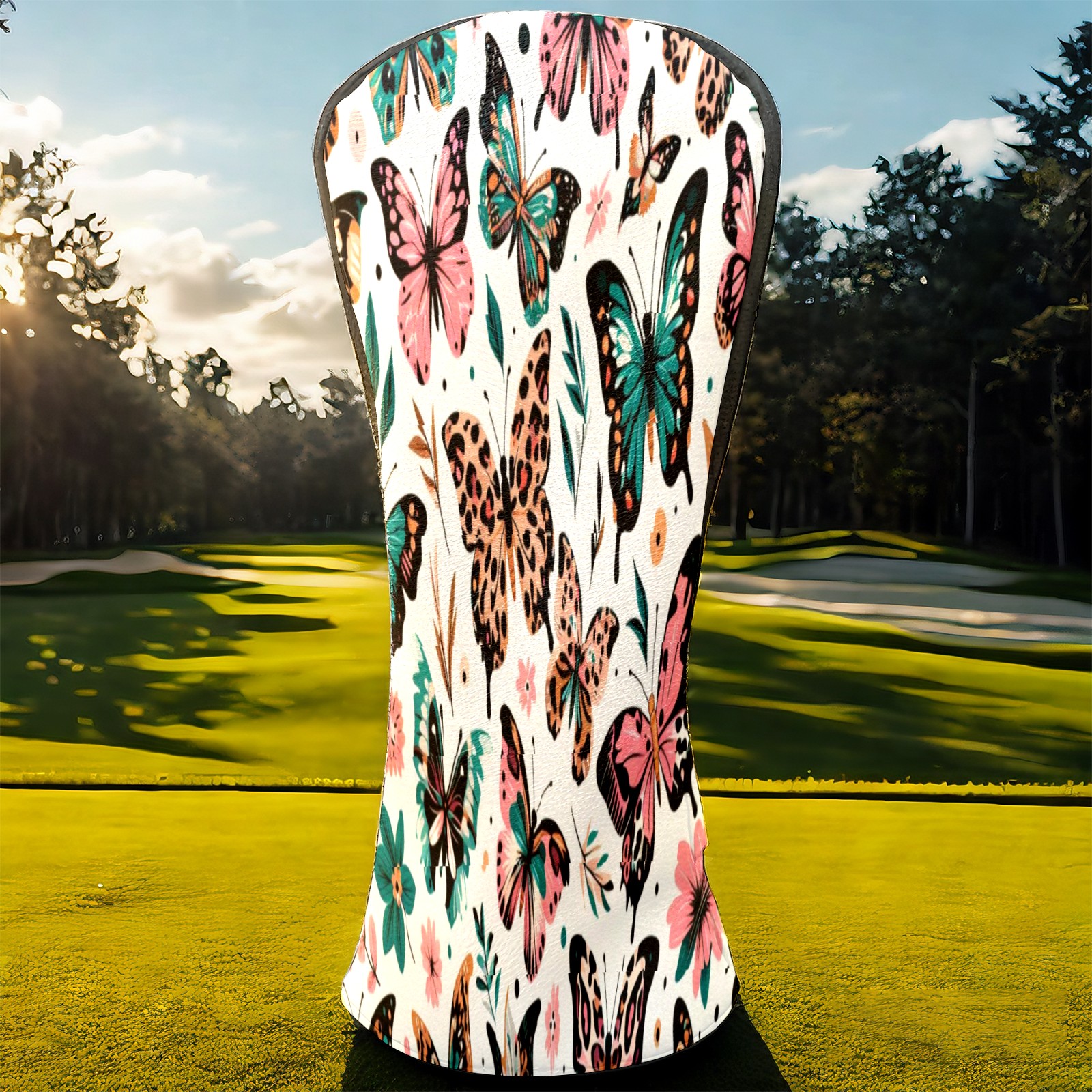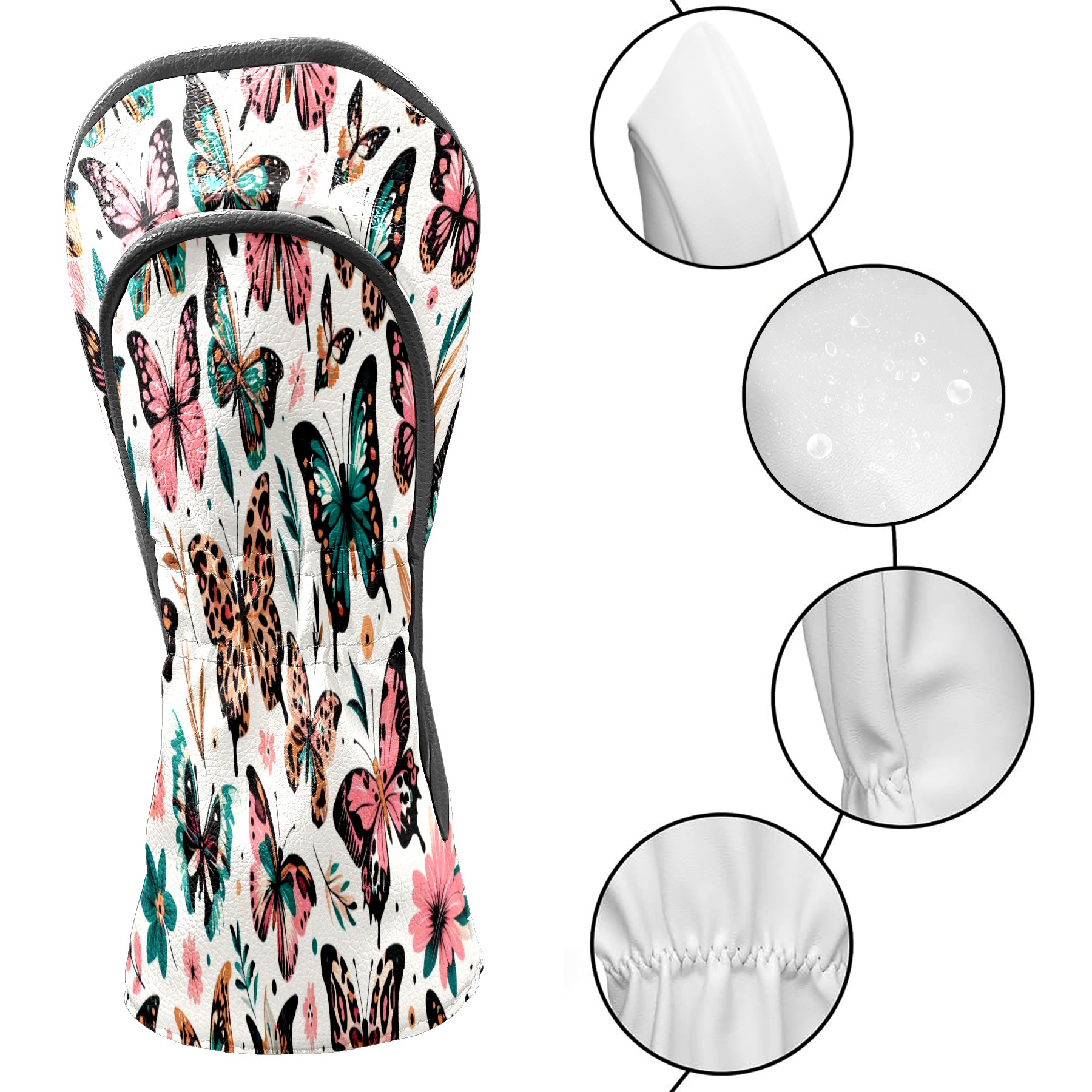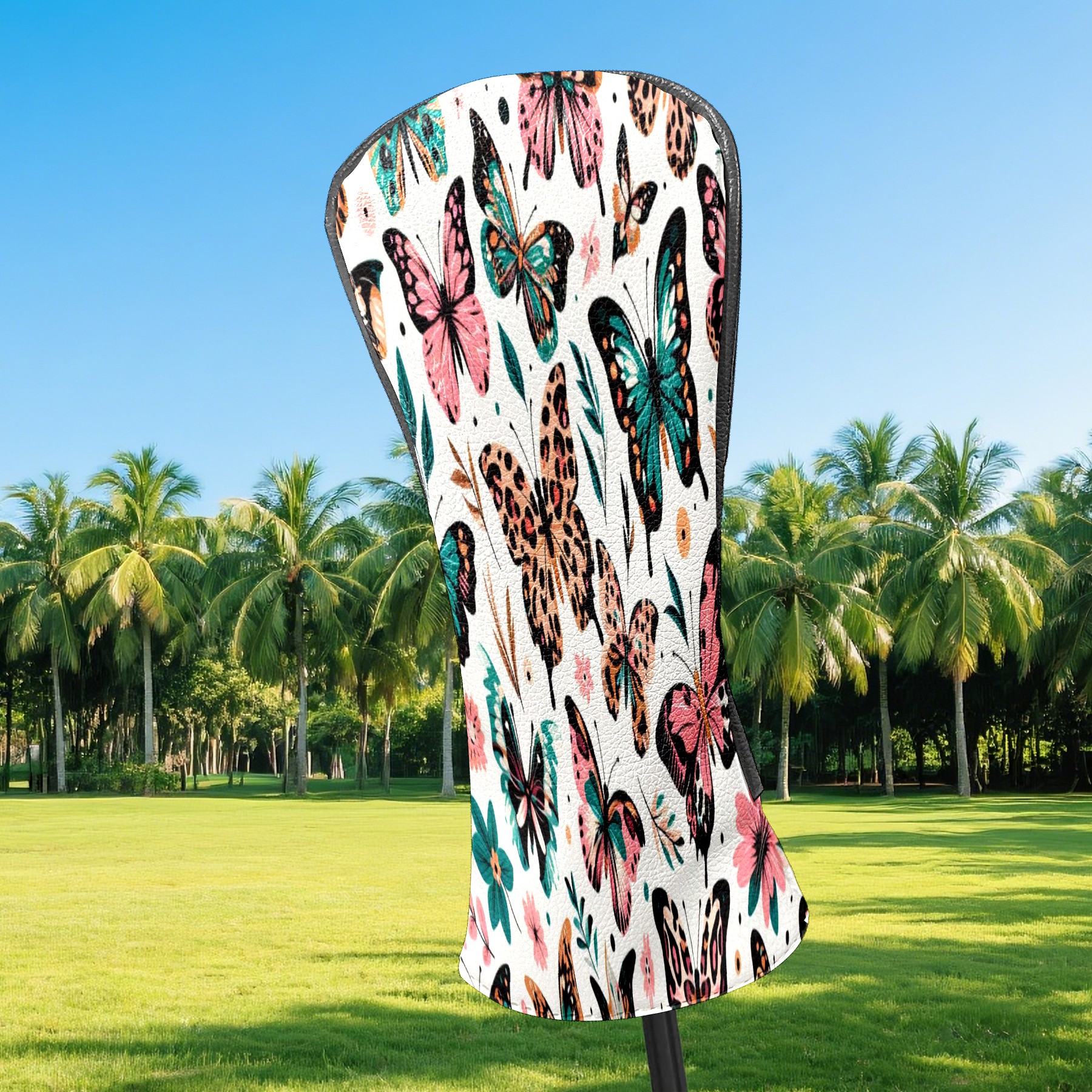 PU Leather Golf Club Head Covers, Fit Driver Head Cover/Fairway Wood Head Cover/Hybrid Club Head Cover, Men and Women Golfer Gift White ButterflyFlower