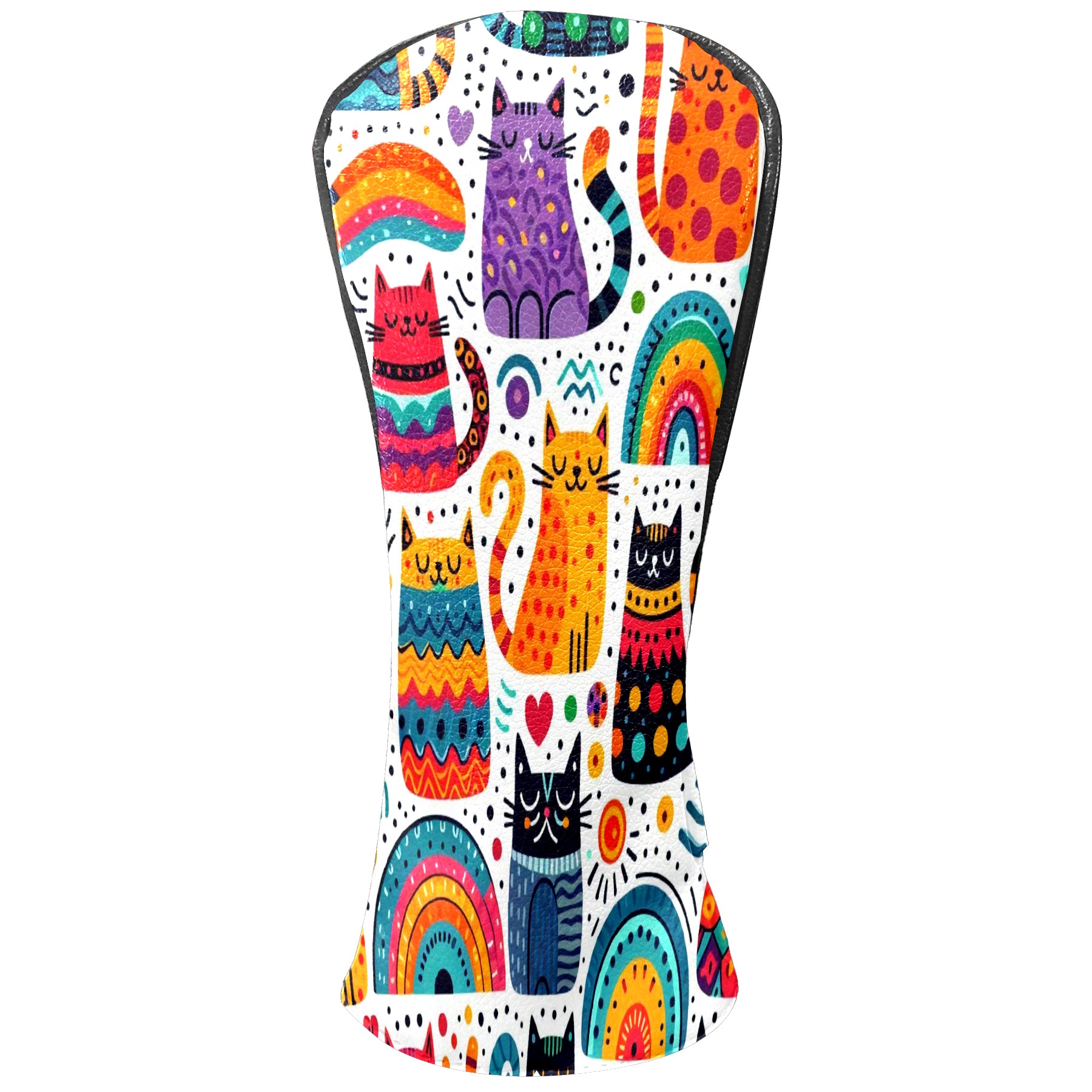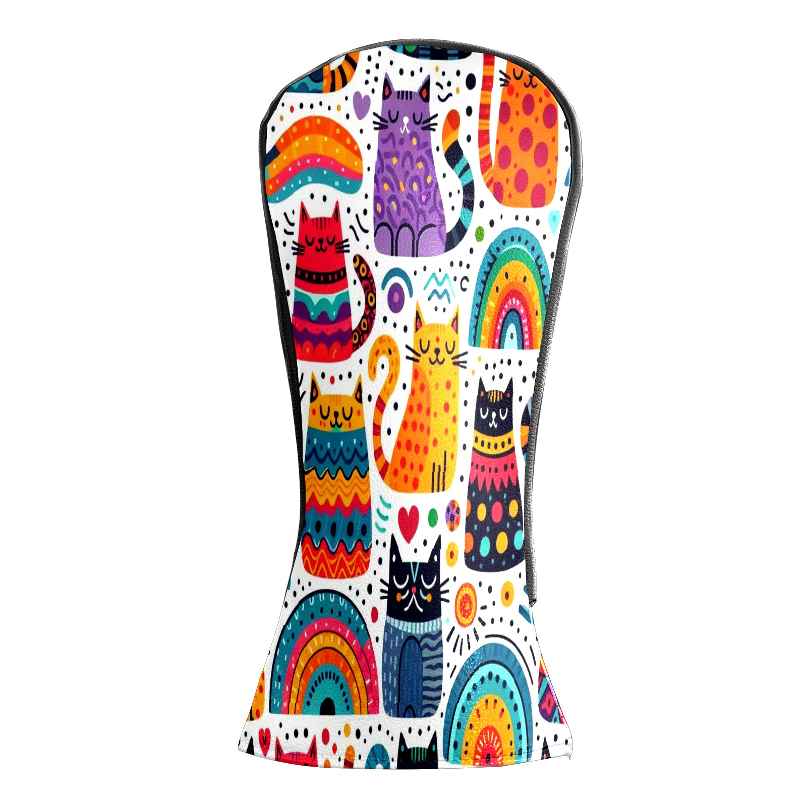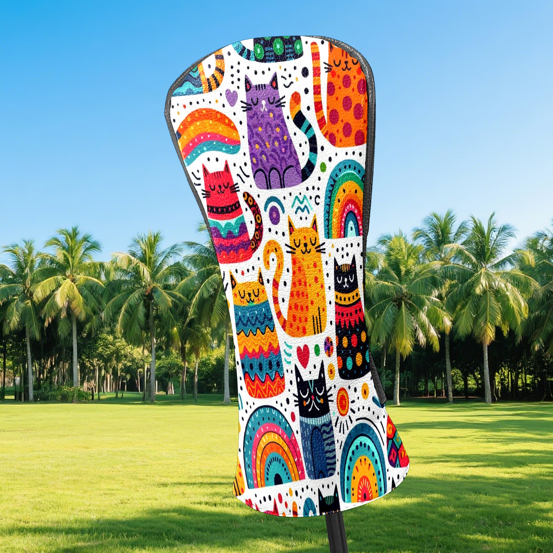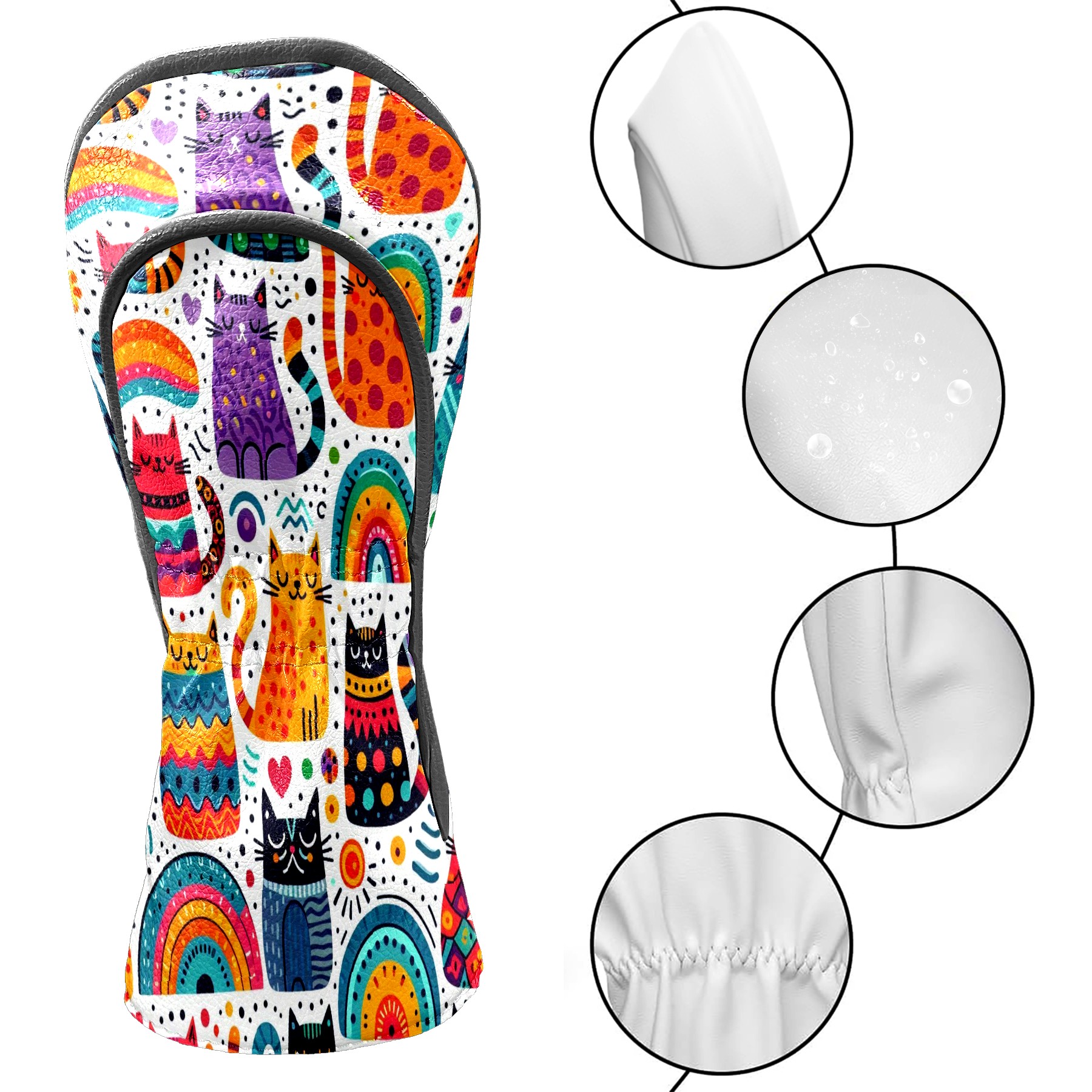PU Leather Golf Club Head Covers, Fit Driver Head Cover/Fairway Wood Head Cover/Hybrid Club Head Cover, Men and Women Golfer Gift Rainbow Cat