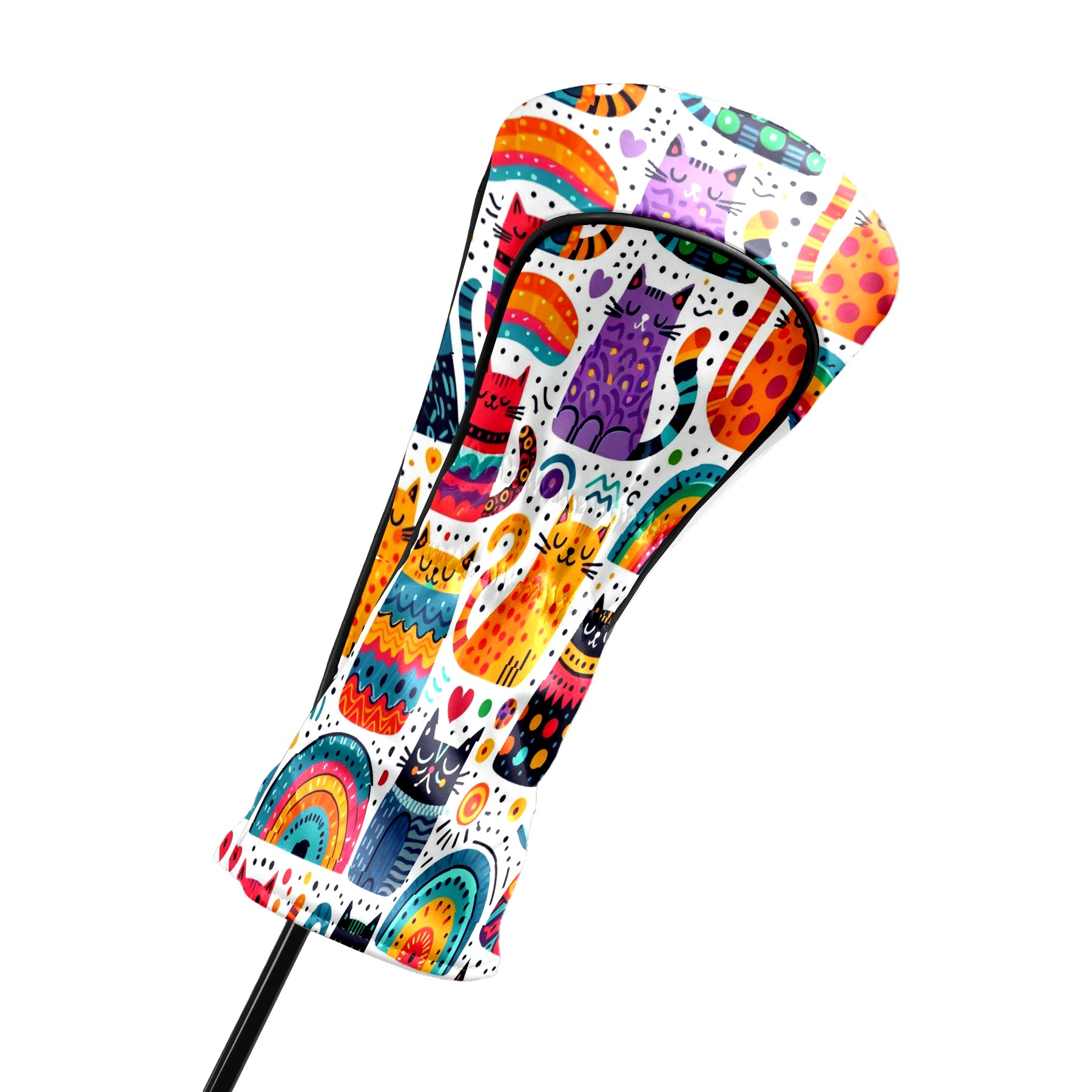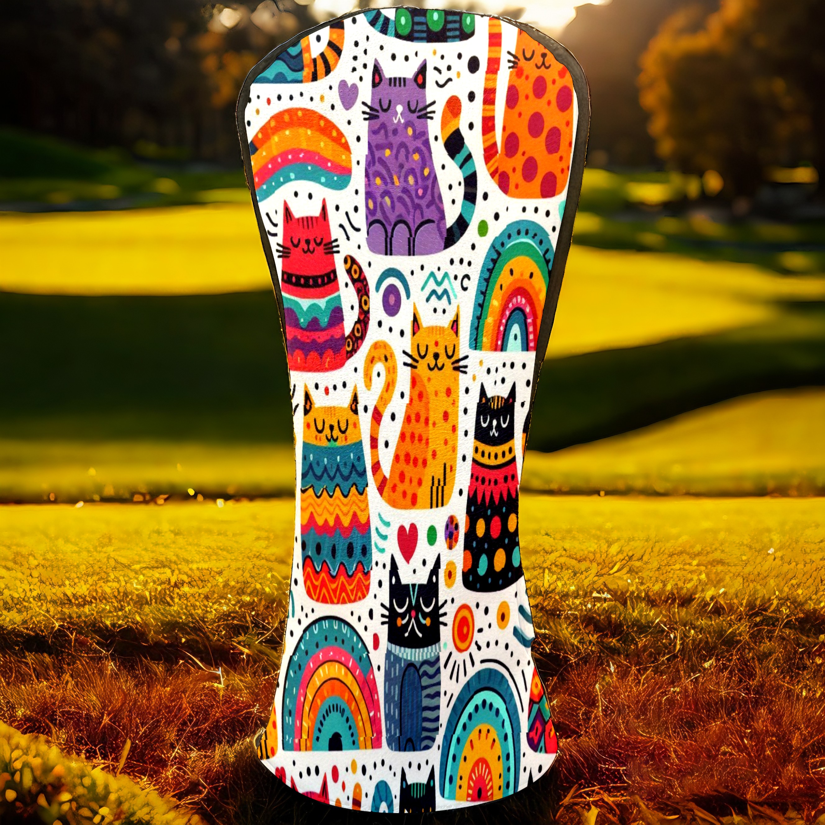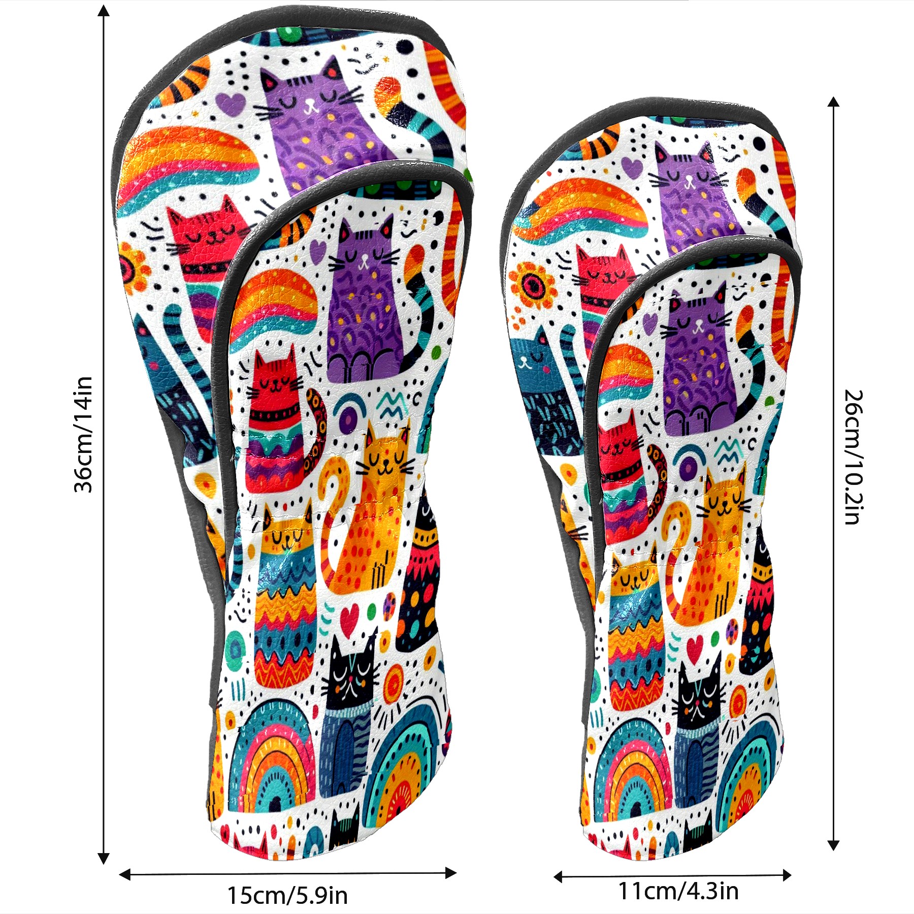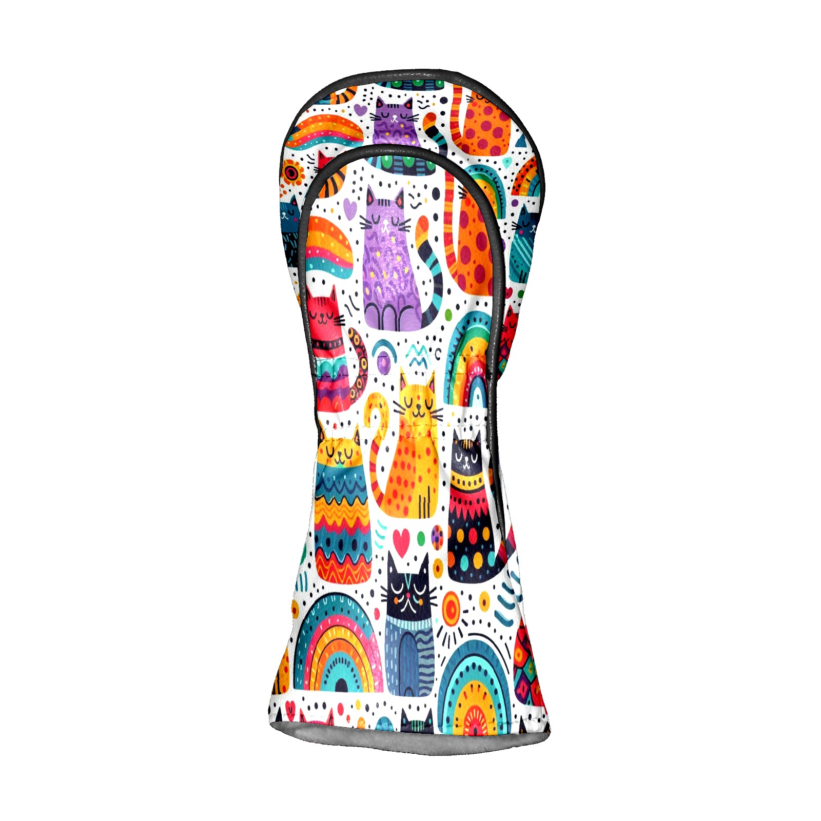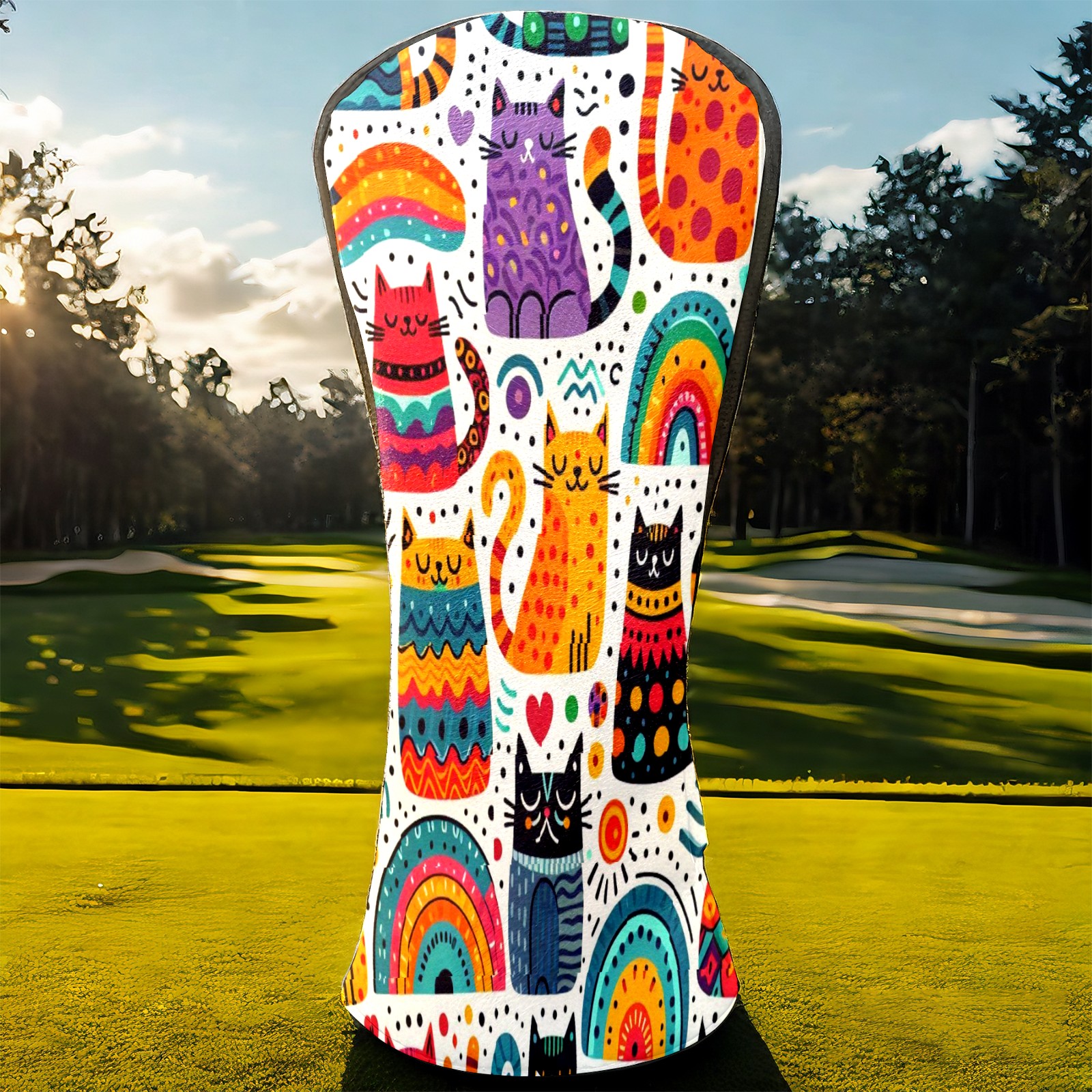 PU Leather Golf Club Head Covers, Fit Driver Head Cover/Fairway Wood Head Cover/Hybrid Club Head Cover, Men and Women Golfer Gift Rainbow Cat