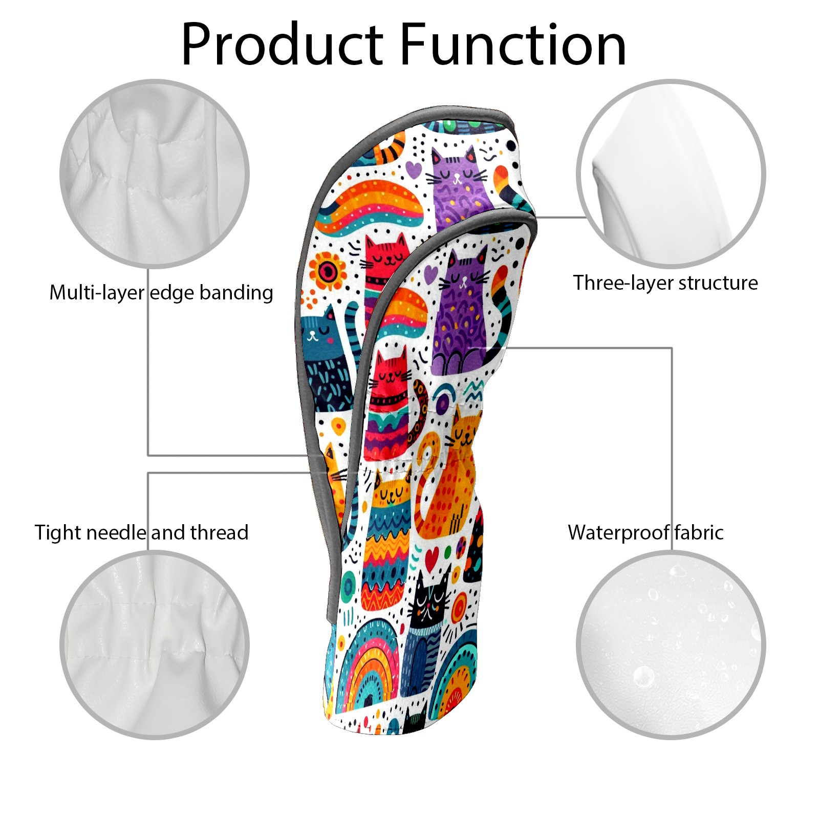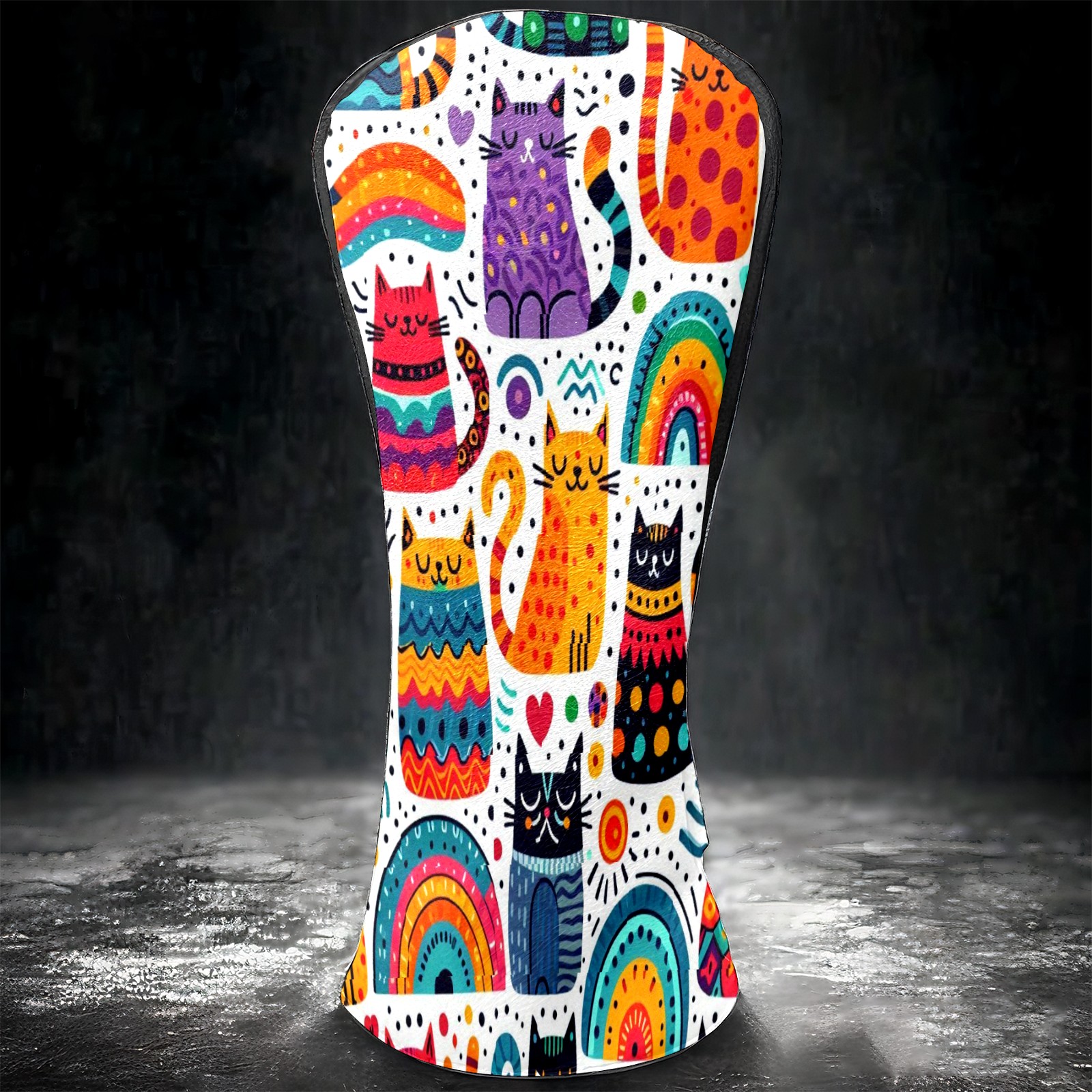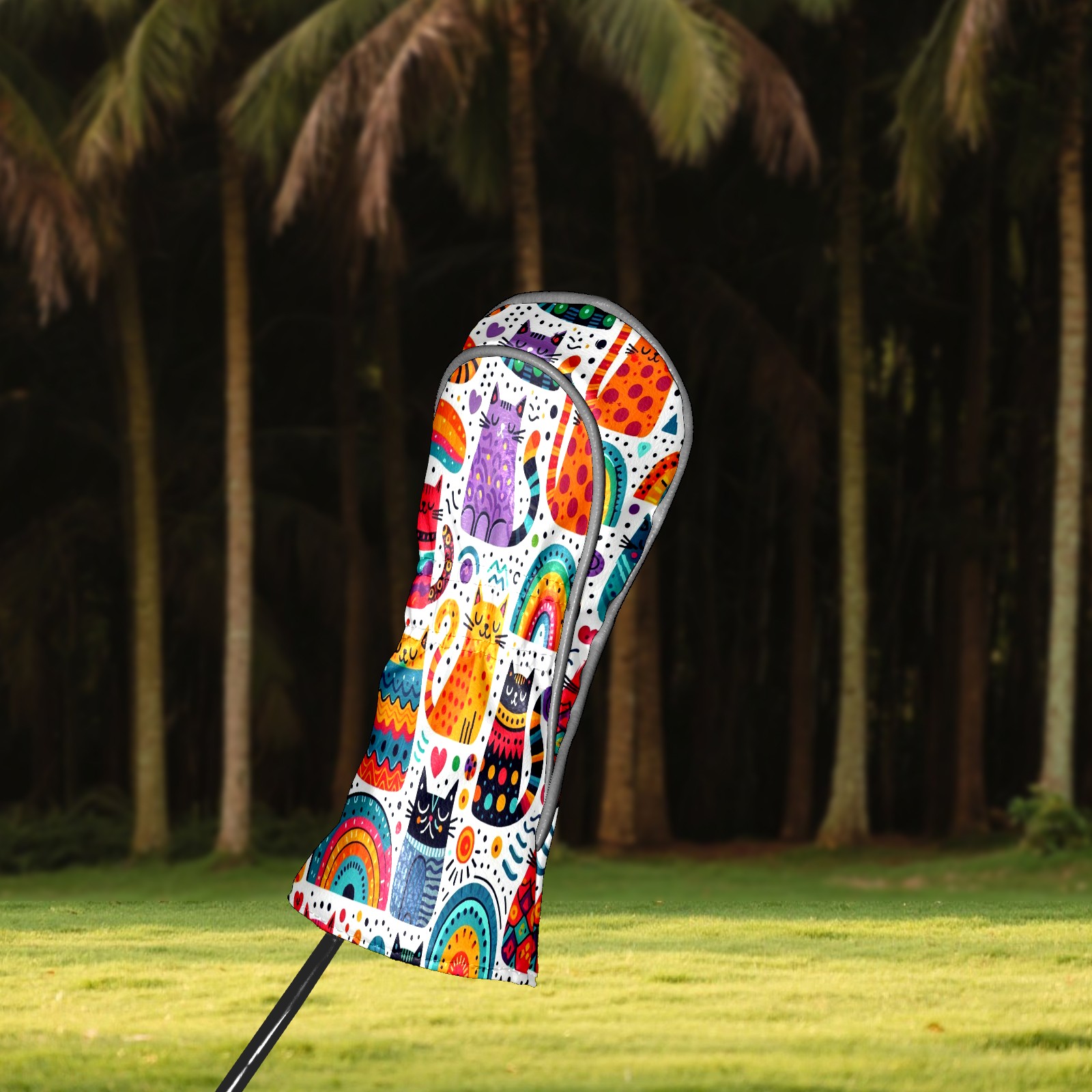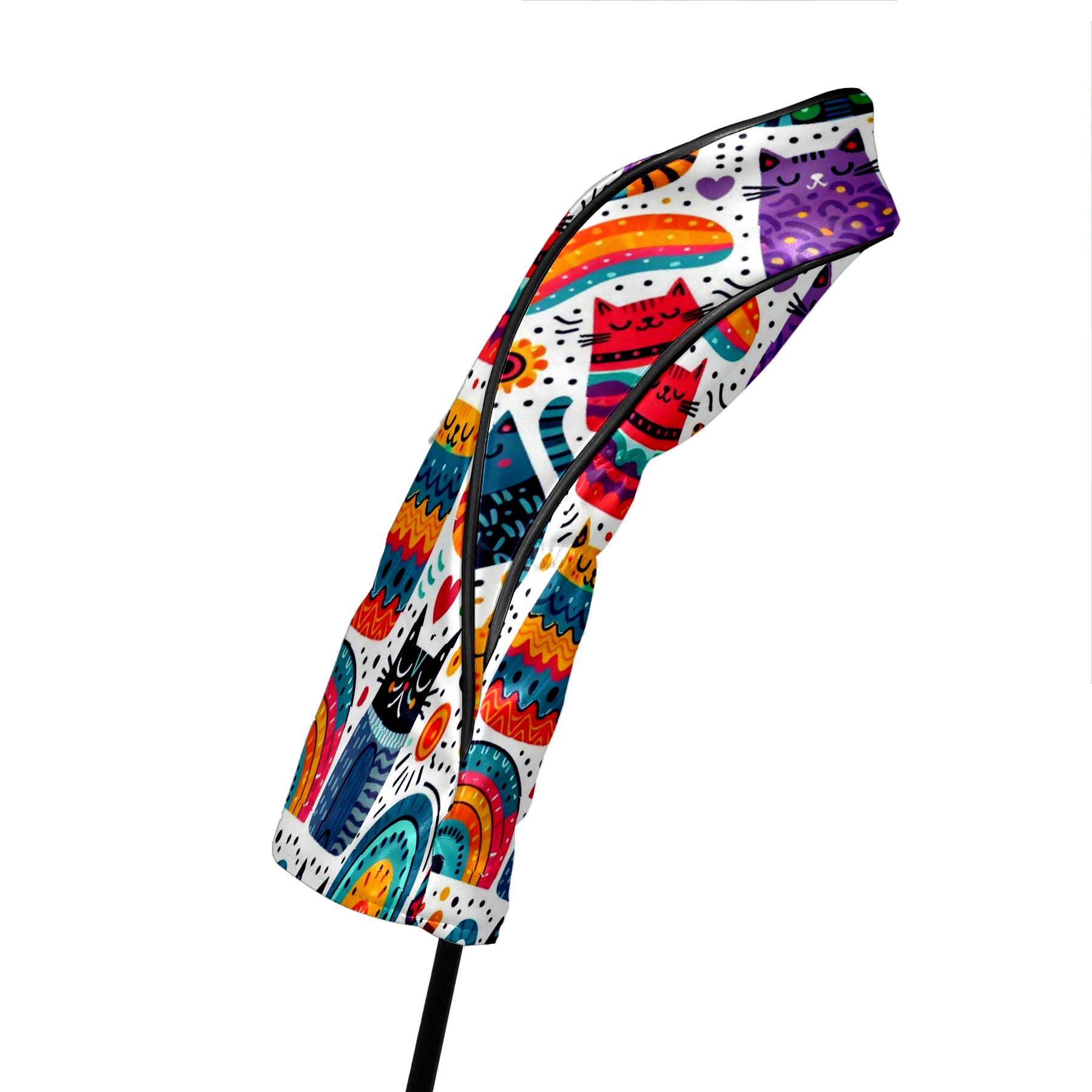 PU Leather Golf Club Head Covers, Fit Driver Head Cover/Fairway Wood Head Cover/Hybrid Club Head Cover, Men and Women Golfer Gift Rainbow Cat