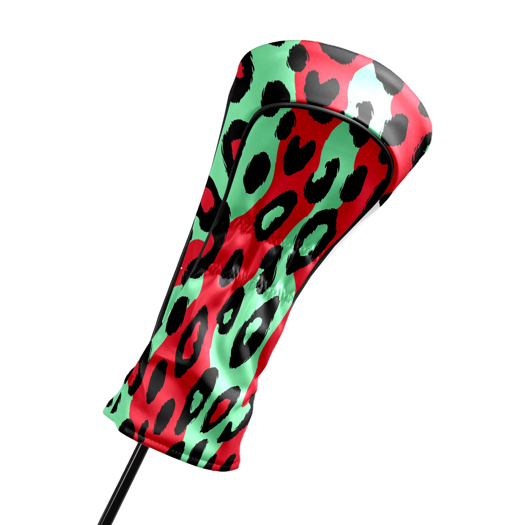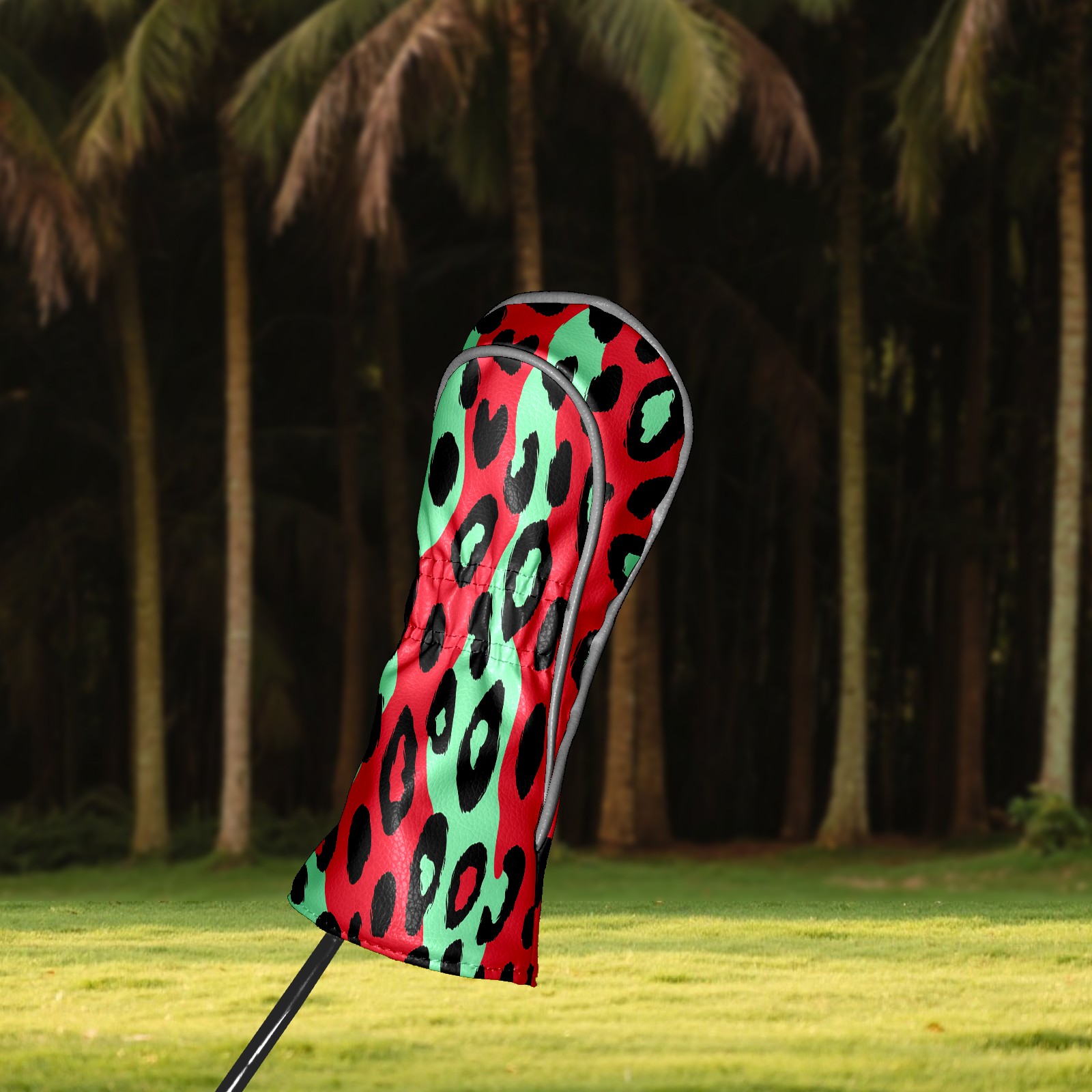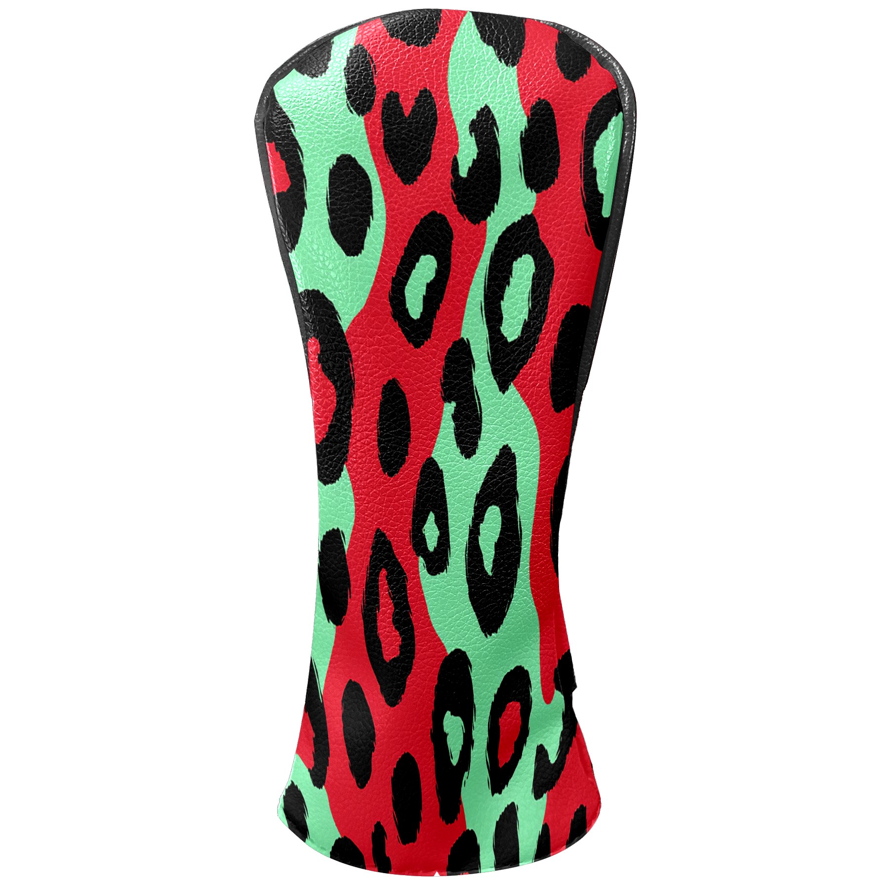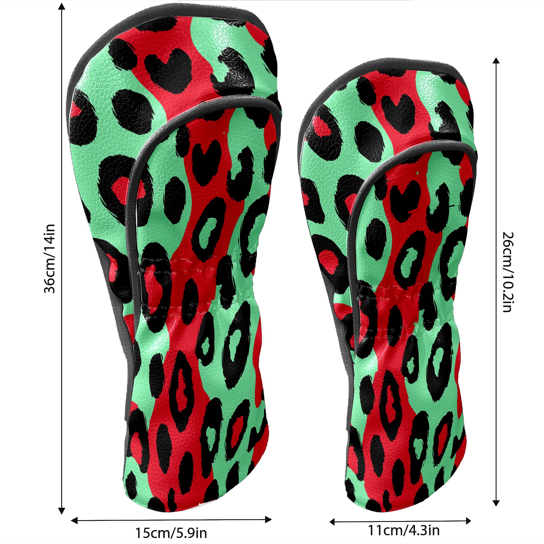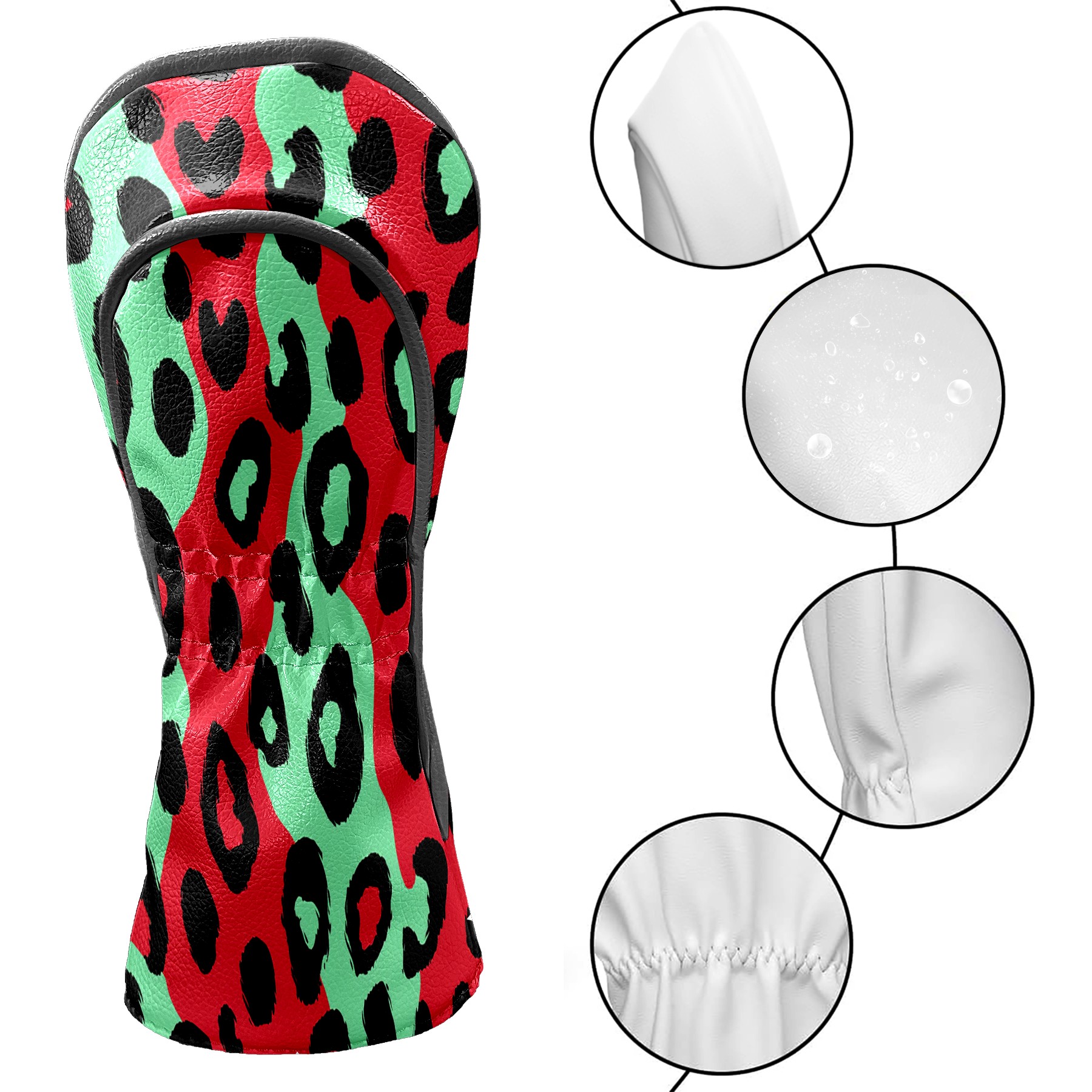 PU Leather Golf Club Head Covers, Fit Driver Head Cover/Fairway Wood Head Cover/Hybrid Club Head Cover, Men and Women Golfer Gift Green Leopard
