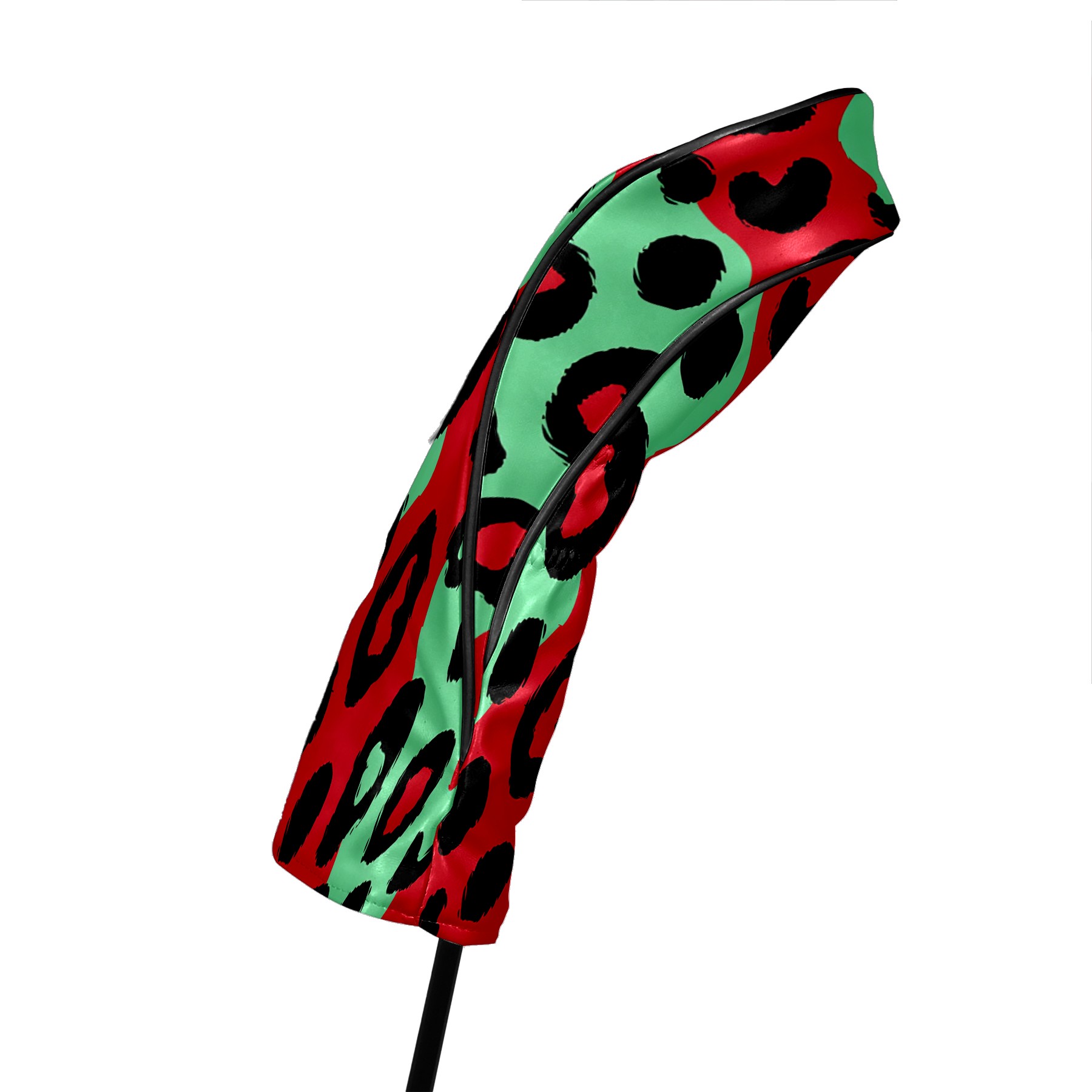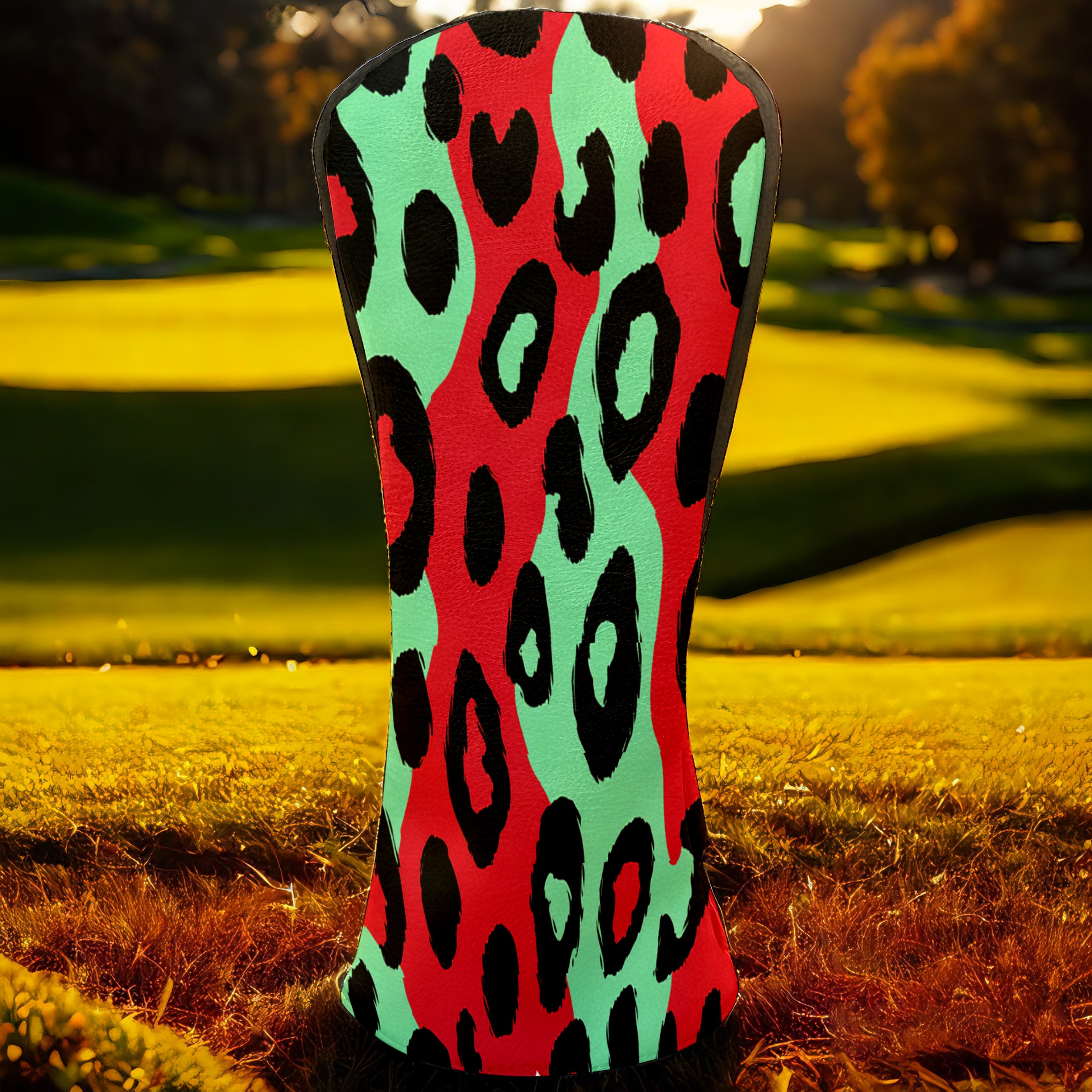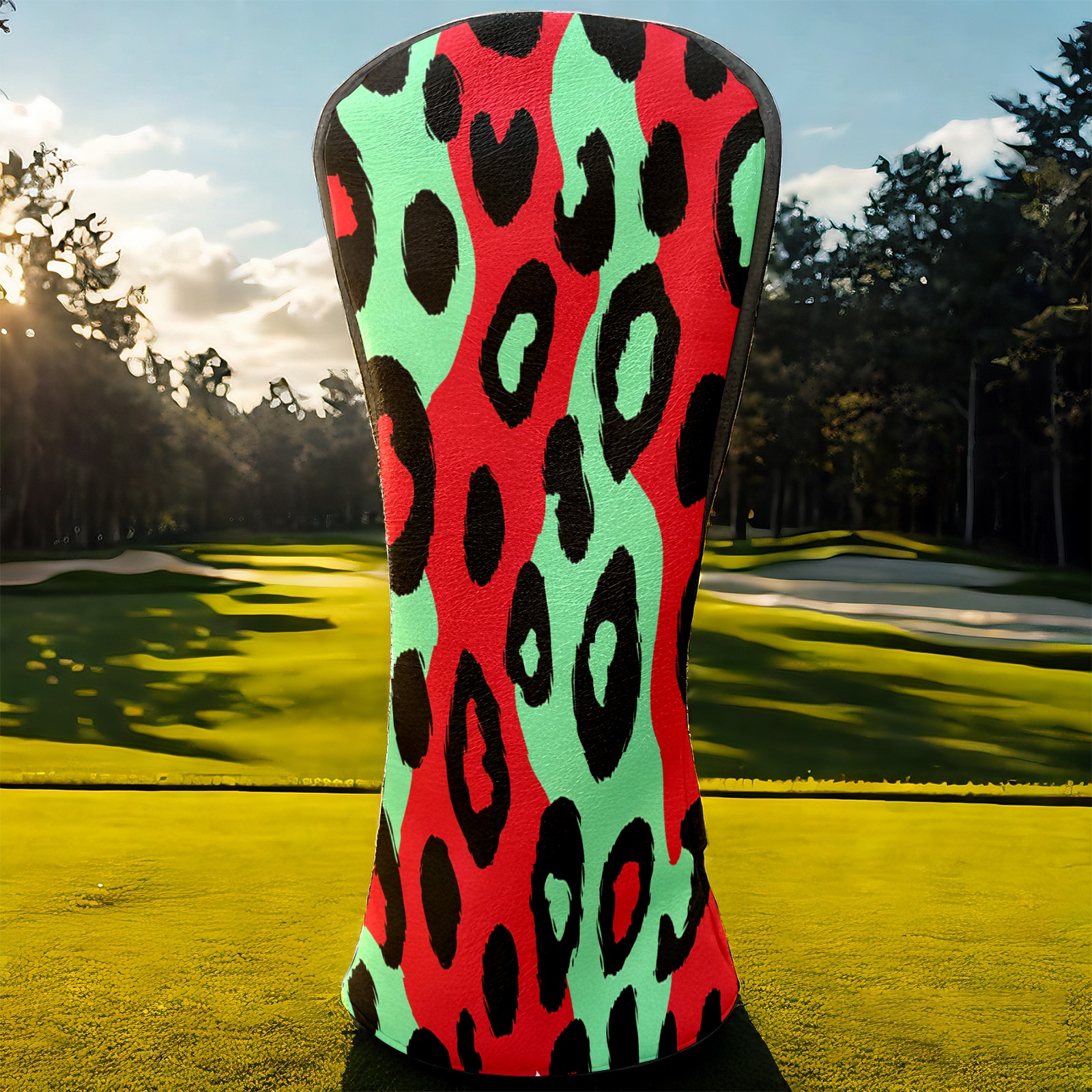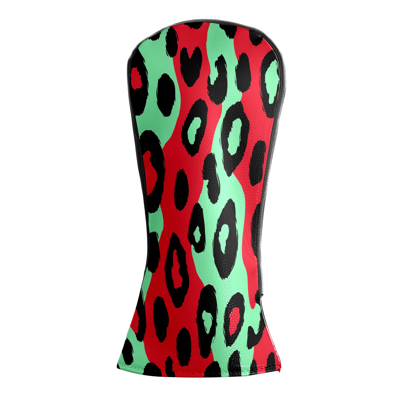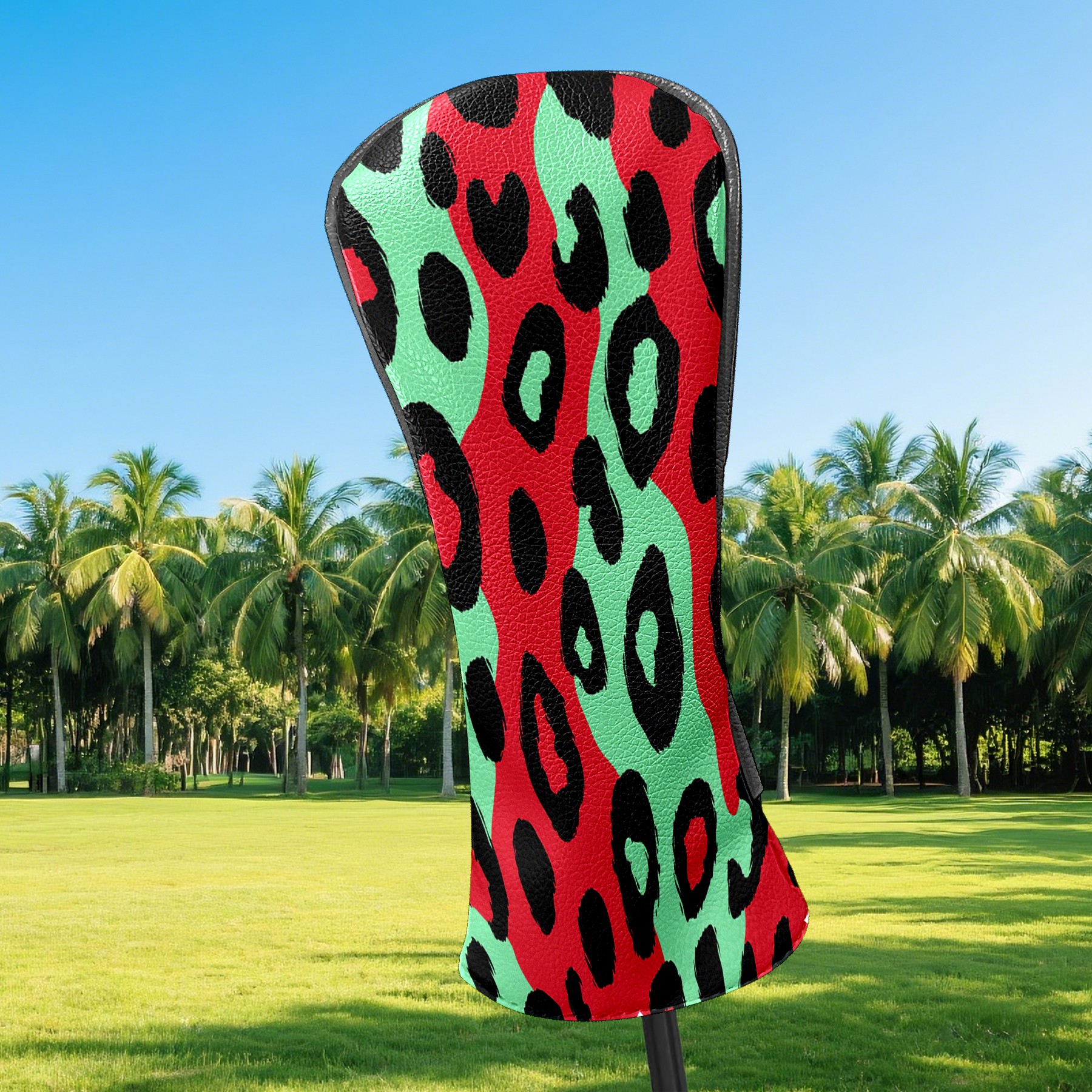 PU Leather Golf Club Head Covers, Fit Driver Head Cover/Fairway Wood Head Cover/Hybrid Club Head Cover, Men and Women Golfer Gift Green Leopard