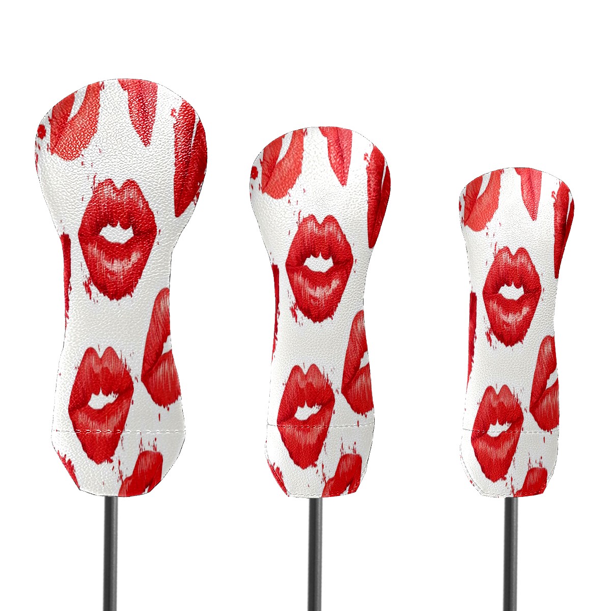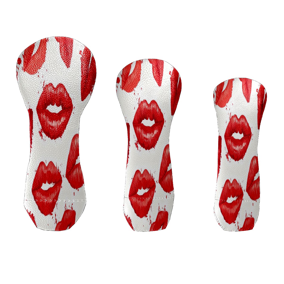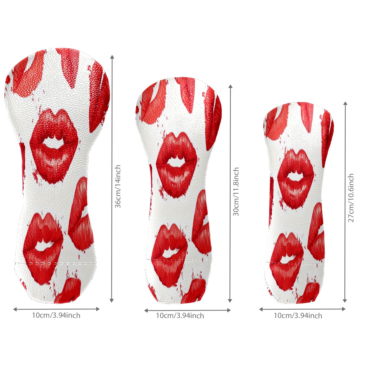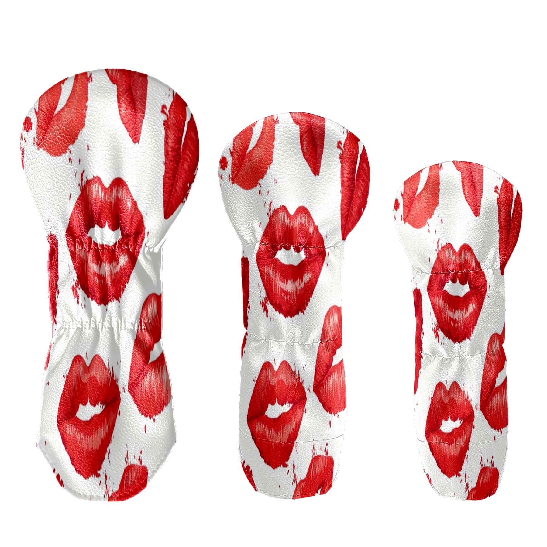 Golf Club Head Cover Waterproof Leather for Driver Golf Accessories Men Women Golf Gift for Golfers 1/3/5 Fairway Wood Cover Red Lips