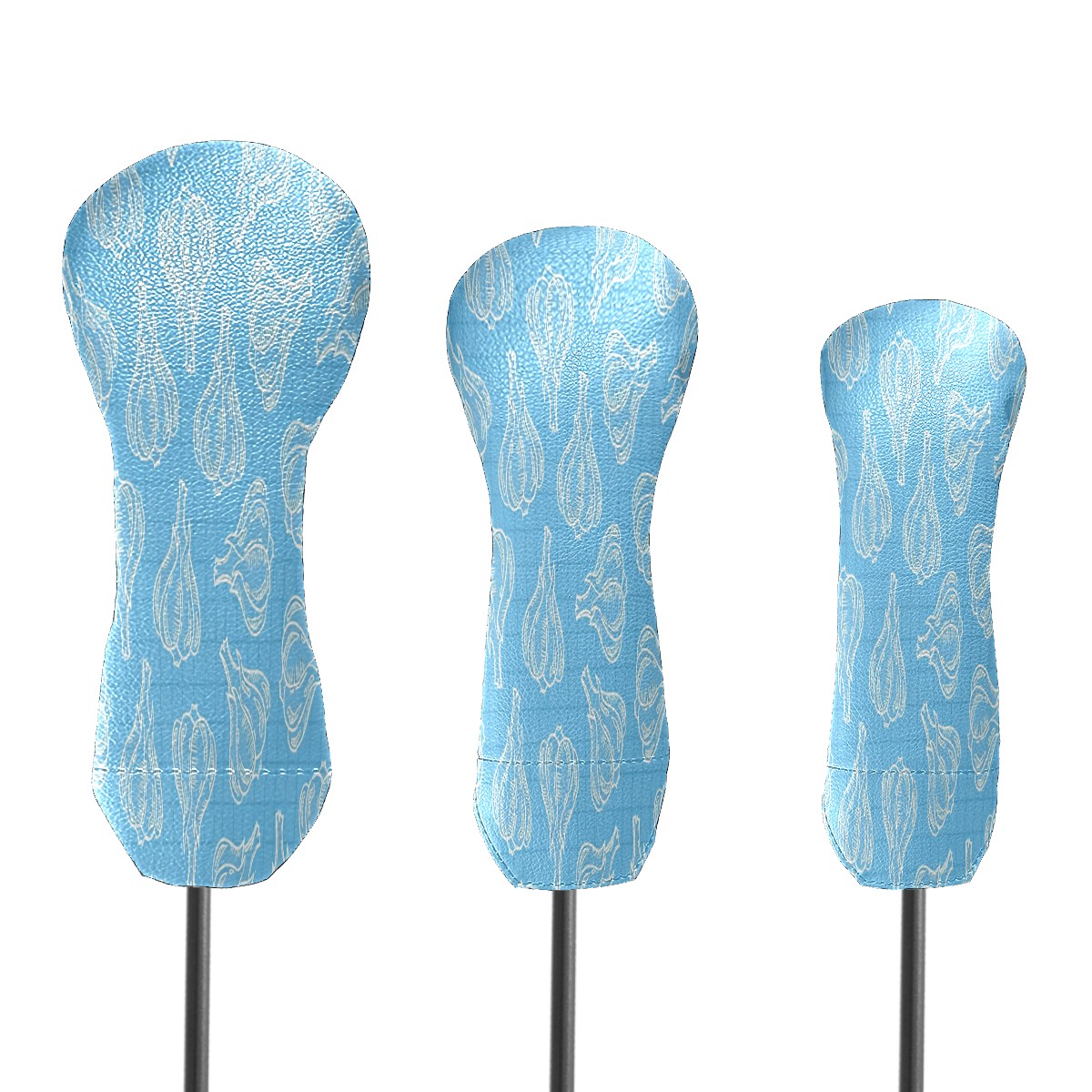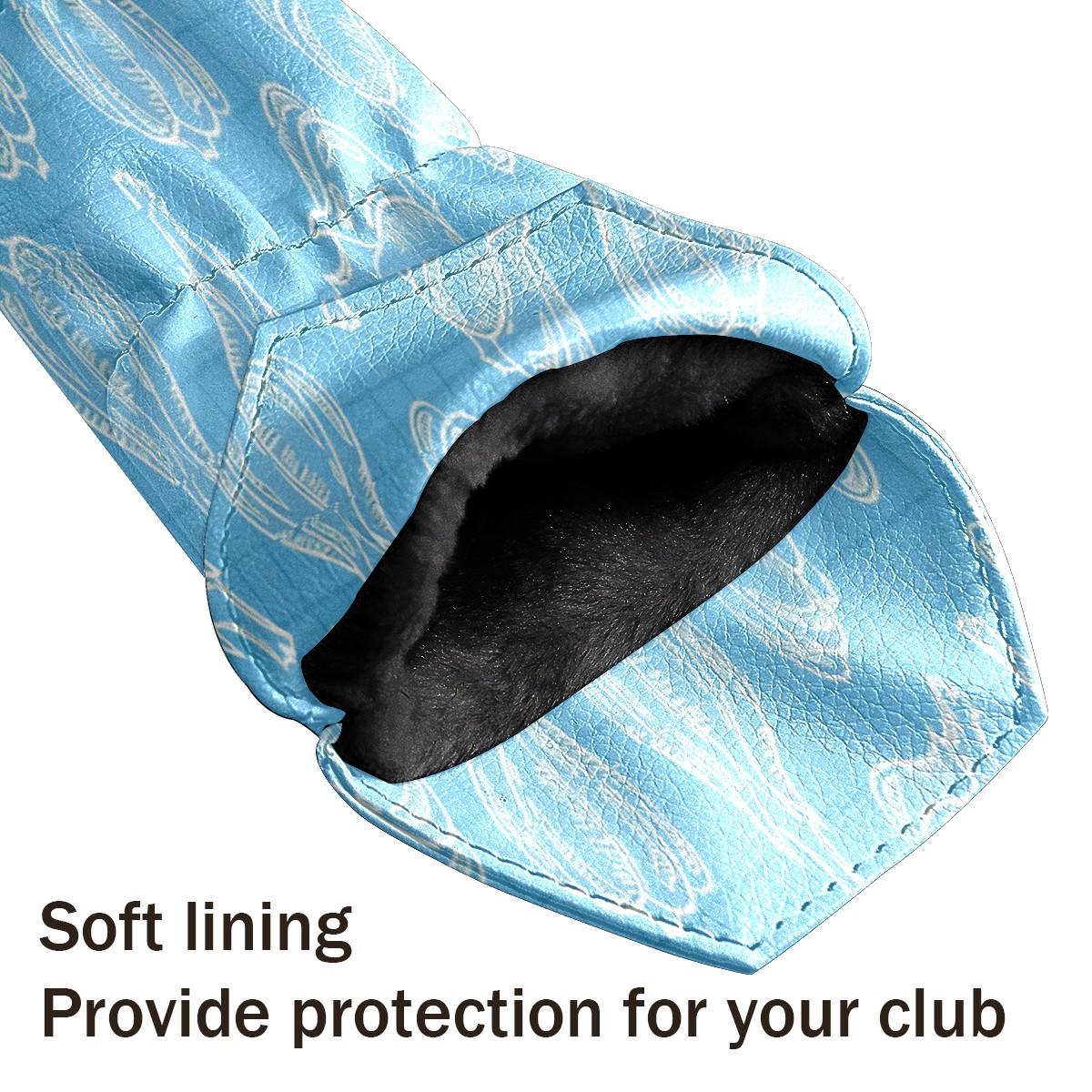 Golf Club Head Cover Waterproof Leather for Driver Golf Accessories Men Women Golf Gift for Golfers 1/3/5 Fairway Wood Cover Blue Garlic Pattern