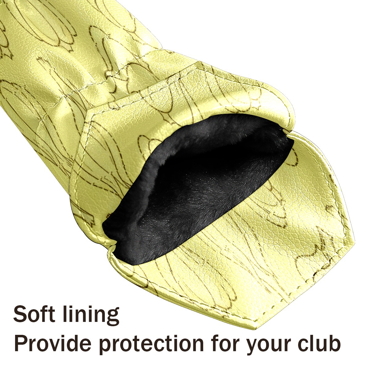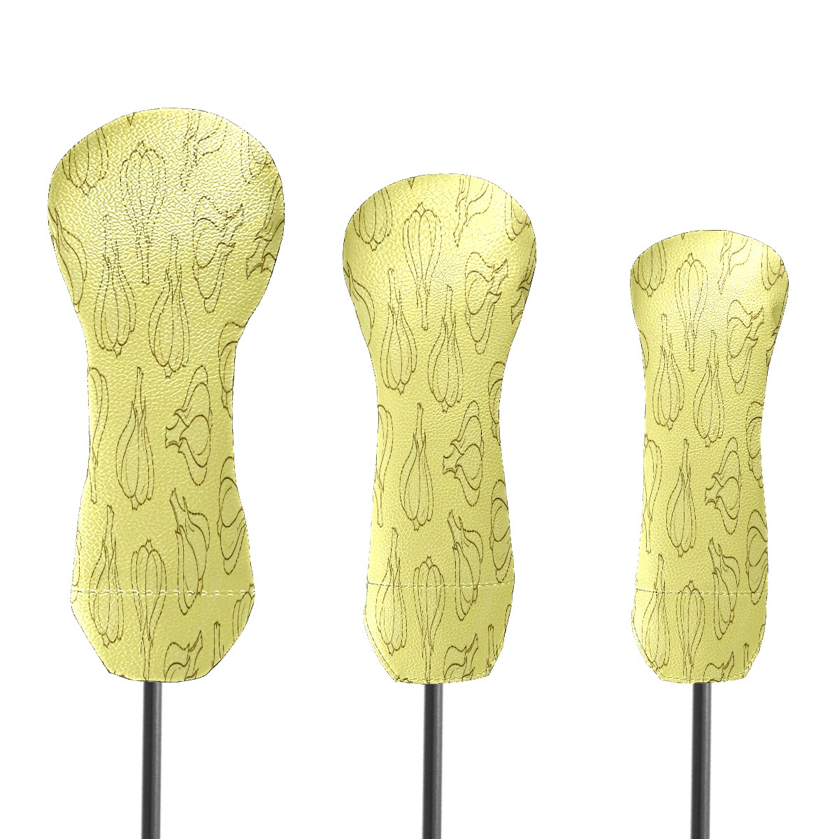 Golf Club Head Cover Waterproof Leather for Driver Golf Accessories Men Women Golf Gift for Golfers 1/3/5 Fairway Wood Cover Yellow Garlic Pattern