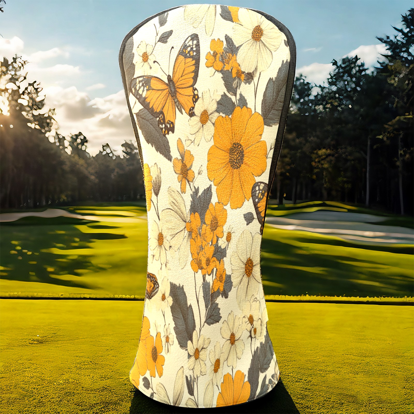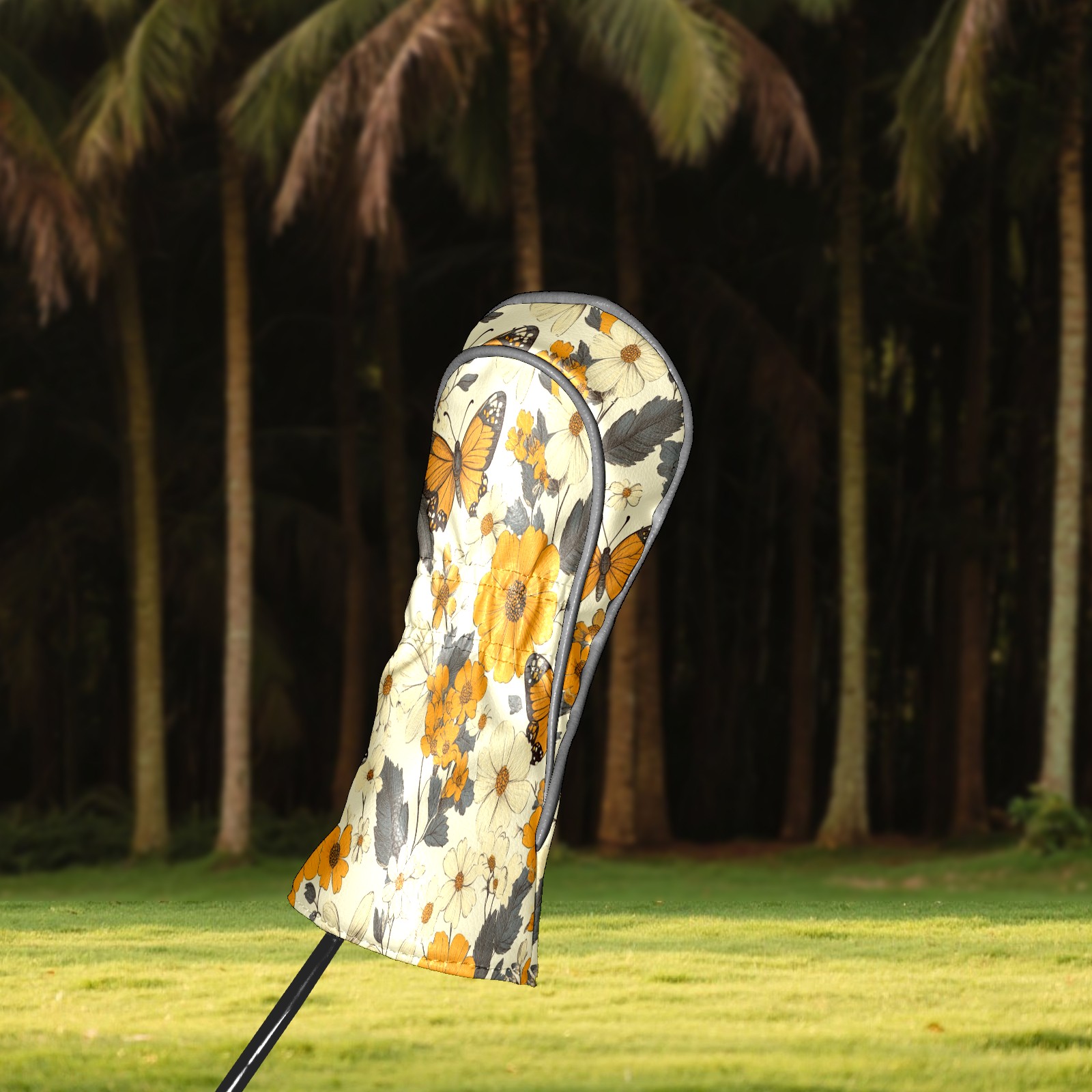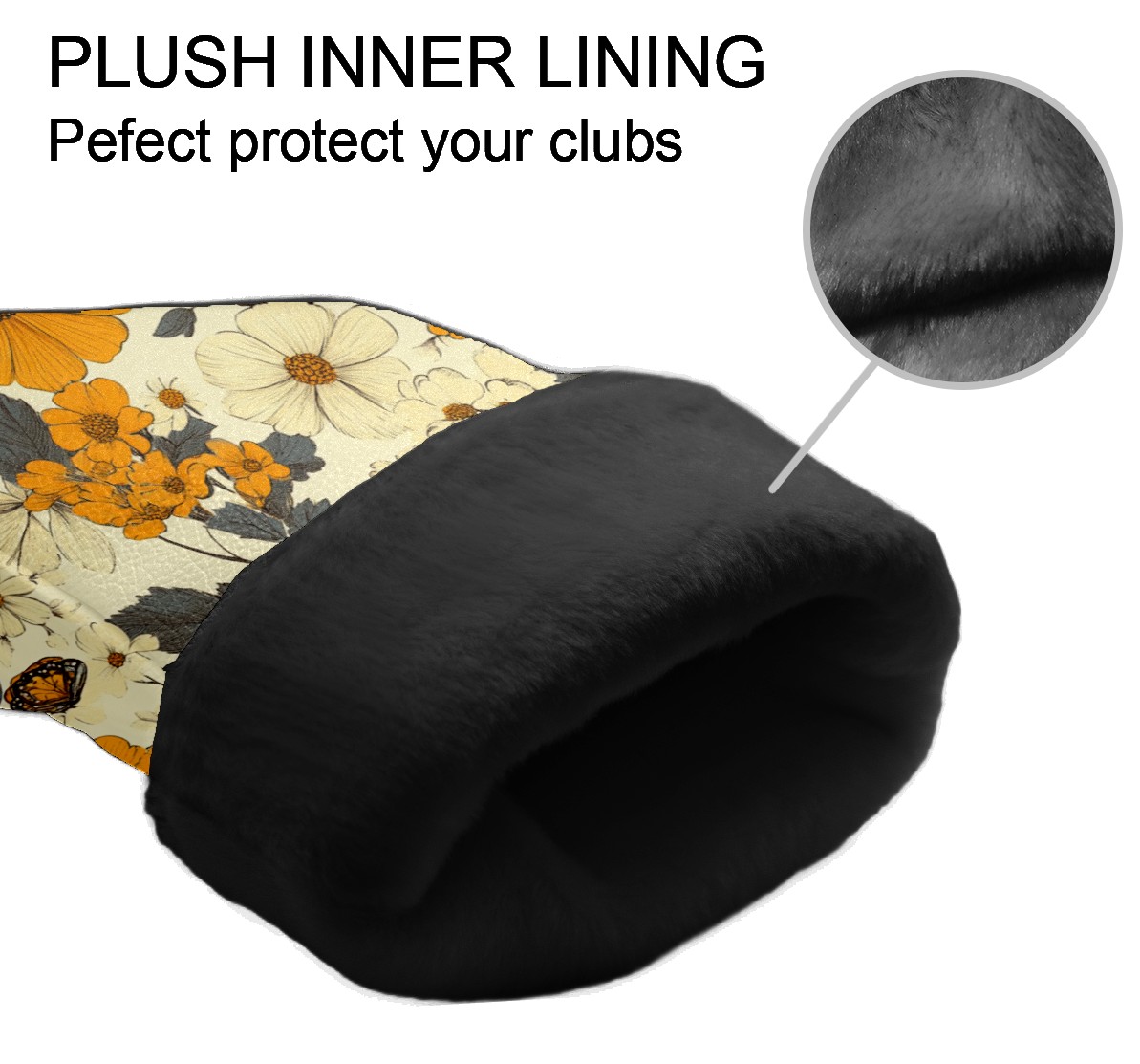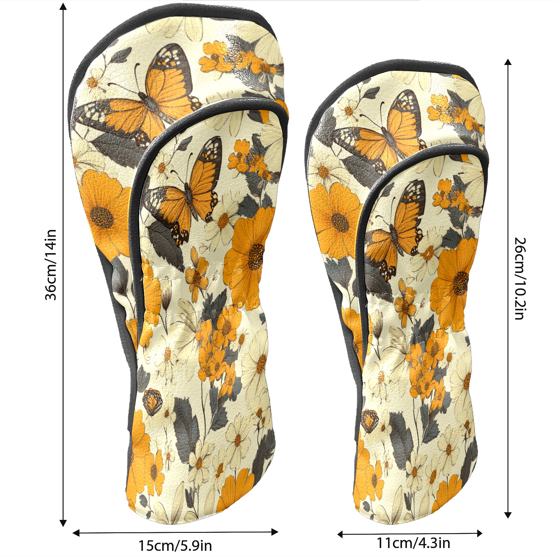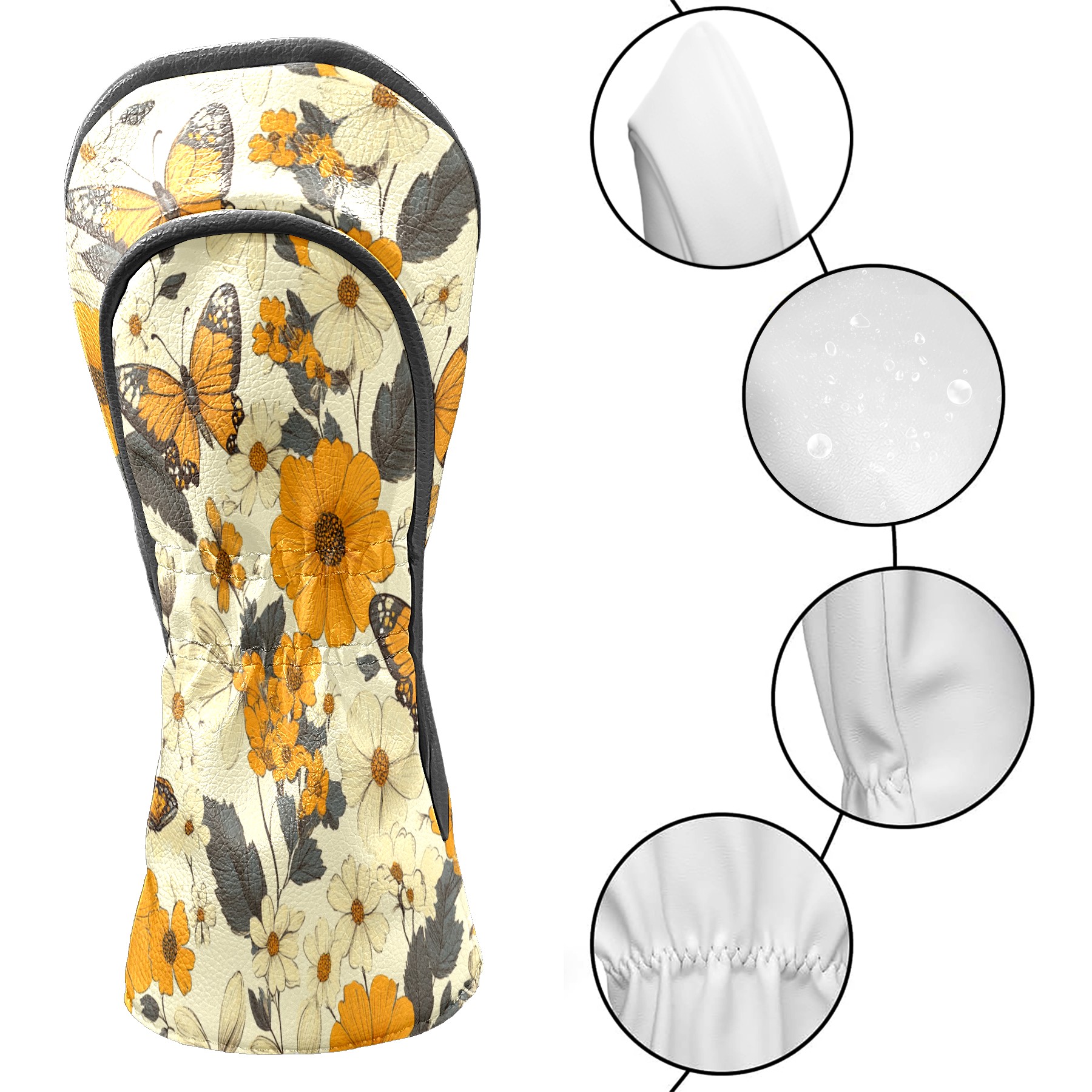 PU Leather Golf Club Head Covers, Fit Driver Head Cover/Fairway Wood Head Cover/Hybrid Club Head Cover, Men and Women Golfer Gift Butterflies Flowers