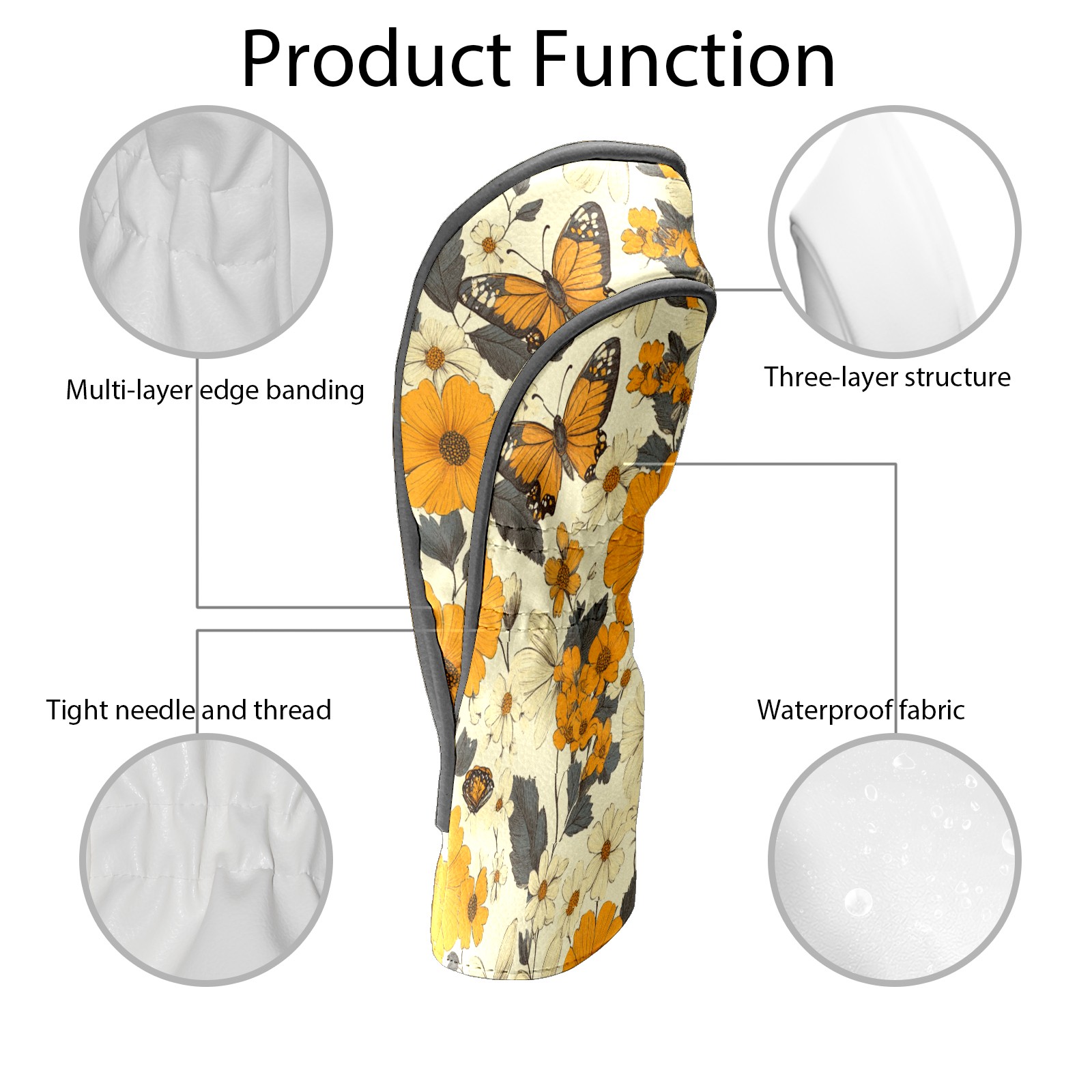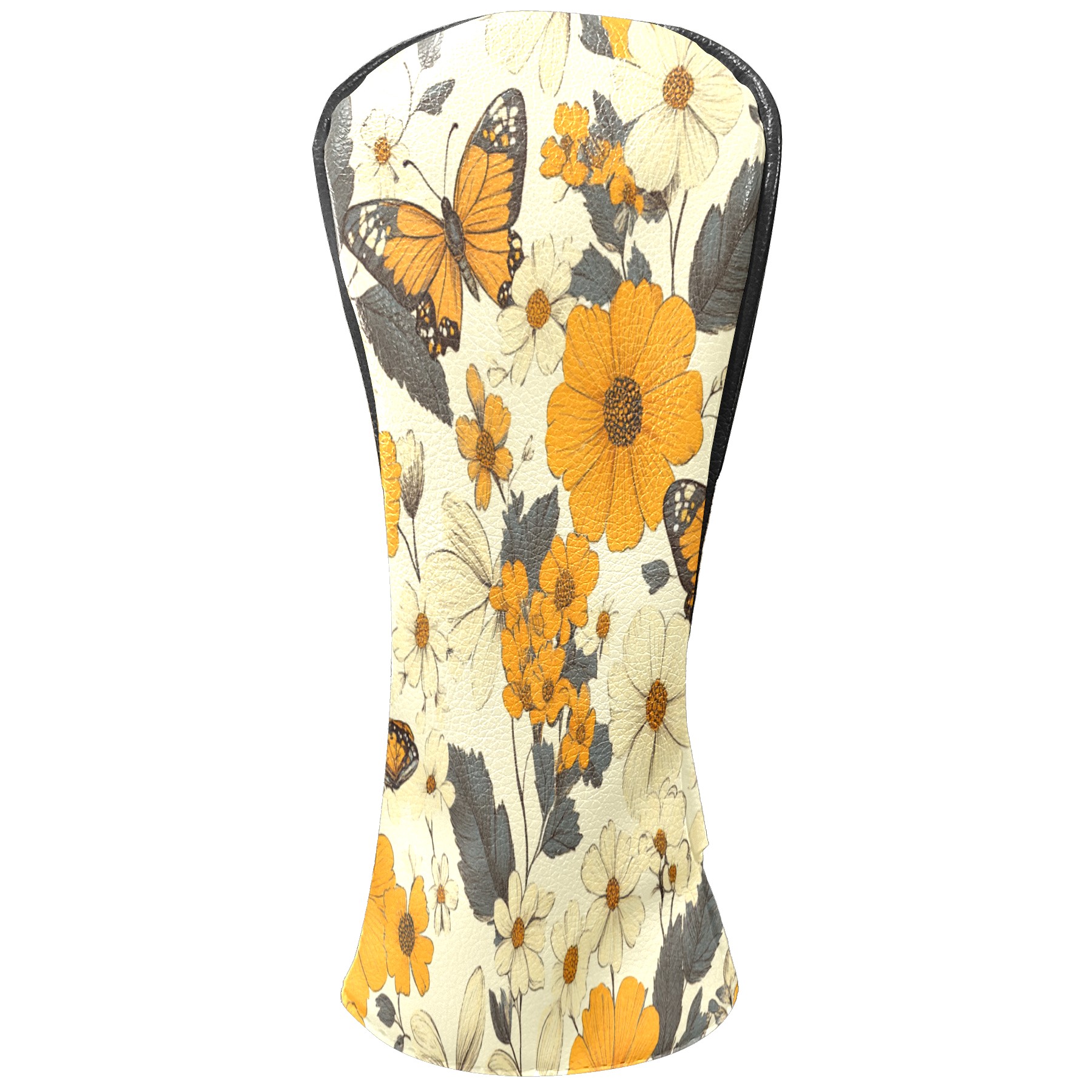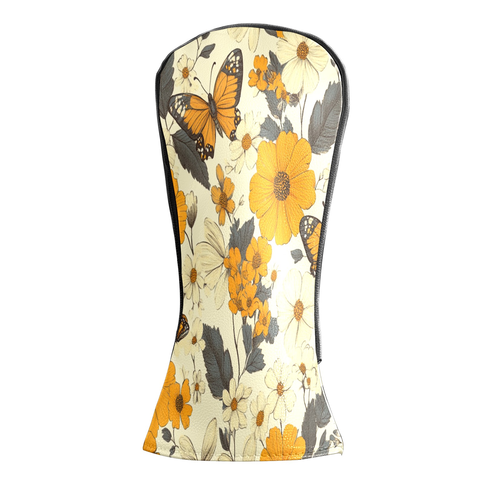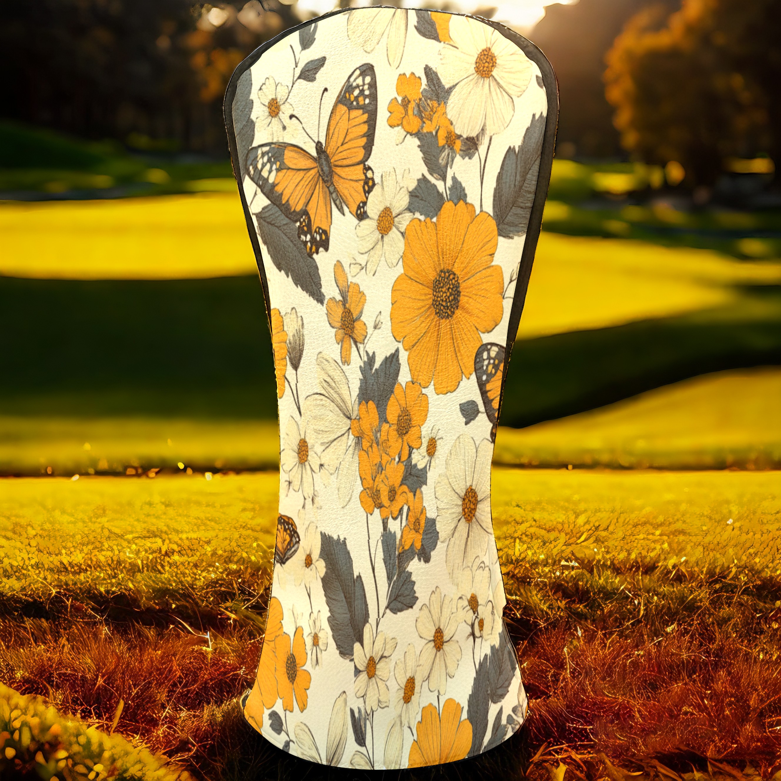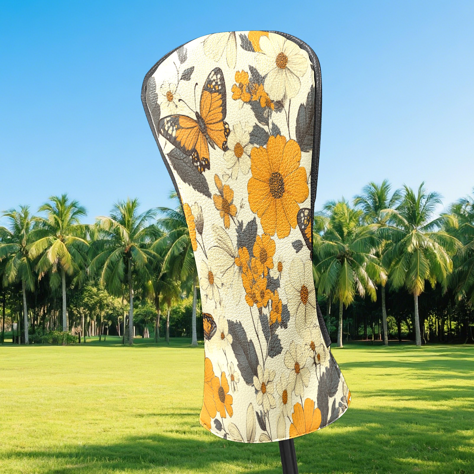 PU Leather Golf Club Head Covers, Fit Driver Head Cover/Fairway Wood Head Cover/Hybrid Club Head Cover, Men and Women Golfer Gift Butterflies Flowers