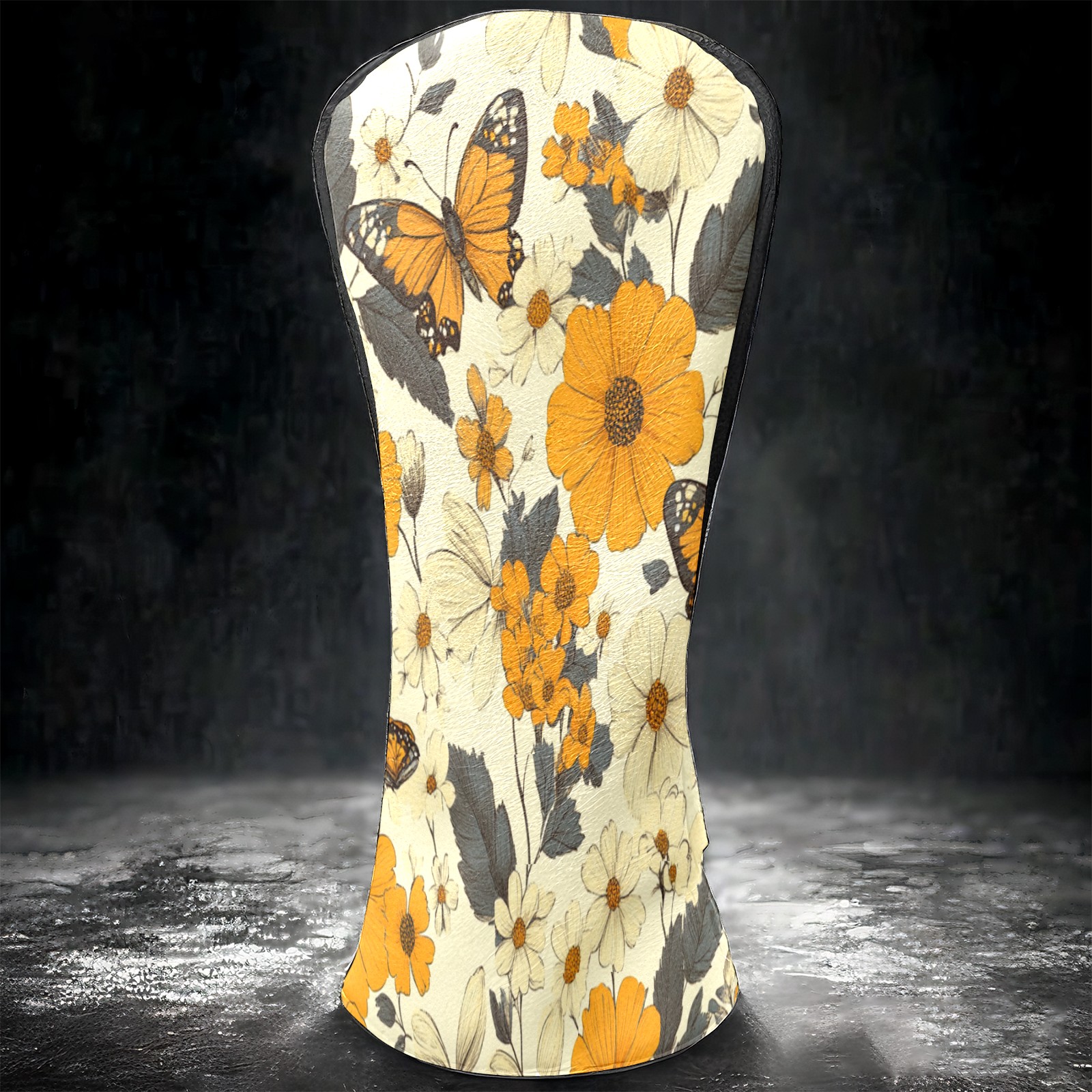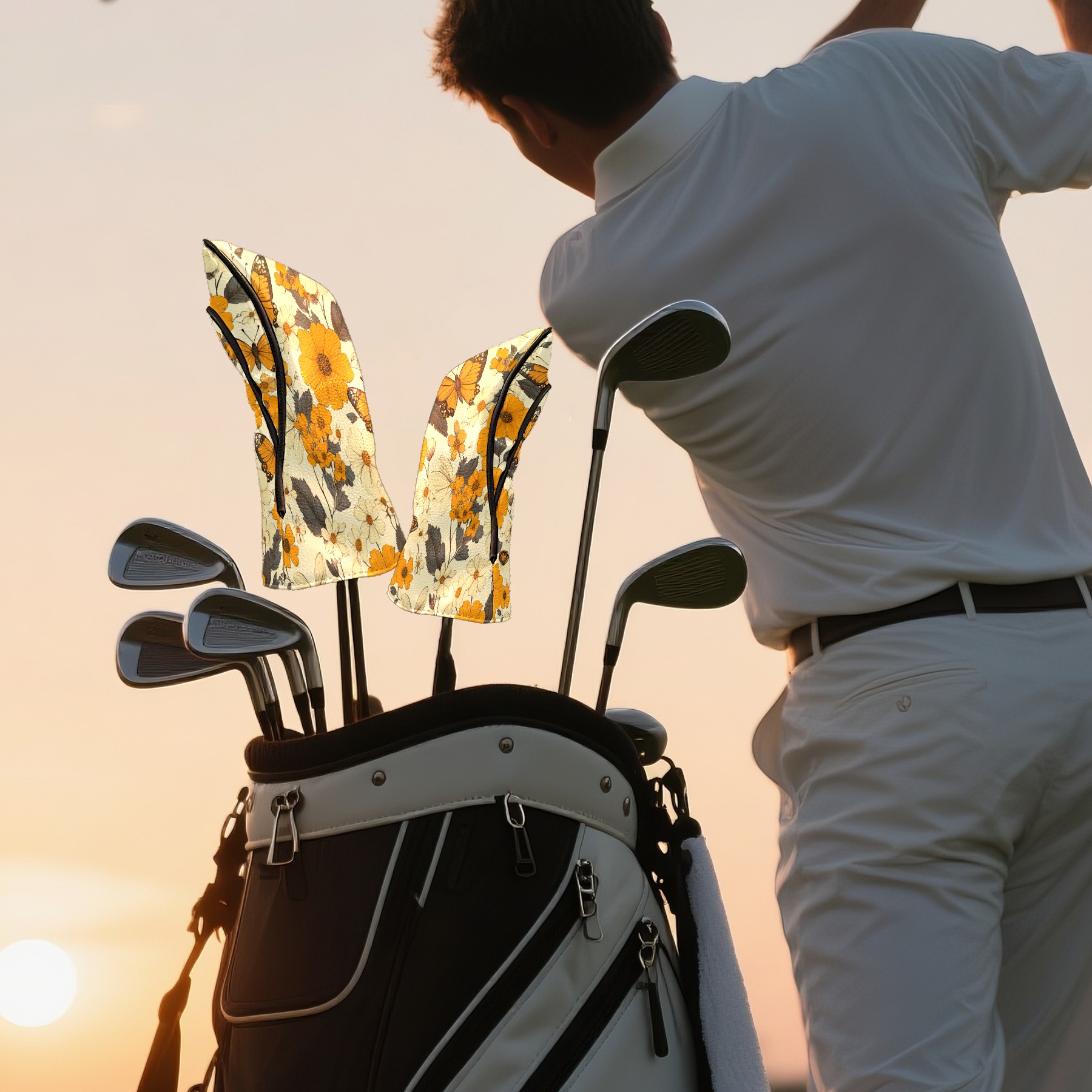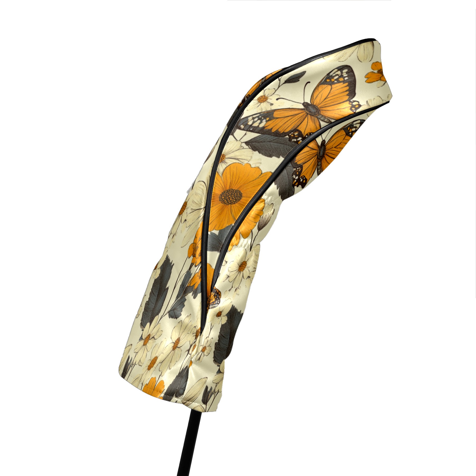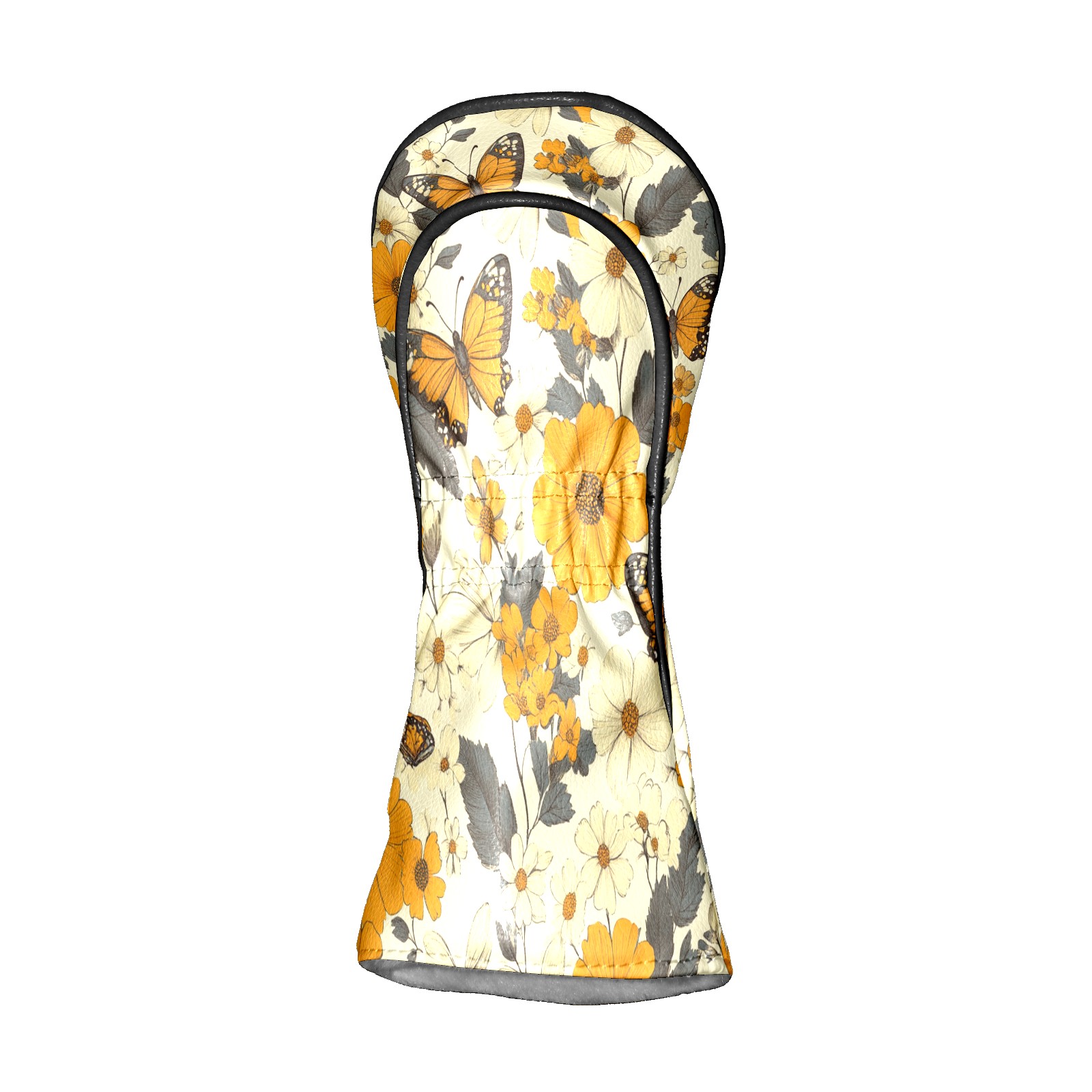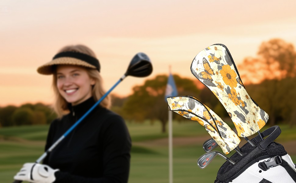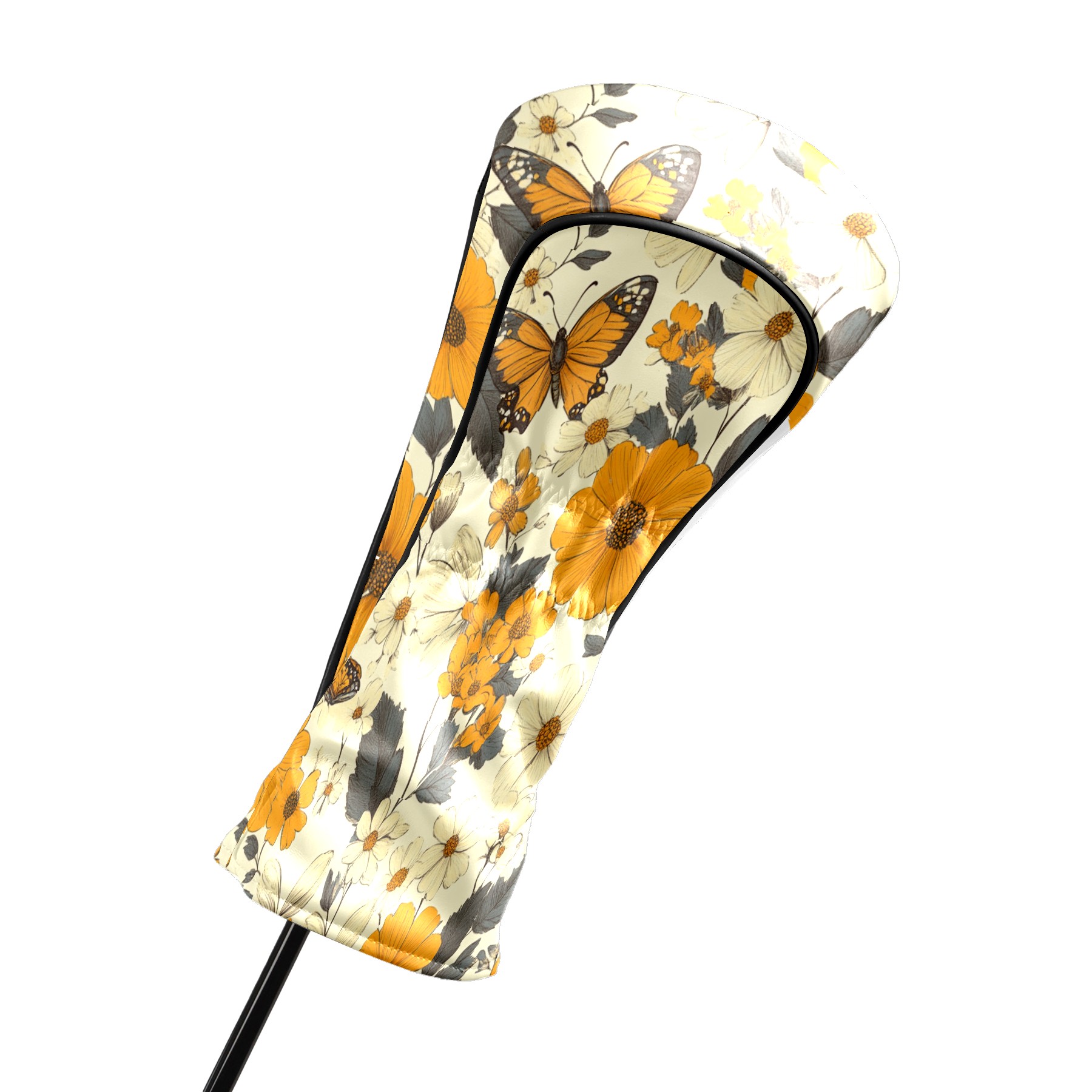 PU Leather Golf Club Head Covers, Fit Driver Head Cover/Fairway Wood Head Cover/Hybrid Club Head Cover, Men and Women Golfer Gift Butterflies Flowers