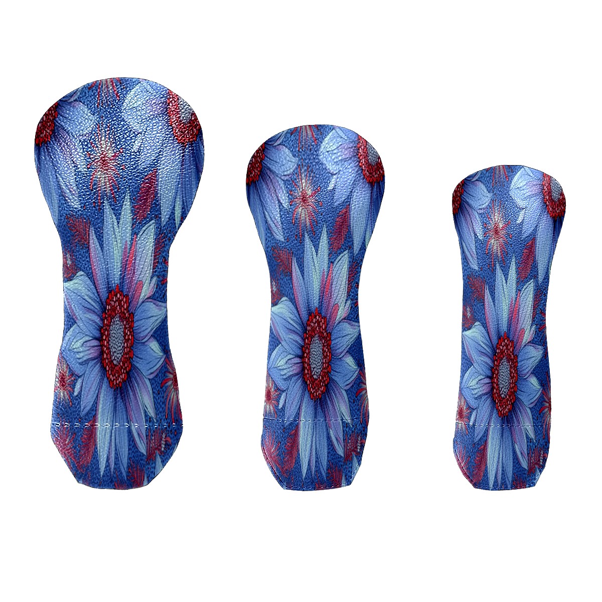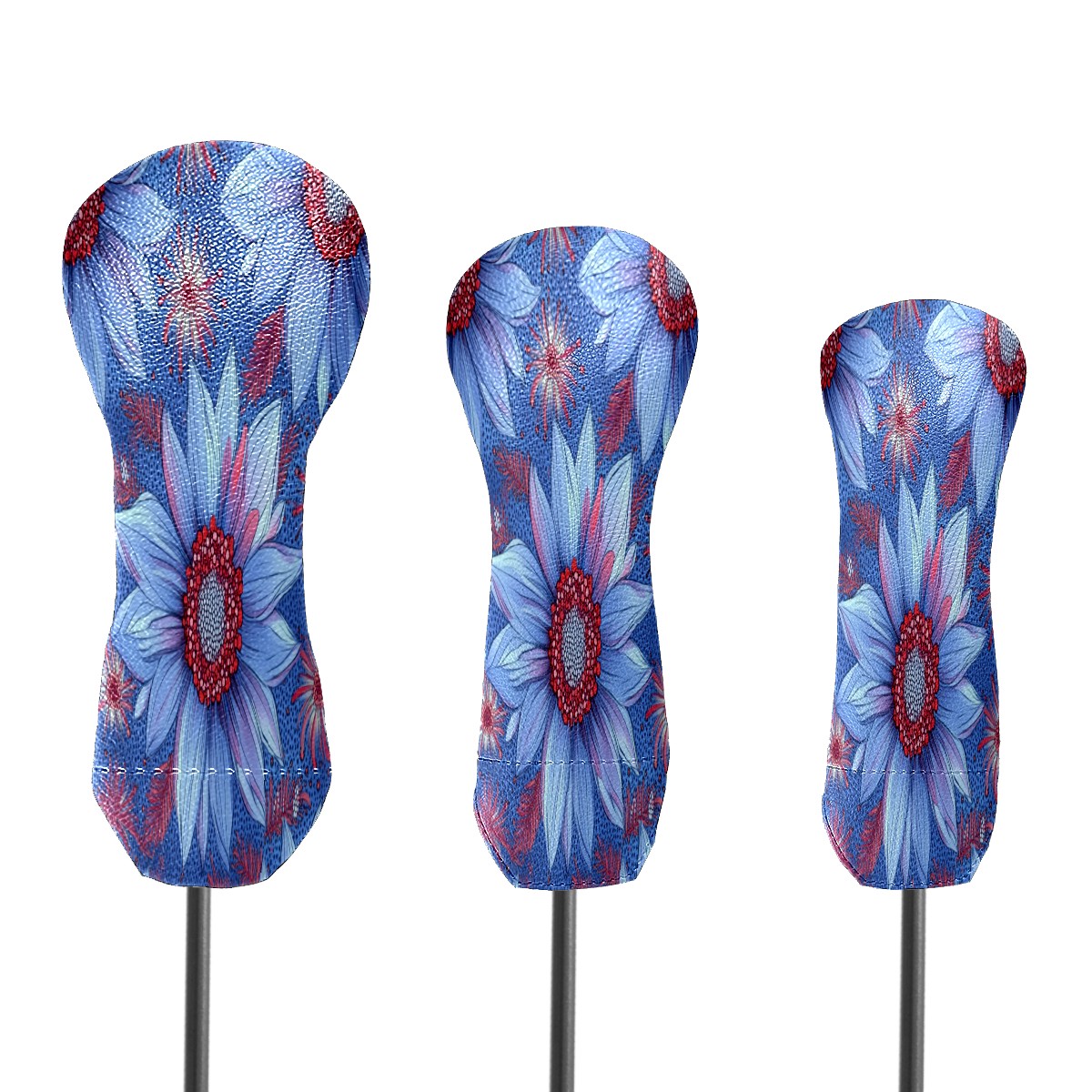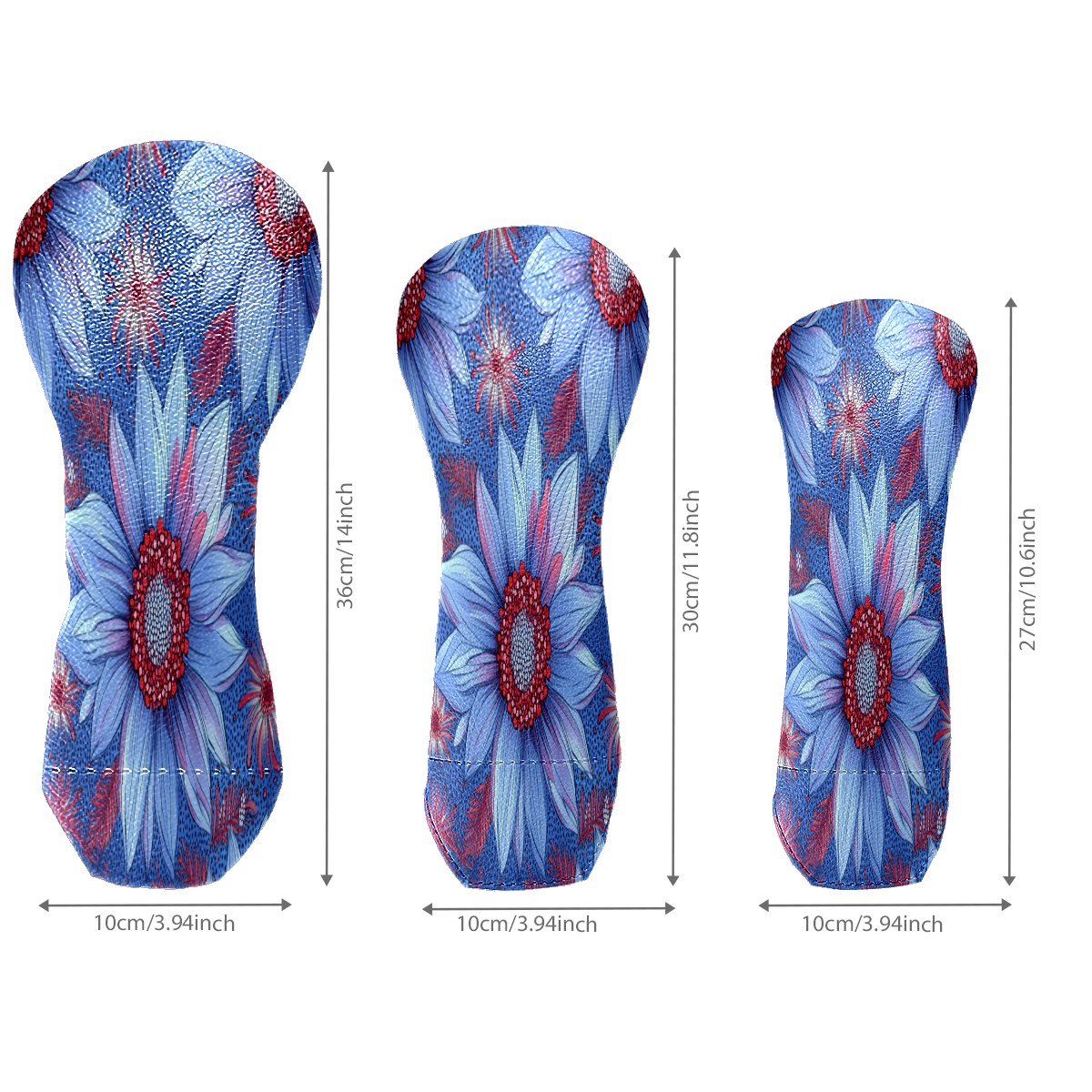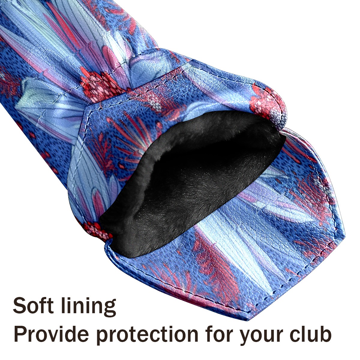 Golf Club Head Cover Waterproof Leather for Driver Golf Accessories Men Women Golf Gift for Golfers 1/3/5 Fairway Wood Cover Blue Floral Pattern