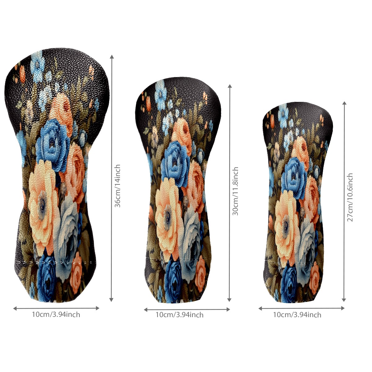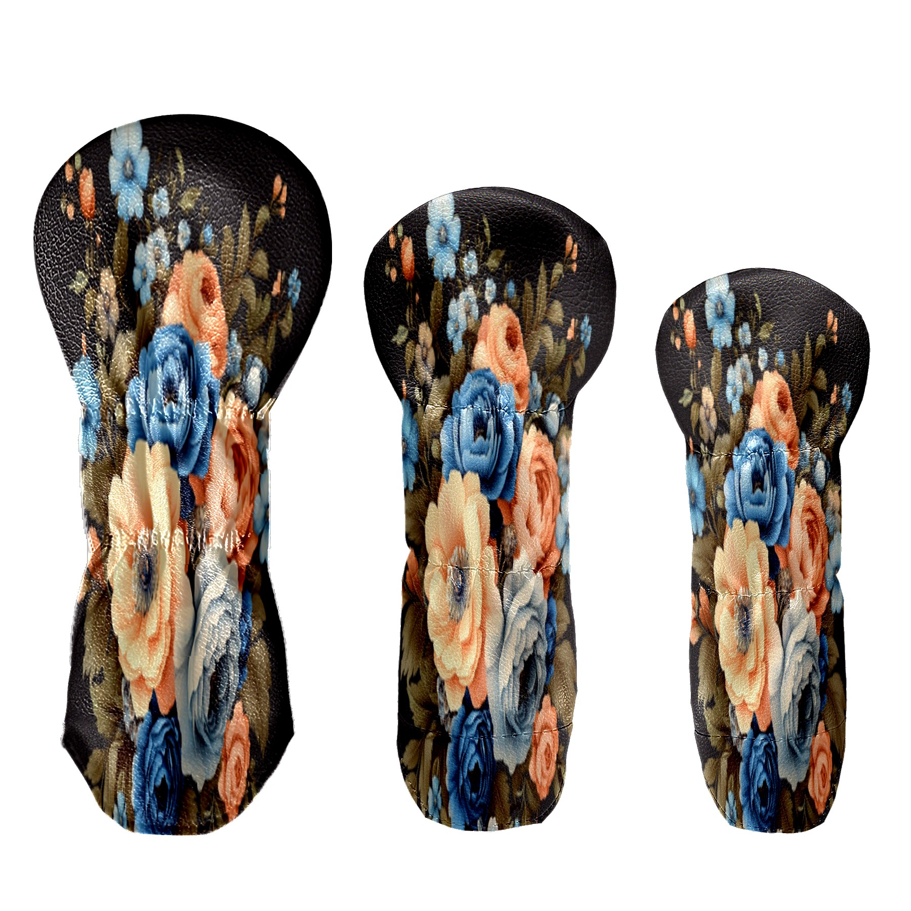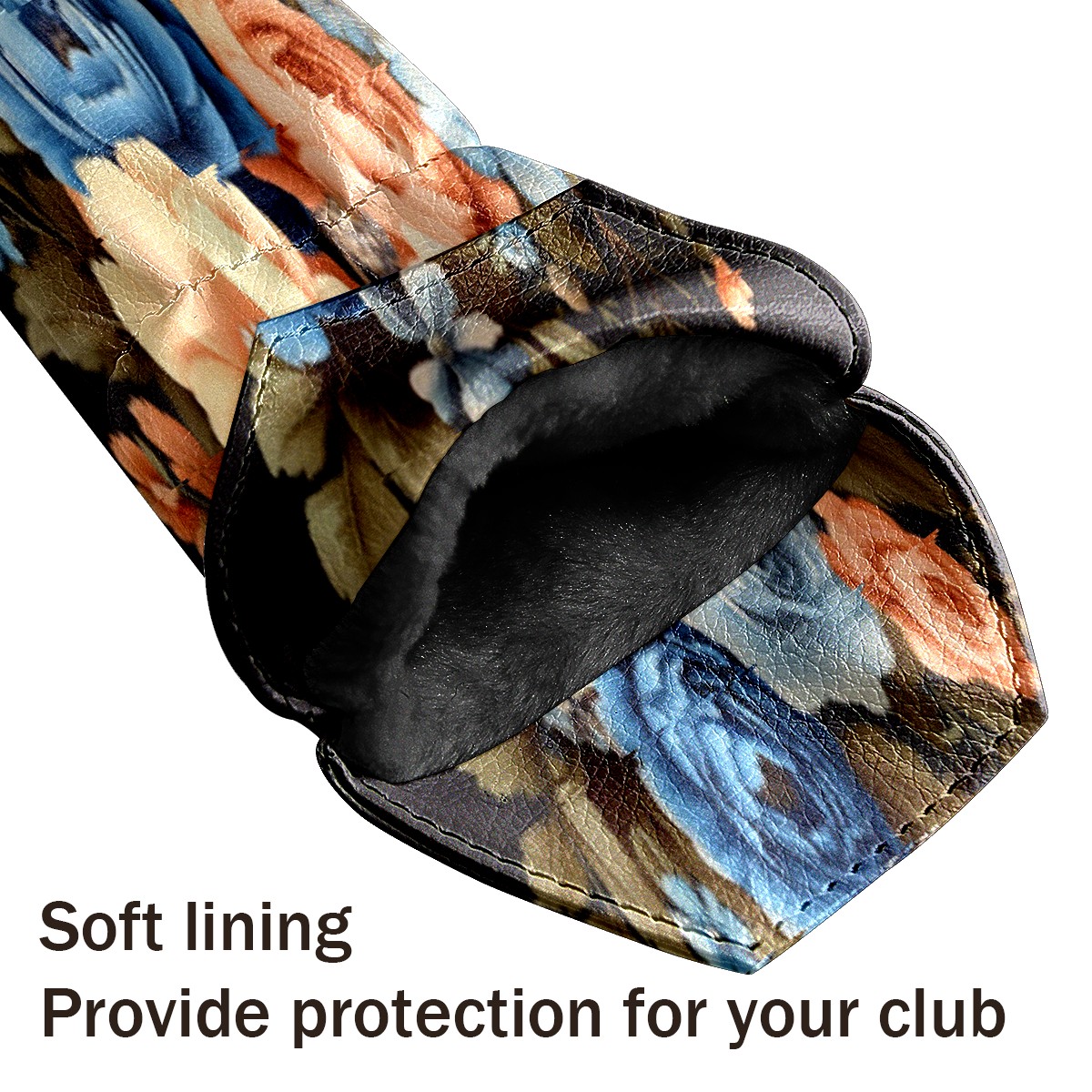 Golf Club Head Cover Waterproof Leather for Driver Golf Accessories Men Women Golf Gift for Golfers 1/3/5 Fairway Wood Cover Orange Floral Pattern