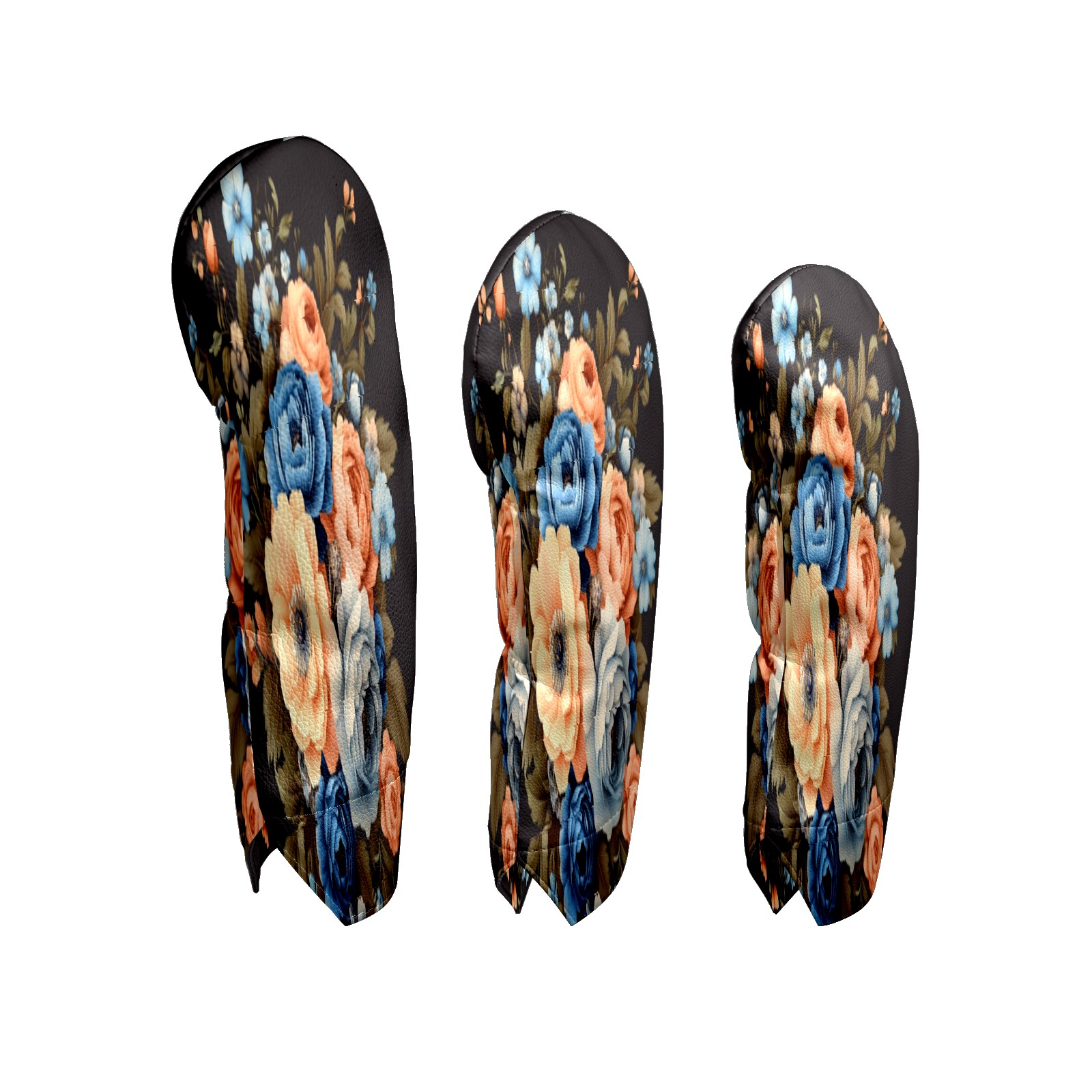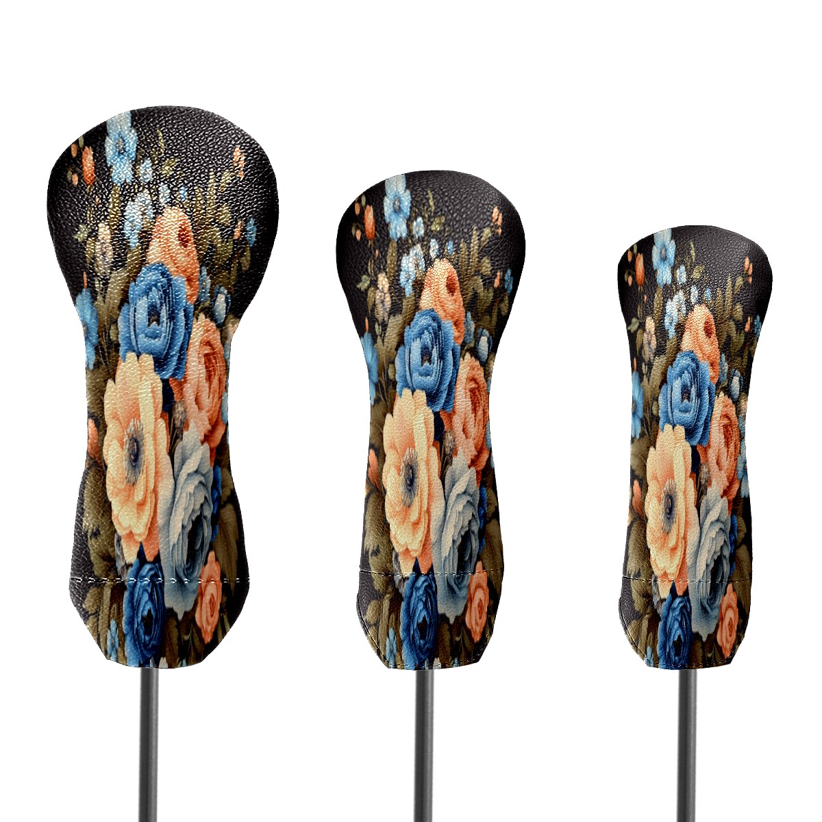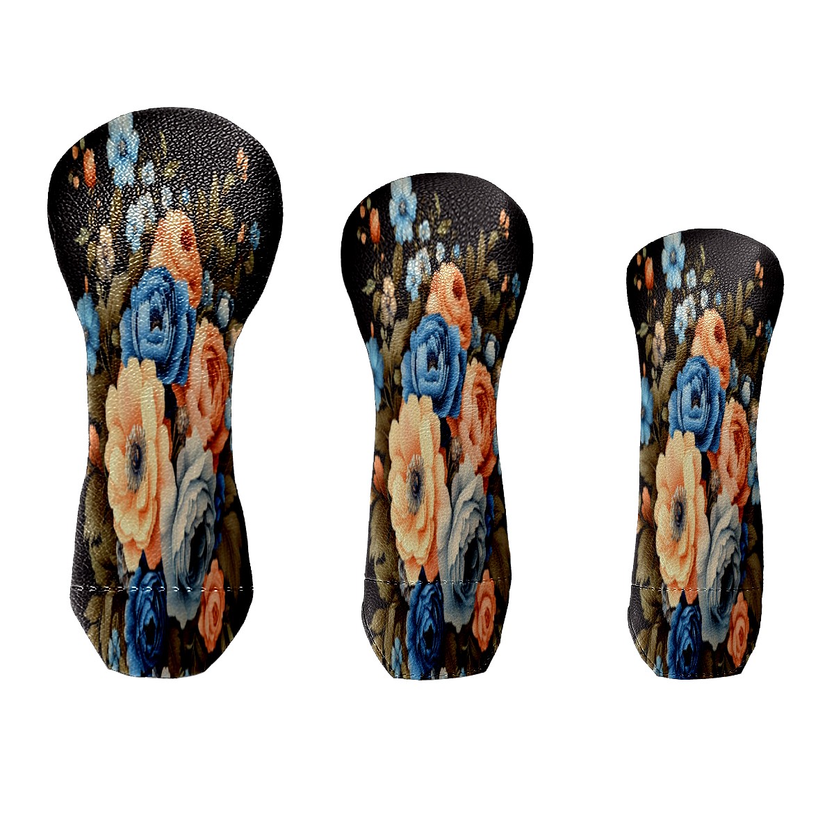 Golf Club Head Cover Waterproof Leather for Driver Golf Accessories Men Women Golf Gift for Golfers 1/3/5 Fairway Wood Cover Orange Floral Pattern