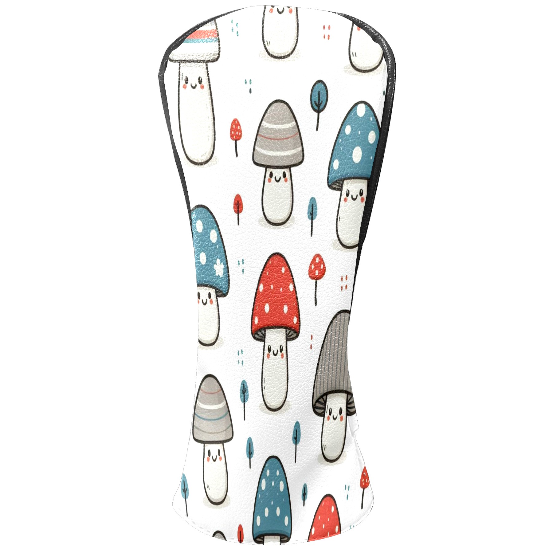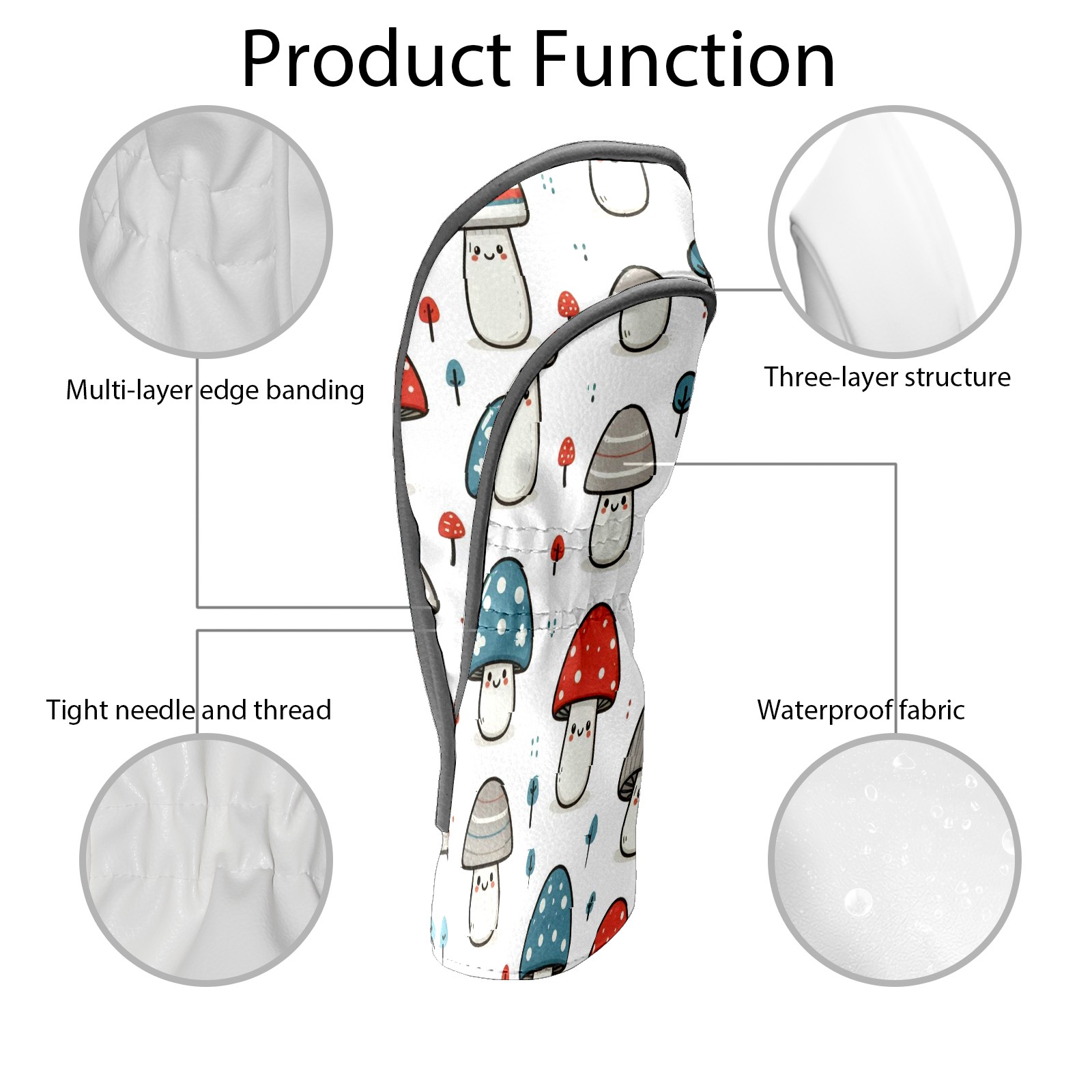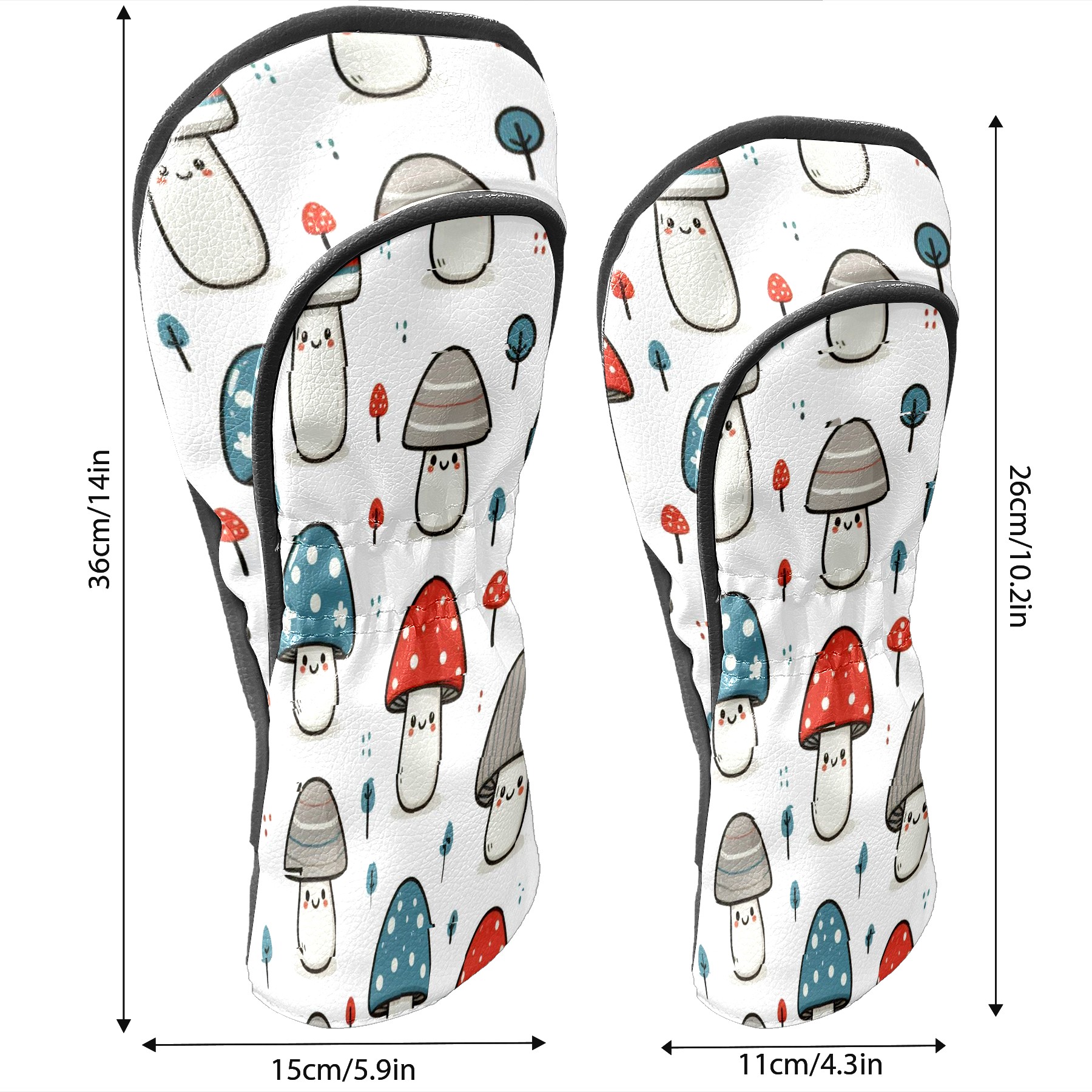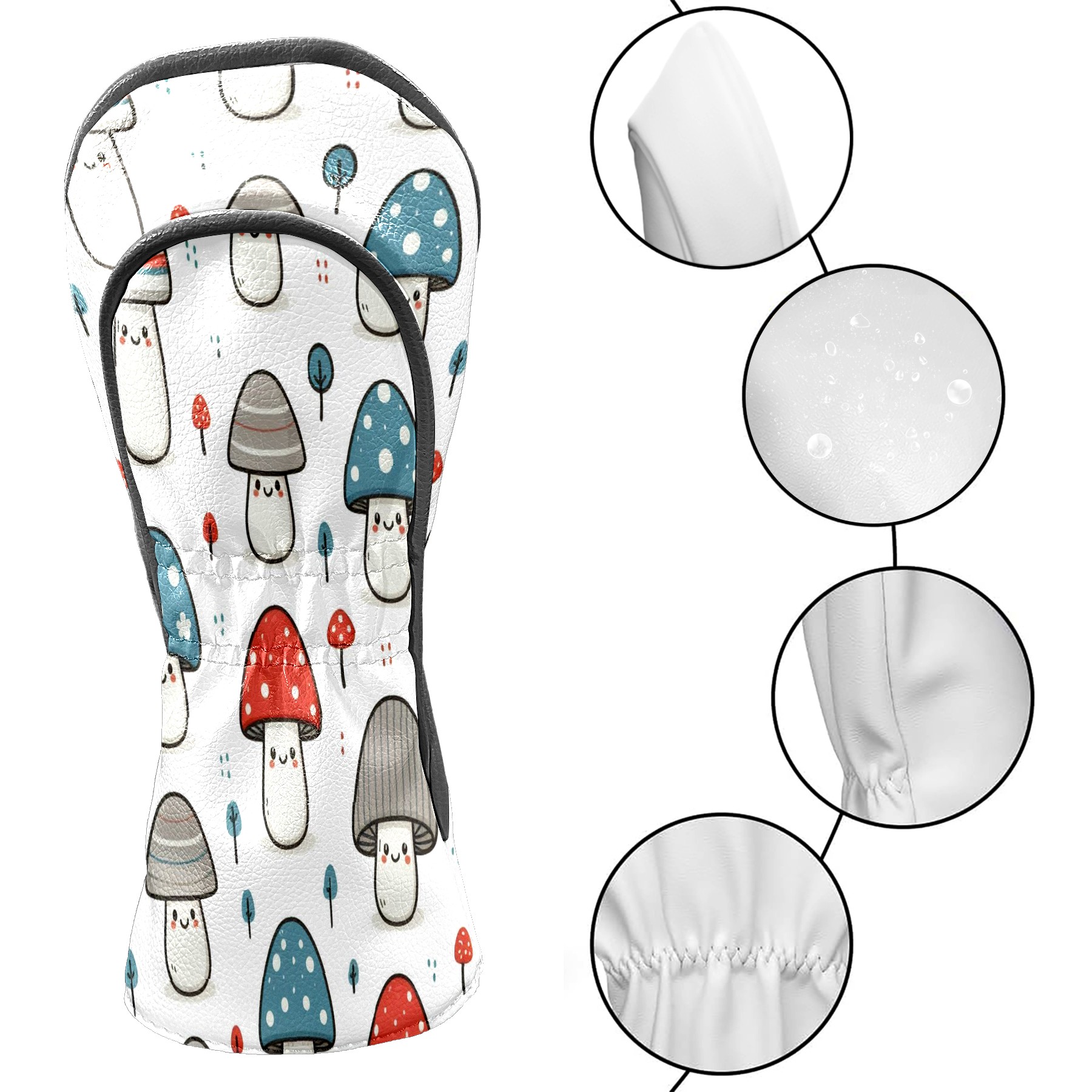 PU Leather Golf Club Head Covers, Fit Driver Head Cover/Fairway Wood Head Cover/Hybrid Club Head Cover, Men and Women Golfer Gift White Mushrooms