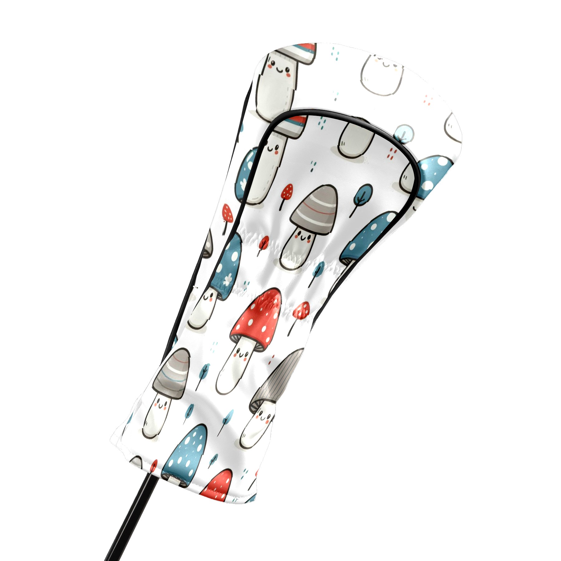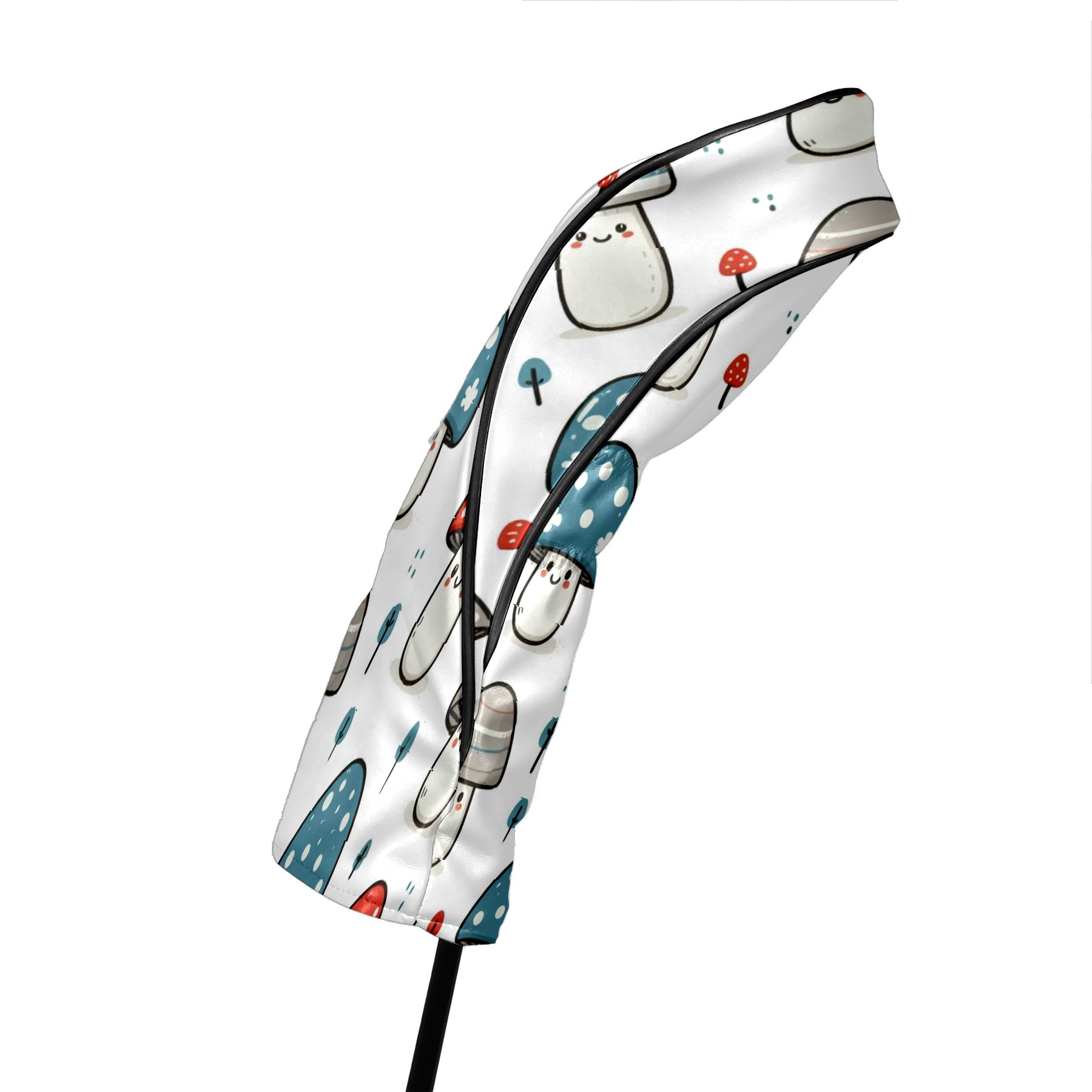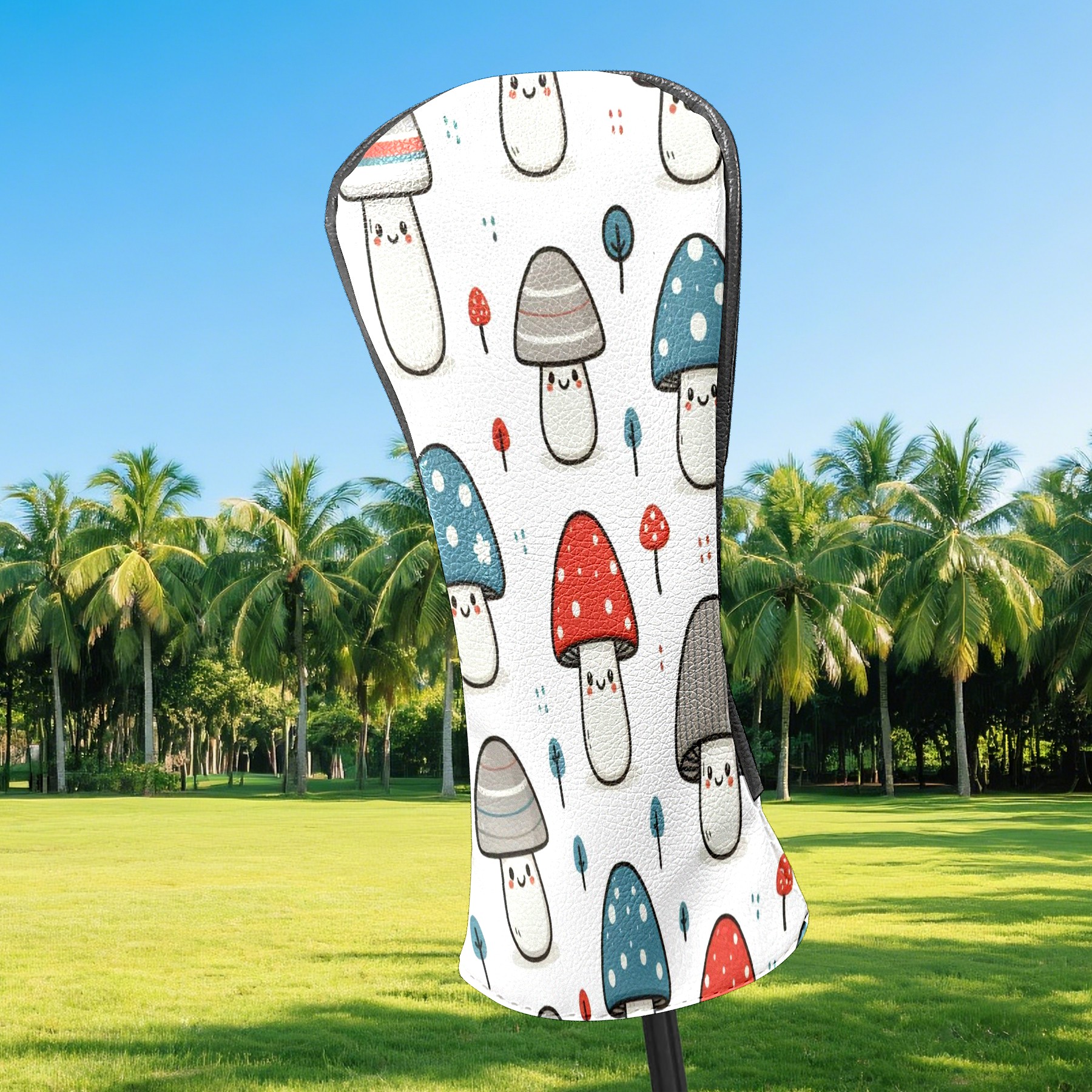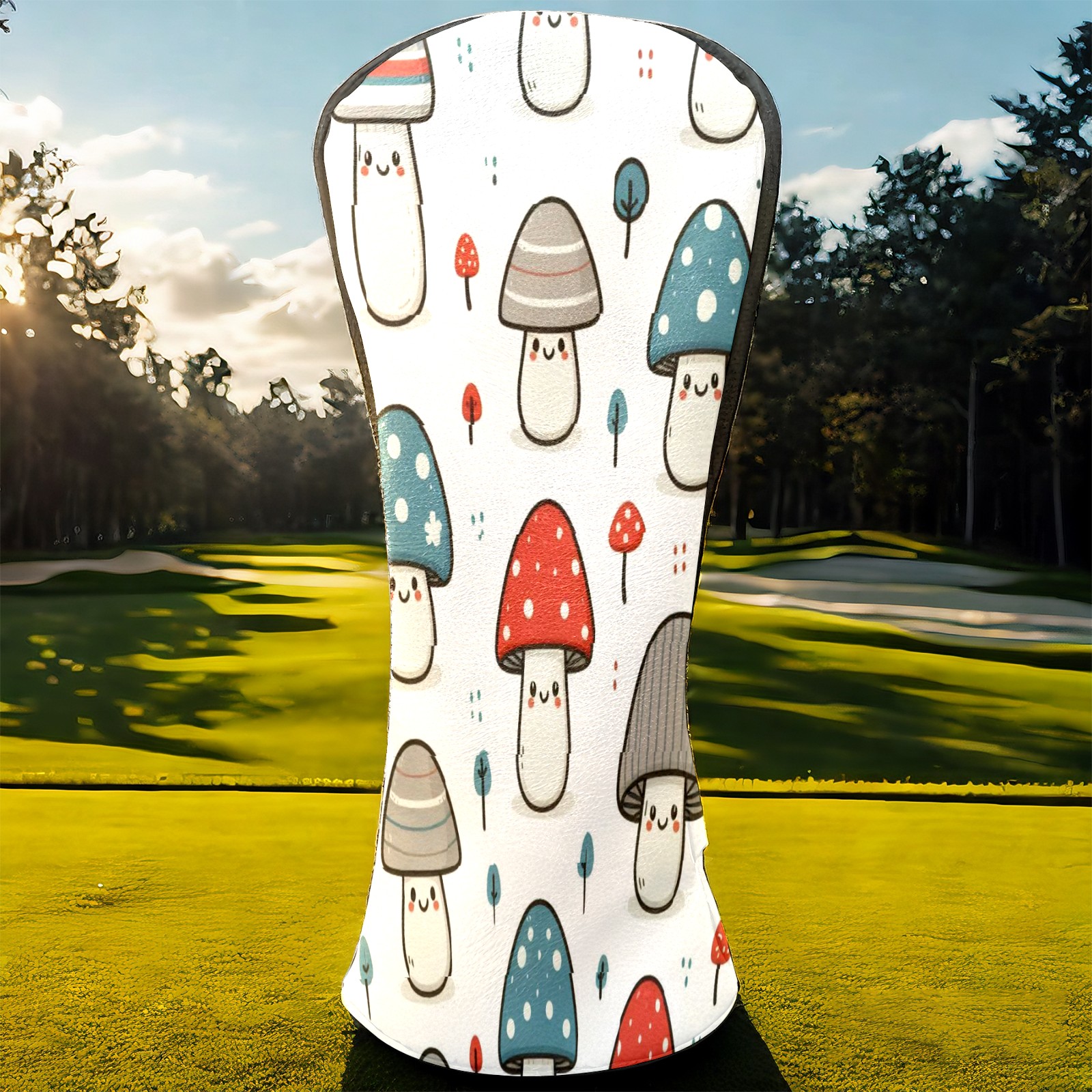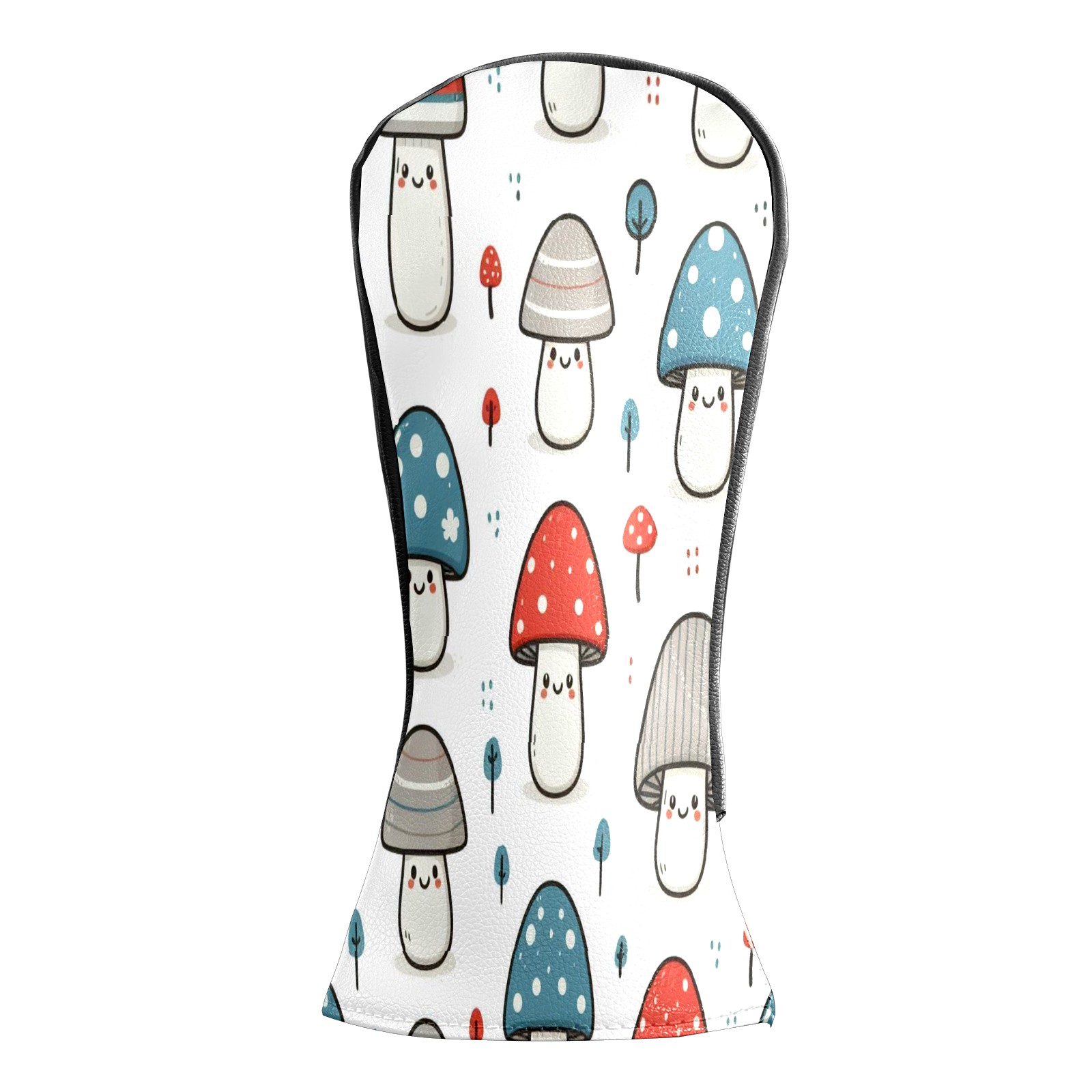 PU Leather Golf Club Head Covers, Fit Driver Head Cover/Fairway Wood Head Cover/Hybrid Club Head Cover, Men and Women Golfer Gift White Mushrooms
