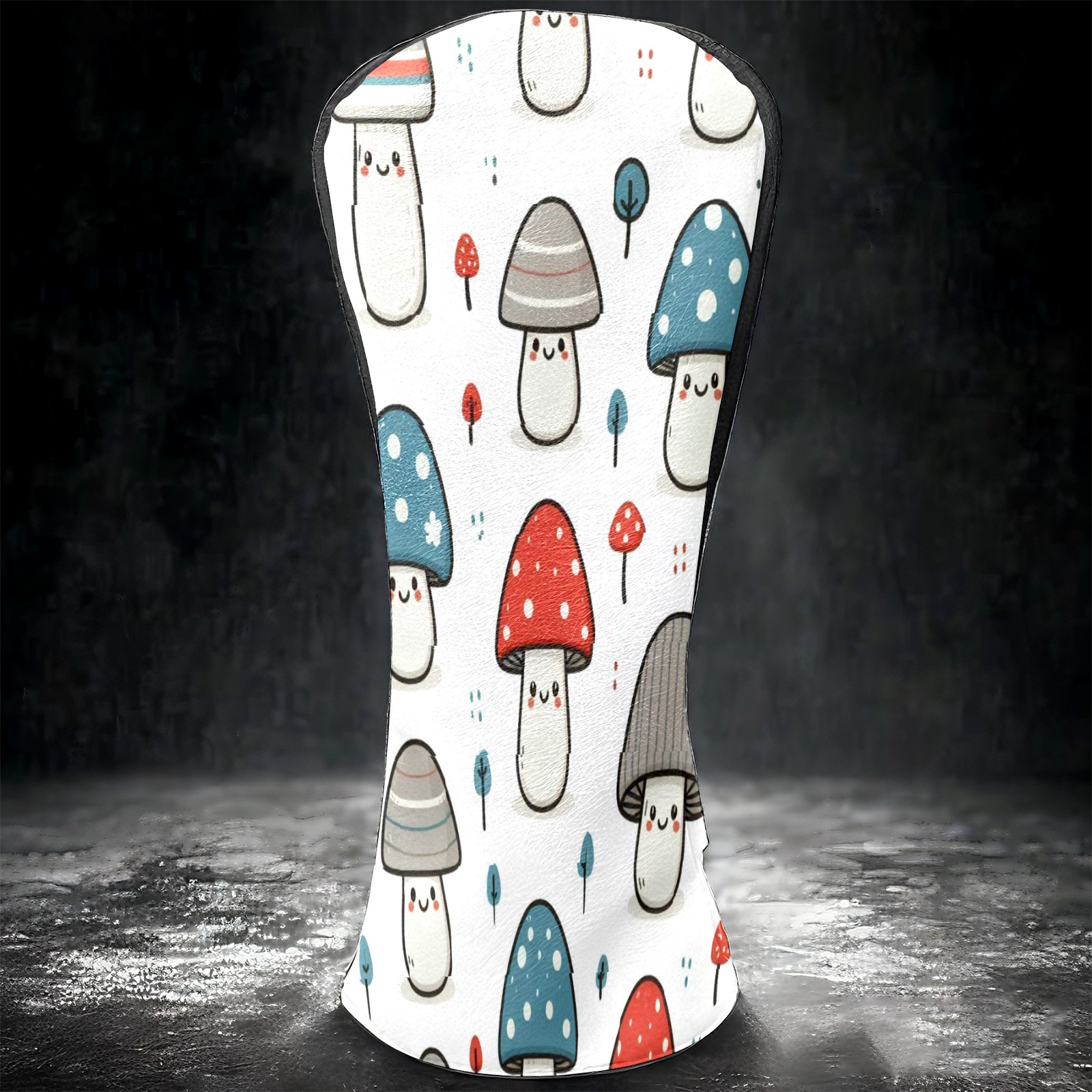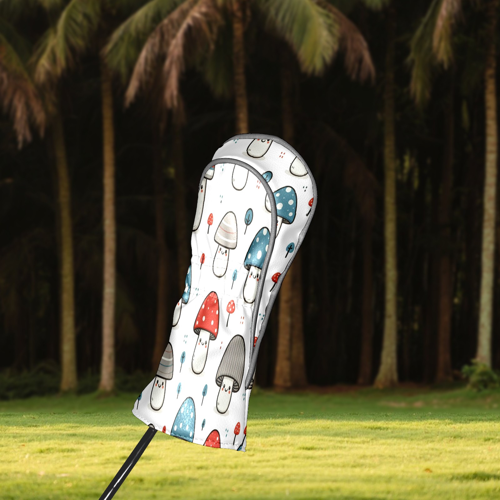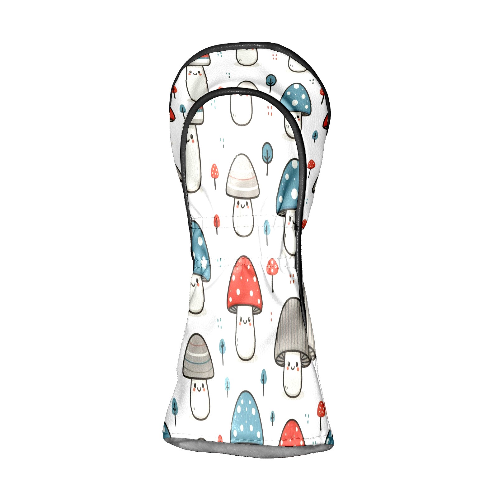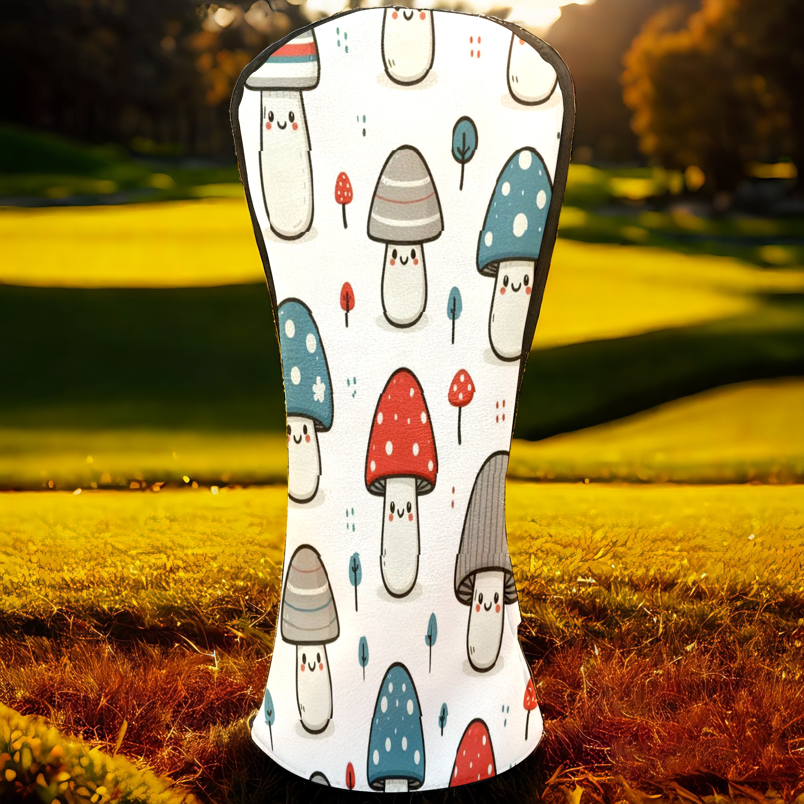 PU Leather Golf Club Head Covers, Fit Driver Head Cover/Fairway Wood Head Cover/Hybrid Club Head Cover, Men and Women Golfer Gift White Mushrooms