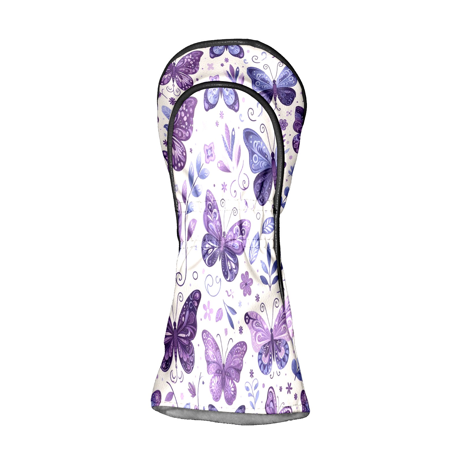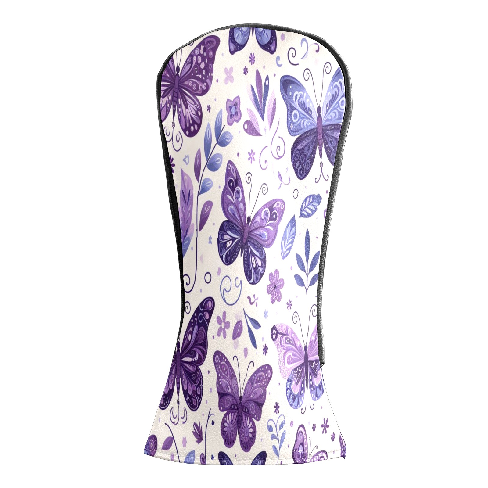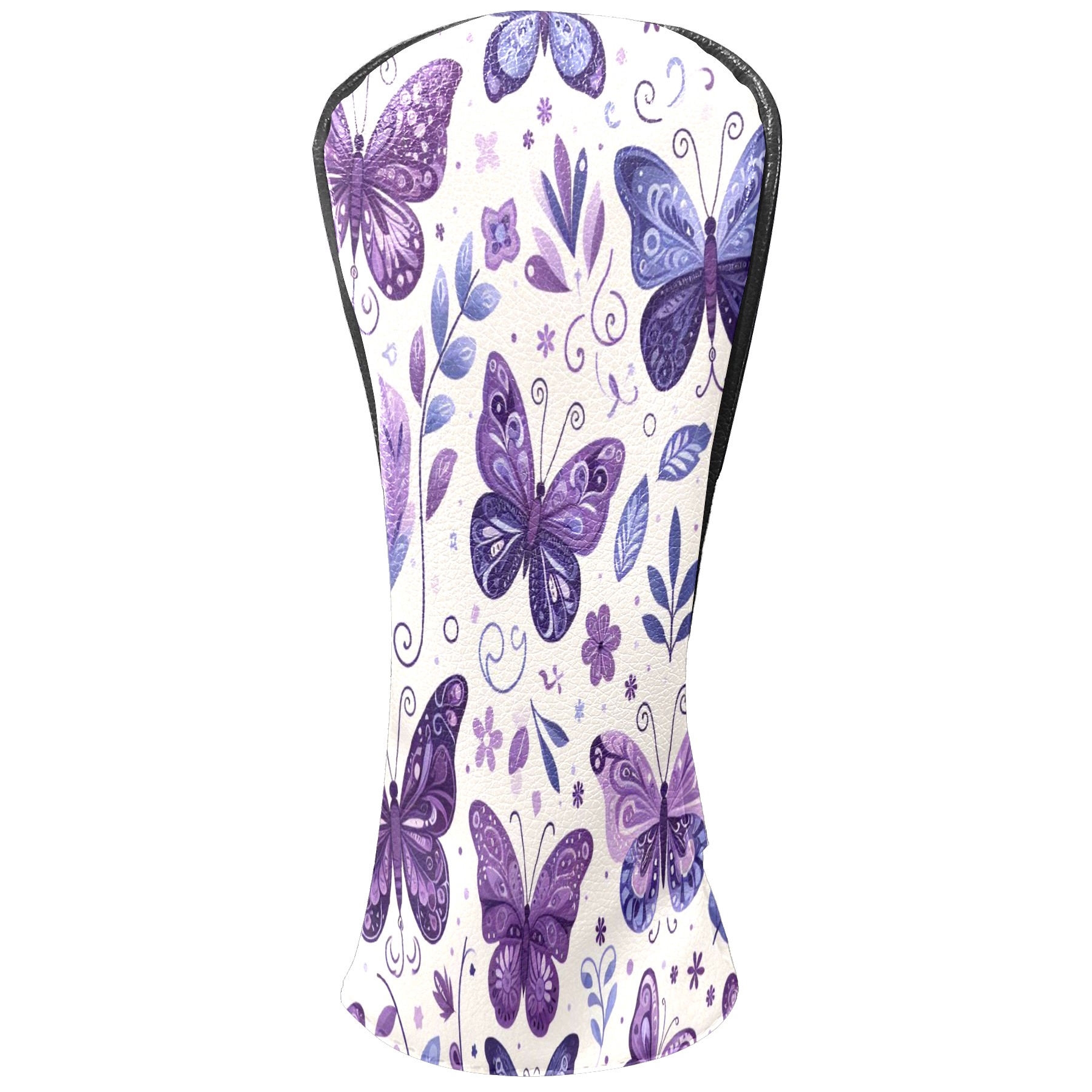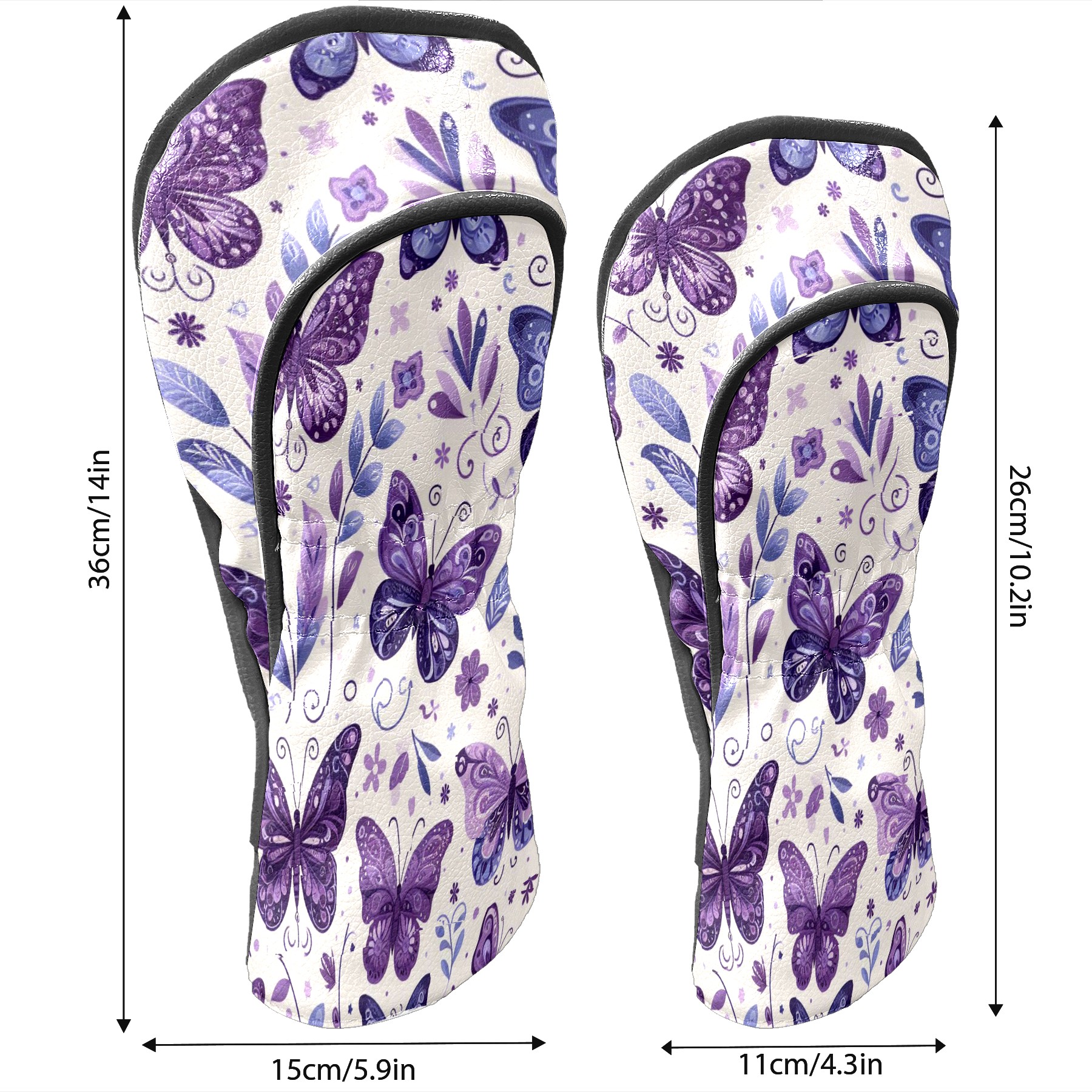 PU Leather Golf Club Head Covers, Fit Driver Head Cover/Fairway Wood Head Cover/Hybrid Club Head Cover, Men and Women Golfer Gift Purple Butterfly