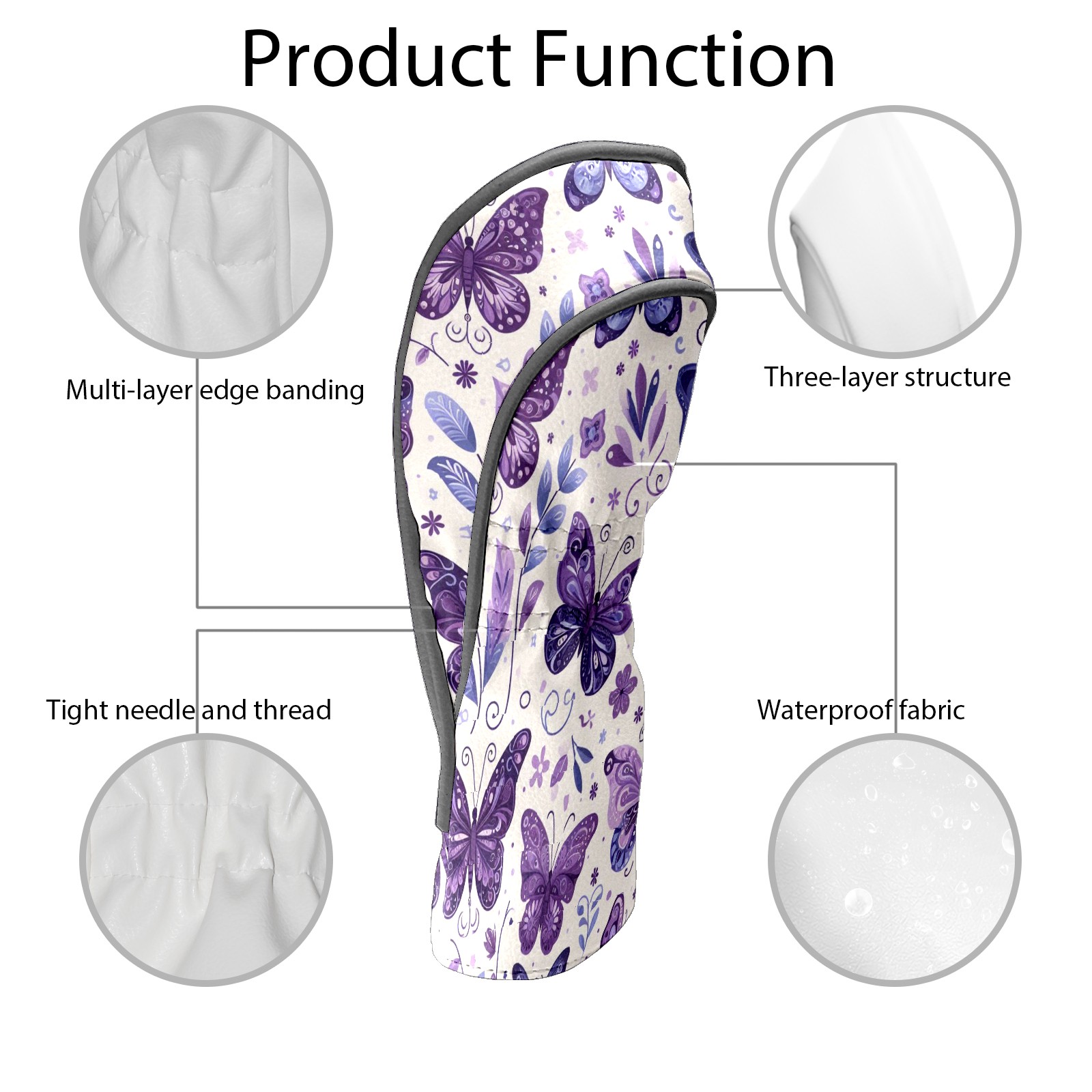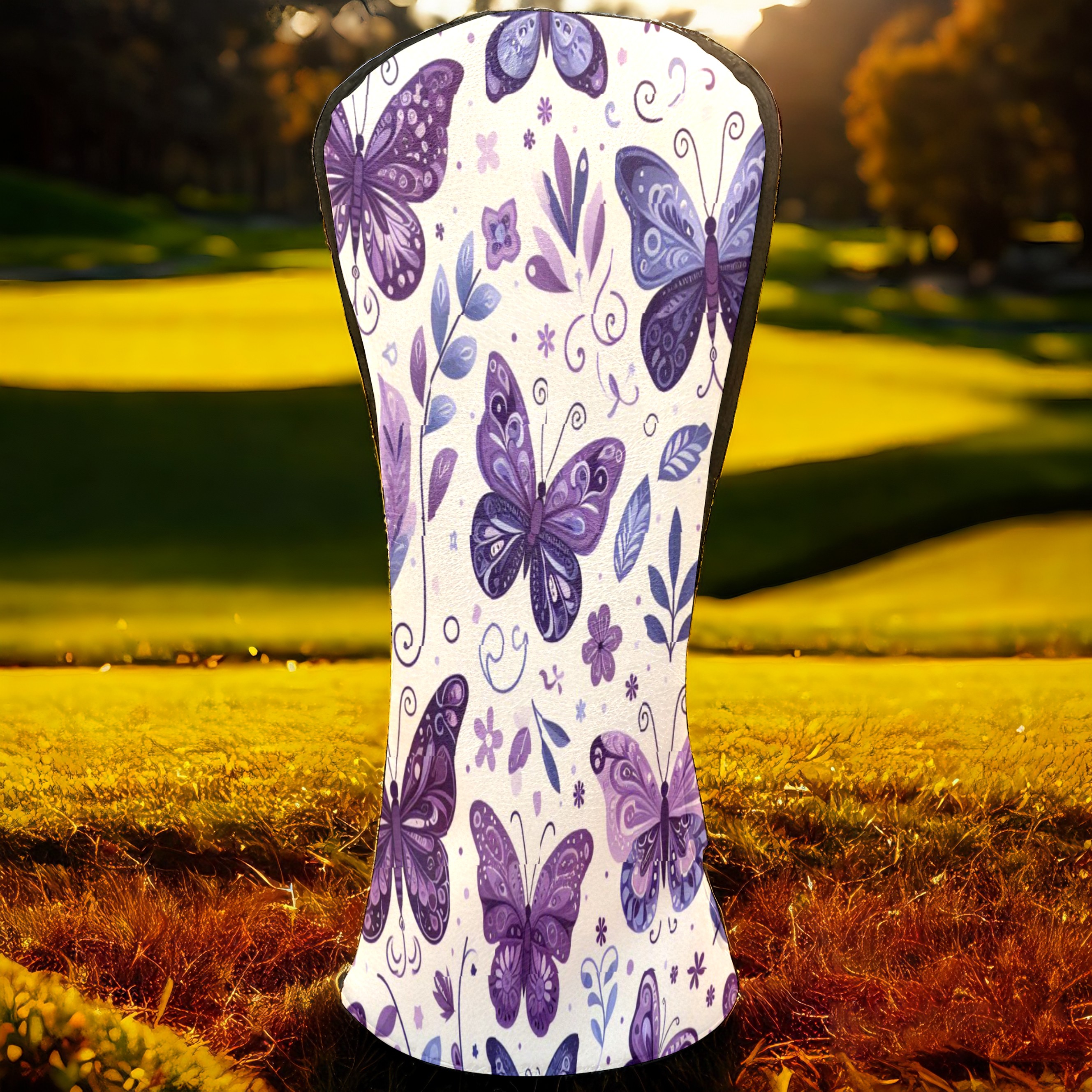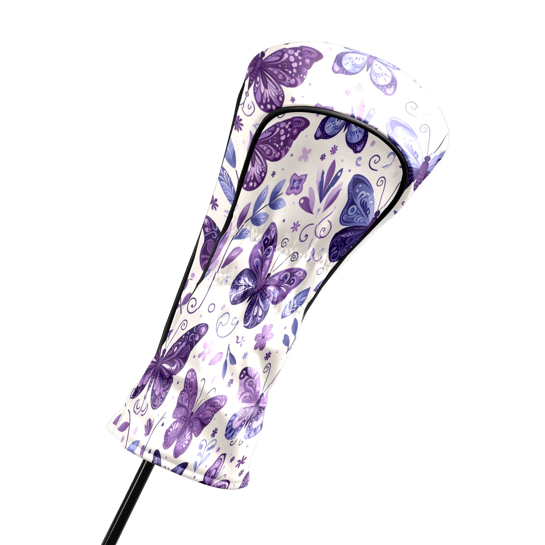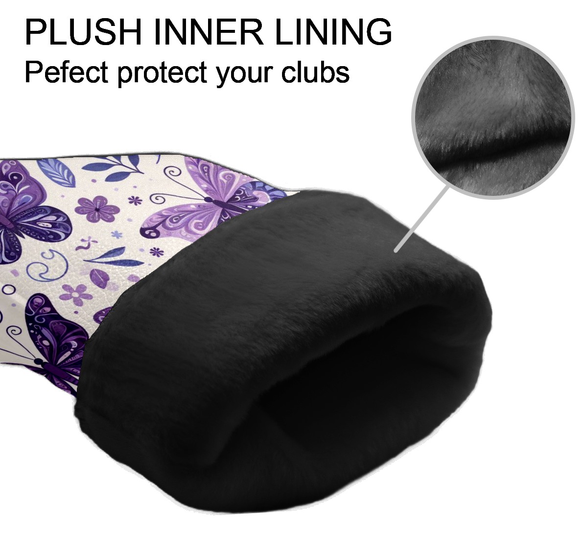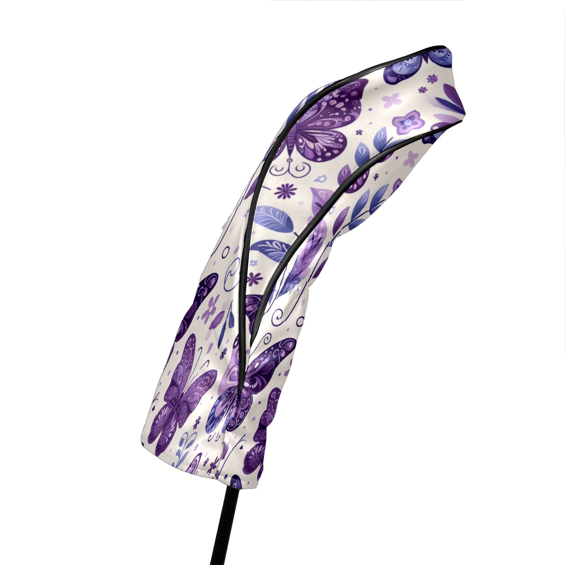PU Leather Golf Club Head Covers, Fit Driver Head Cover/Fairway Wood Head Cover/Hybrid Club Head Cover, Men and Women Golfer Gift Purple Butterfly