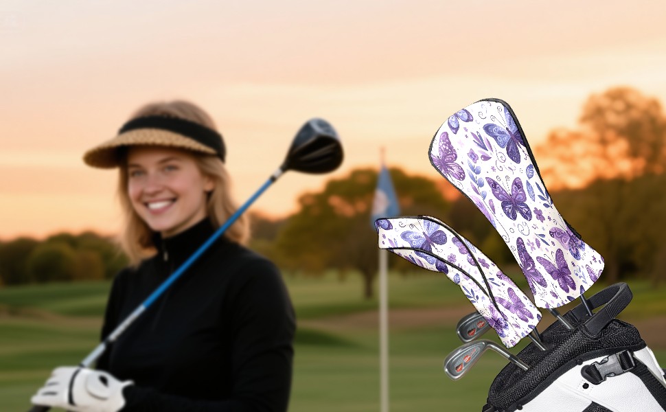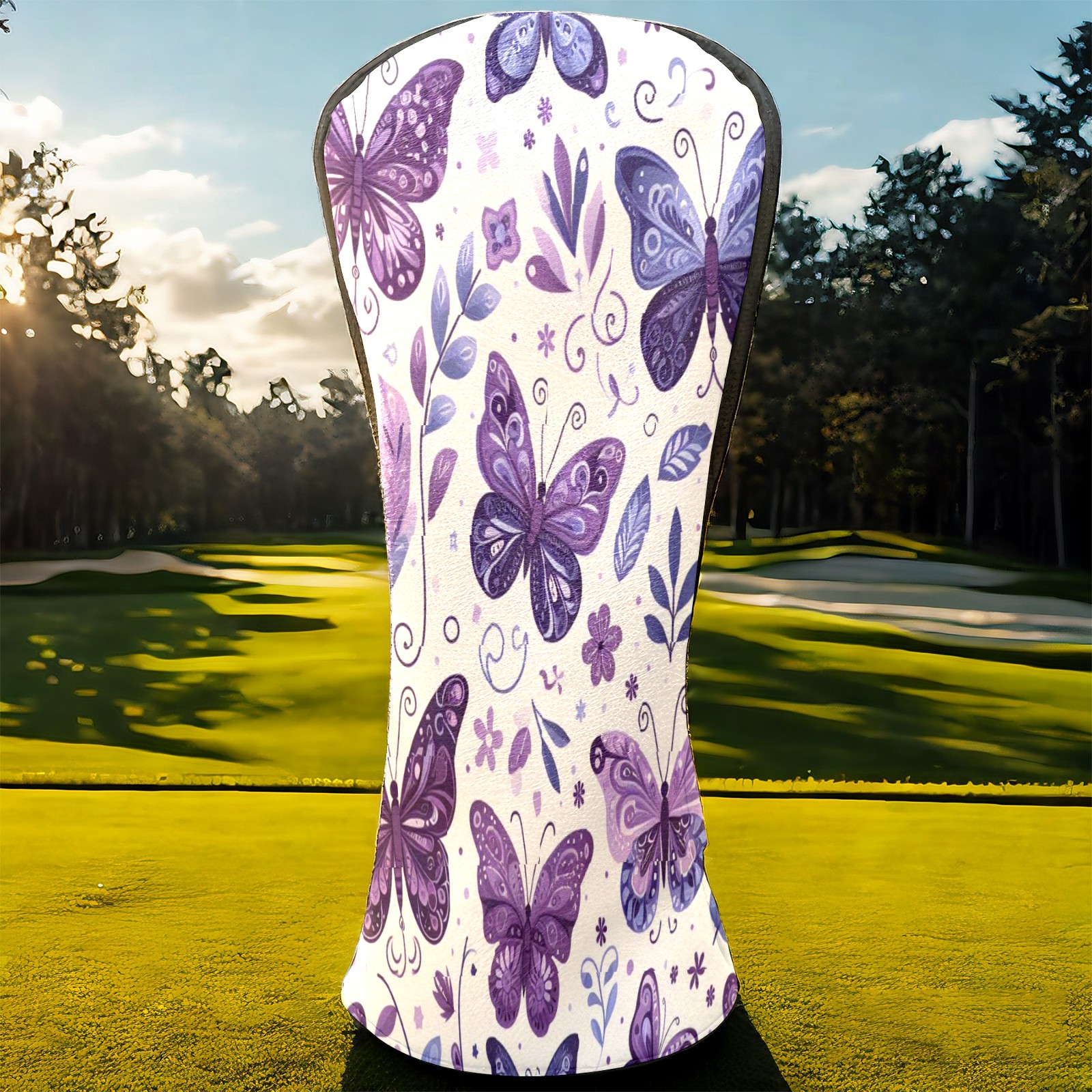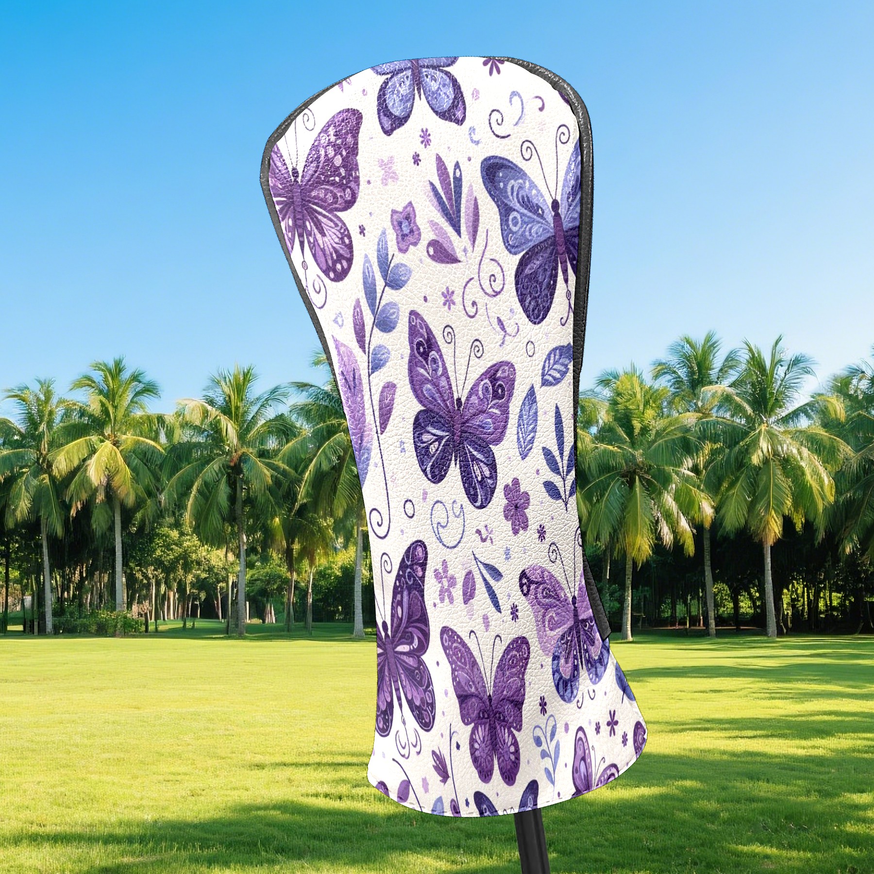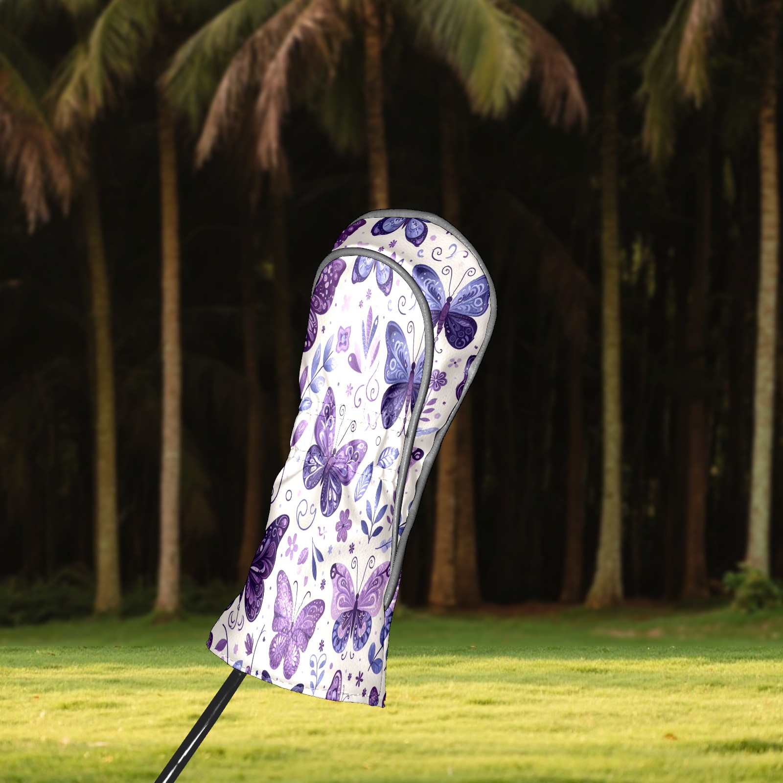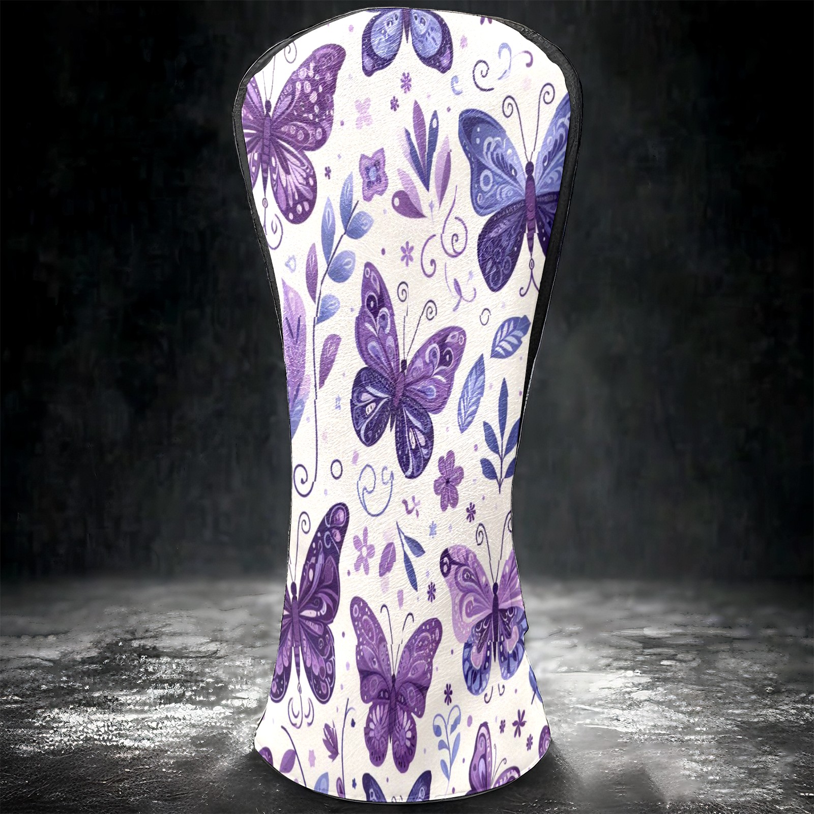 PU Leather Golf Club Head Covers, Fit Driver Head Cover/Fairway Wood Head Cover/Hybrid Club Head Cover, Men and Women Golfer Gift Purple Butterfly