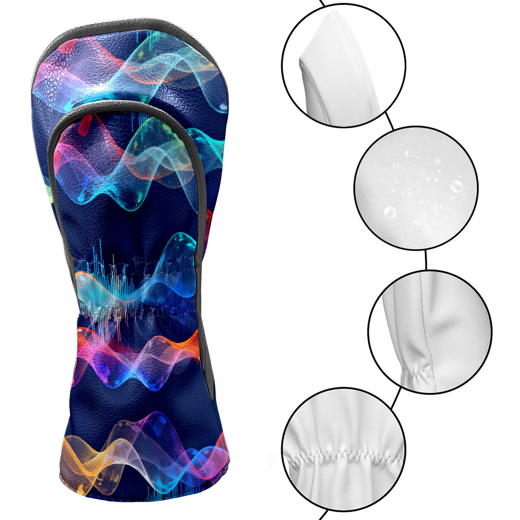 Golf Club Covers, Blue Wave Premium PU Leather Driver Hybrid Putter Head Covers with Velvet Lining, Waterproof Golf Gifts for Men Women