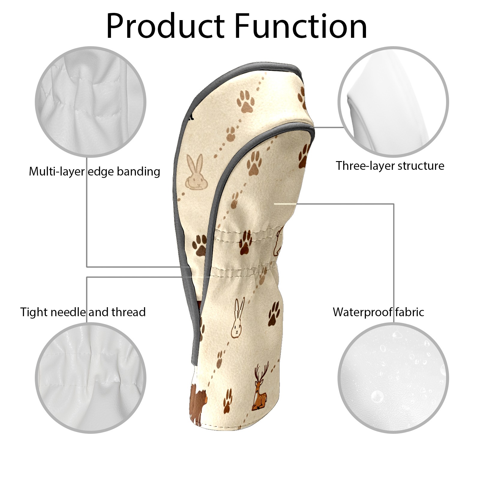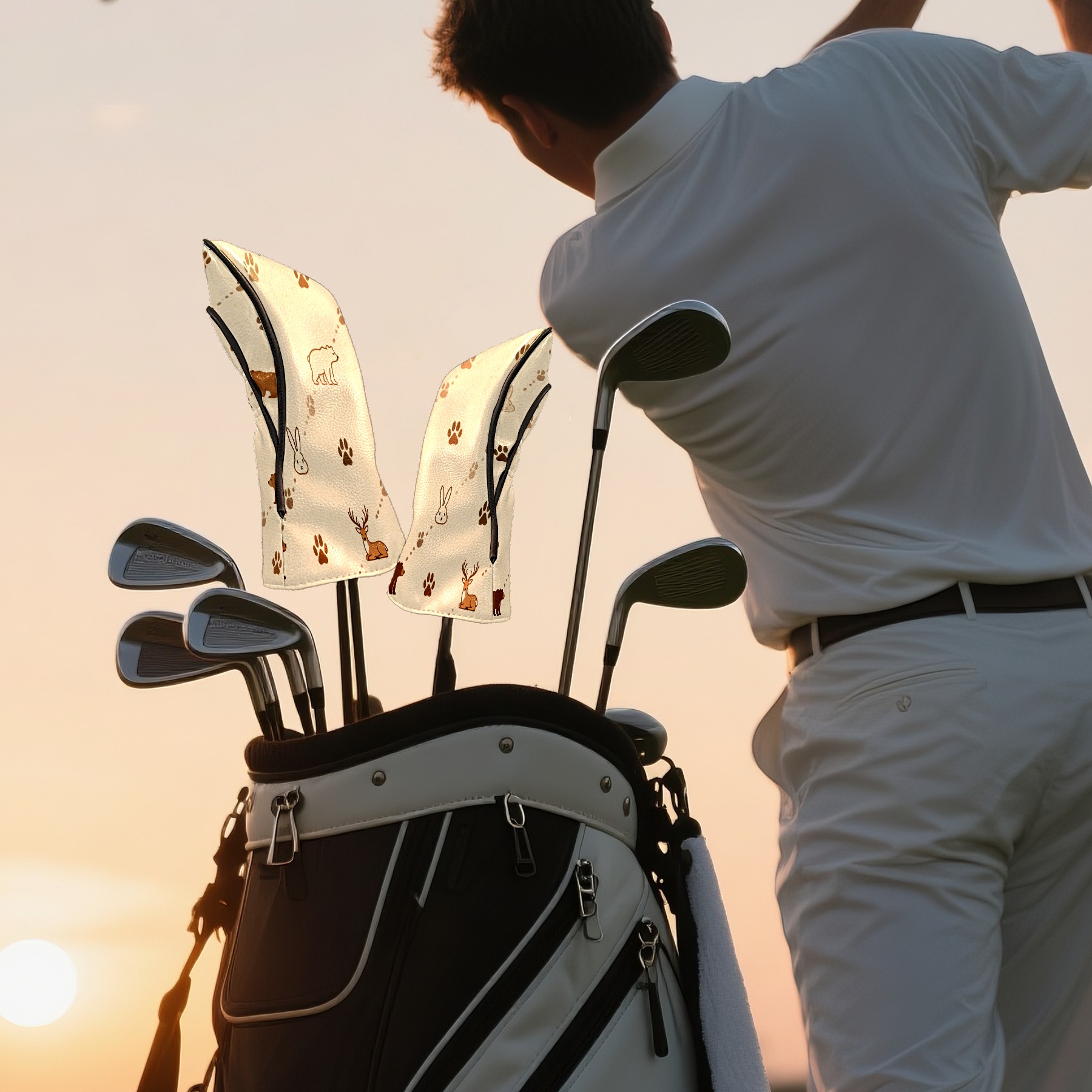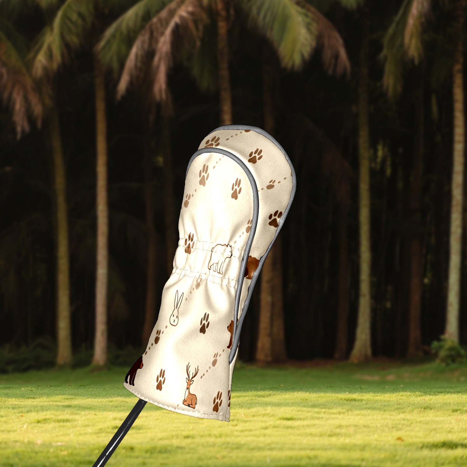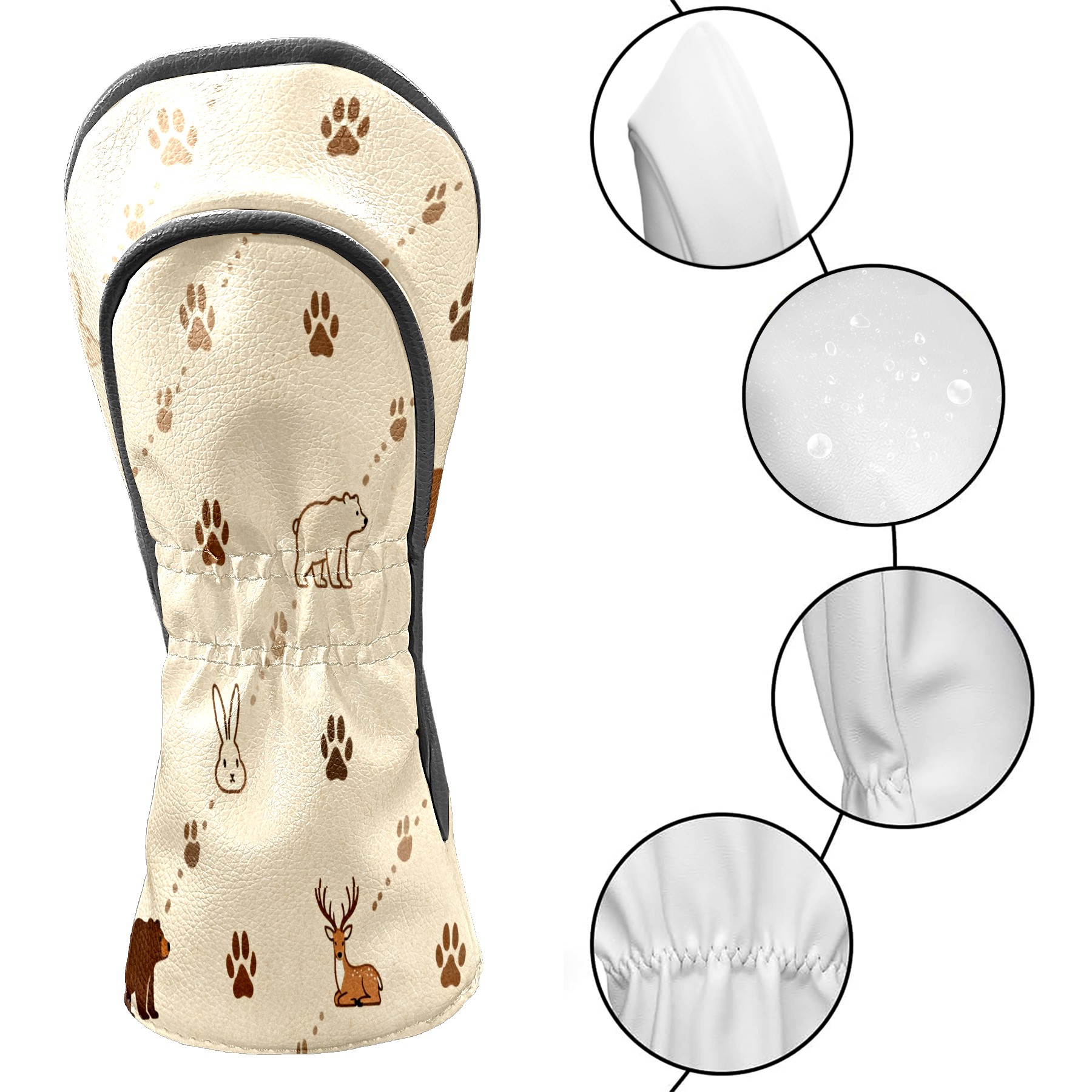 Golf Club Covers, Beige AnimalPaw Premium PU Leather Driver Hybrid Putter Head Covers with Velvet Lining, Waterproof Golf Gifts for Men Women