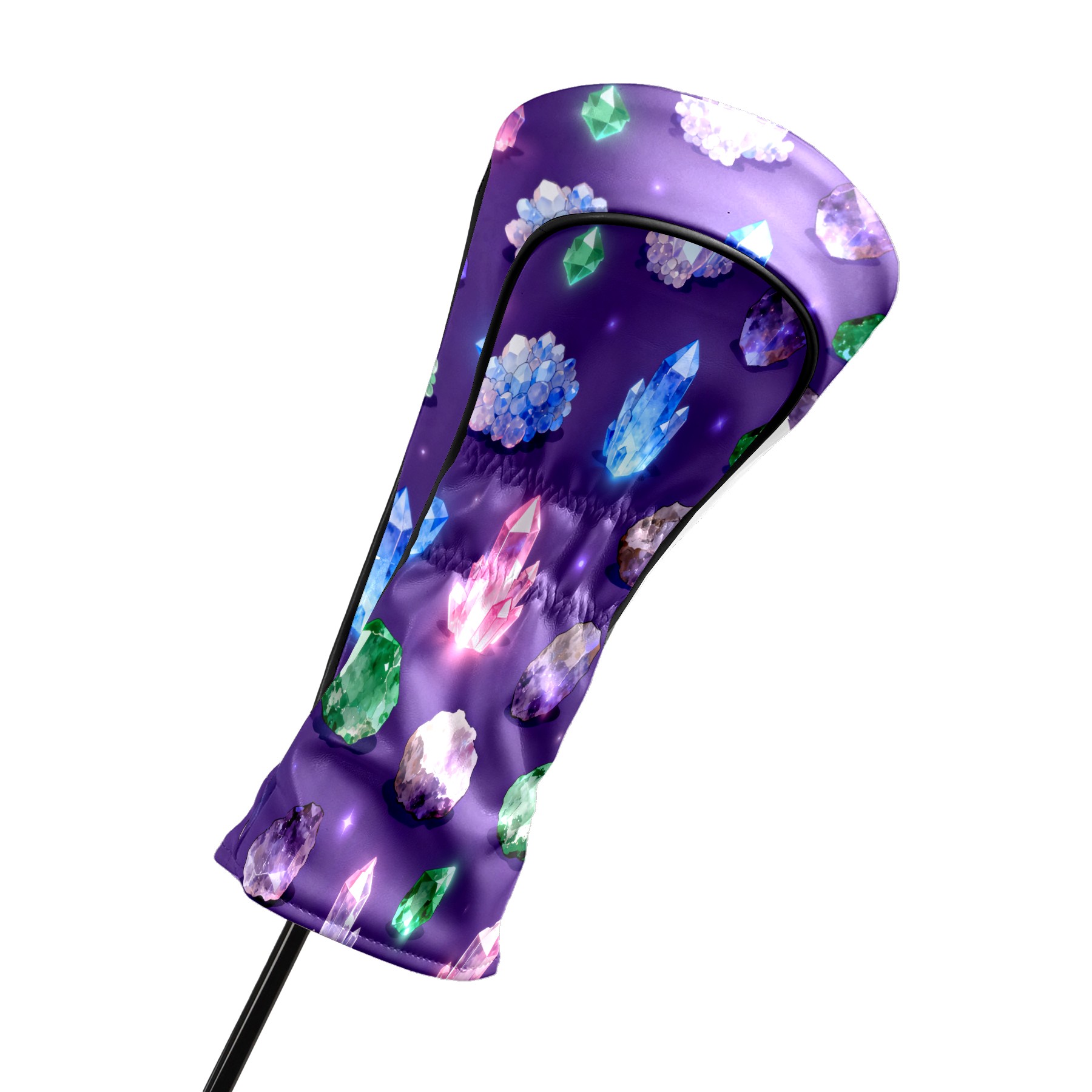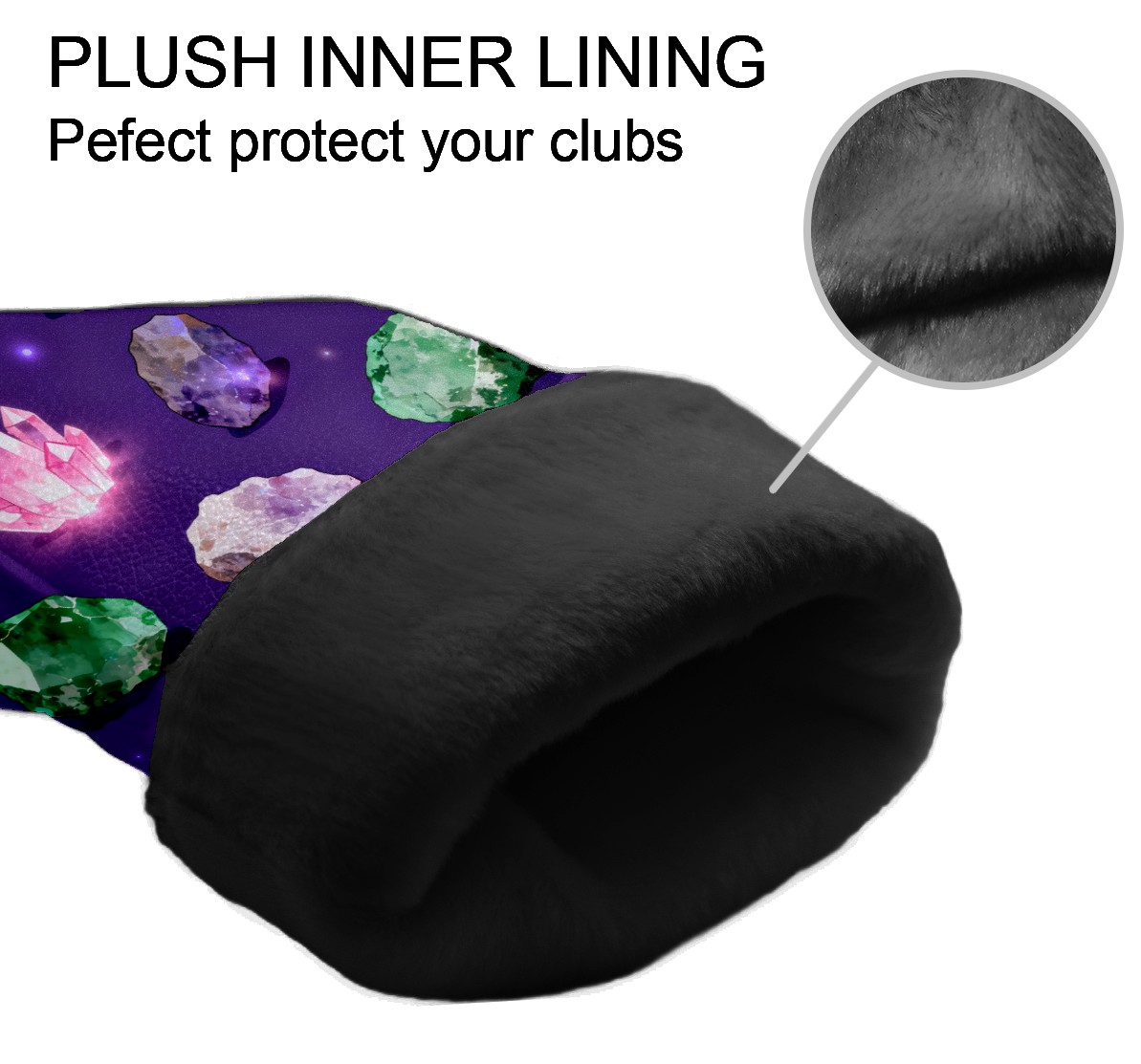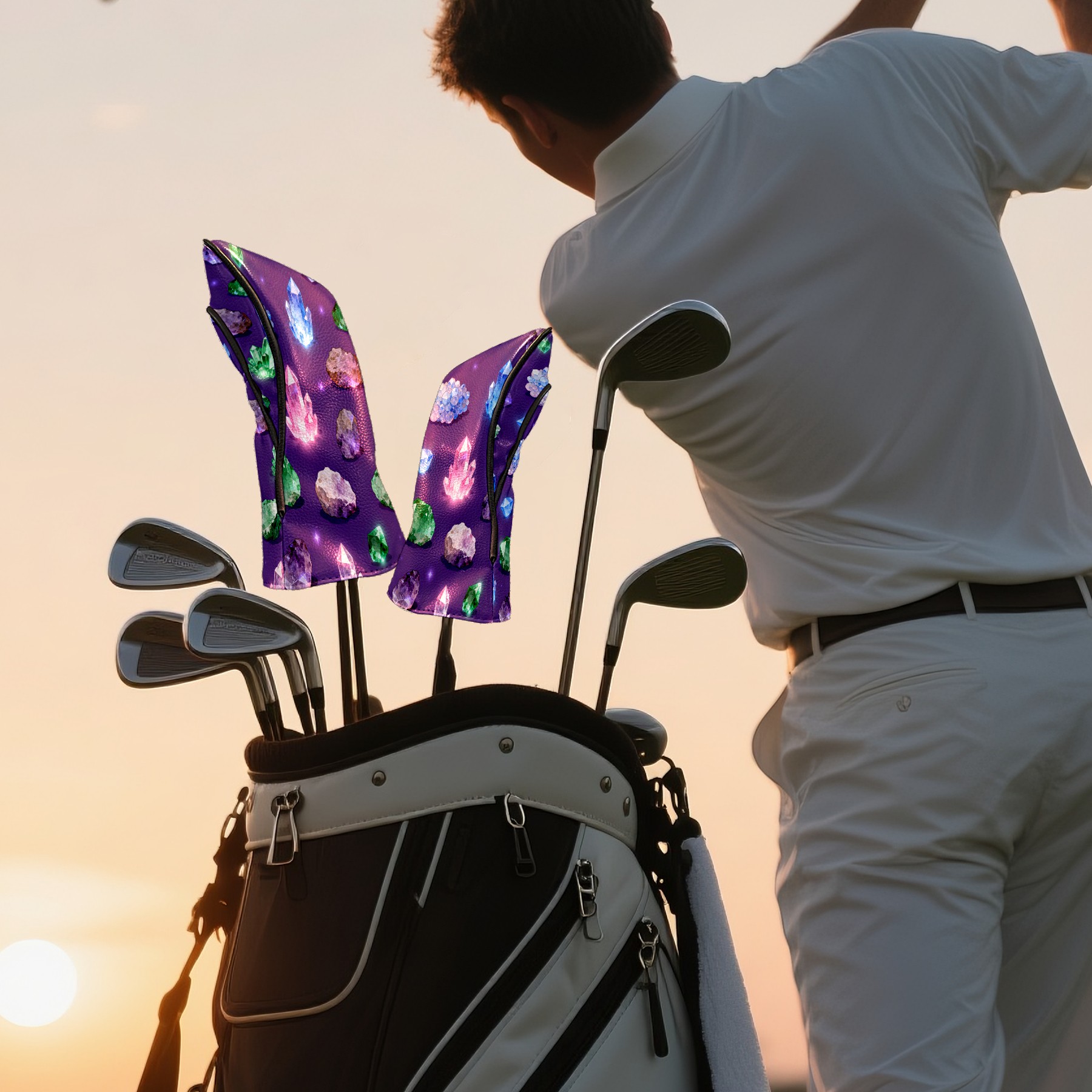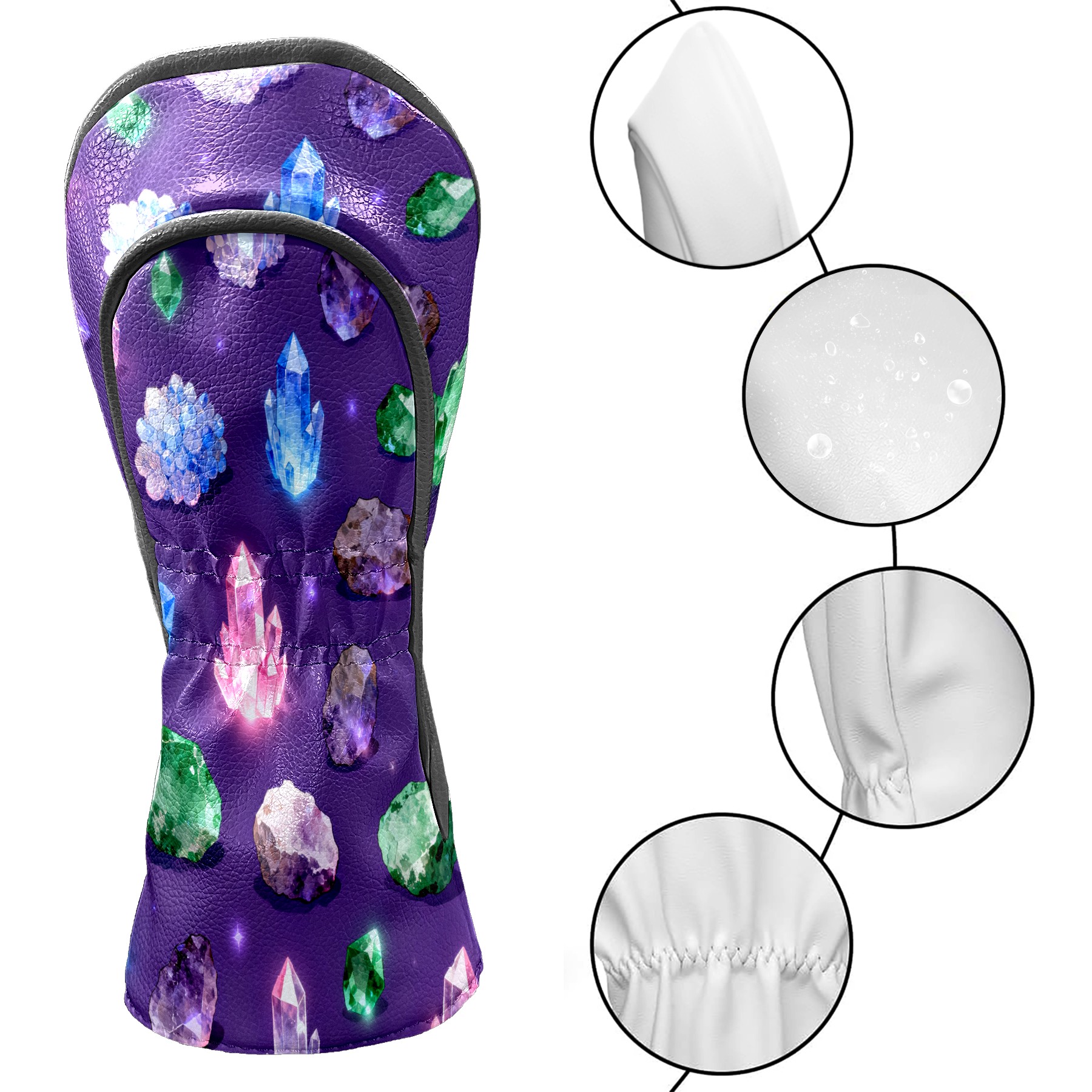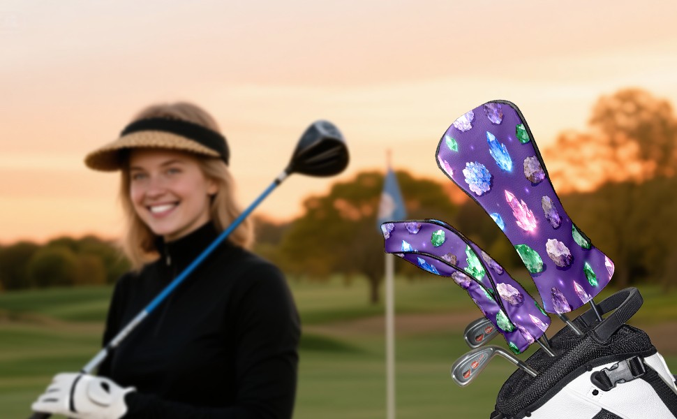 Golf Club Covers, Purple ShinyCrystal Premium PU Leather Driver Hybrid Putter Head Covers with Velvet Lining, Waterproof Golf Gifts for Men Women