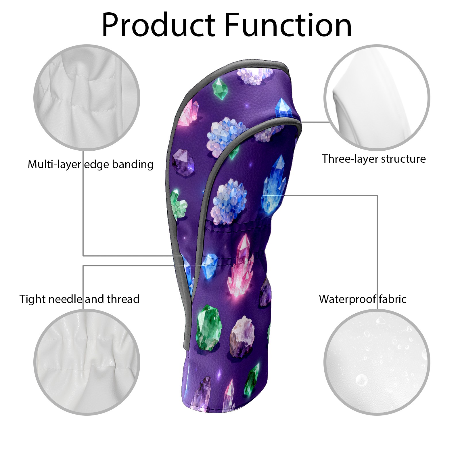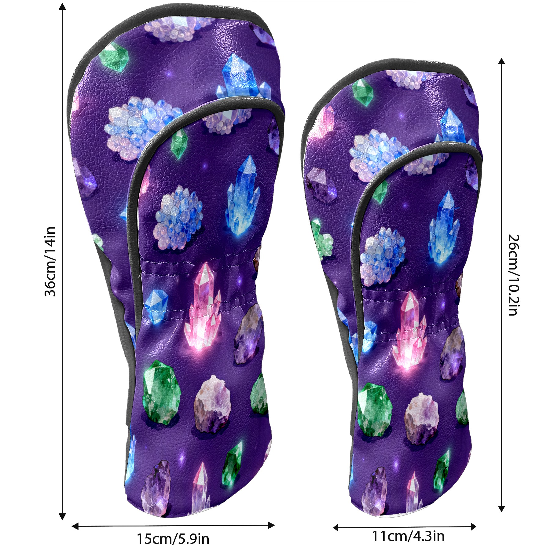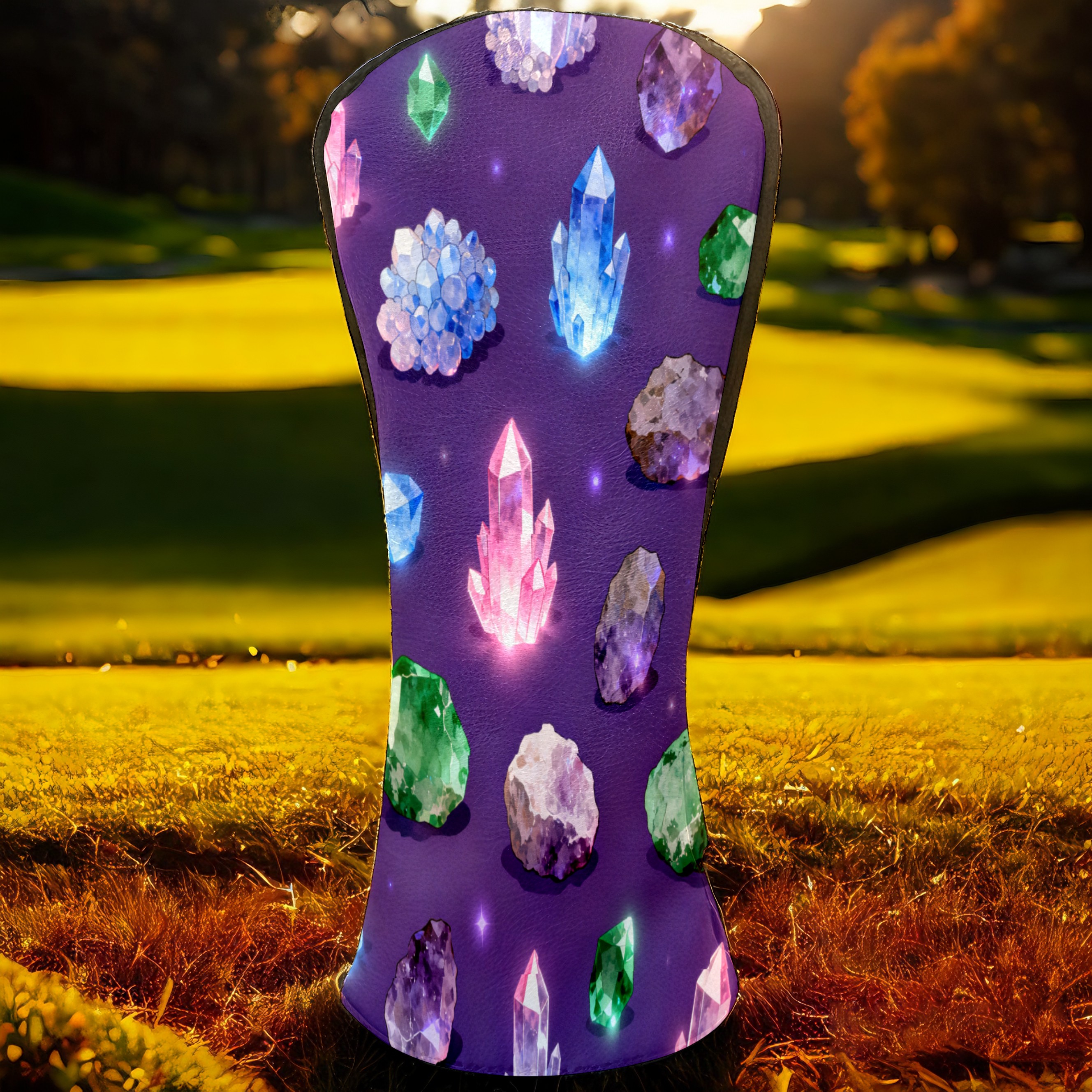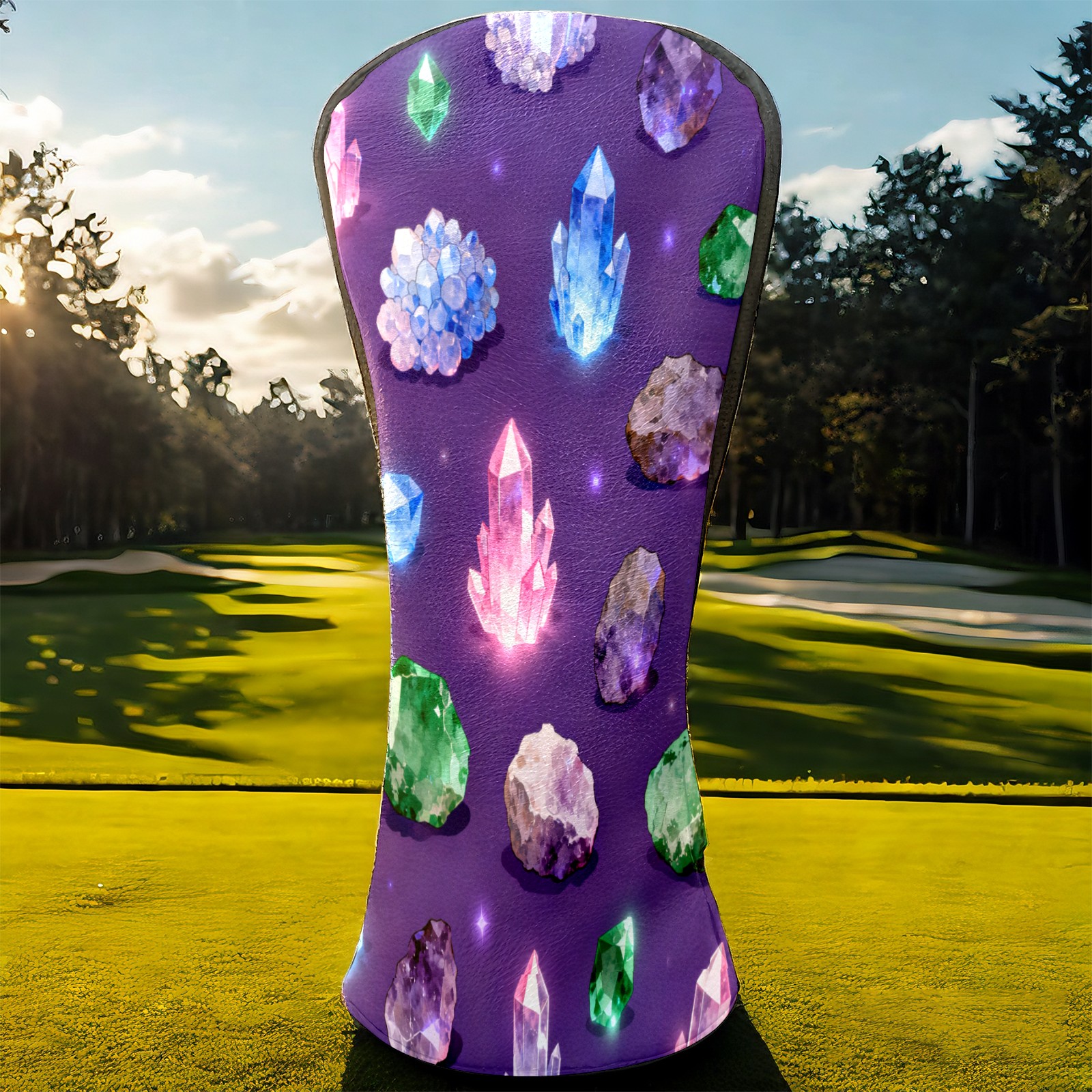 Golf Club Covers, Purple ShinyCrystal Premium PU Leather Driver Hybrid Putter Head Covers with Velvet Lining, Waterproof Golf Gifts for Men Women
