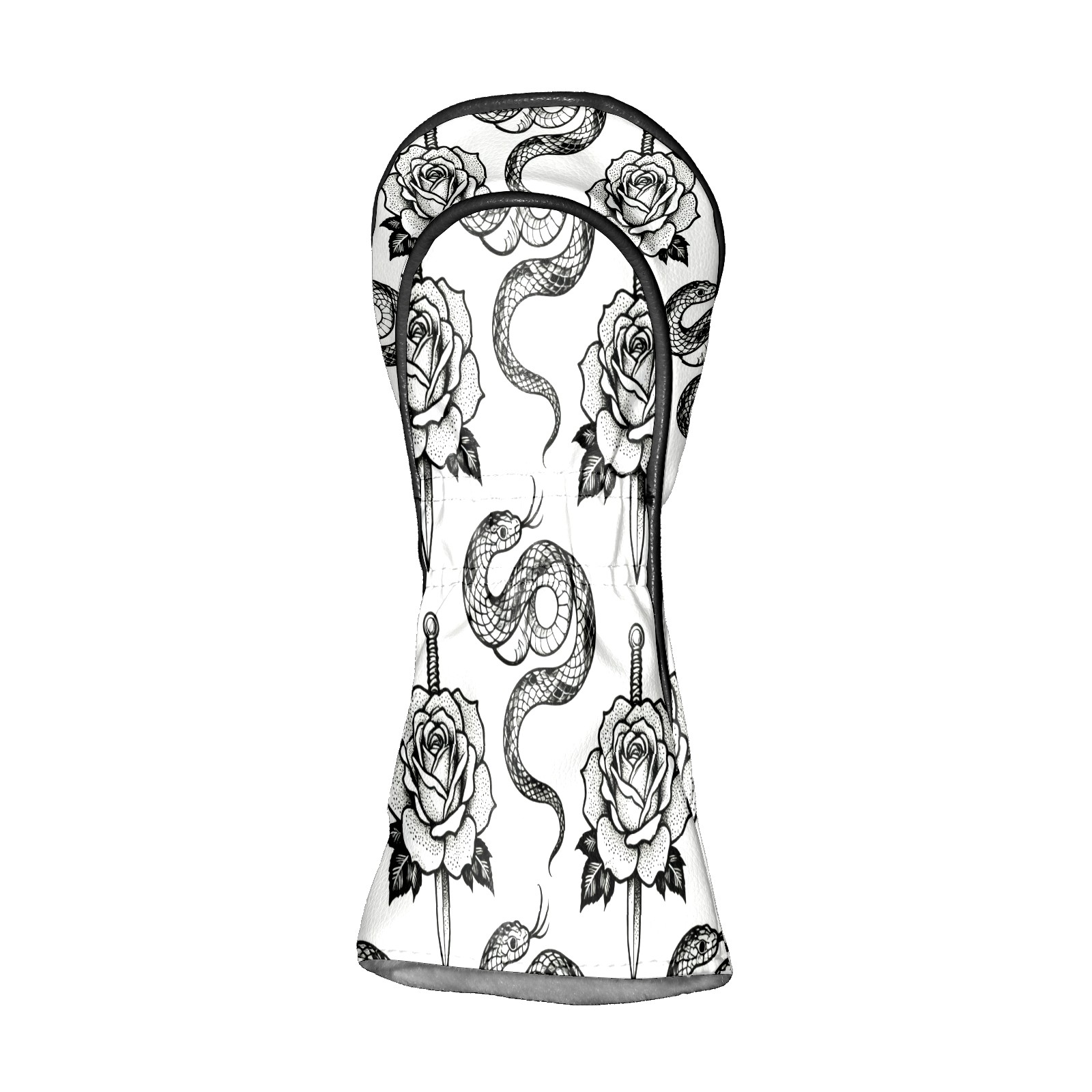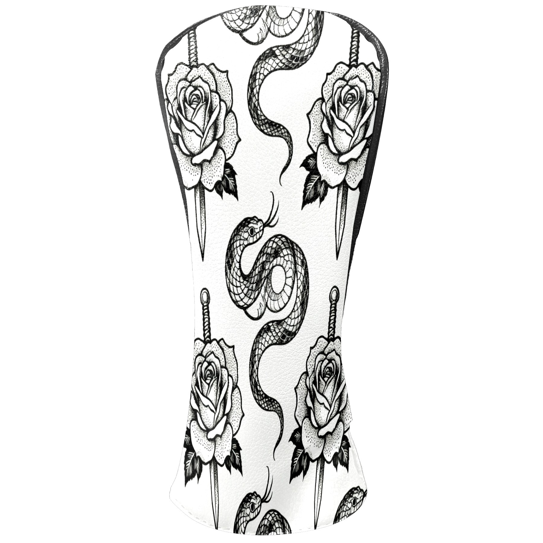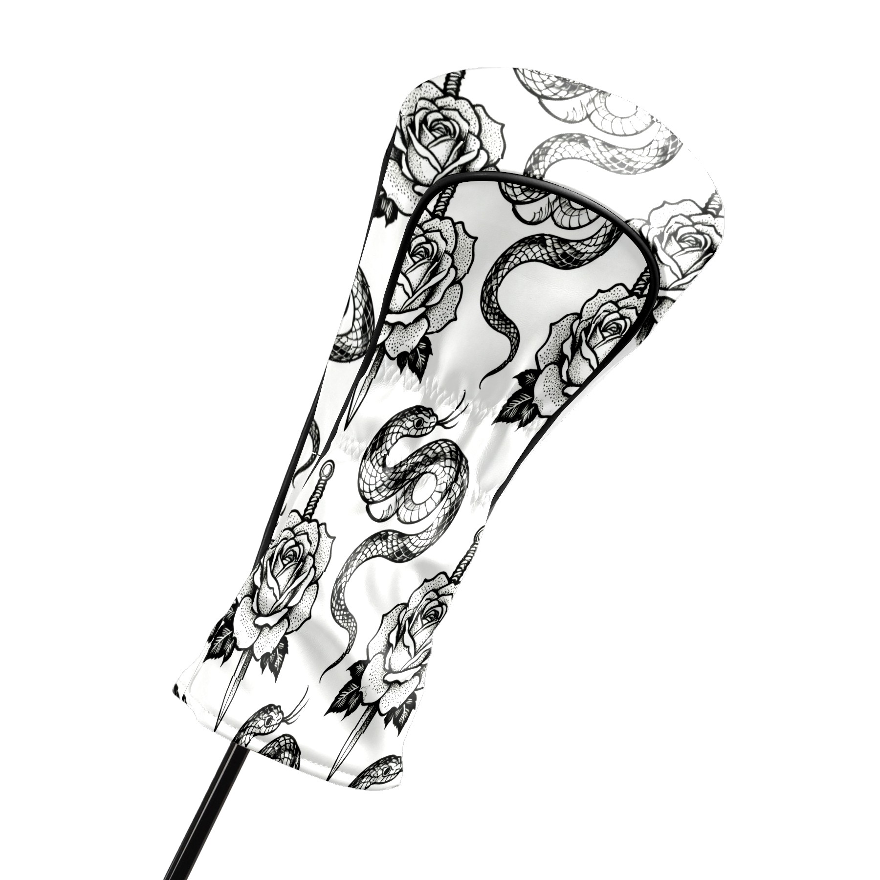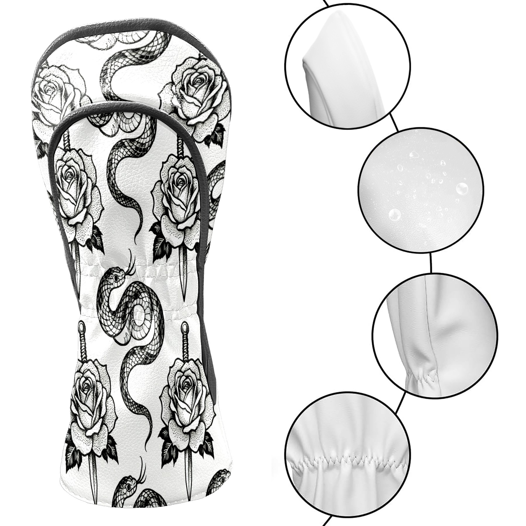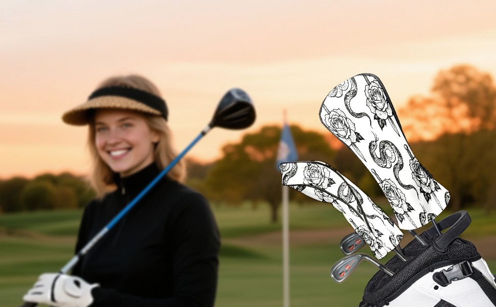 Golf Club Covers, BlackWhite RoseSnake Premium PU Leather Driver Hybrid Putter Head Covers with Velvet Lining, Waterproof Golf Gifts for Men Women