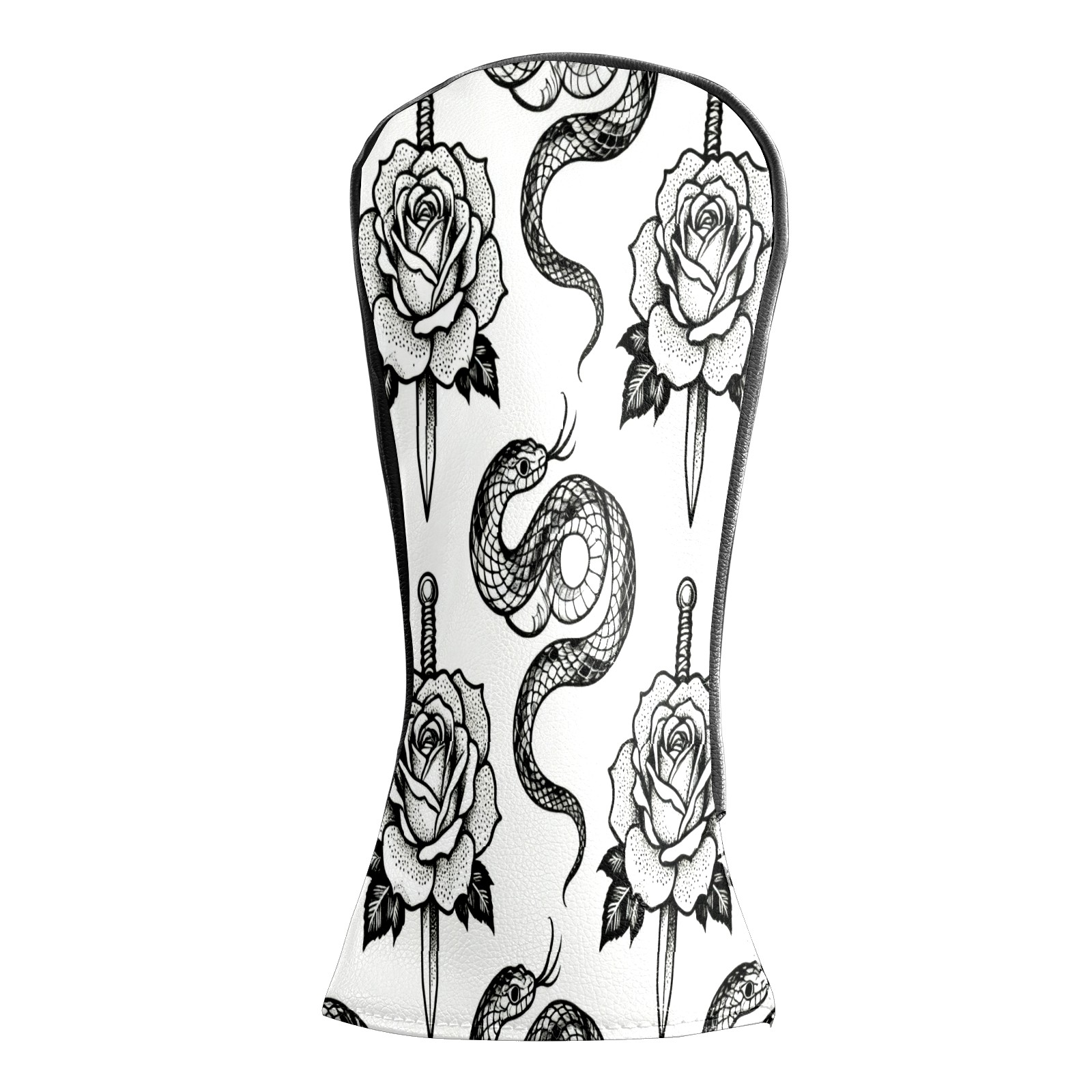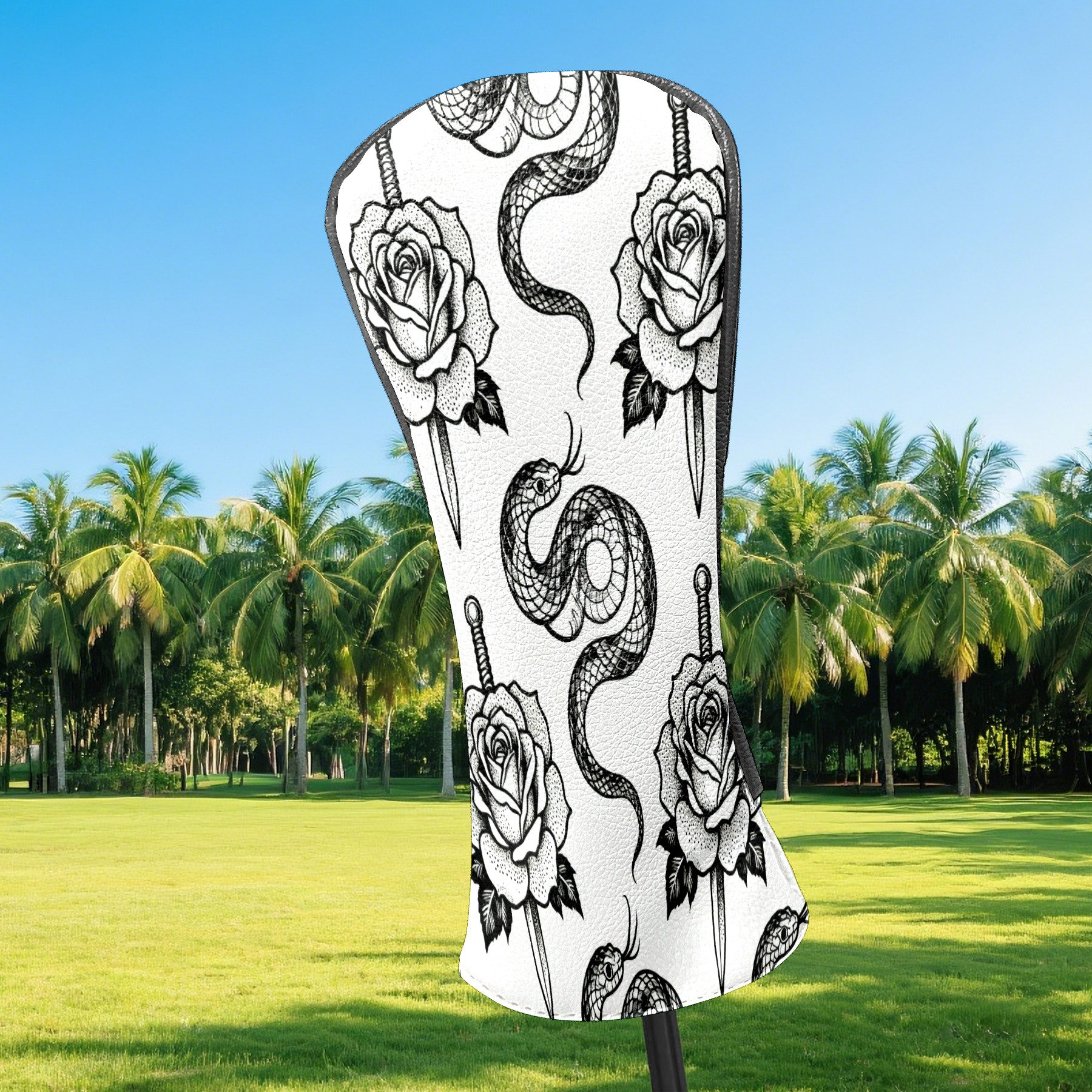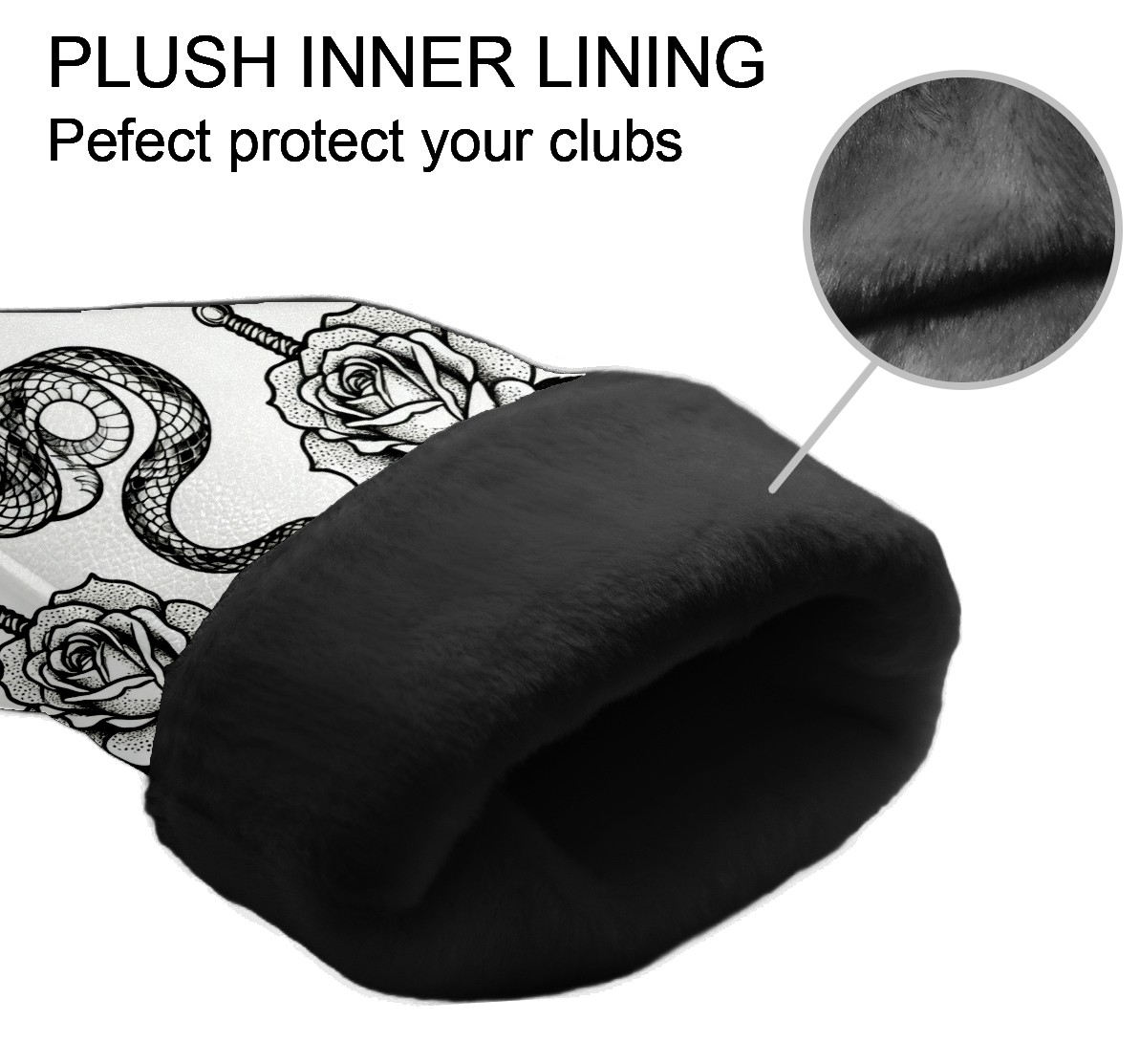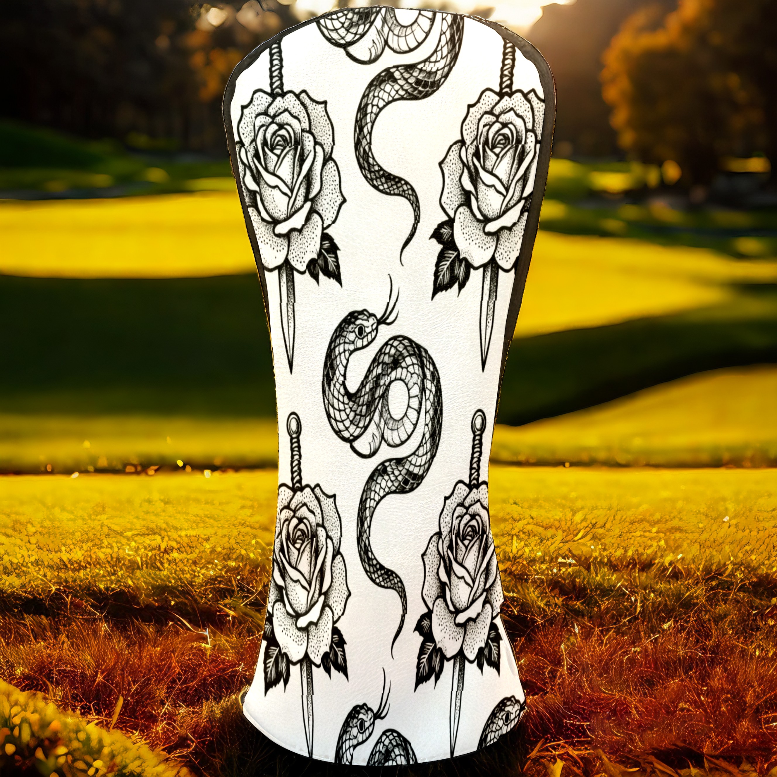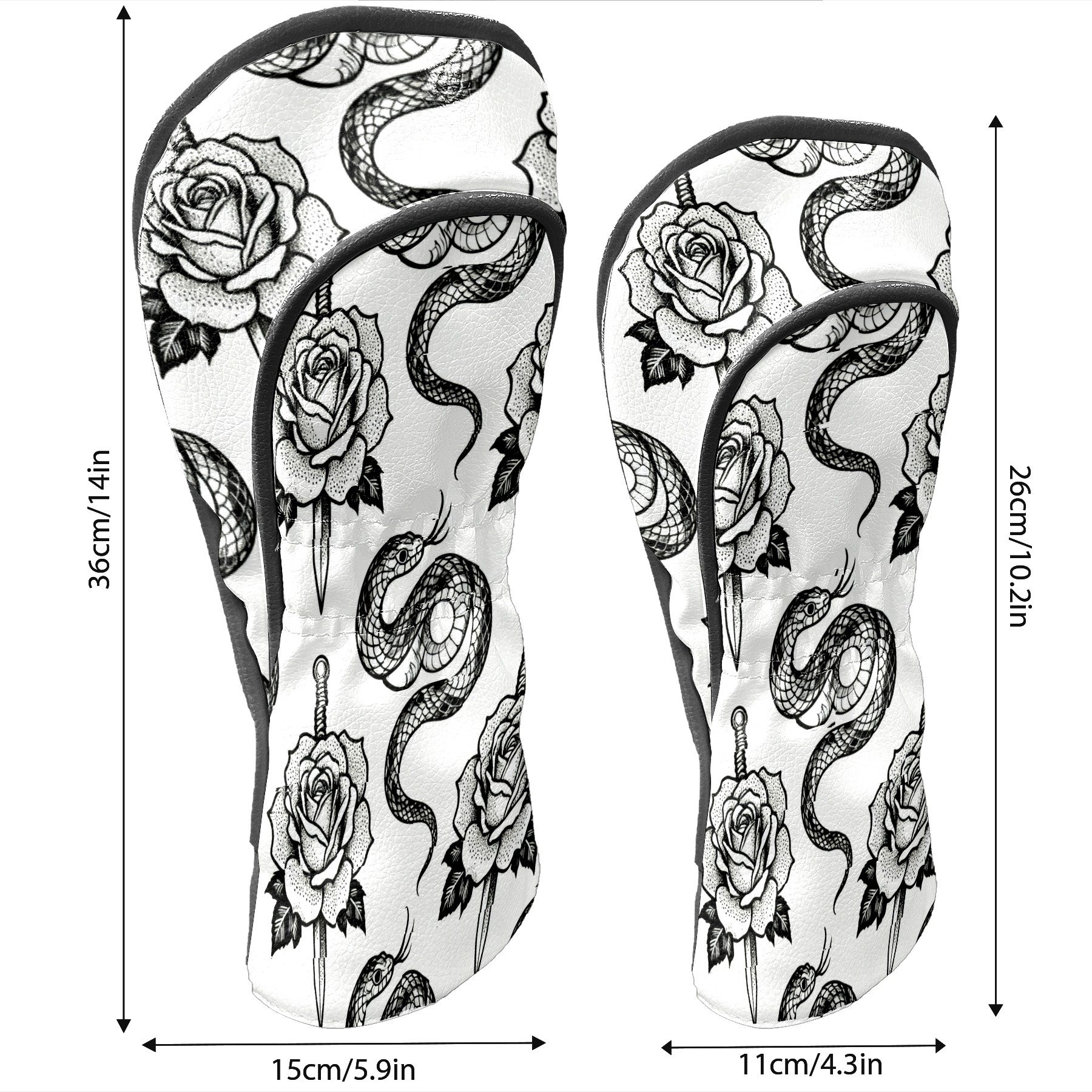Golf Club Covers, BlackWhite RoseSnake Premium PU Leather Driver Hybrid Putter Head Covers with Velvet Lining, Waterproof Golf Gifts for Men Women