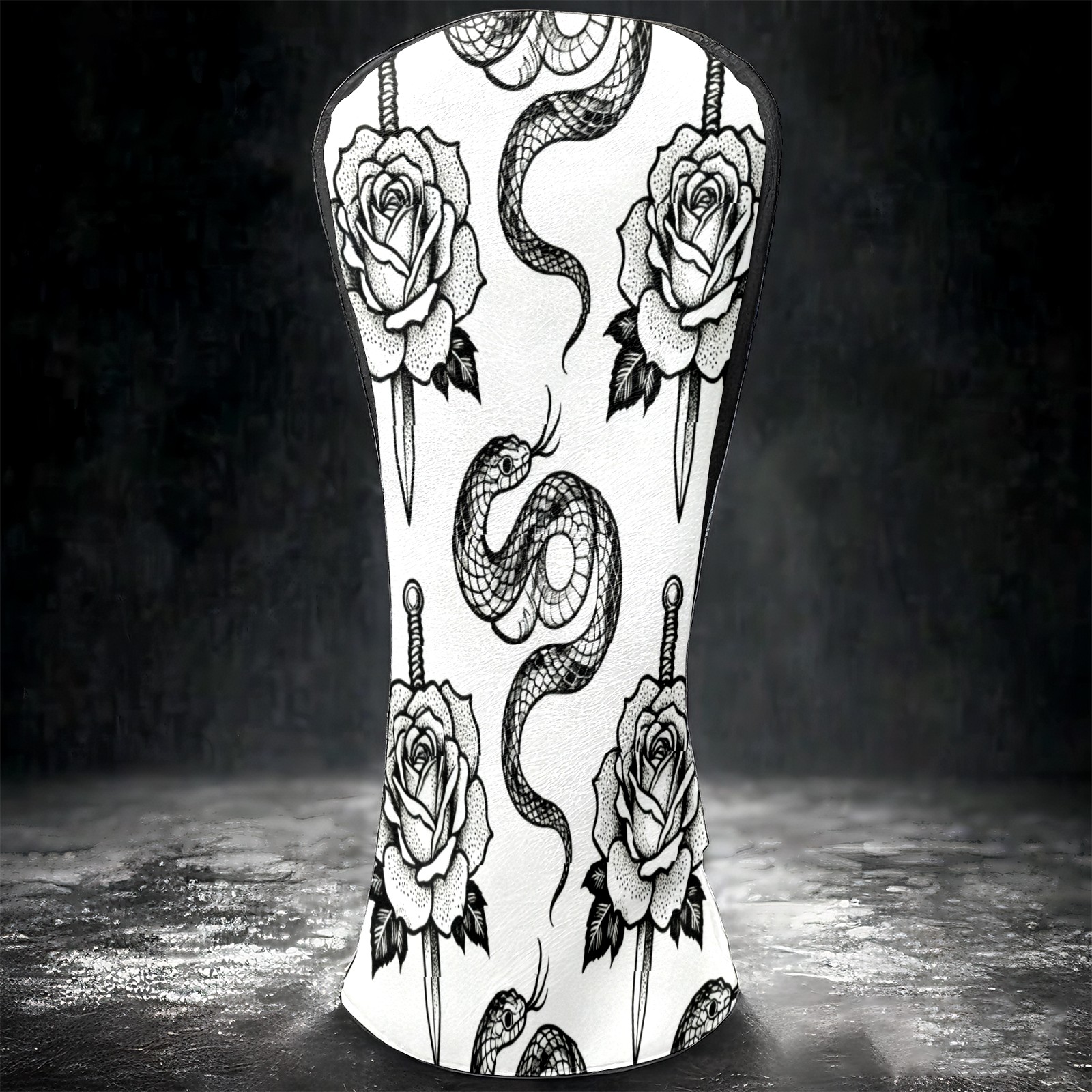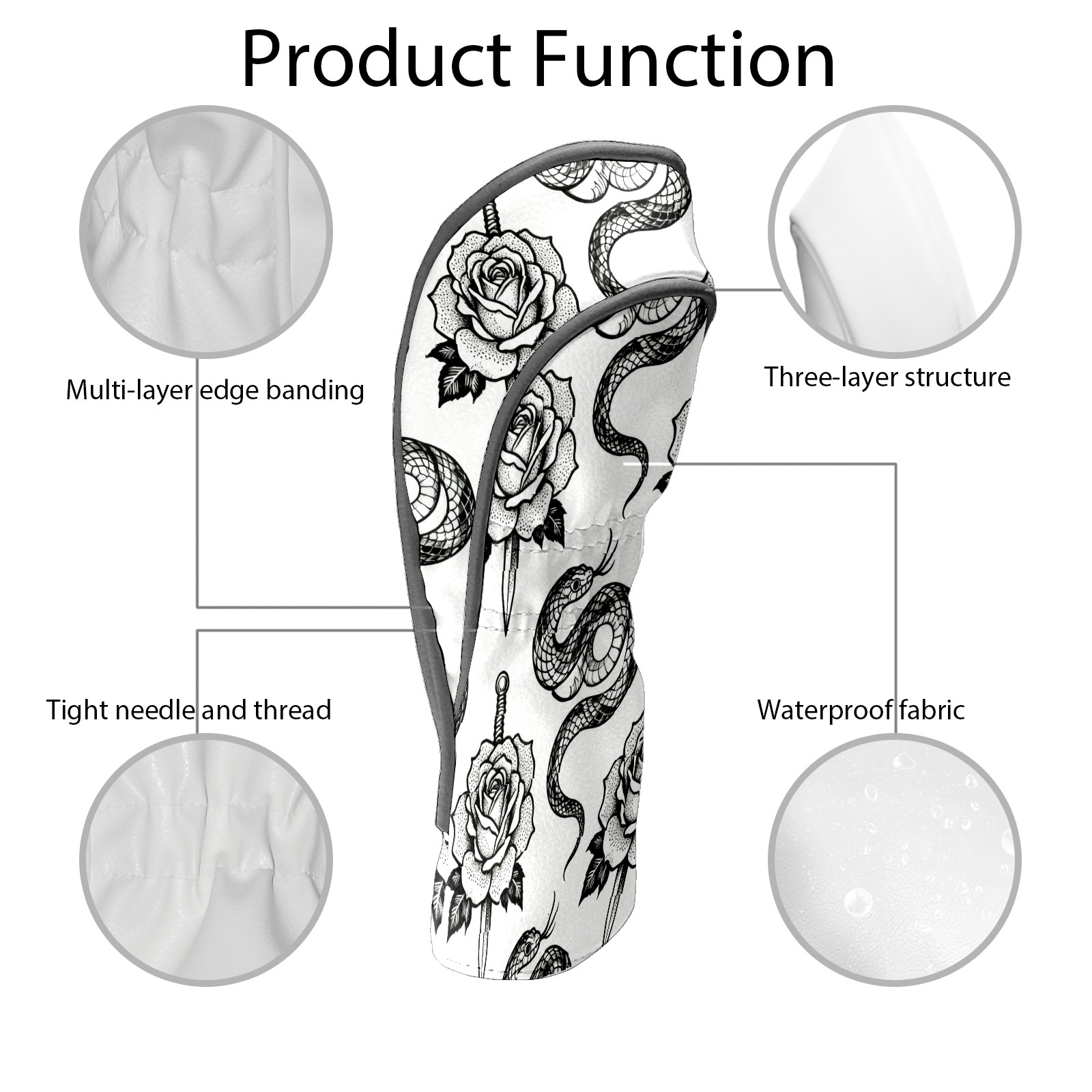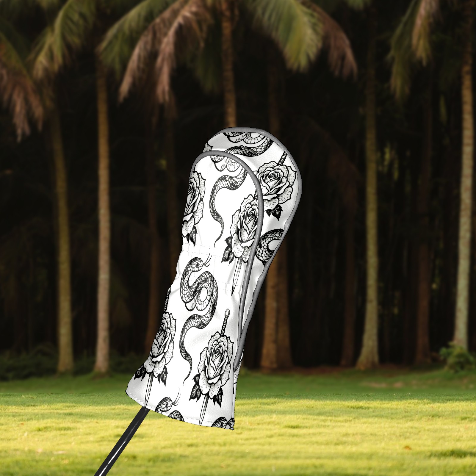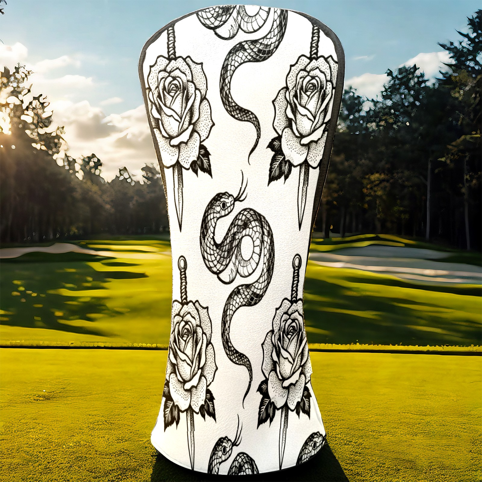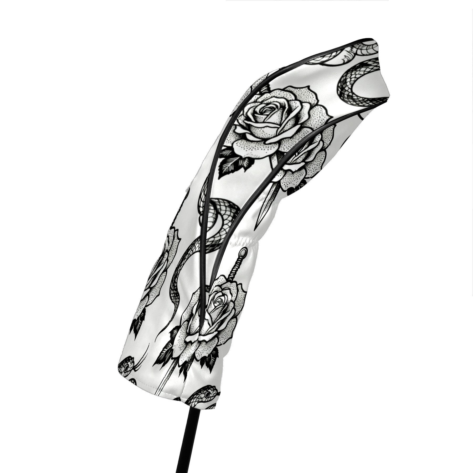 Golf Club Covers, BlackWhite RoseSnake Premium PU Leather Driver Hybrid Putter Head Covers with Velvet Lining, Waterproof Golf Gifts for Men Women