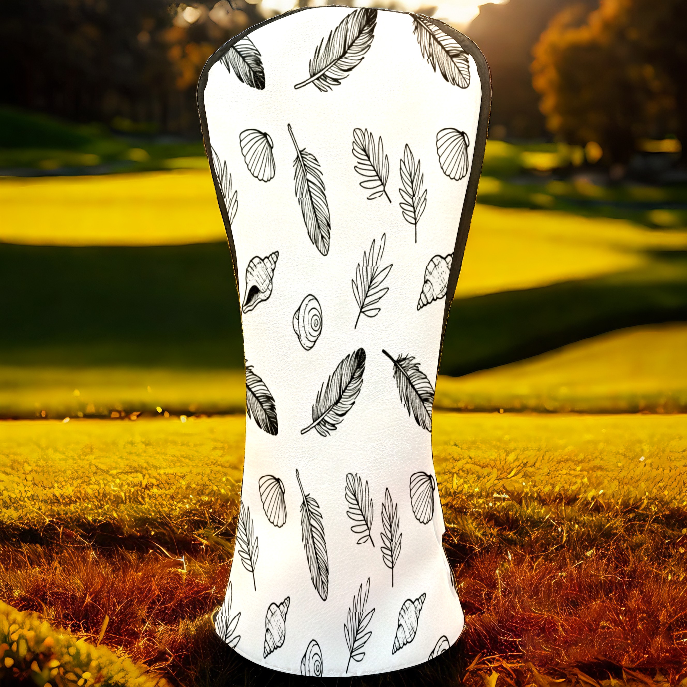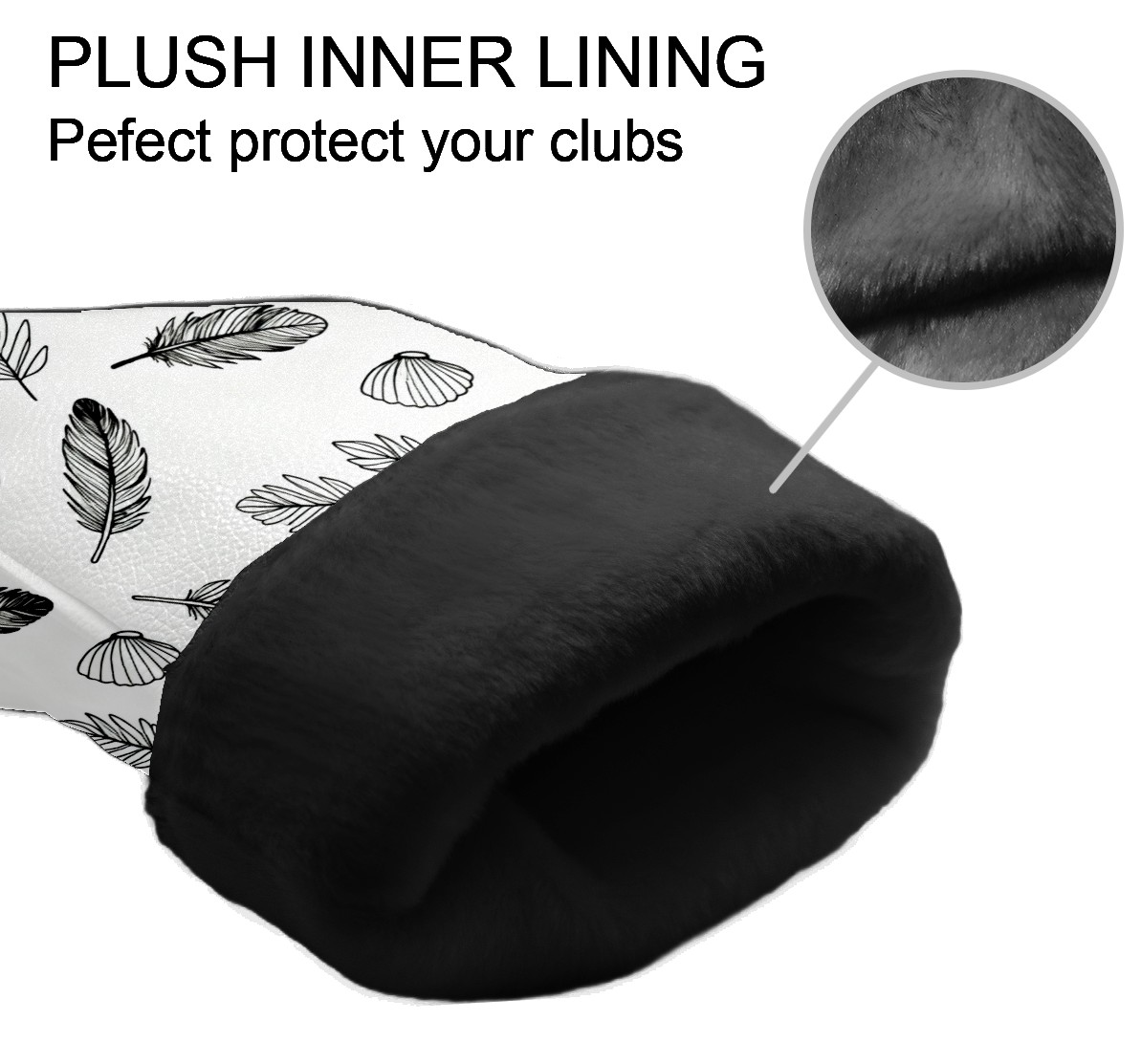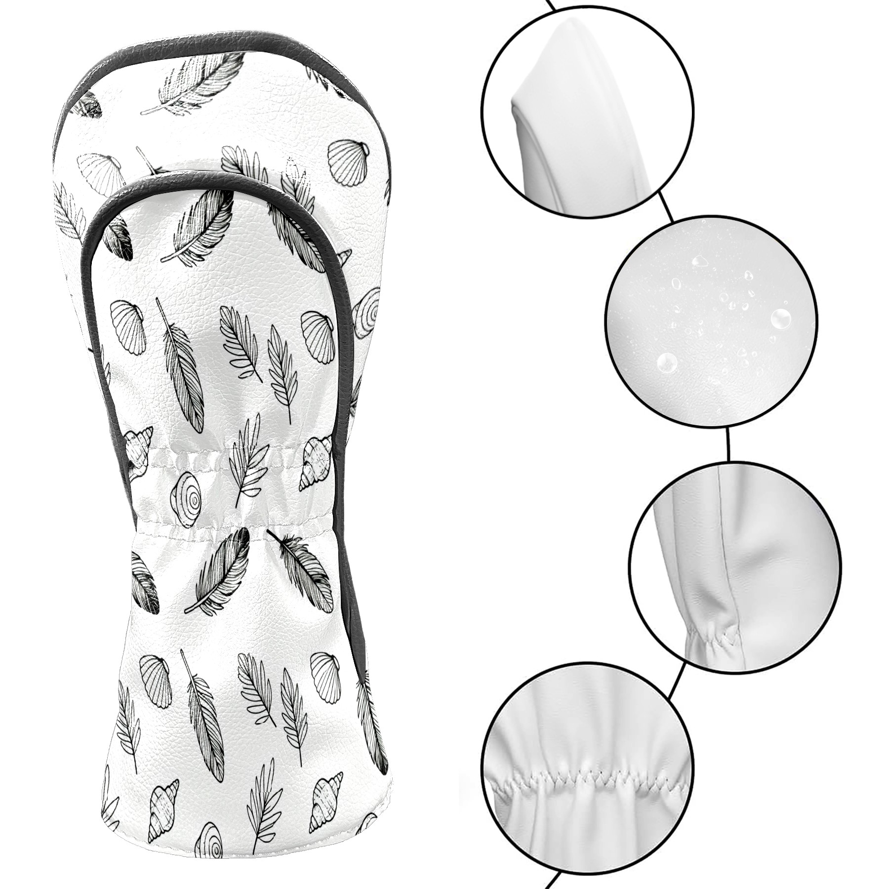 Golf Club Covers, White LeafFeather Premium PU Leather Driver Hybrid Putter Head Covers with Velvet Lining, Waterproof Golf Gifts for Men Women