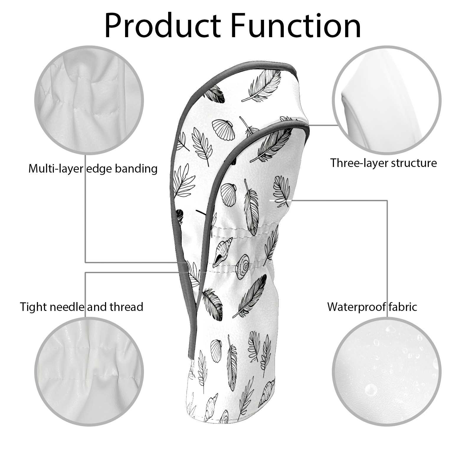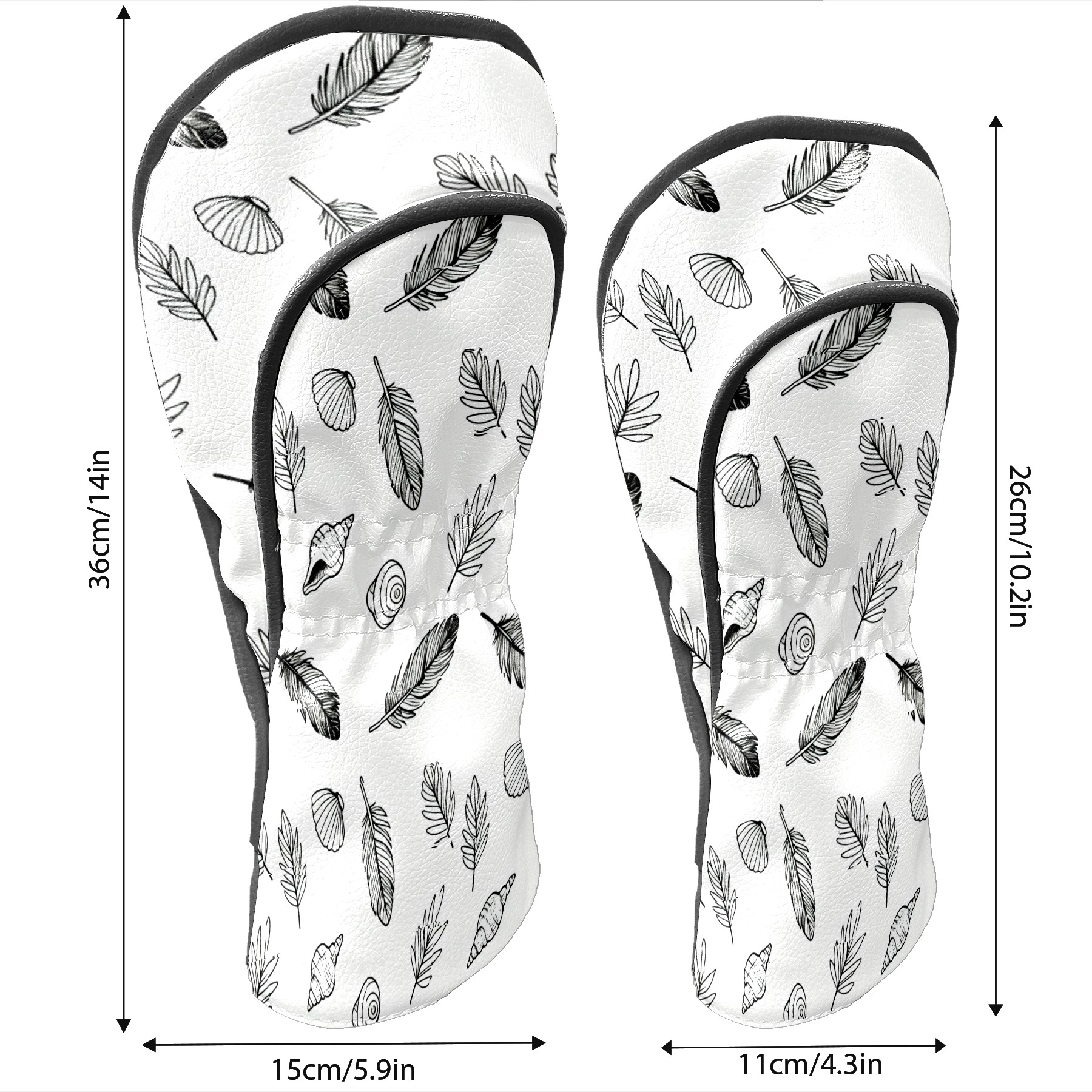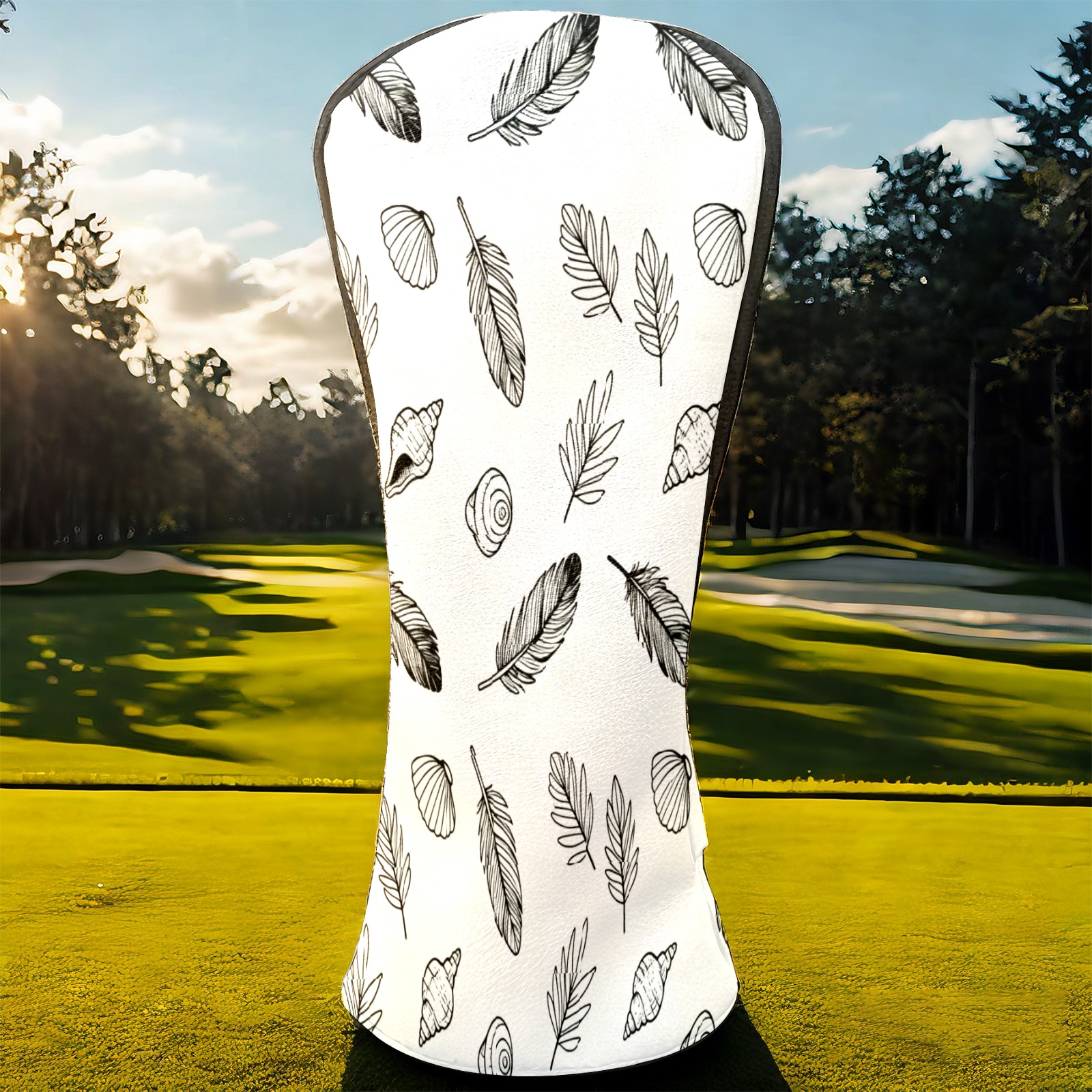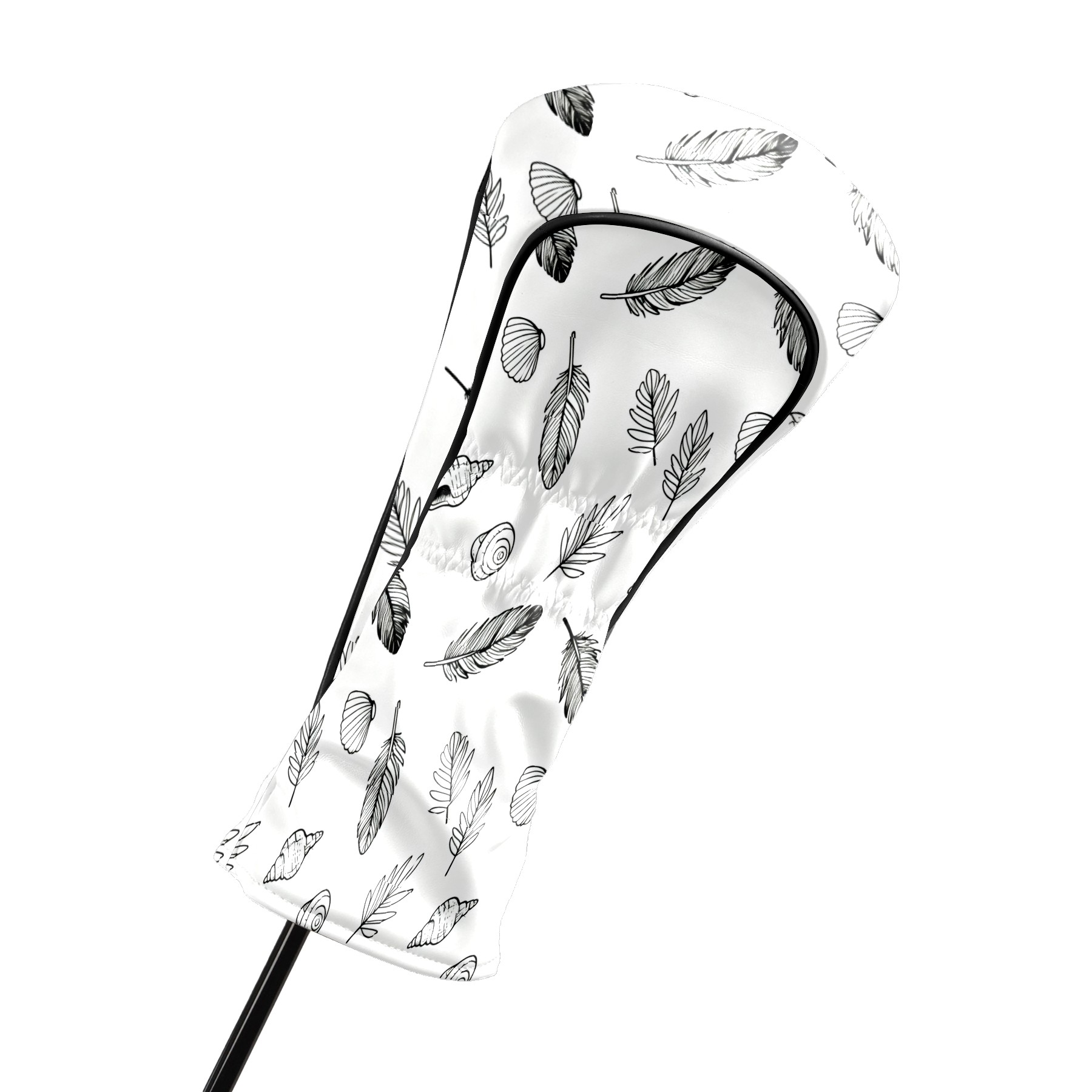 Golf Club Covers, White LeafFeather Premium PU Leather Driver Hybrid Putter Head Covers with Velvet Lining, Waterproof Golf Gifts for Men Women