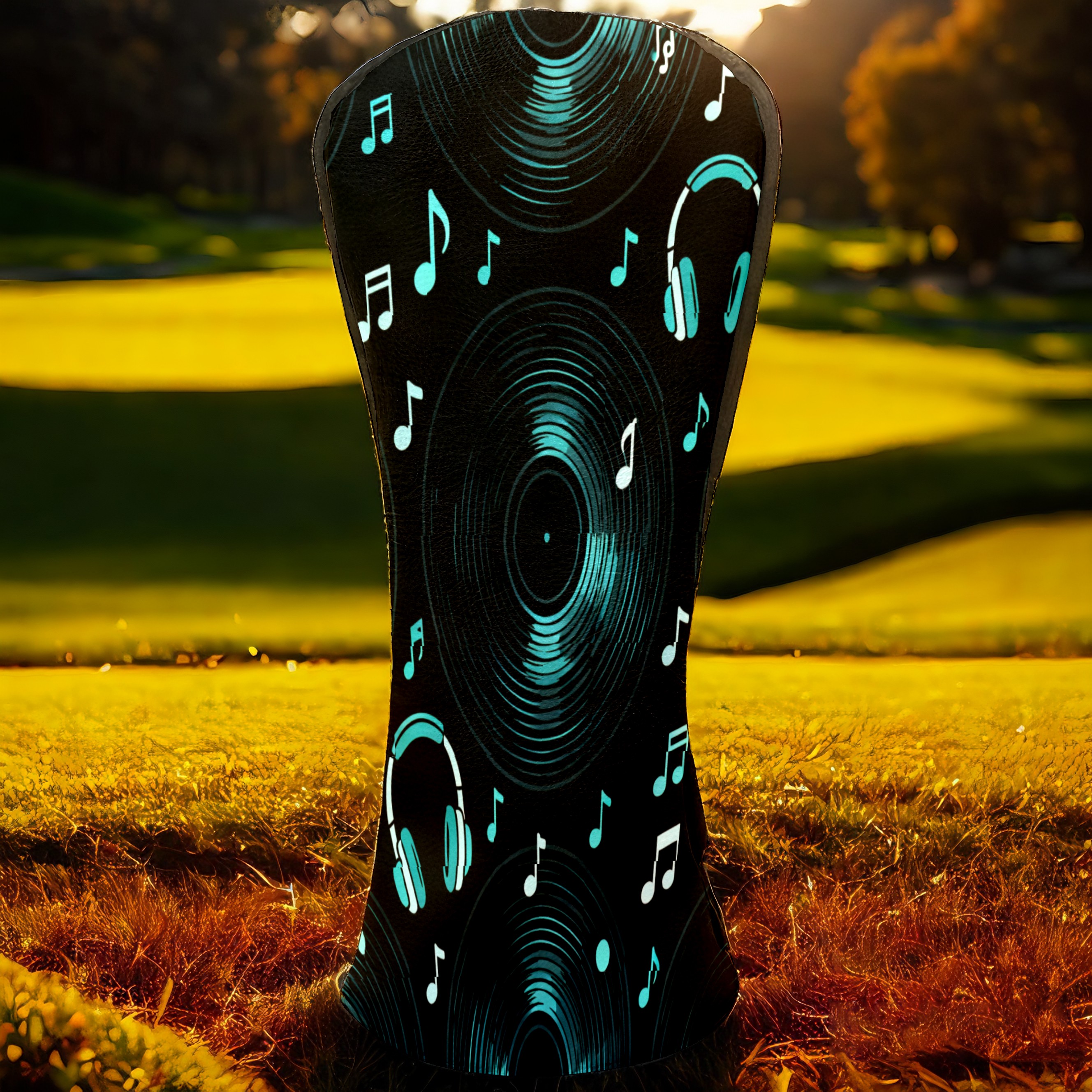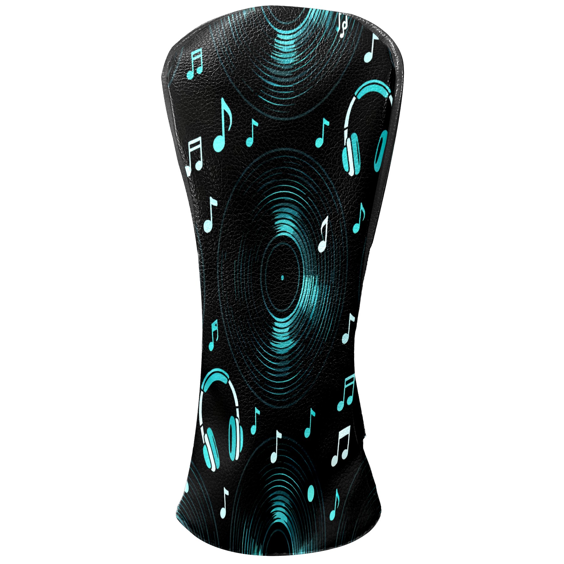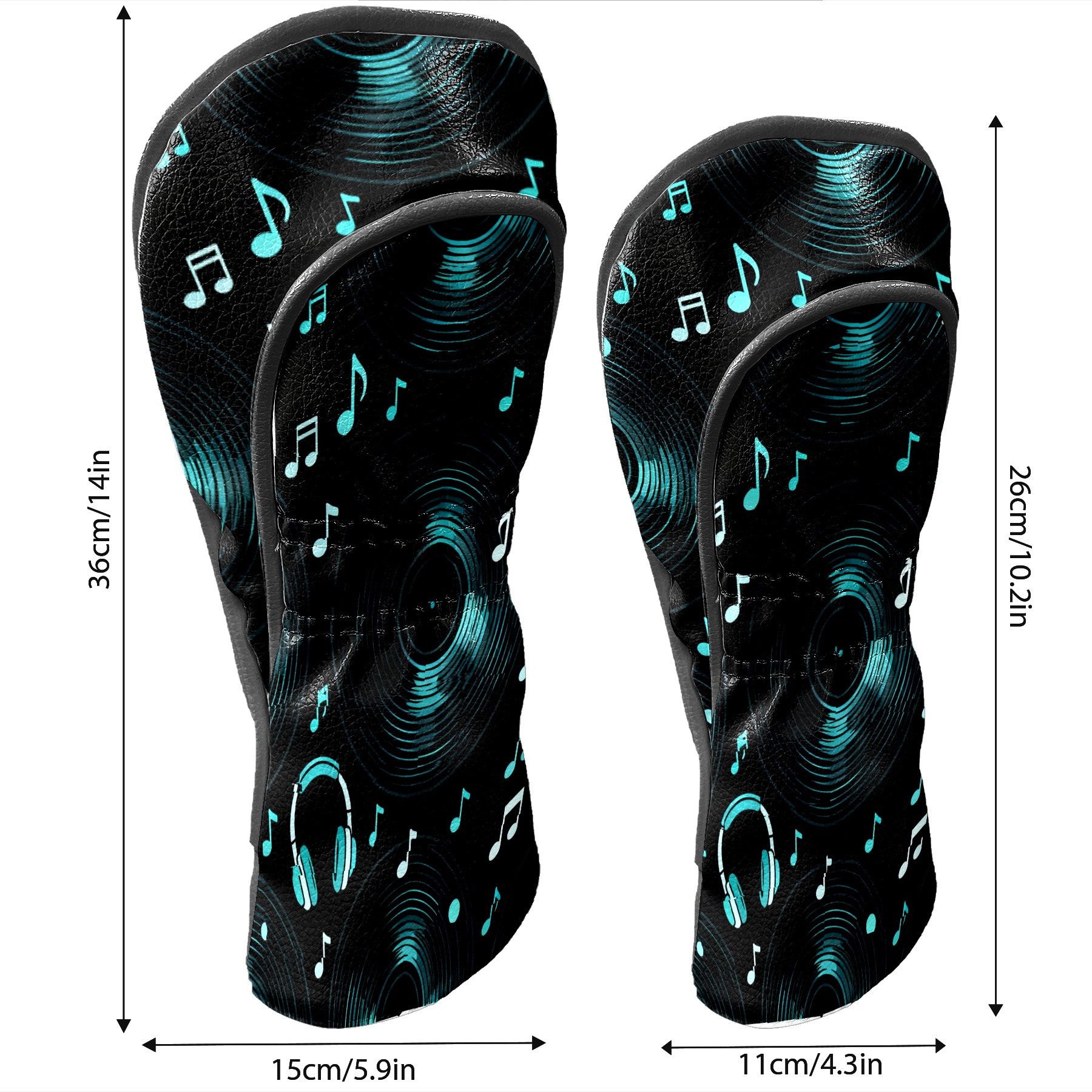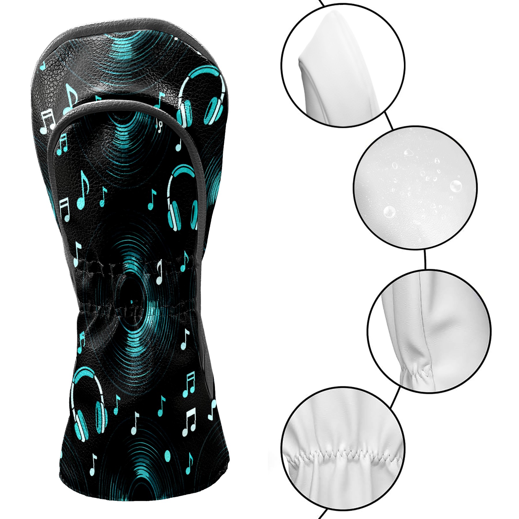 Golf Club Covers, Black MusicHeadphone Premium PU Leather Driver Hybrid Putter Head Covers with Velvet Lining, Waterproof Golf Gifts for Men Women