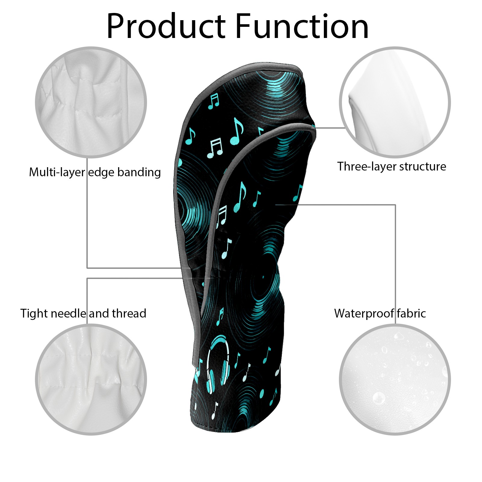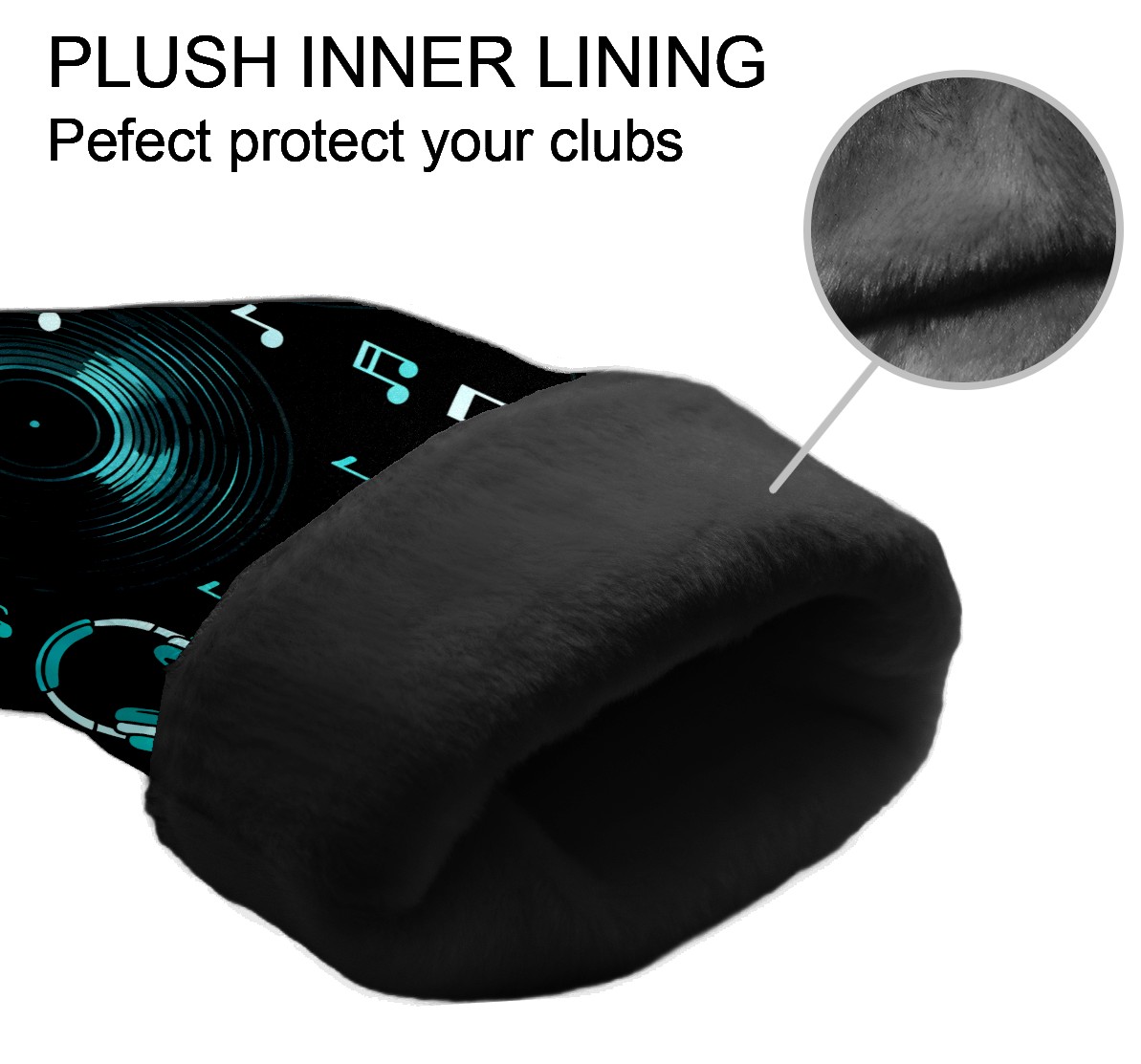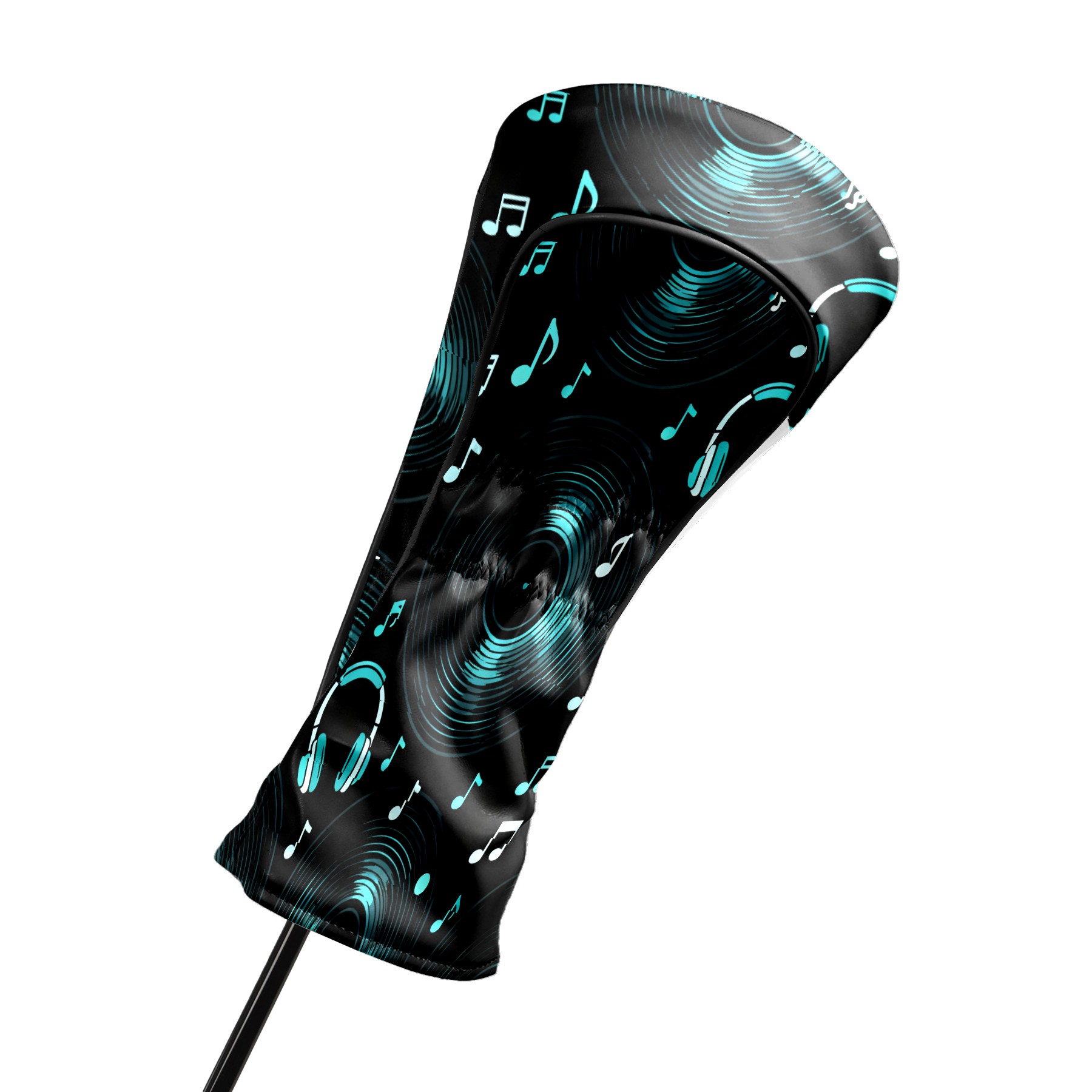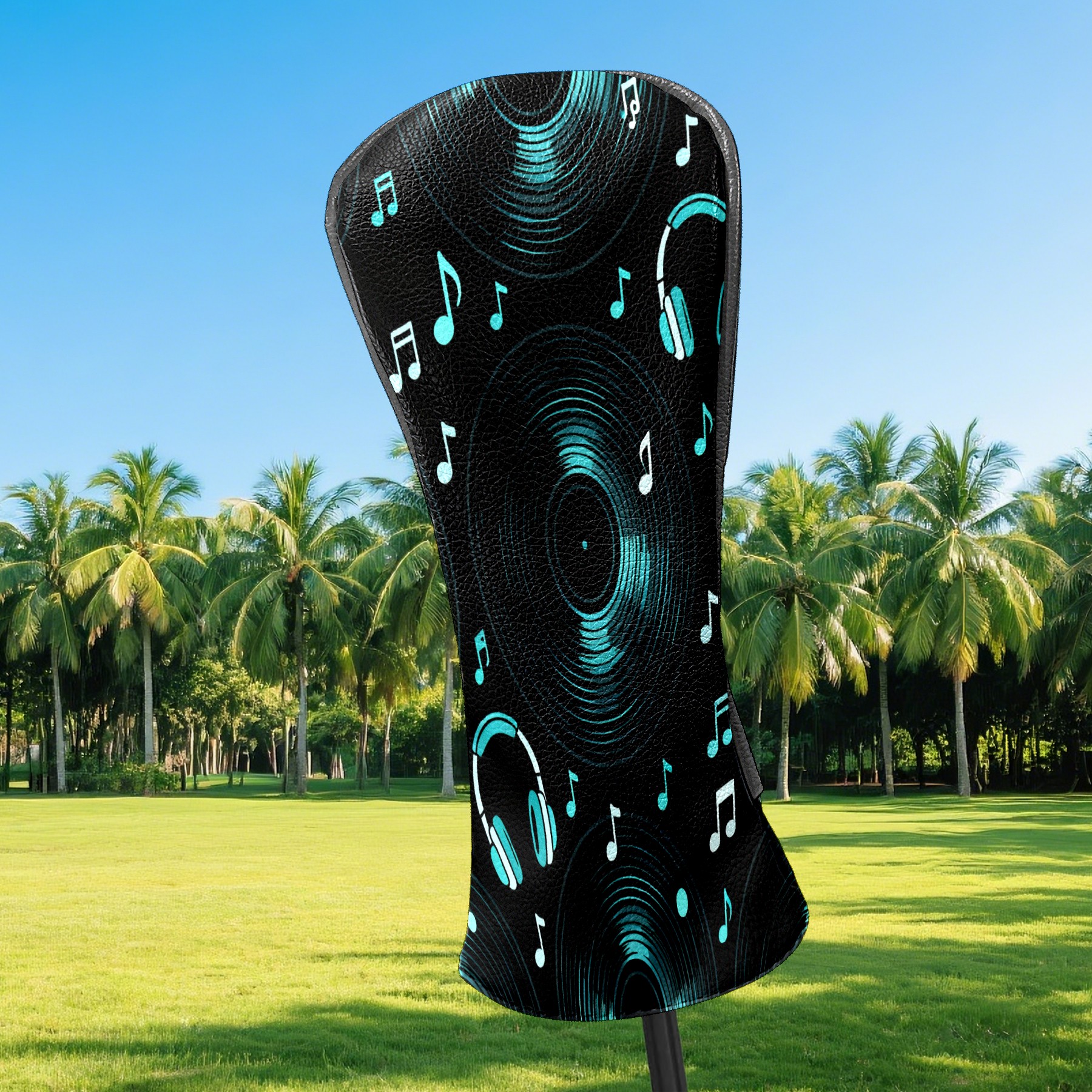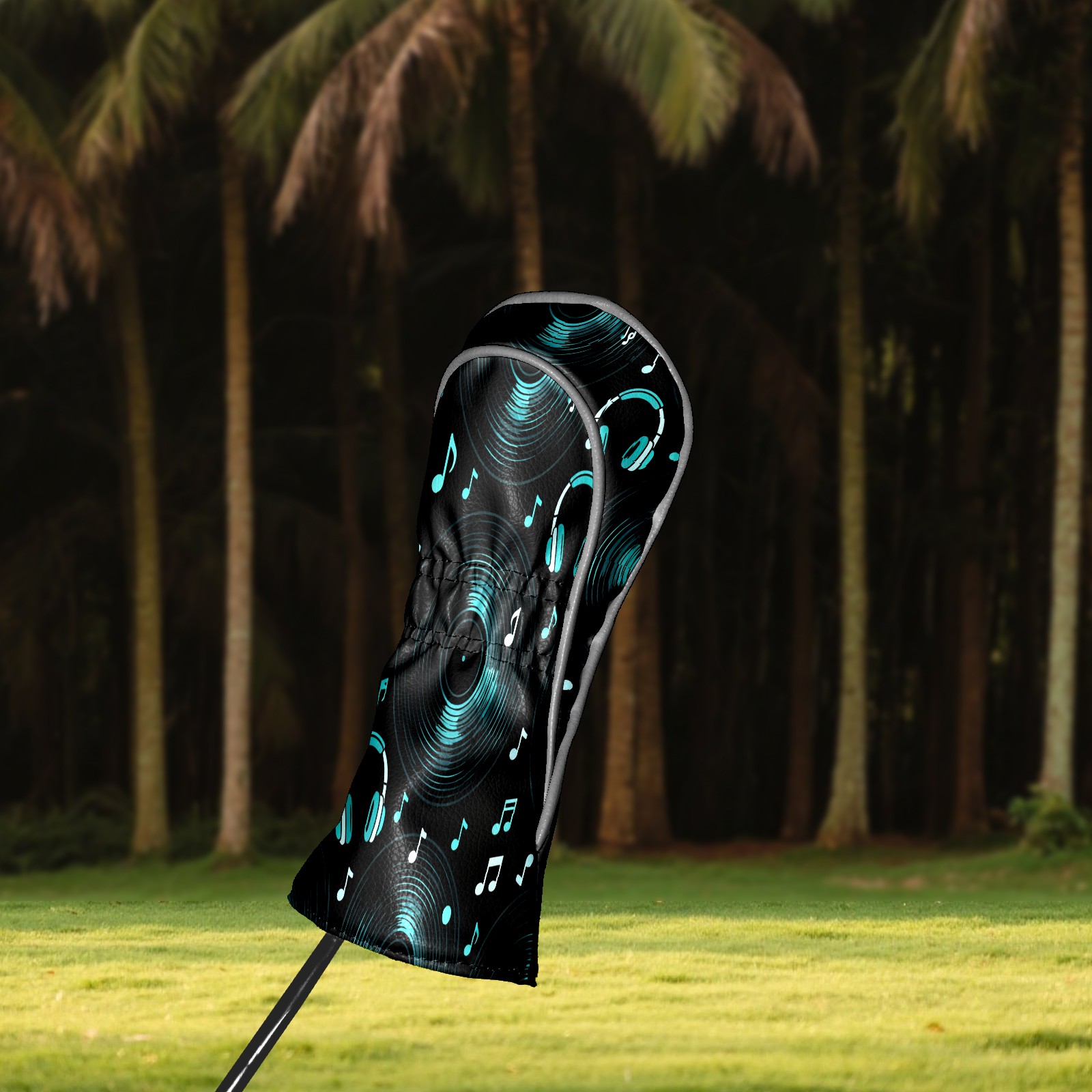 Golf Club Covers, Black MusicHeadphone Premium PU Leather Driver Hybrid Putter Head Covers with Velvet Lining, Waterproof Golf Gifts for Men Women