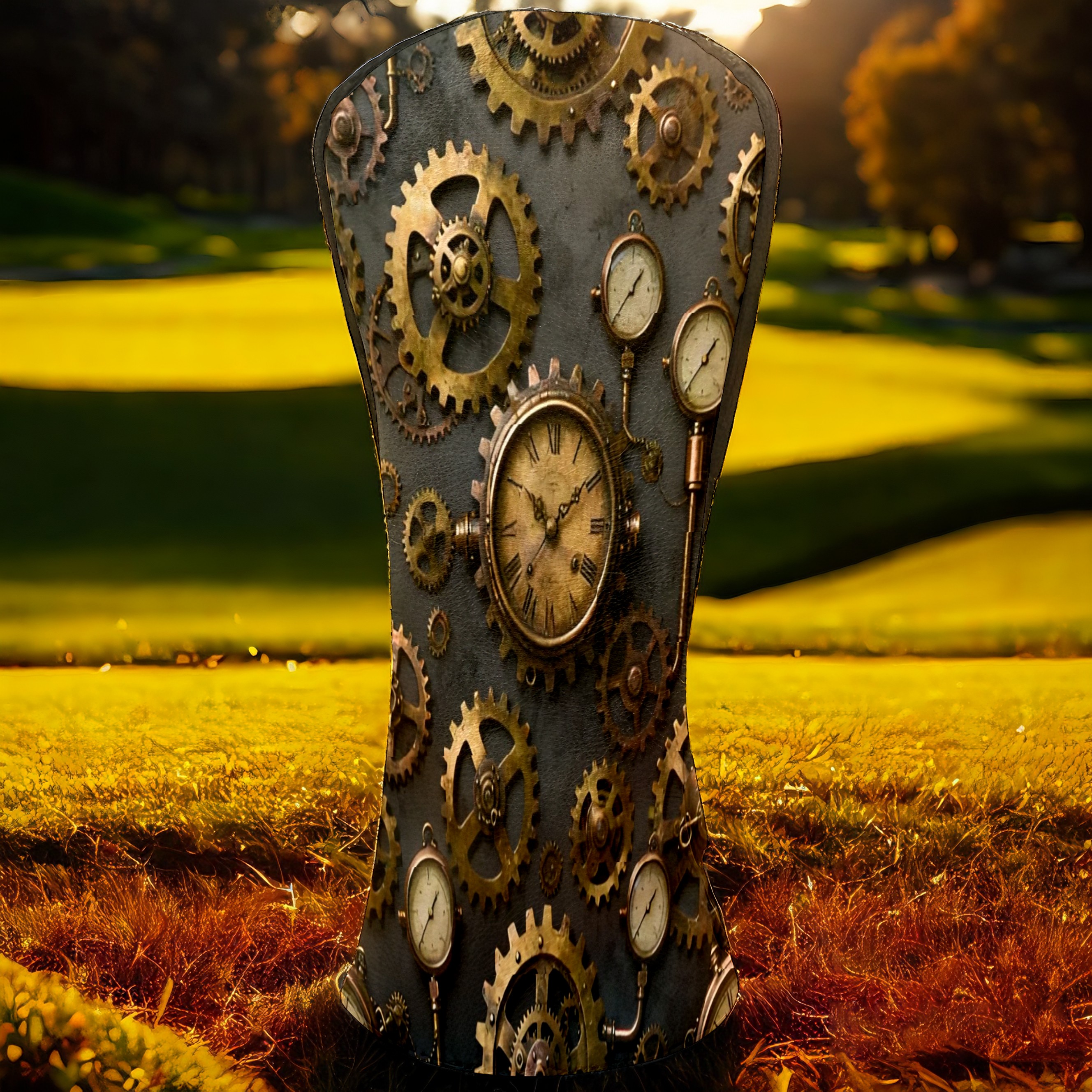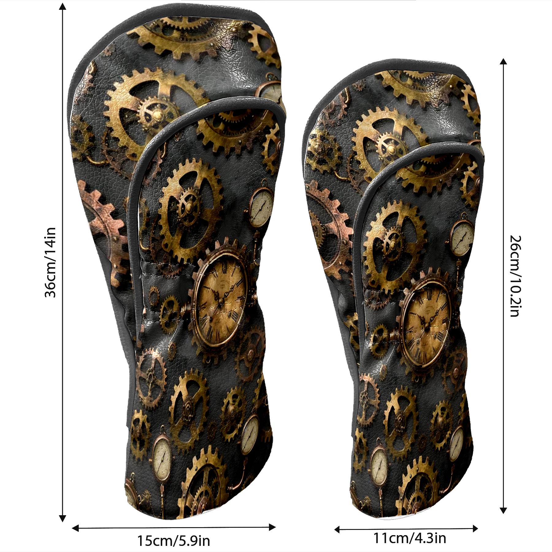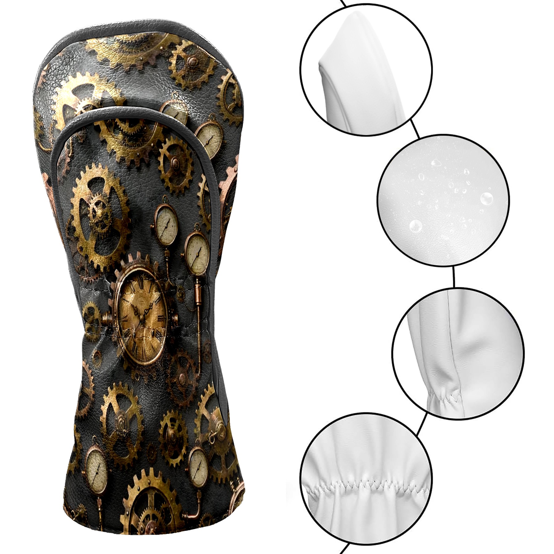 Golf Club Covers, Brown SteampunkGear Premium PU Leather Driver Hybrid Putter Head Covers with Velvet Lining, Waterproof Golf Gifts for Men Women