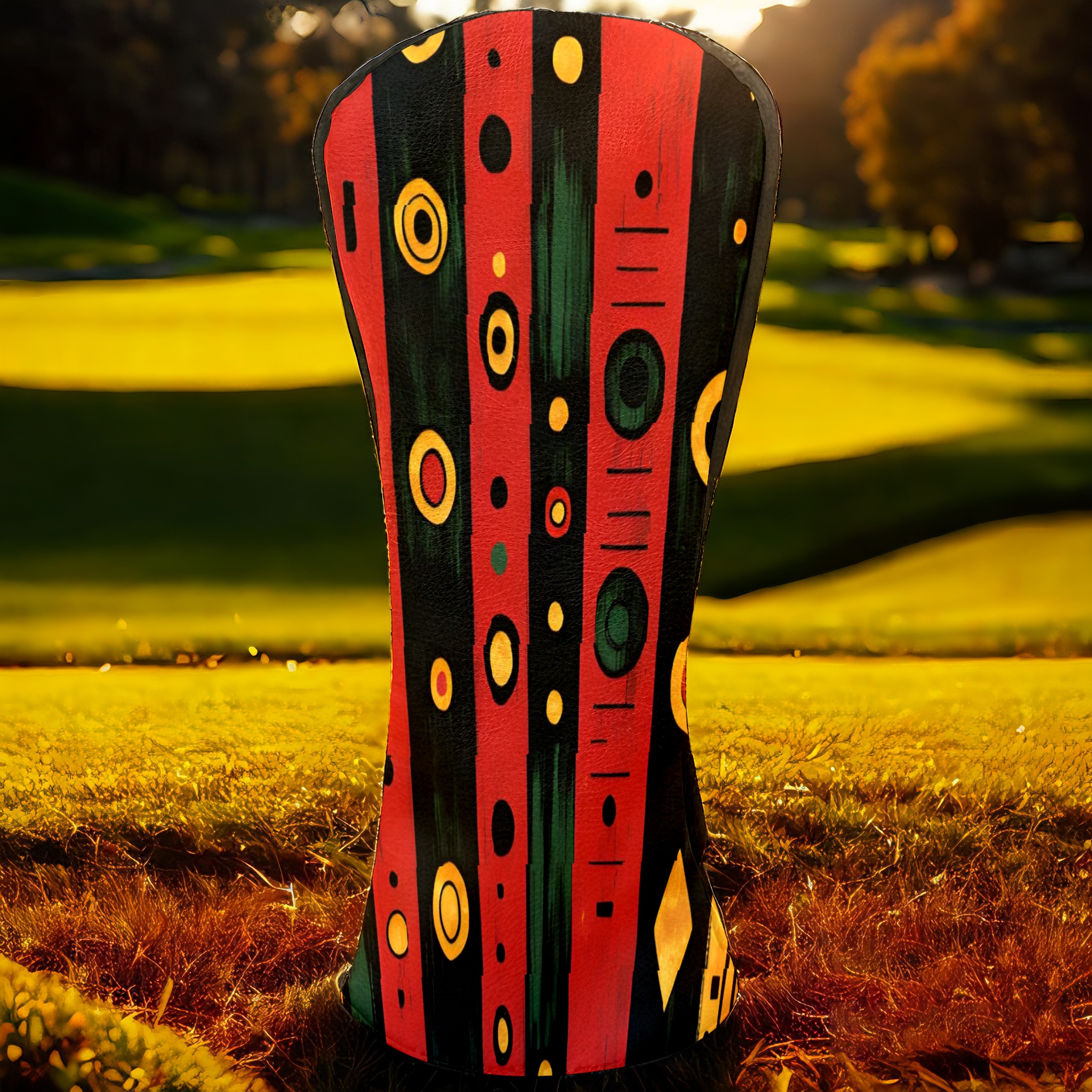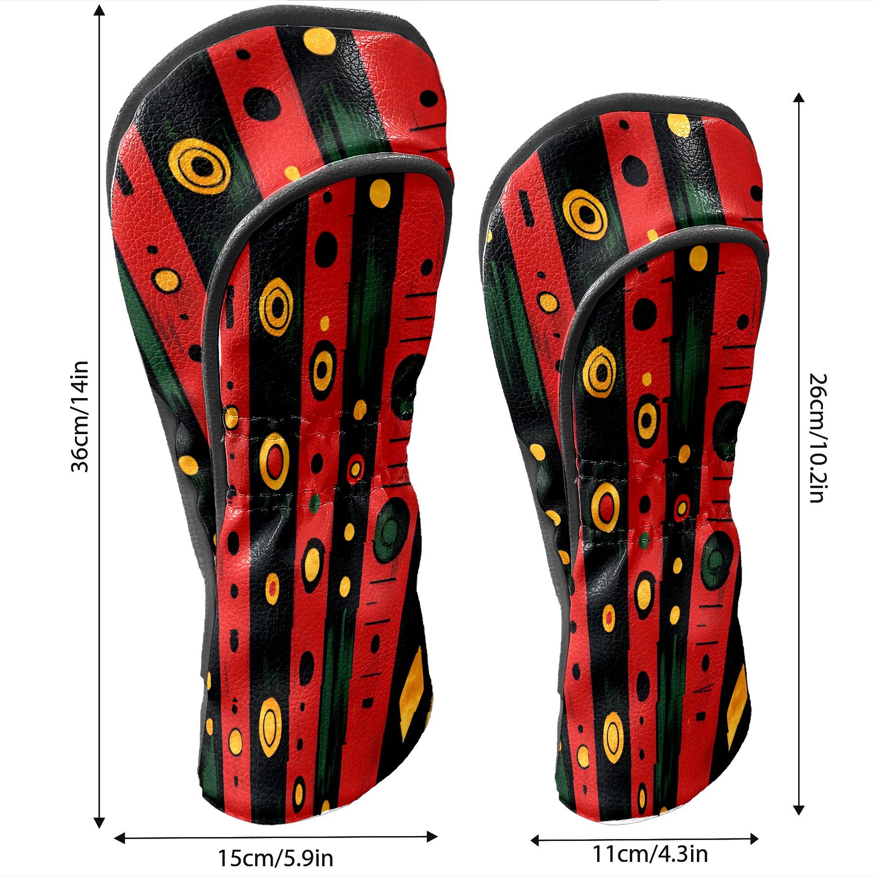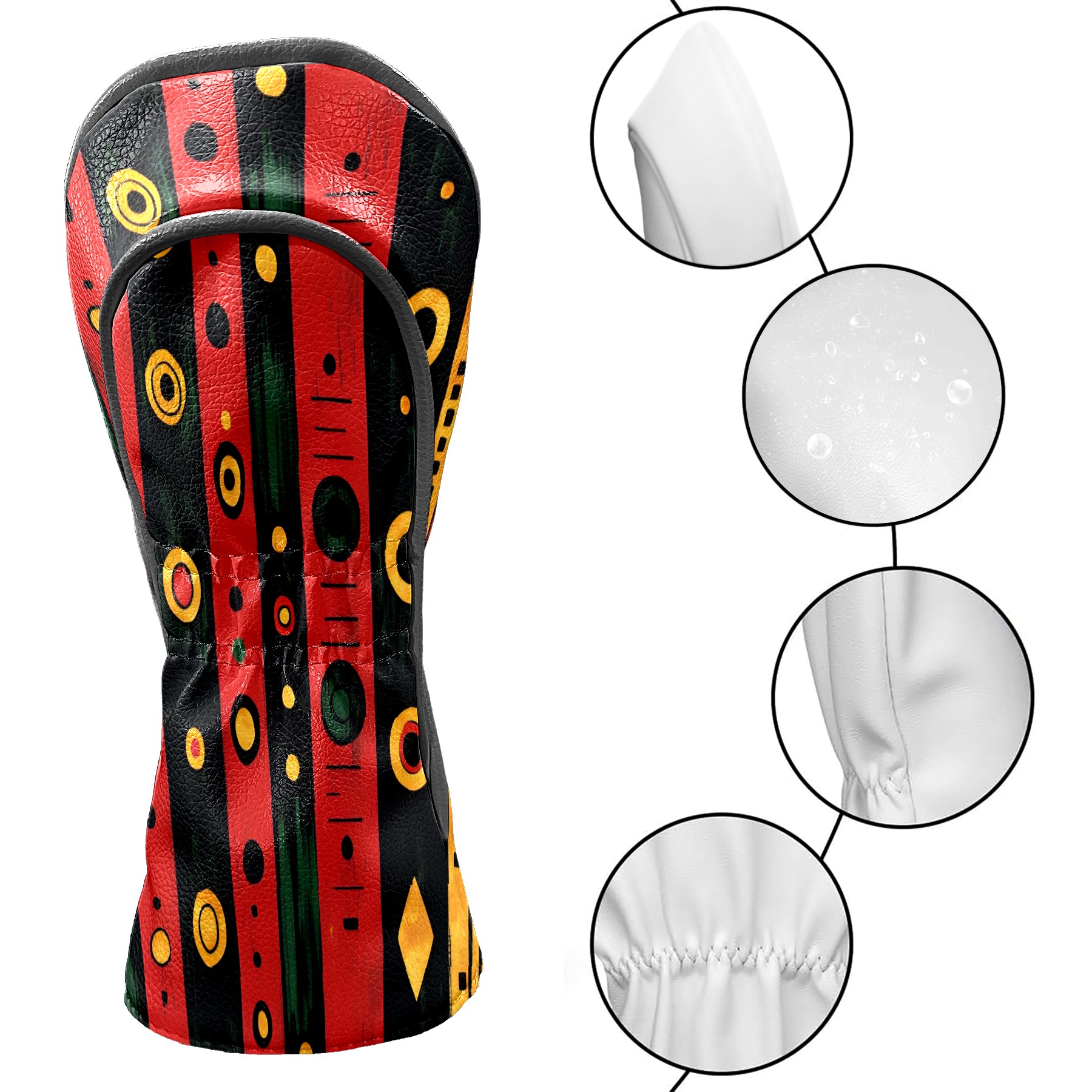 Golf Club Covers, Red GeometricStripe Premium PU Leather Driver Hybrid Putter Head Covers with Velvet Lining, Waterproof Golf Gifts for Men Women