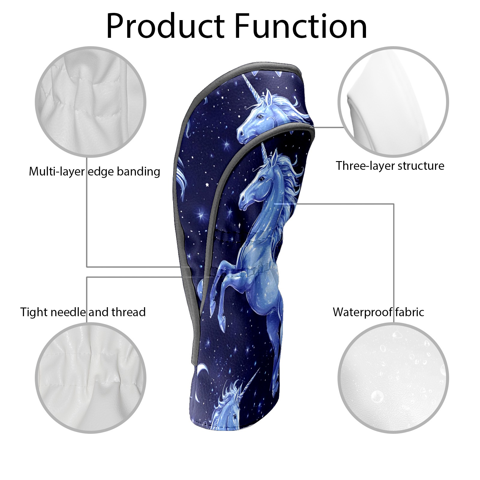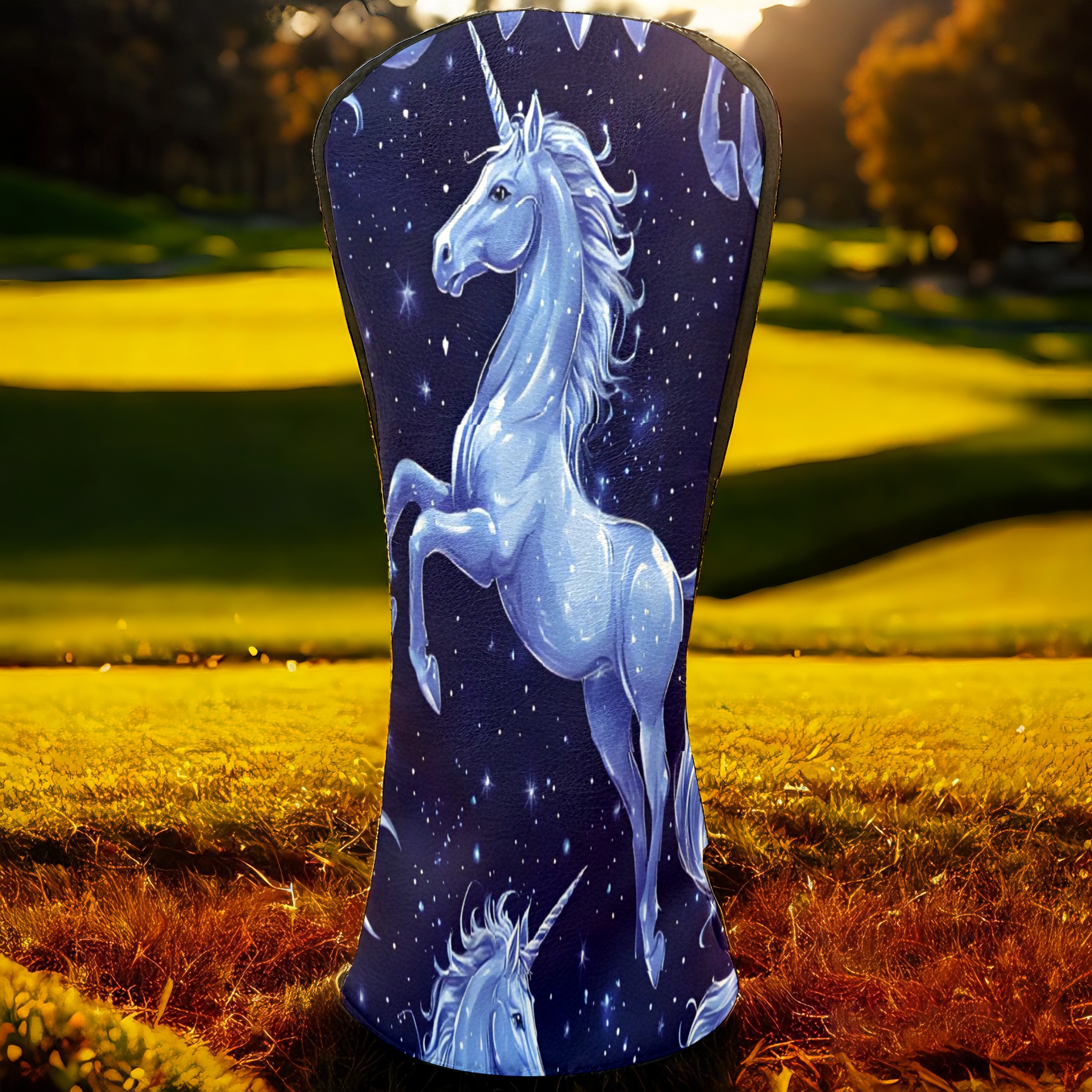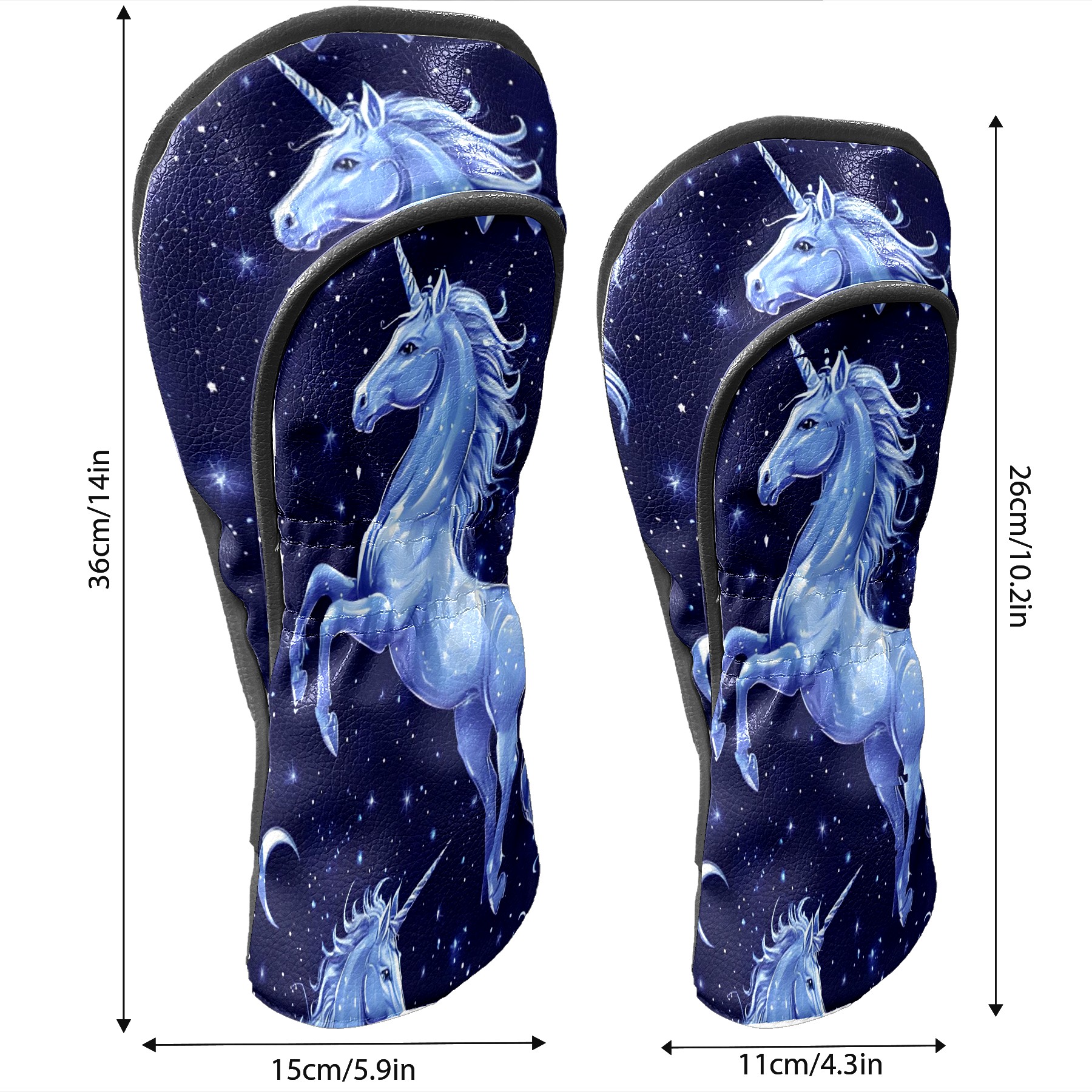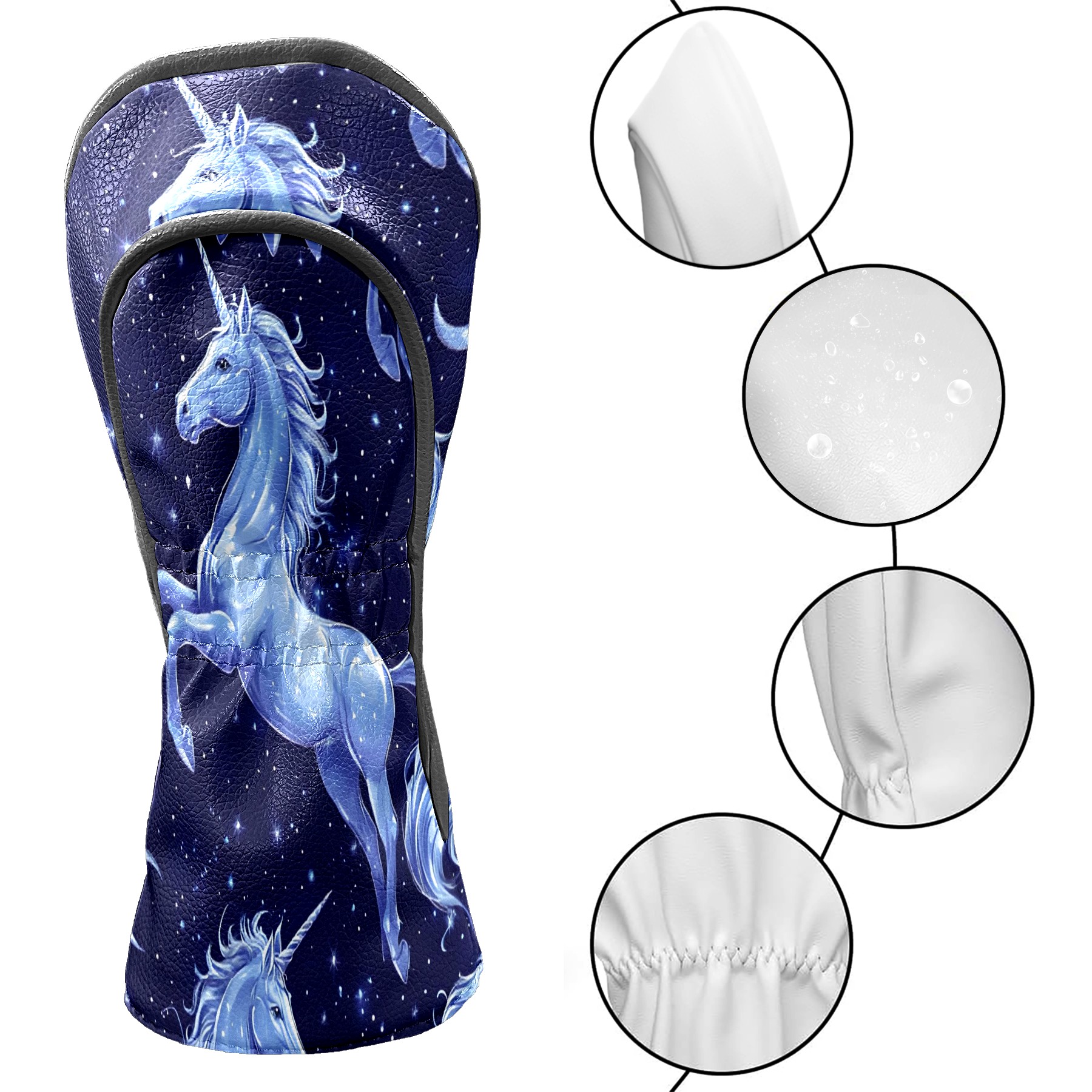 Golf Club Covers, Blue UnicornStar Premium PU Leather Driver Hybrid Putter Head Covers with Velvet Lining, Waterproof Golf Gifts for Men Women