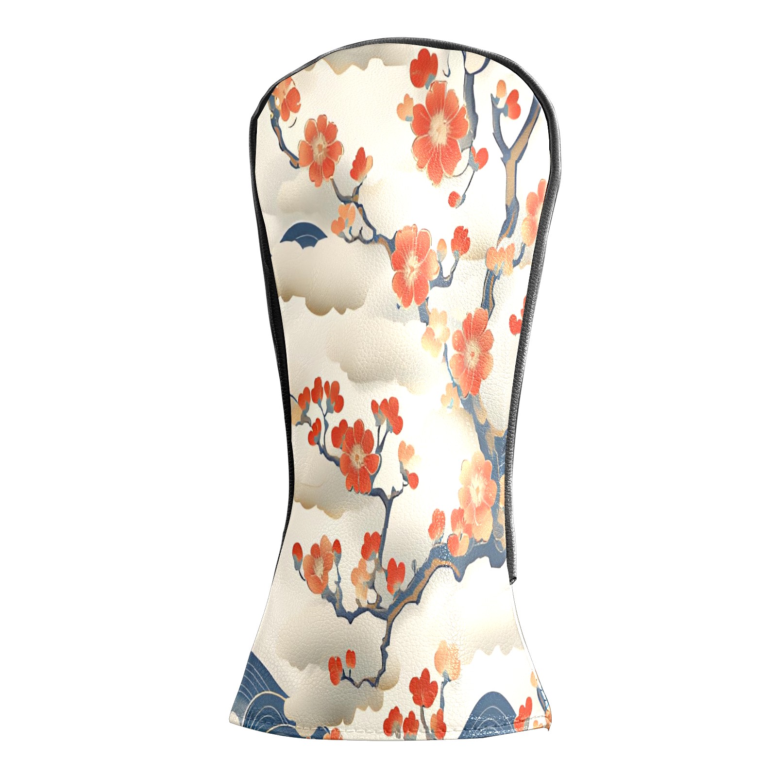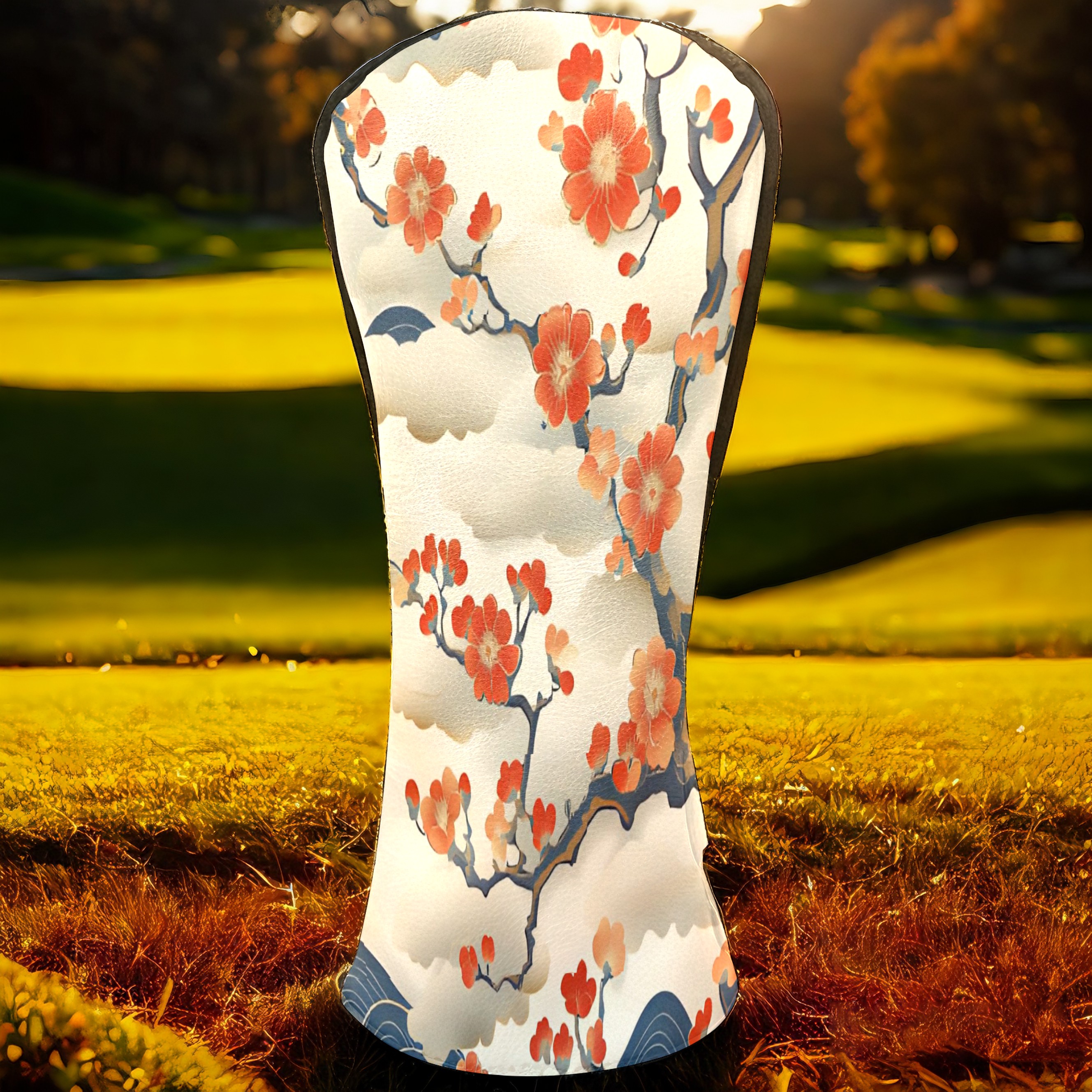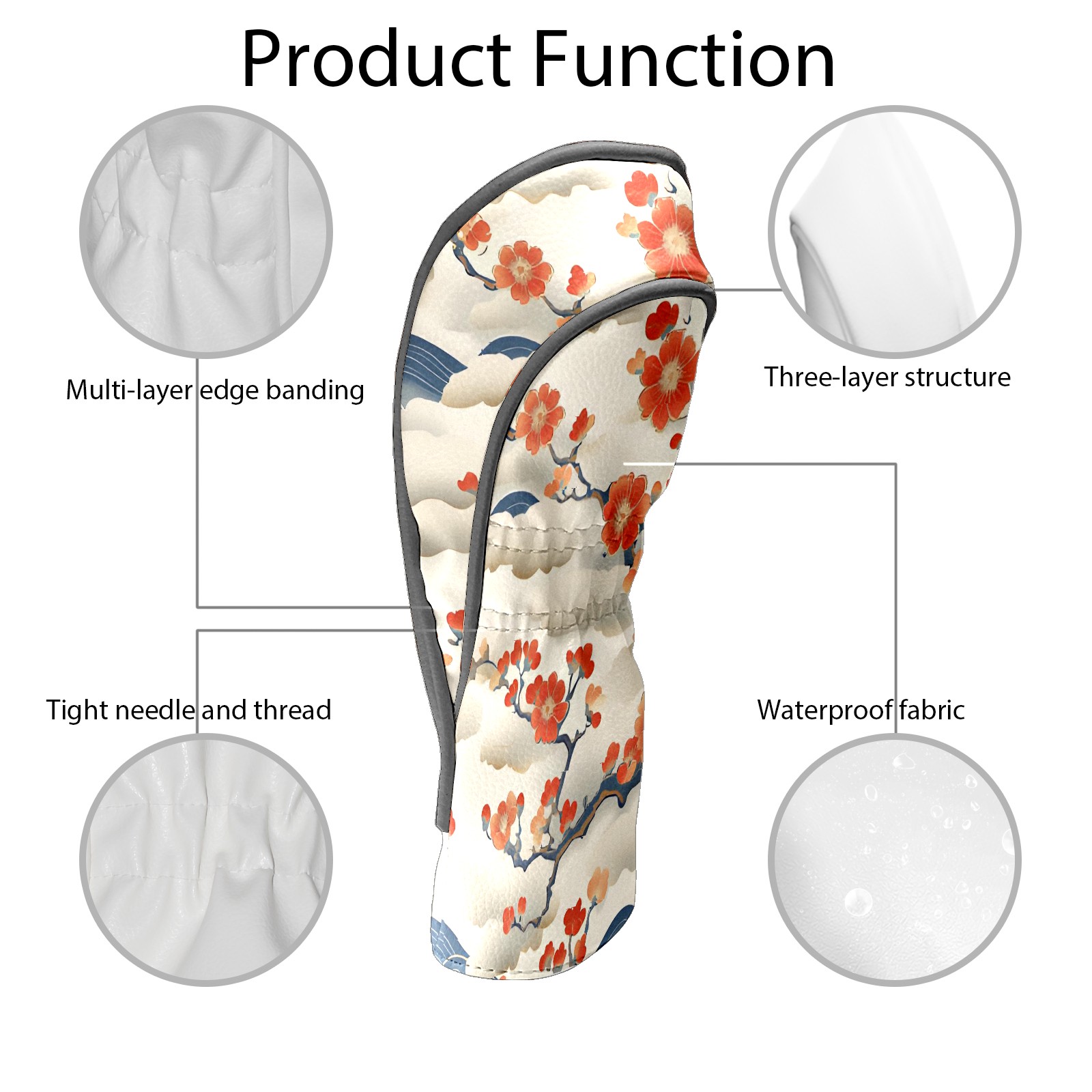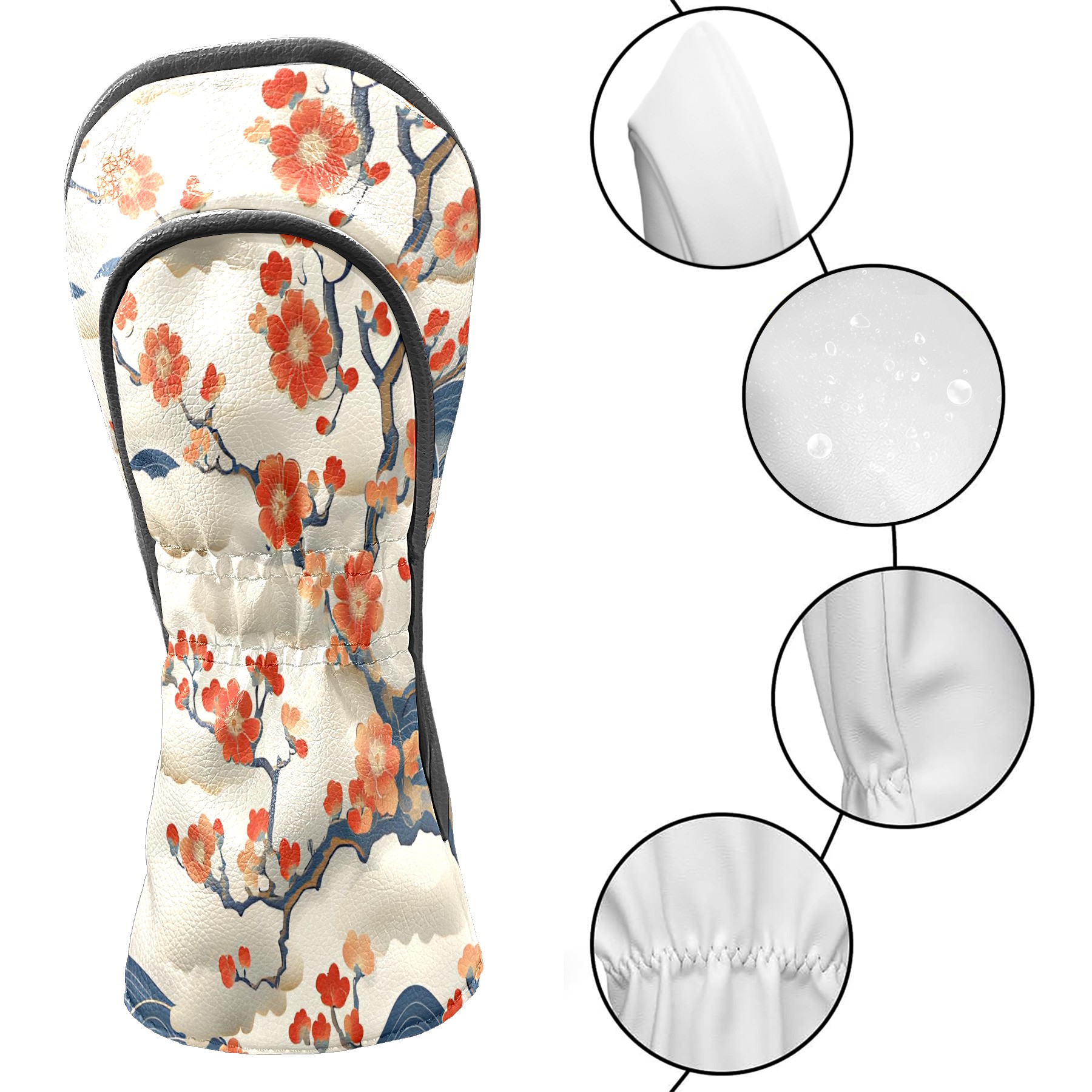 Golf Club Covers, White CherryBlossomWave Premium PU Leather Driver Hybrid Putter Head Covers with Velvet Lining, Waterproof Golf Gifts for Men Women