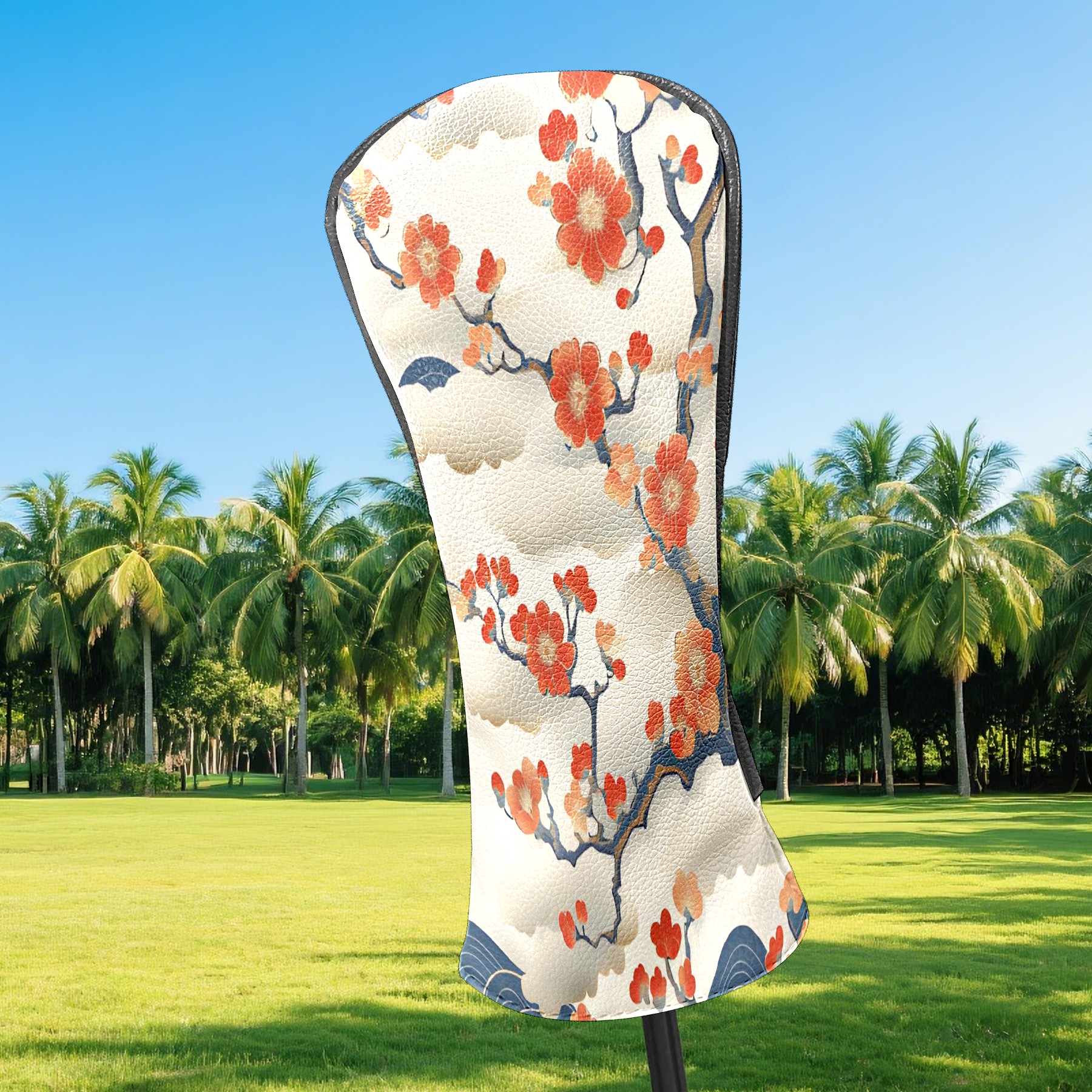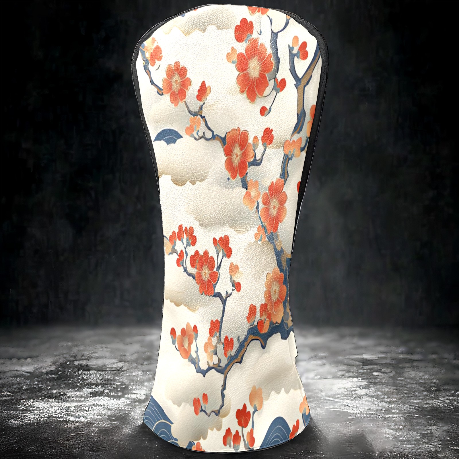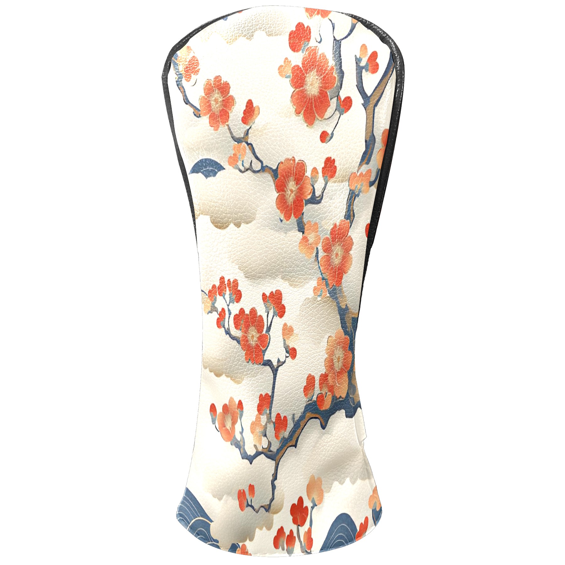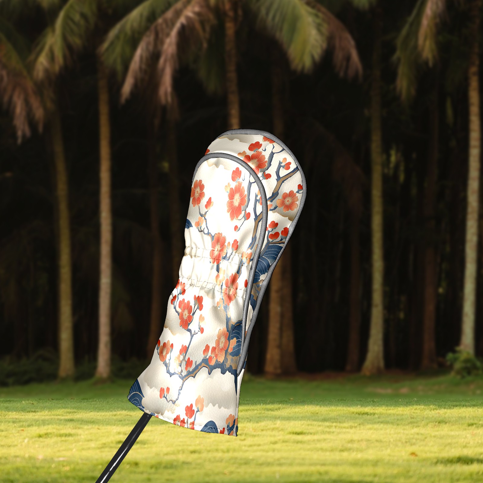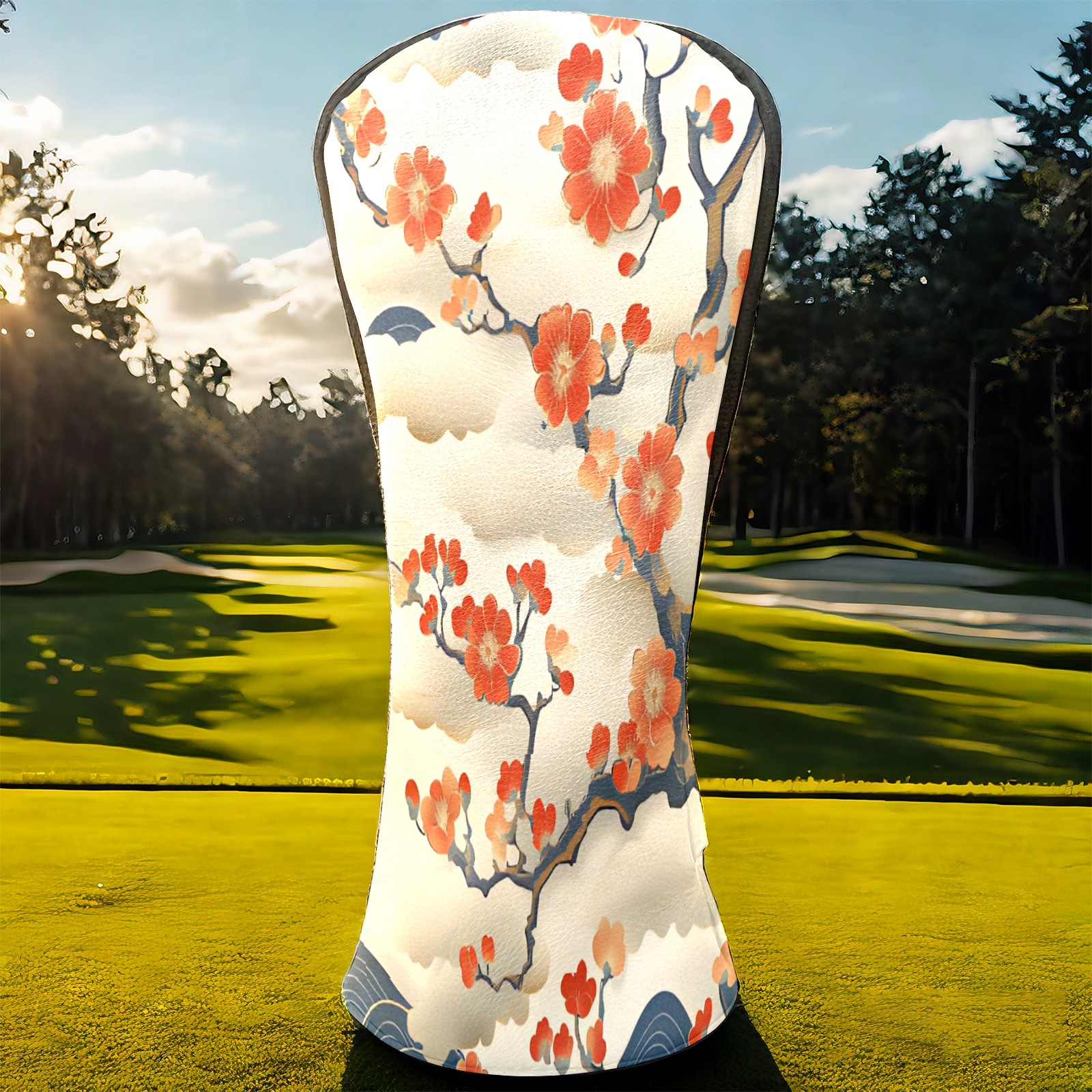 Golf Club Covers, White CherryBlossomWave Premium PU Leather Driver Hybrid Putter Head Covers with Velvet Lining, Waterproof Golf Gifts for Men Women