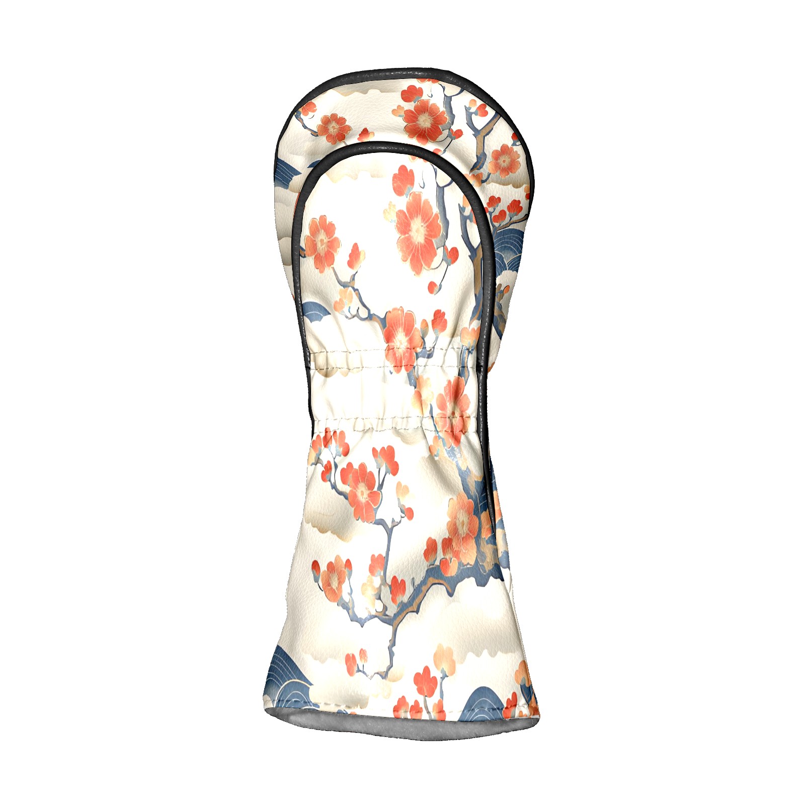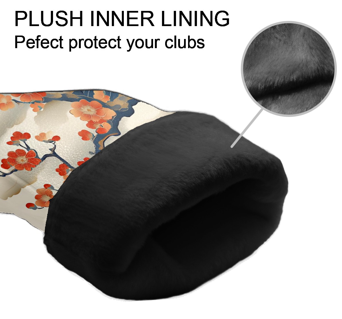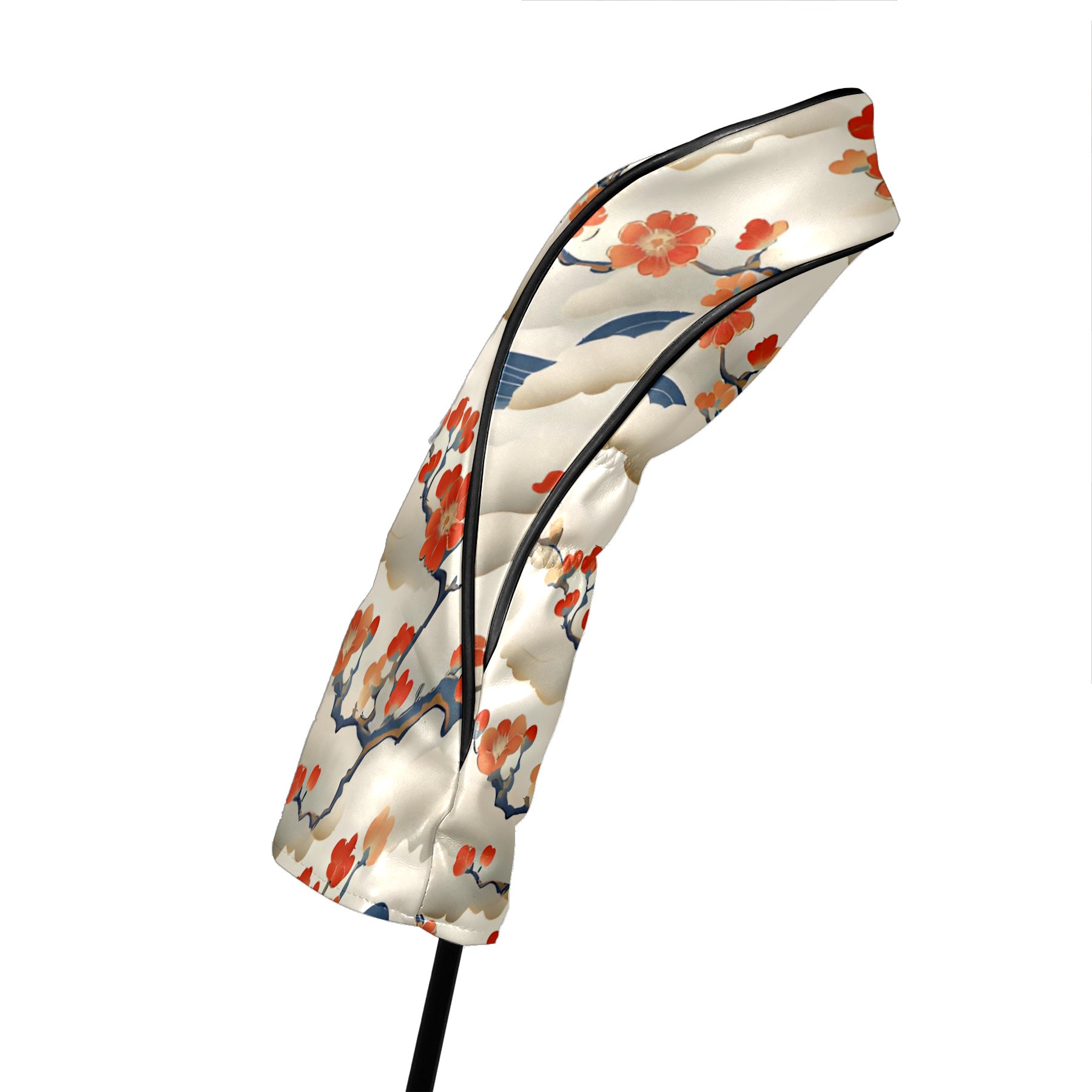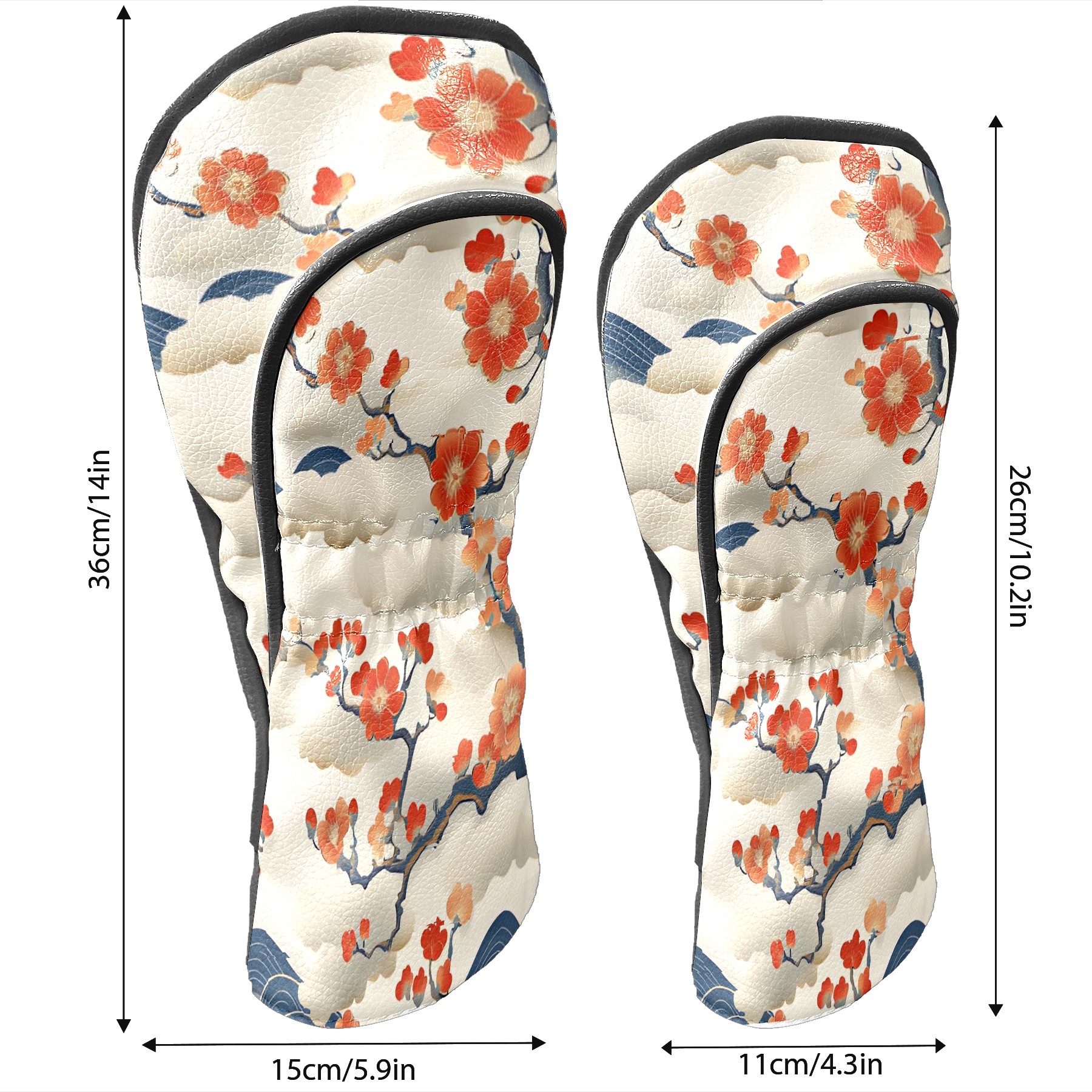 Golf Club Covers, White CherryBlossomWave Premium PU Leather Driver Hybrid Putter Head Covers with Velvet Lining, Waterproof Golf Gifts for Men Women