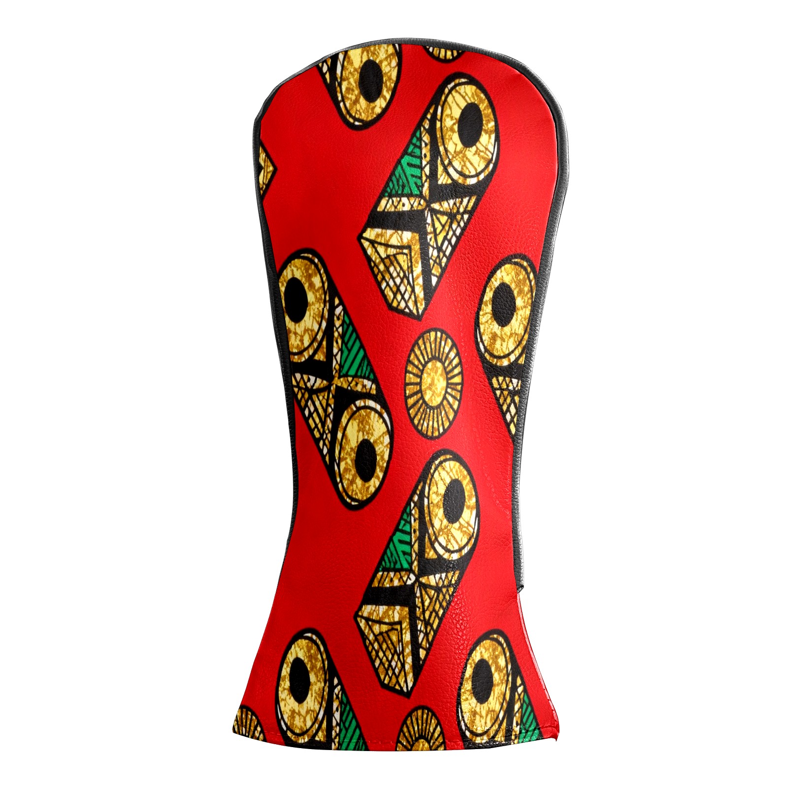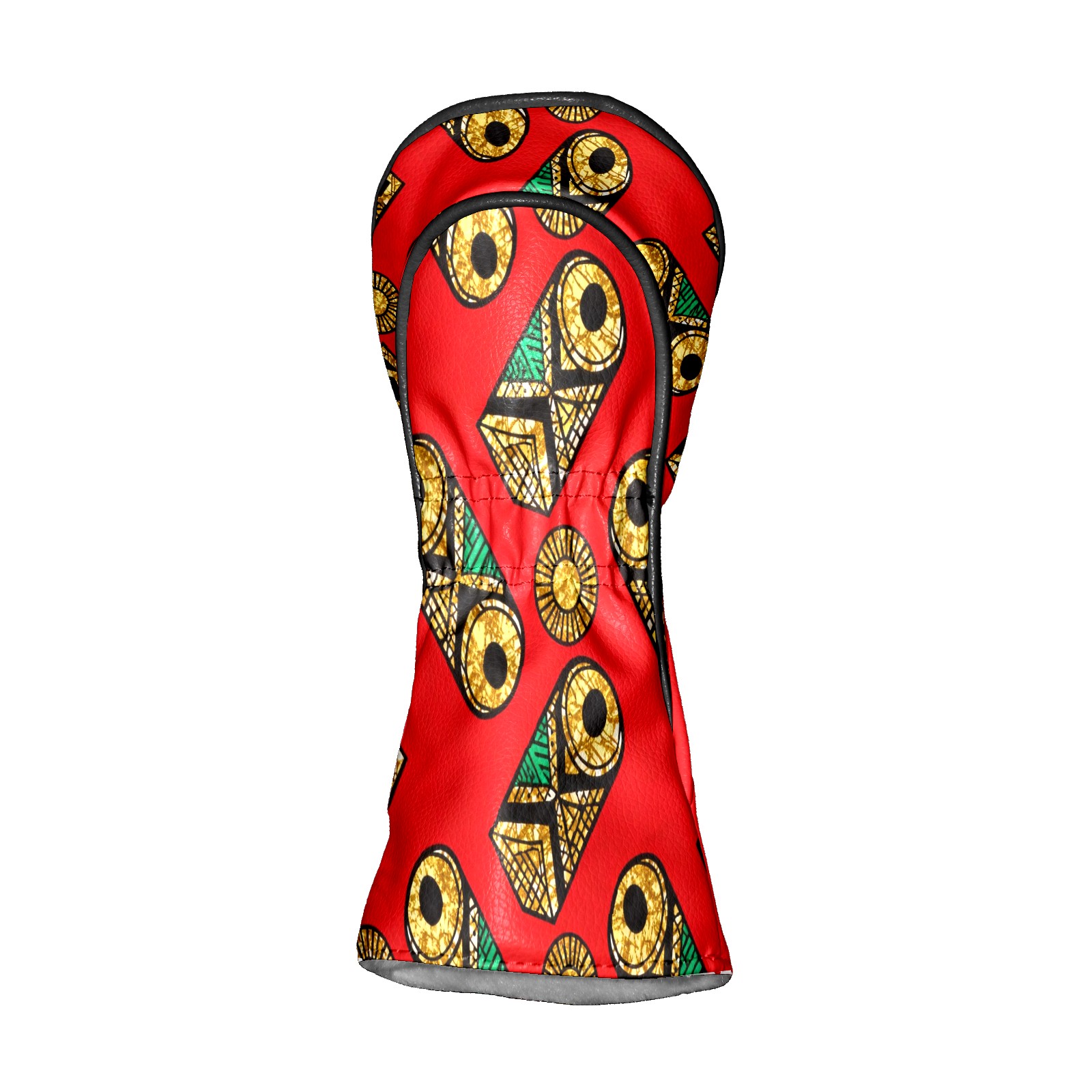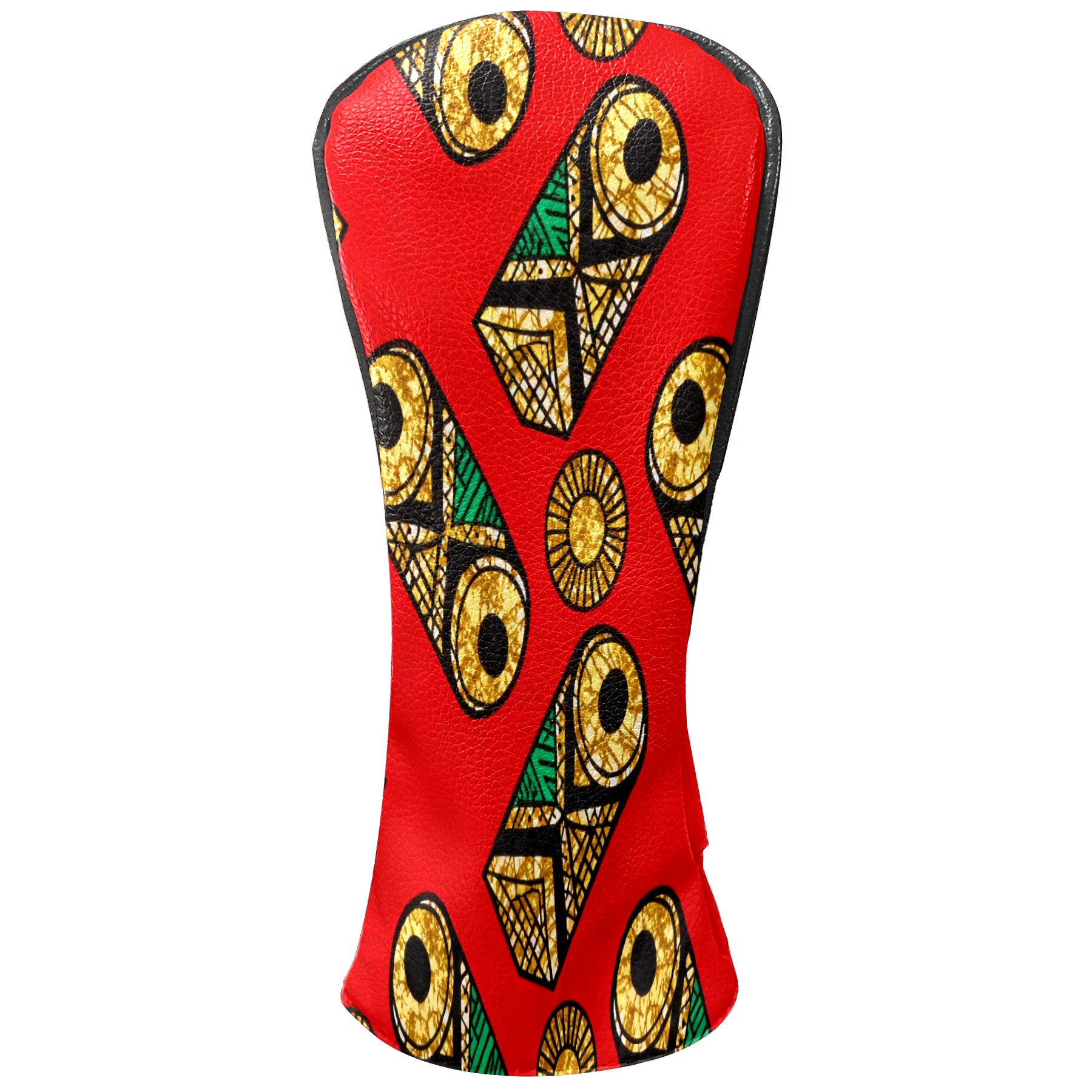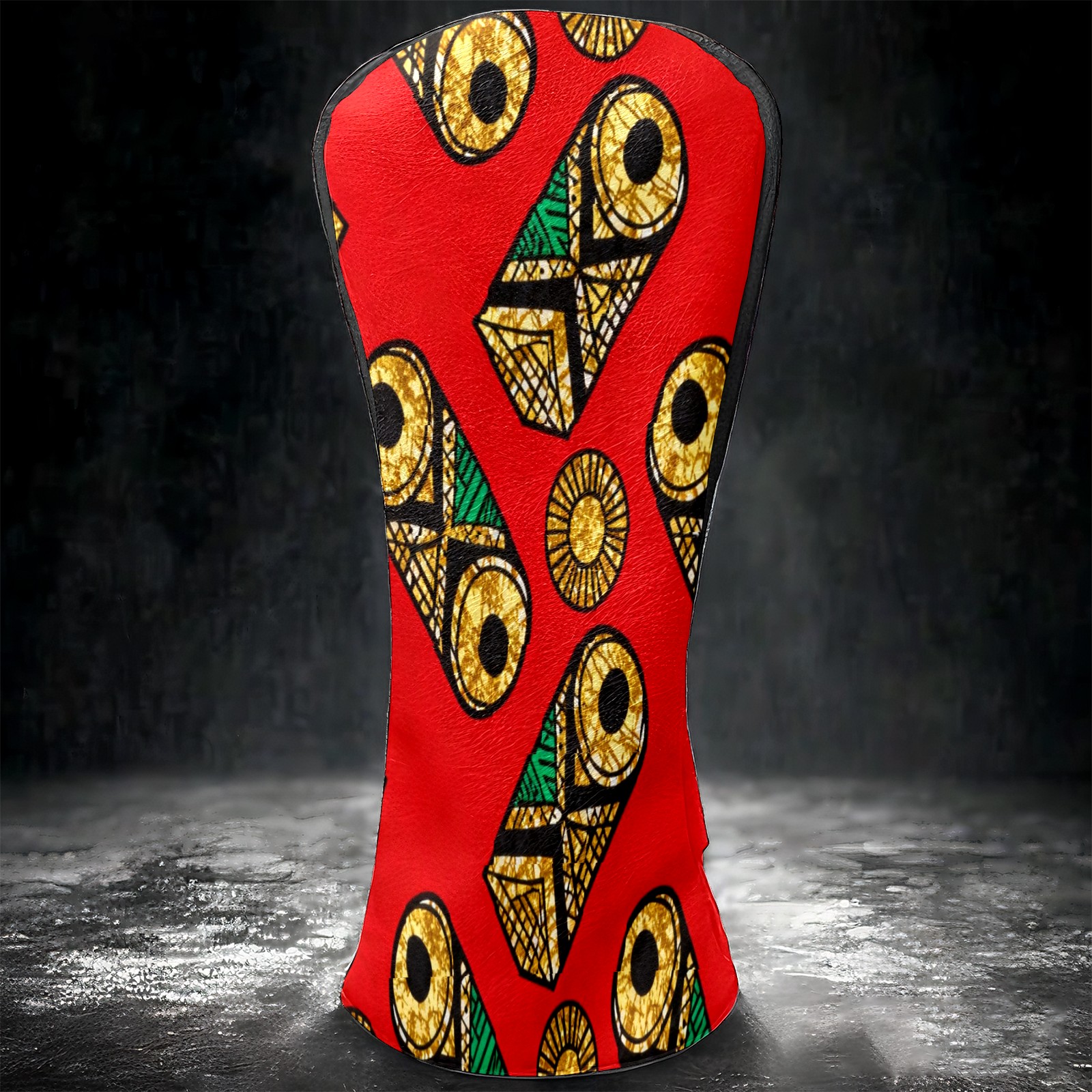 Golf Club Covers, Red GeometricOrnament Premium PU Leather Driver Hybrid Putter Head Covers with Velvet Lining, Waterproof Golf Gifts for Men Women