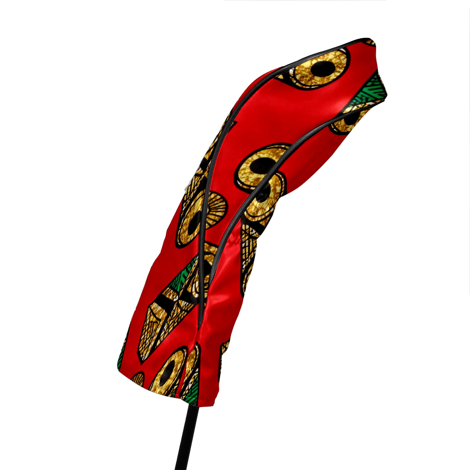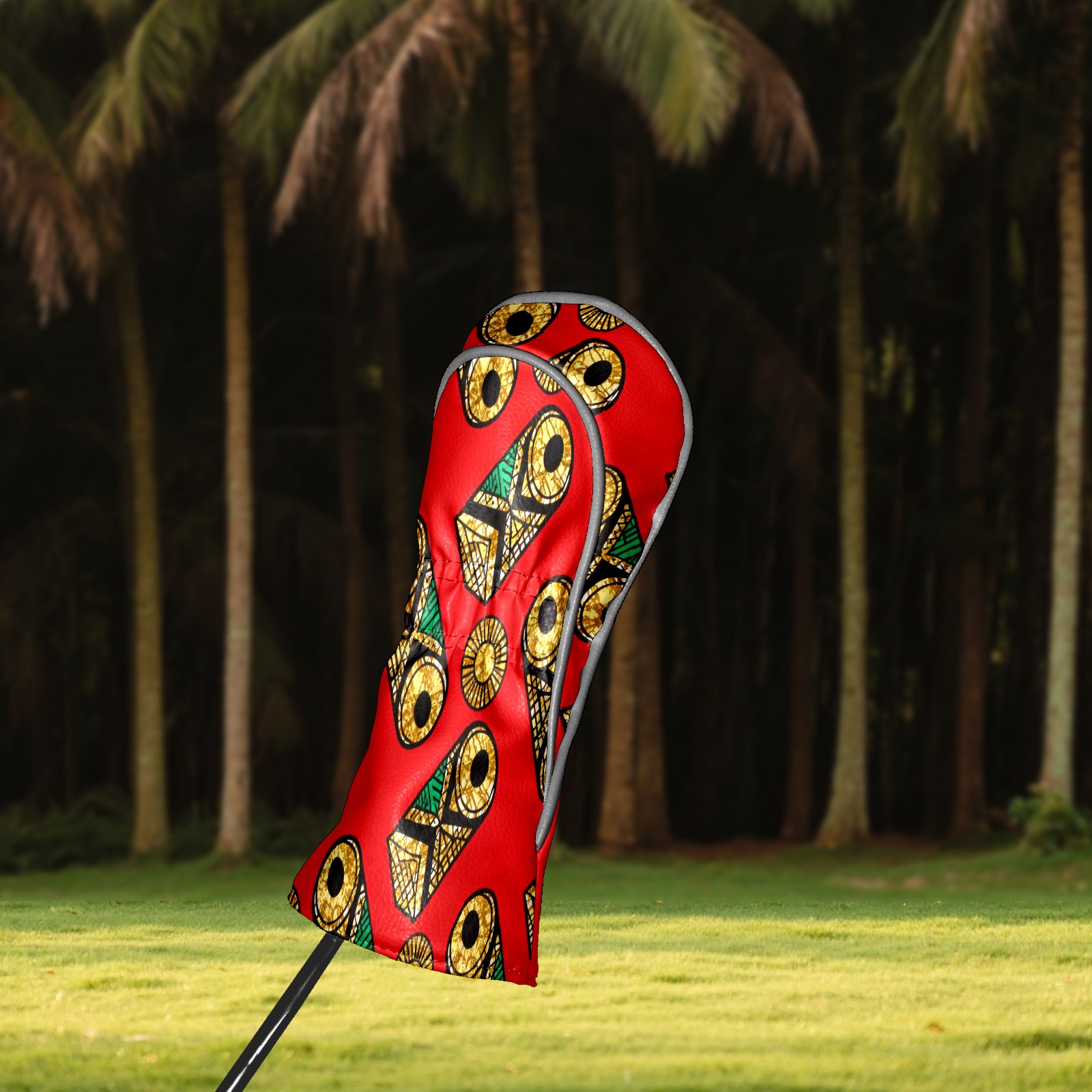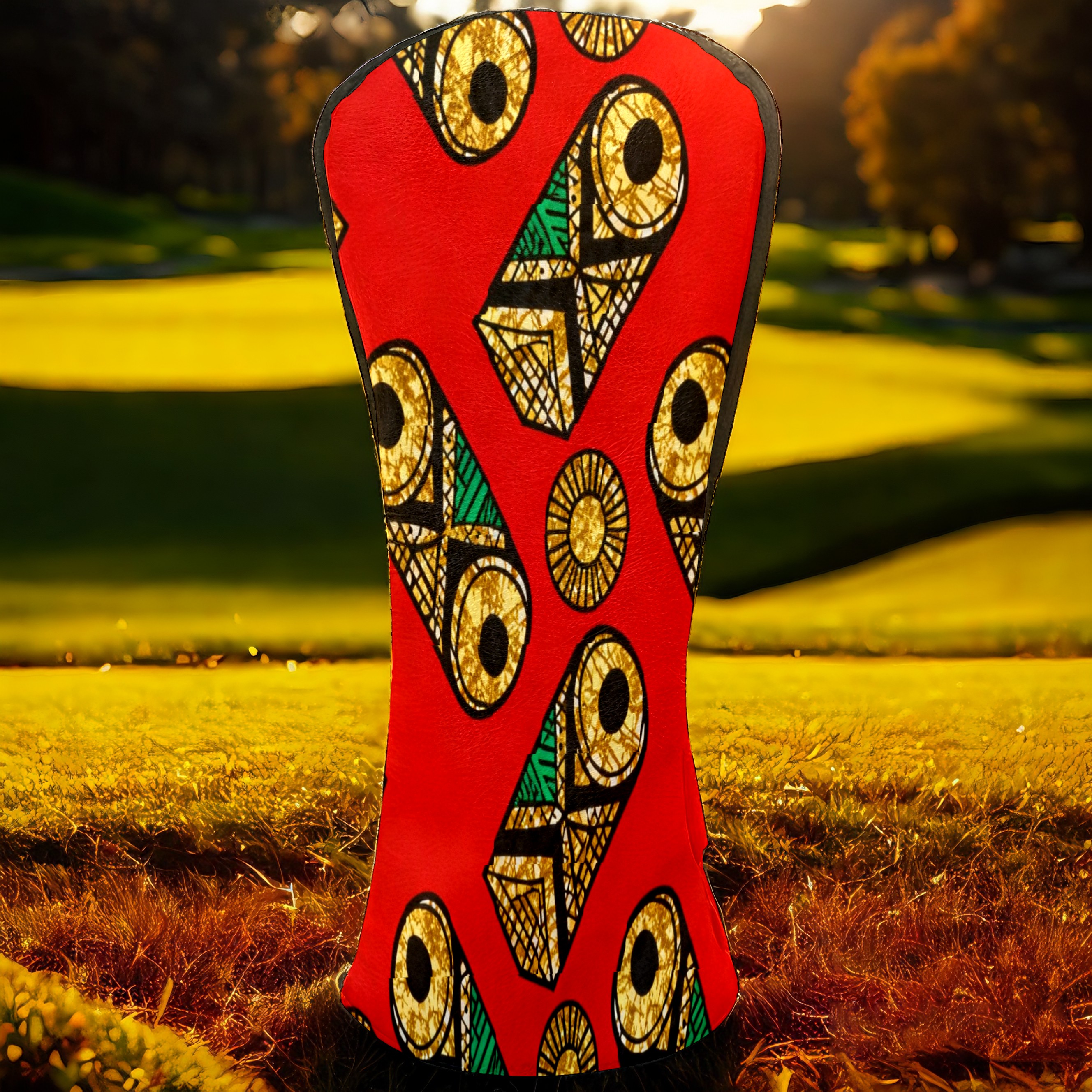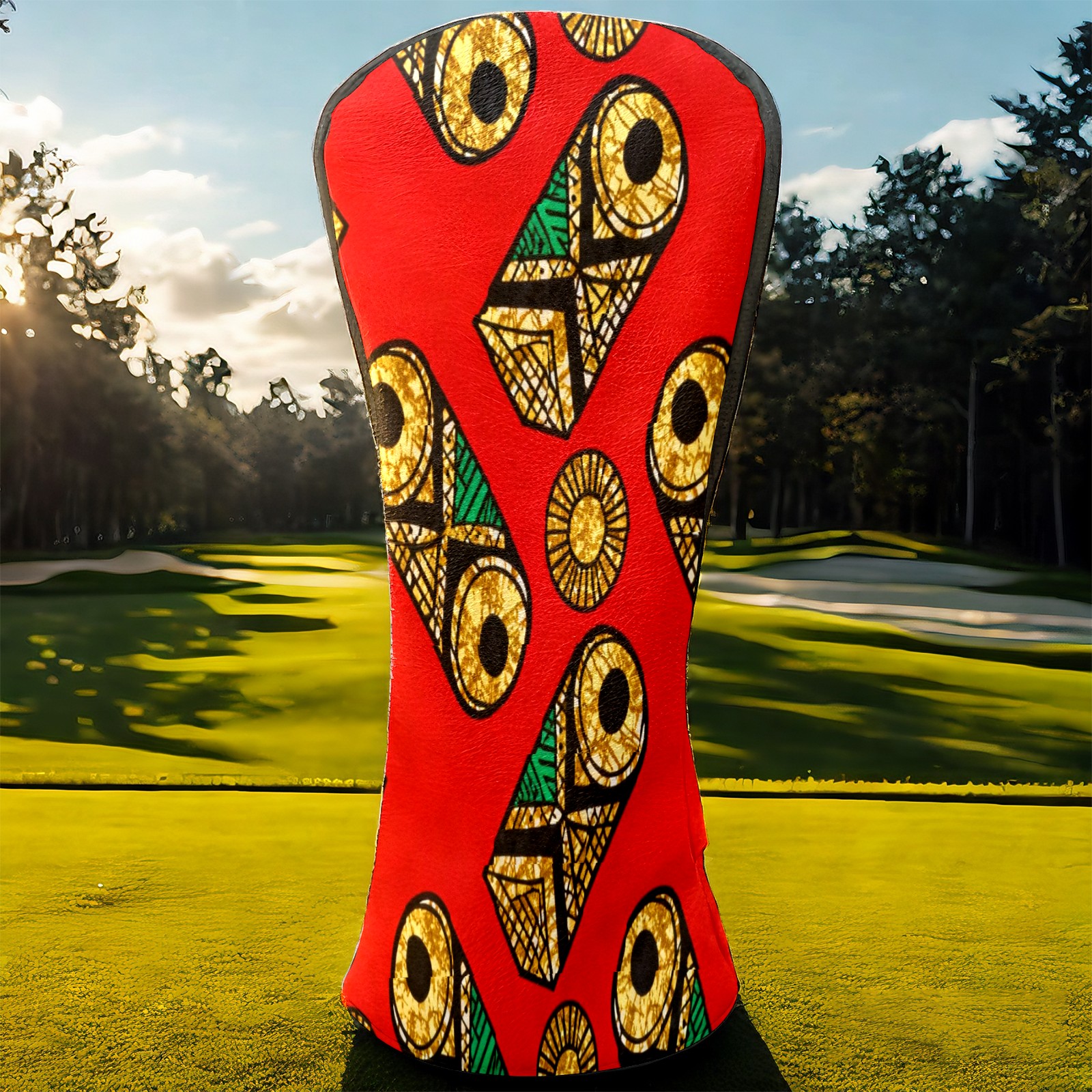 Golf Club Covers, Red GeometricOrnament Premium PU Leather Driver Hybrid Putter Head Covers with Velvet Lining, Waterproof Golf Gifts for Men Women